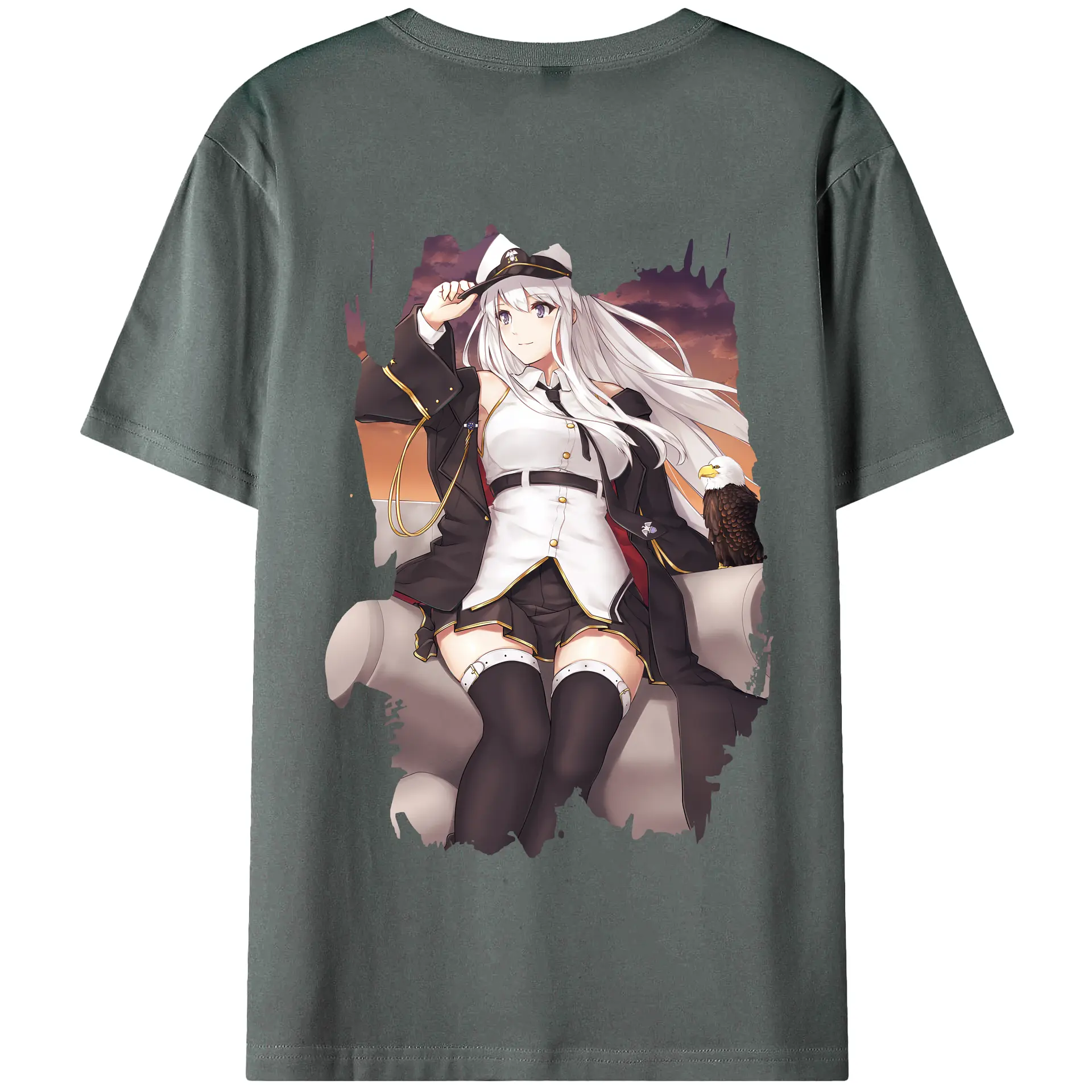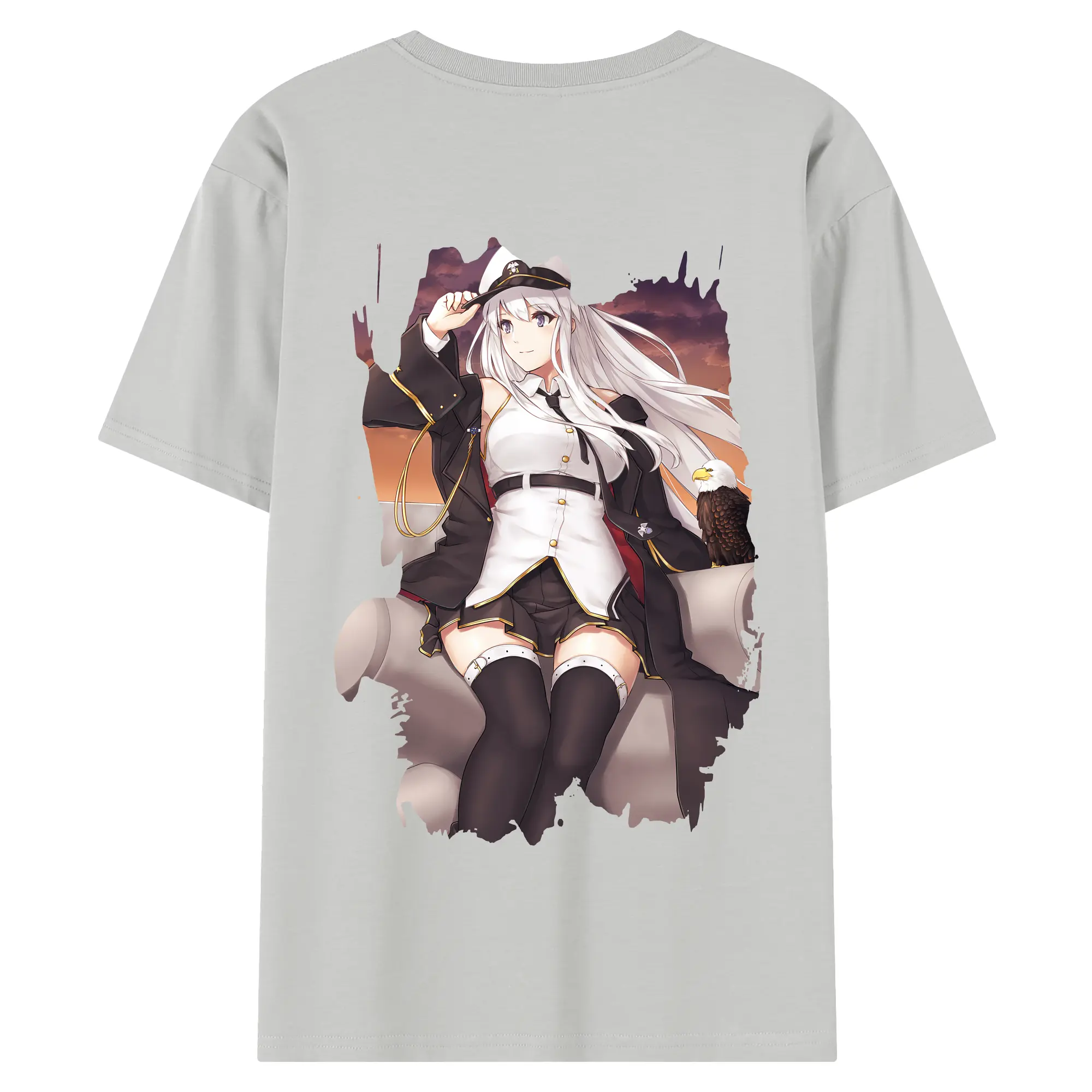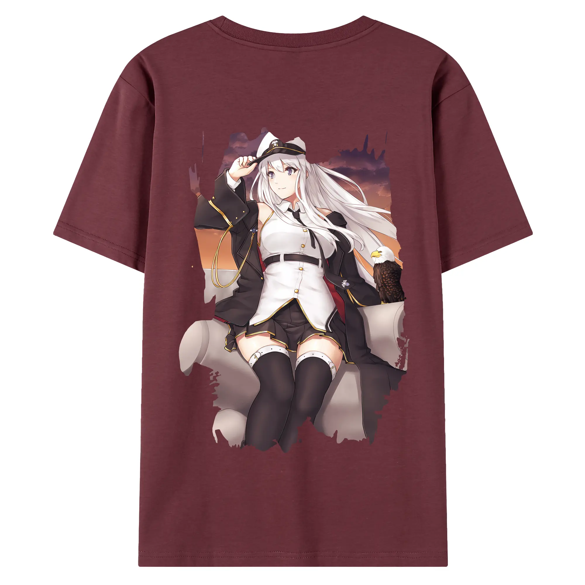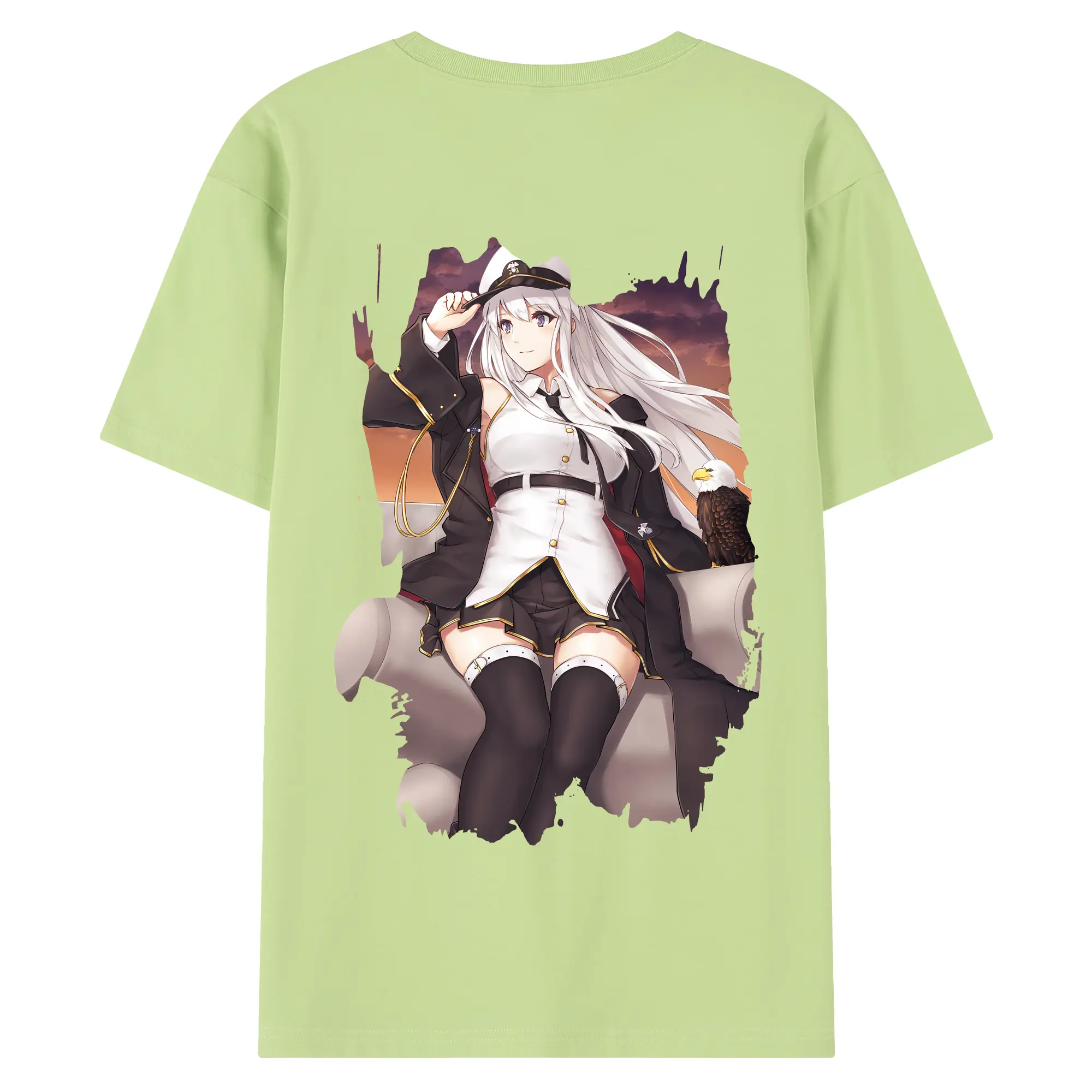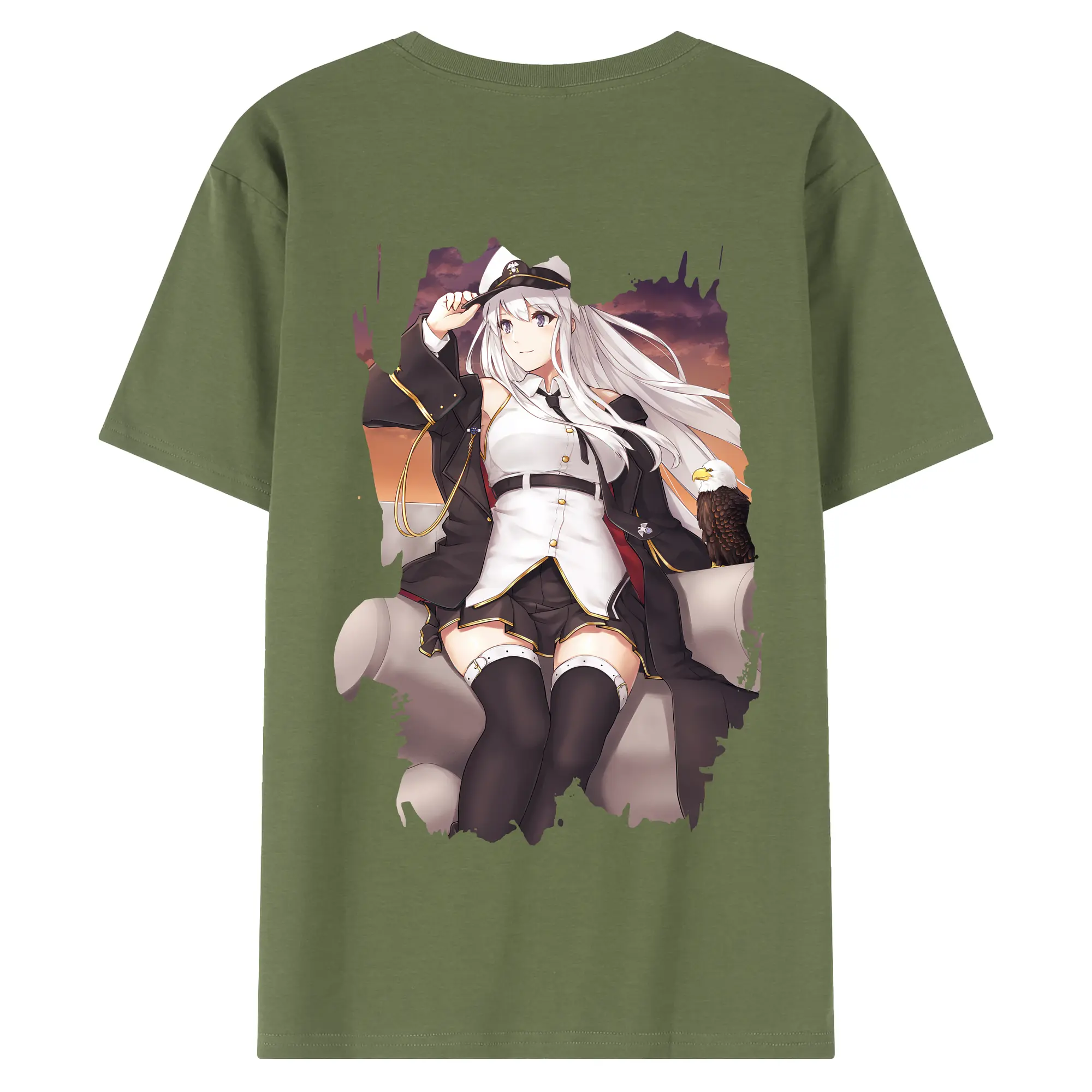 アズールレーン グッズ,エンタープライズ - 綿100% ヴィンテージ風 半袖Tシャツ ・ 背面プリント ・ 柔らか肌触り ・ 通気性 快適 ・ スポーツ カジュアル 外出用
