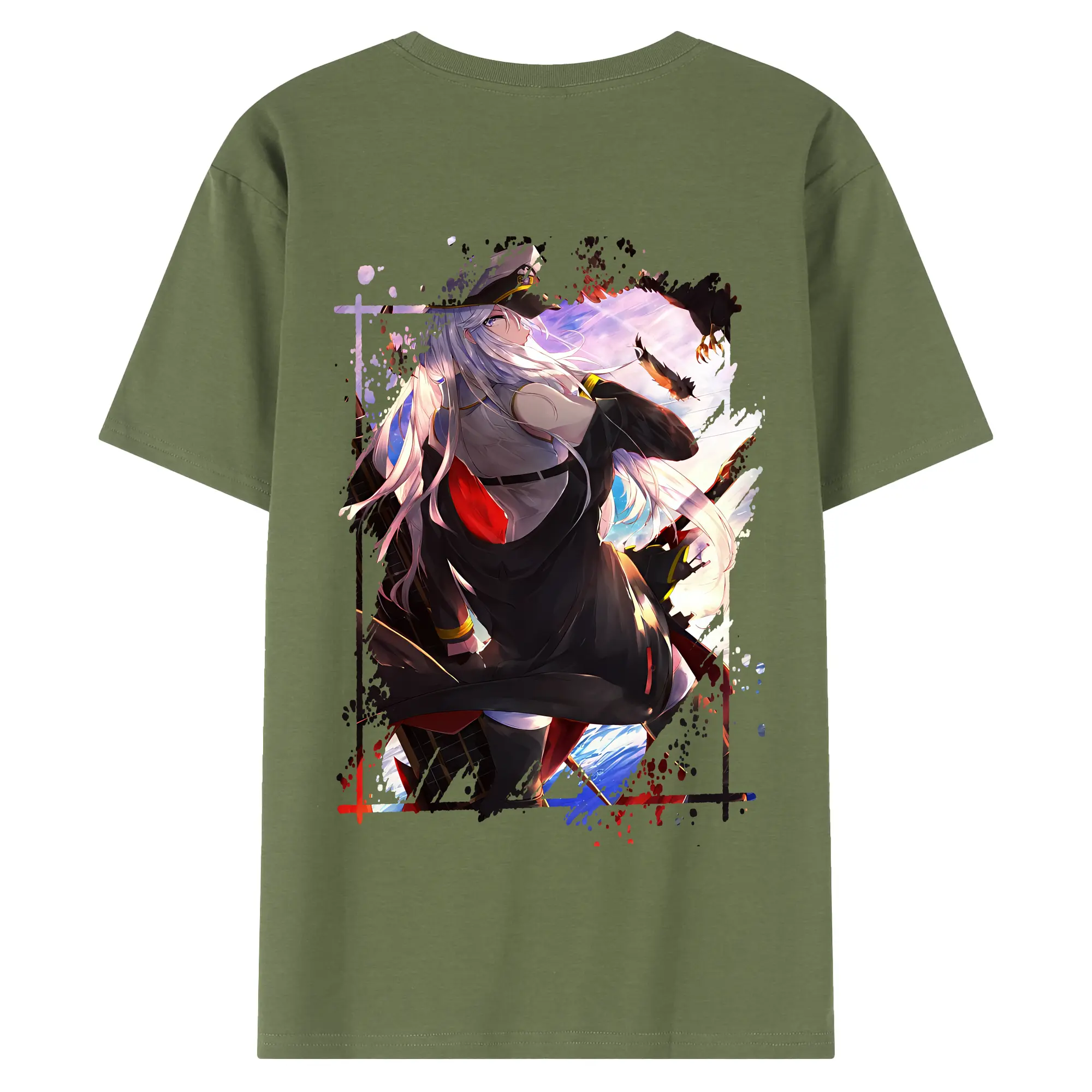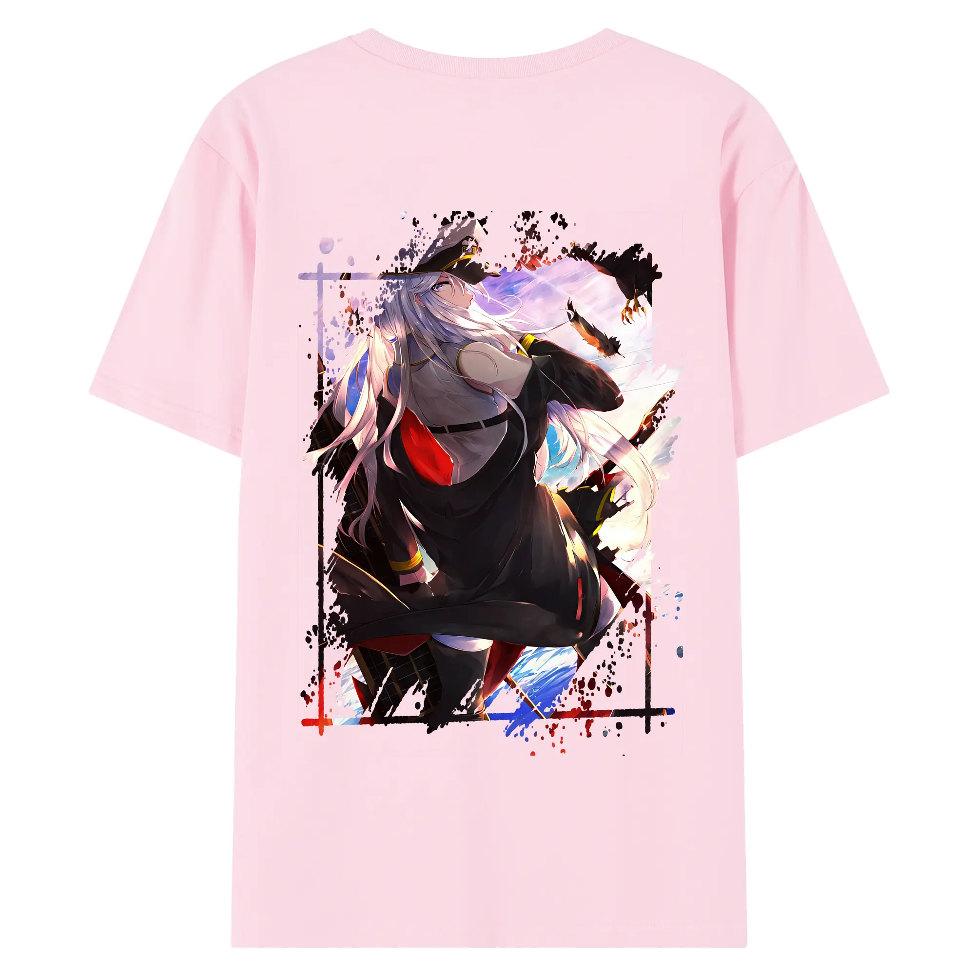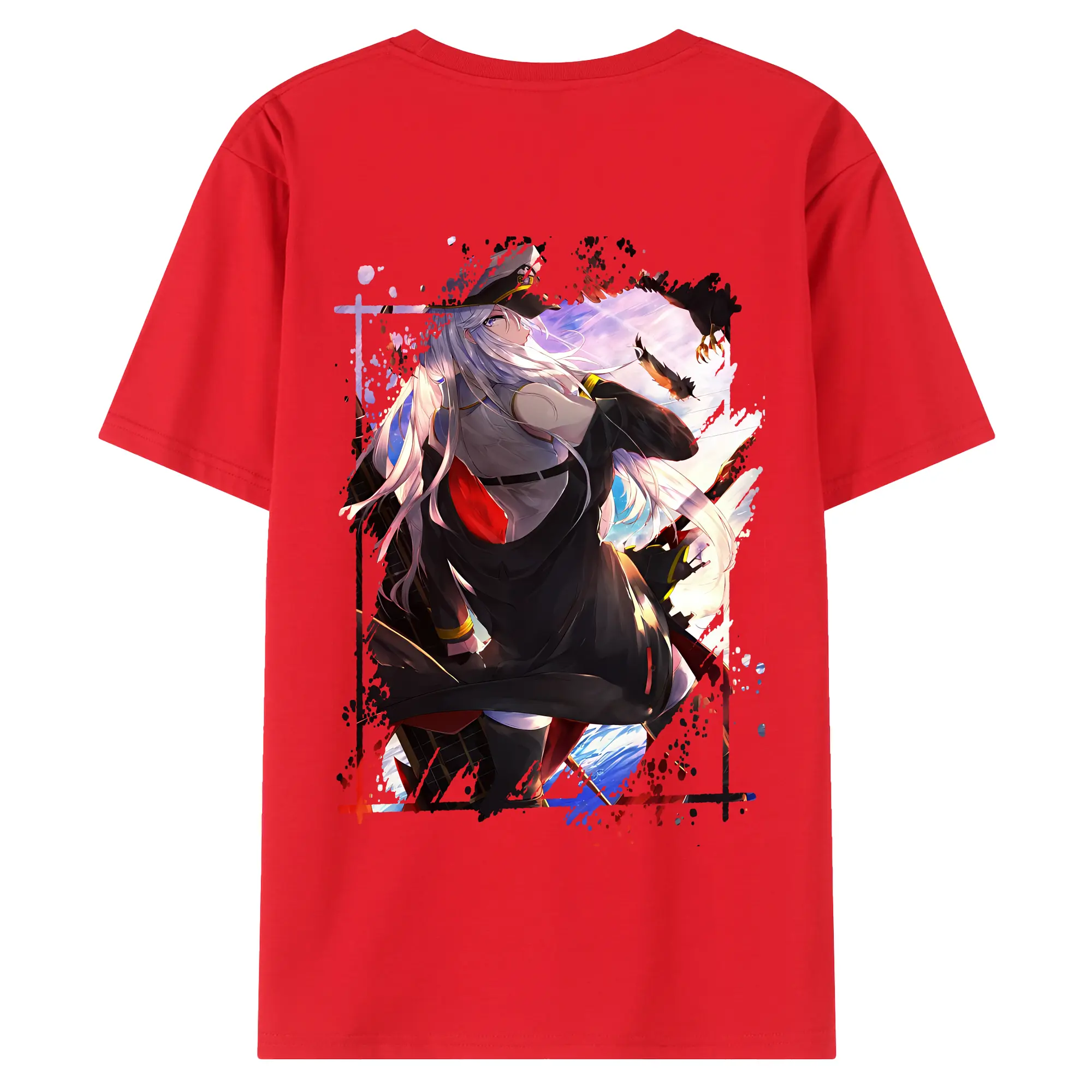 アズールレーン グッズ,エンタープライズ - 綿100% ヴィンテージ風 半袖Tシャツ ・ 背面プリント ・ 柔らか肌触り ・ 通気性 快適 ・ スポーツ カジュアル 外出用