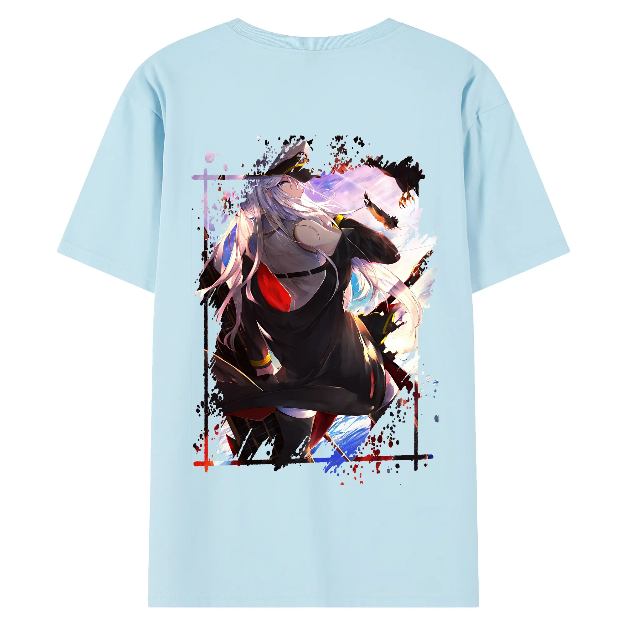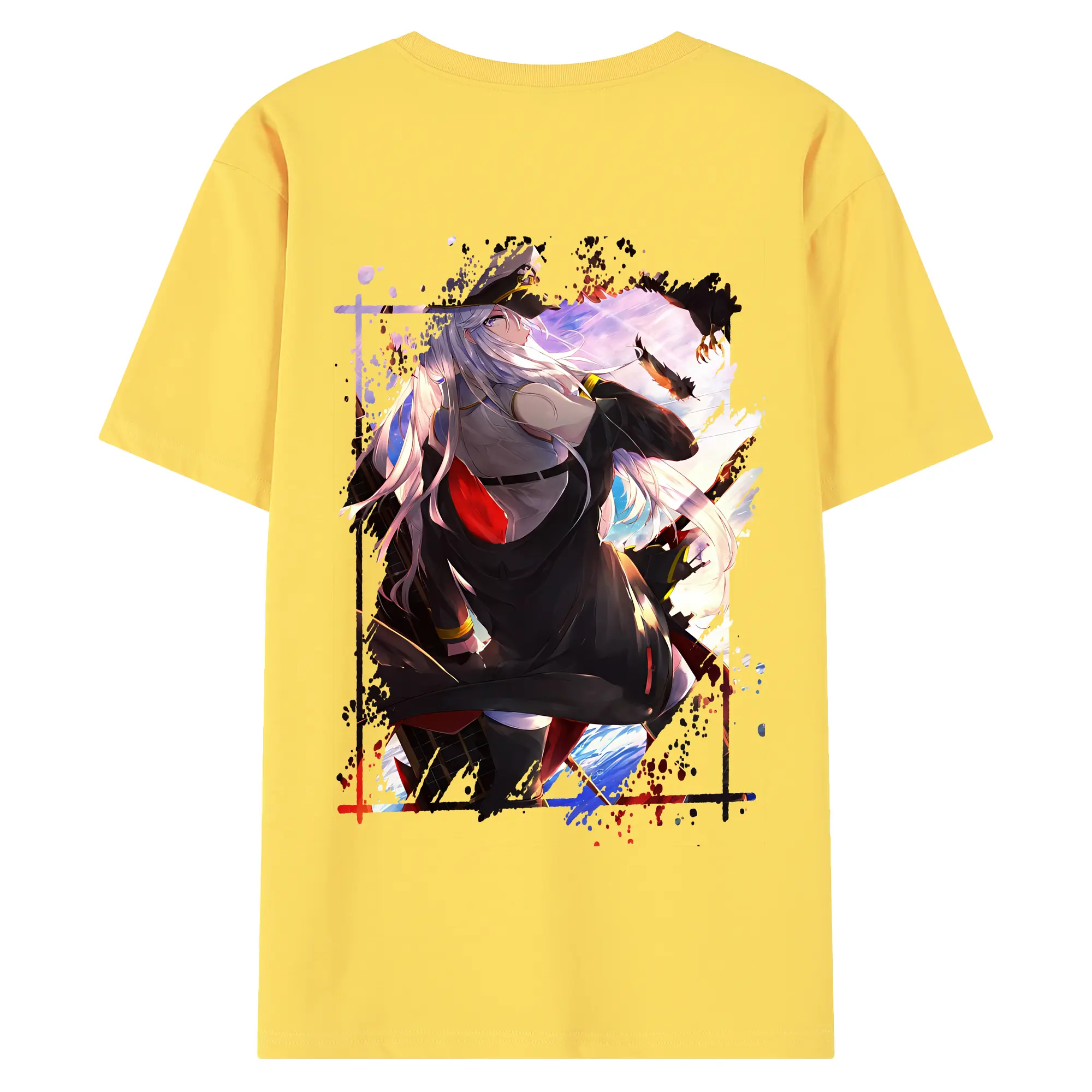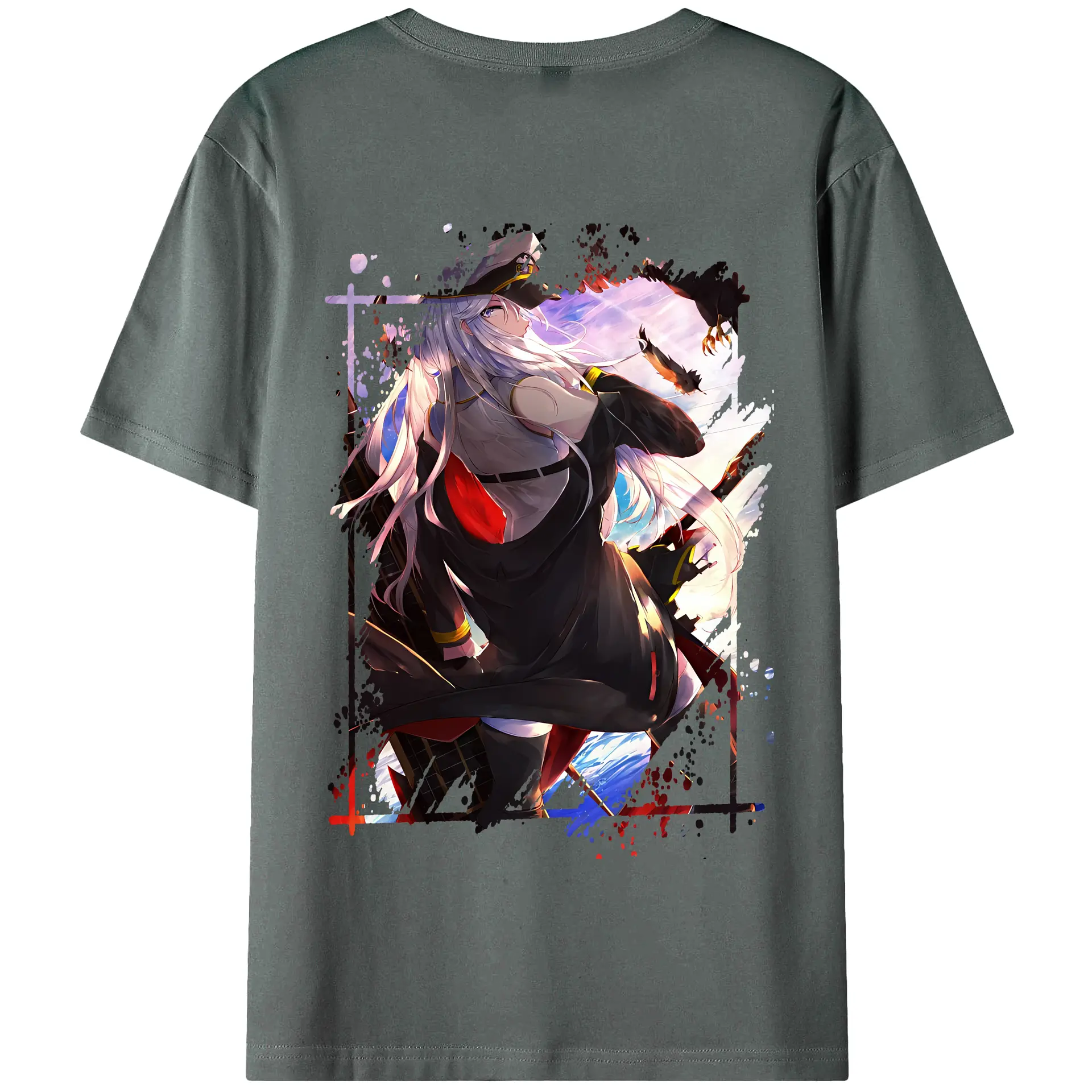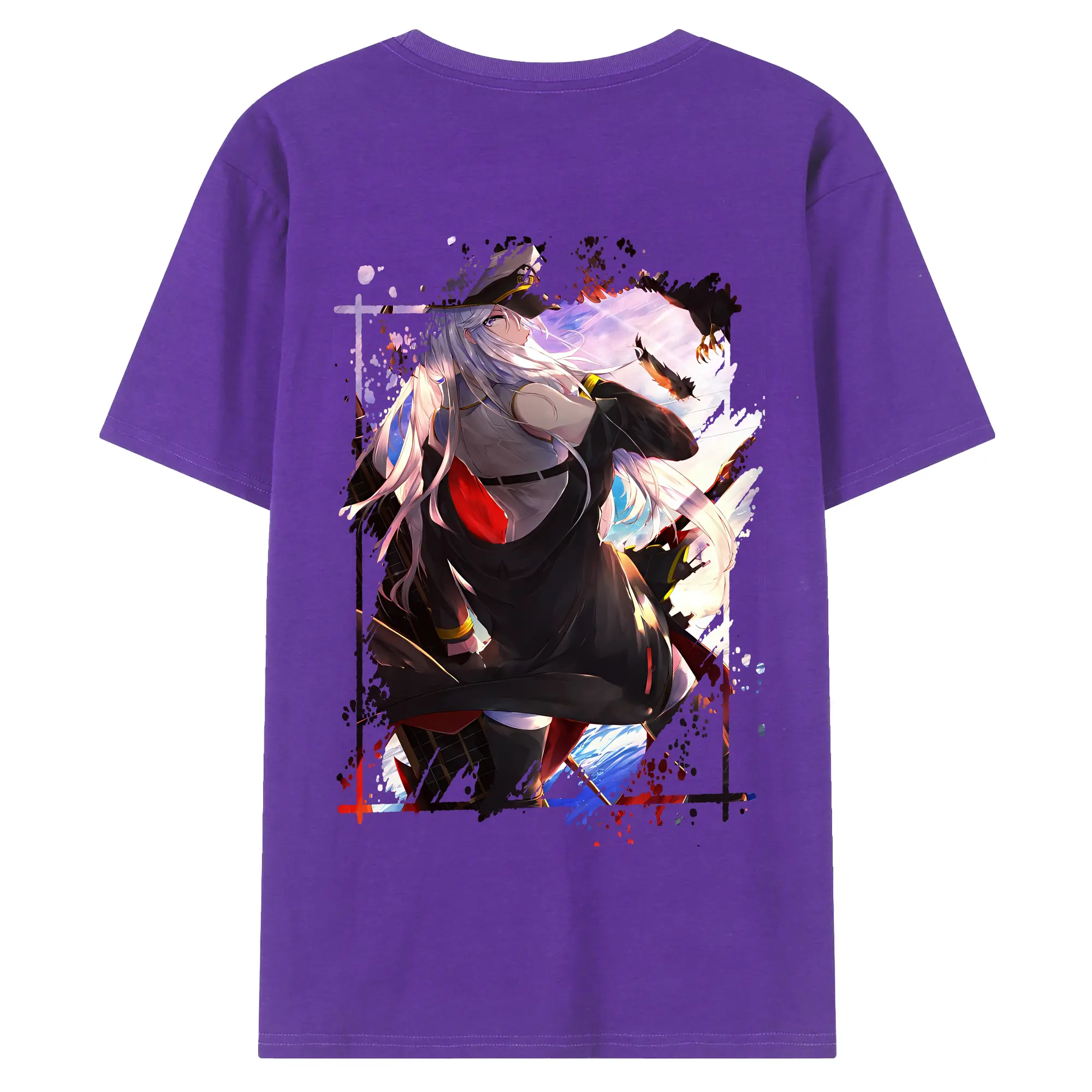 アズールレーン グッズ,エンタープライズ - 綿100% ヴィンテージ風 半袖Tシャツ ・ 背面プリント ・ 柔らか肌触り ・ 通気性 快適 ・ スポーツ カジュアル 外出用