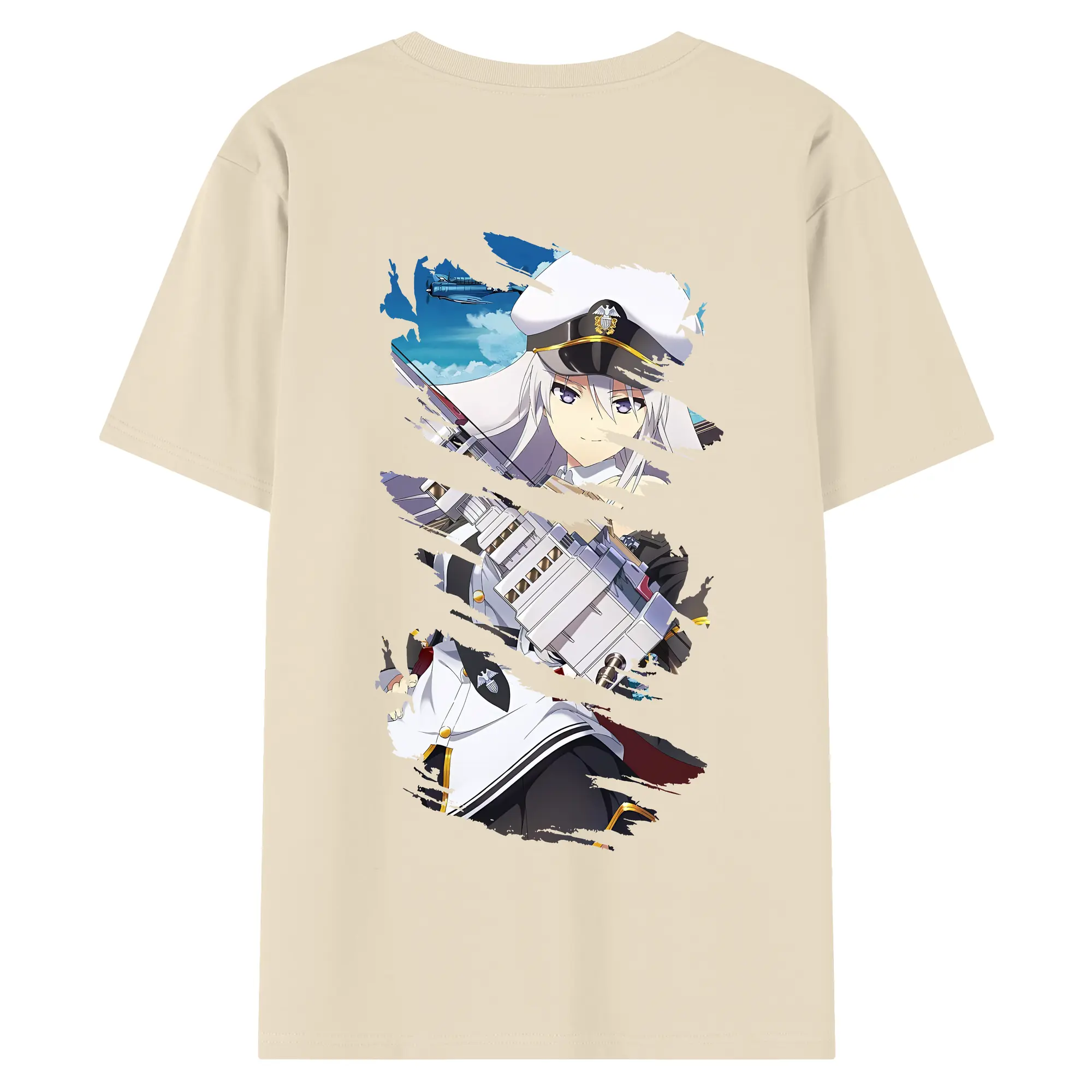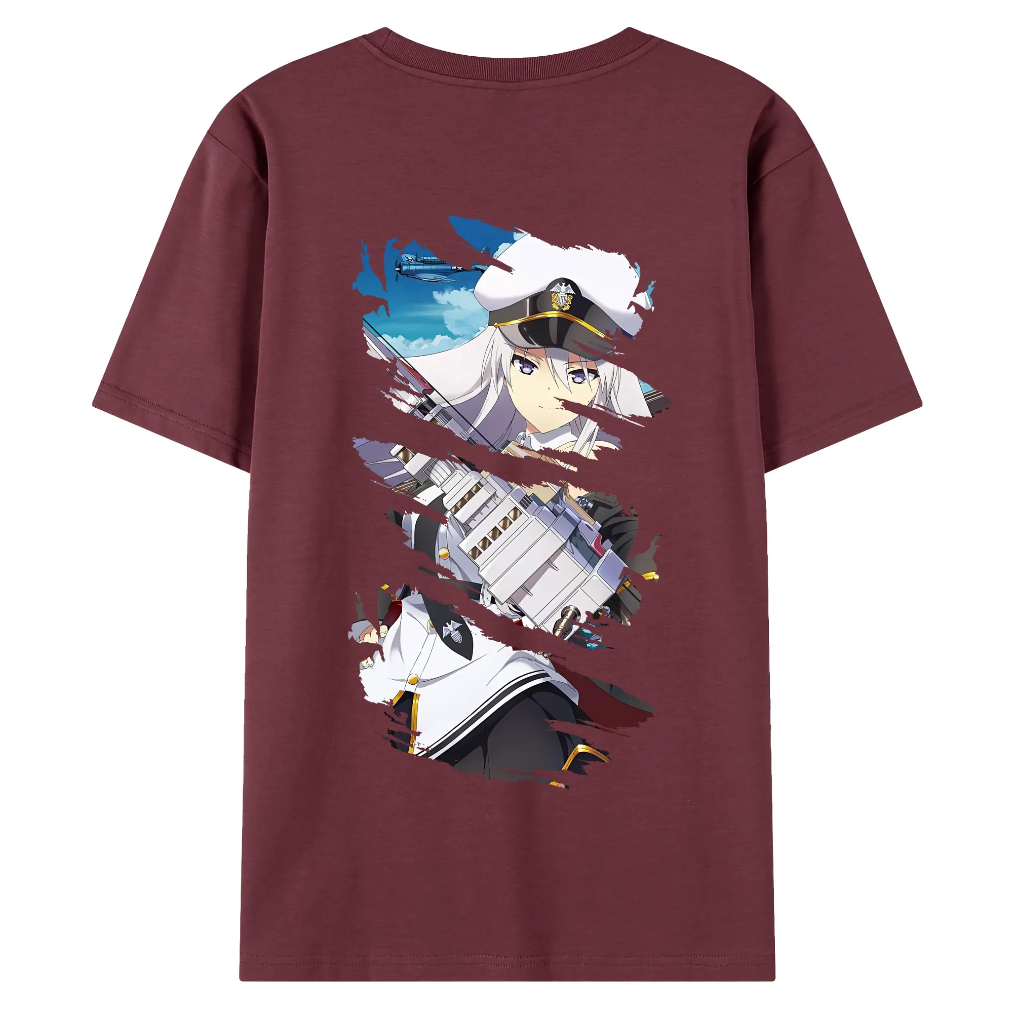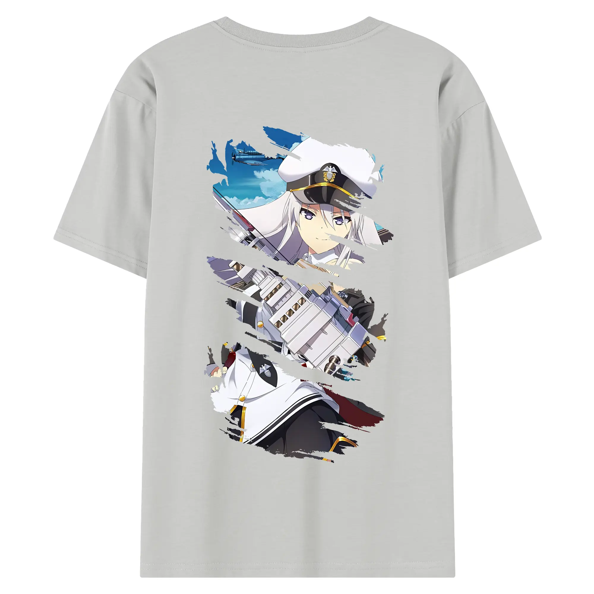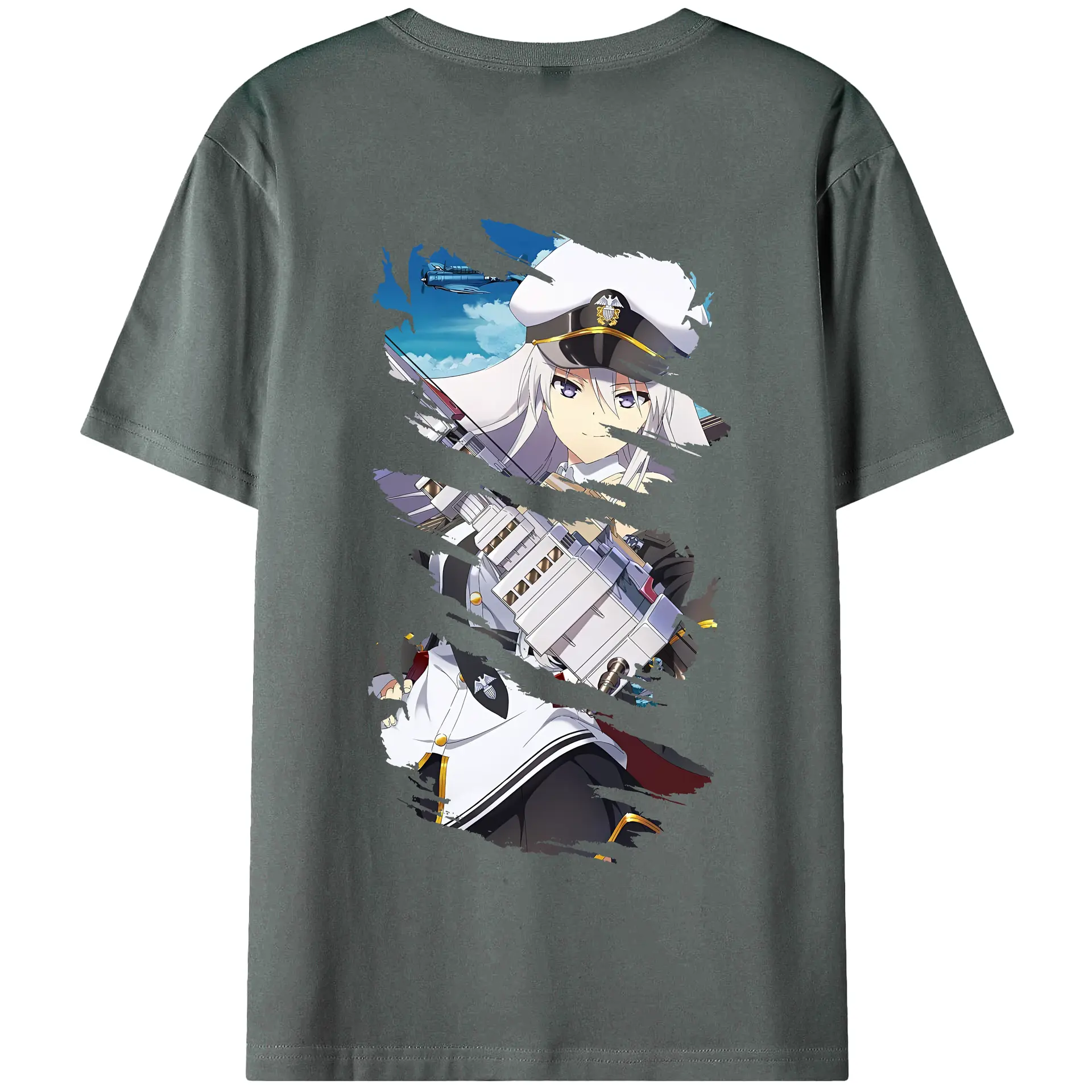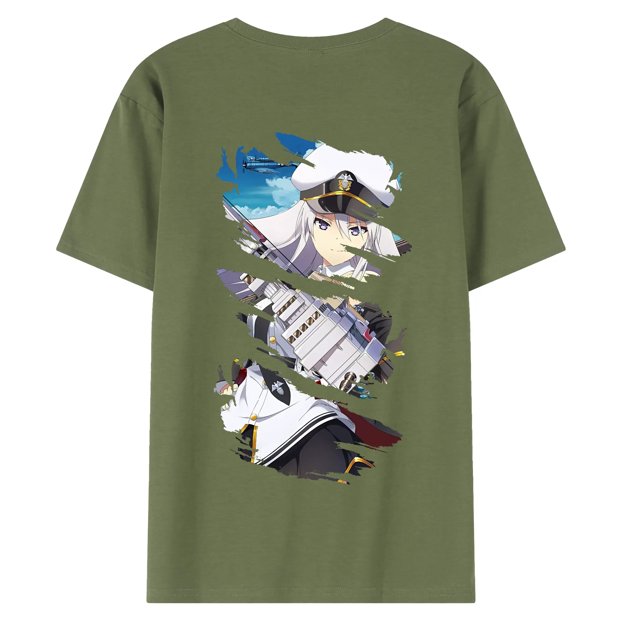 アズールレーン グッズ,エンタープライズ - 綿100% ヴィンテージ風 半袖Tシャツ ・ 背面プリント ・ 柔らか肌触り ・ 通気性 快適 ・ スポーツ カジュアル 外出用