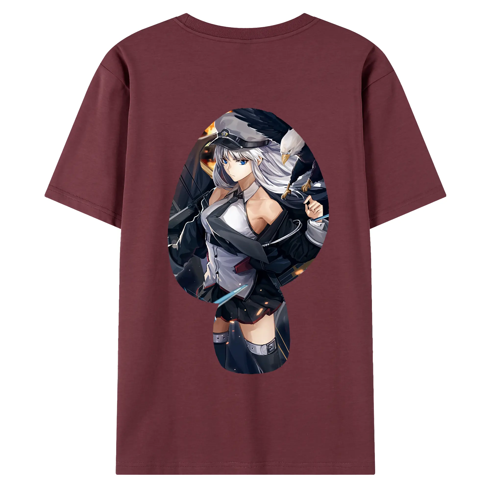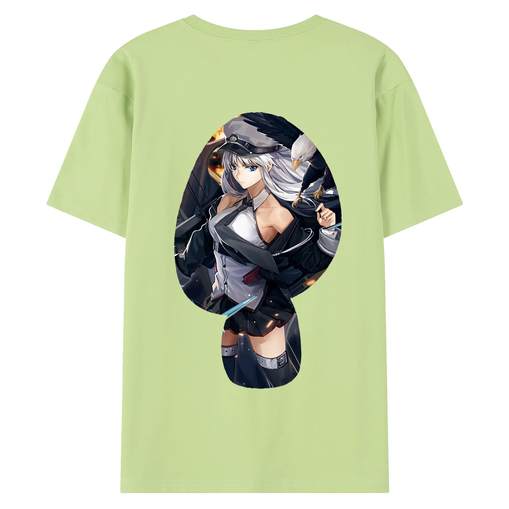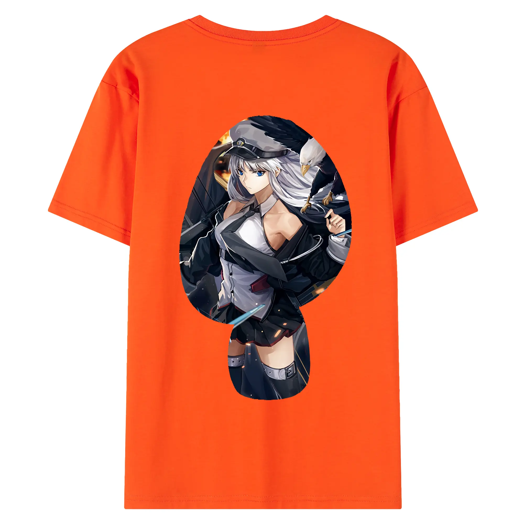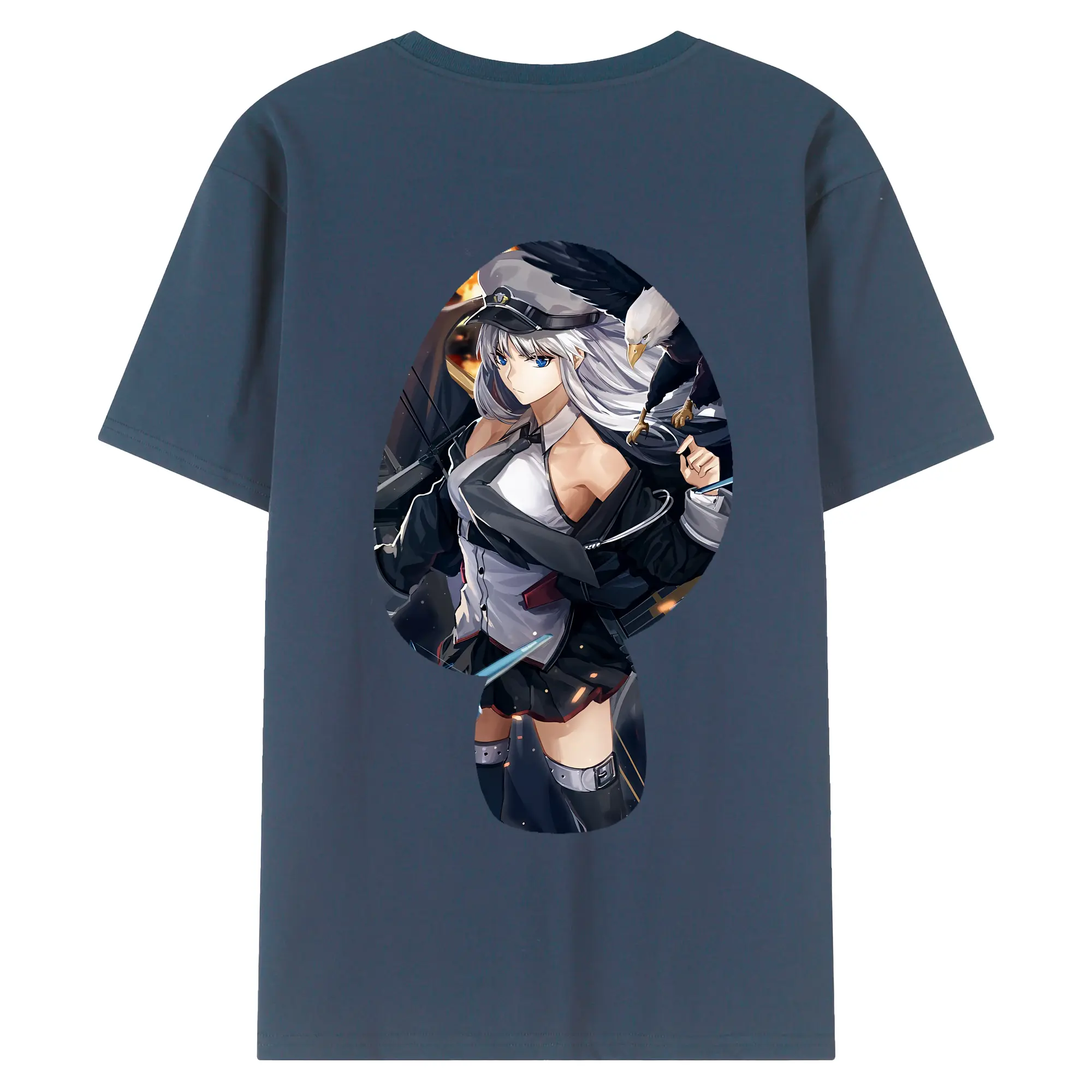 アズールレーン グッズ,エンタープライズ - 綿100% ヴィンテージ風 半袖Tシャツ ・ 背面プリント ・ 柔らか肌触り ・ 通気性 快適 ・ スポーツ カジュアル 外出用