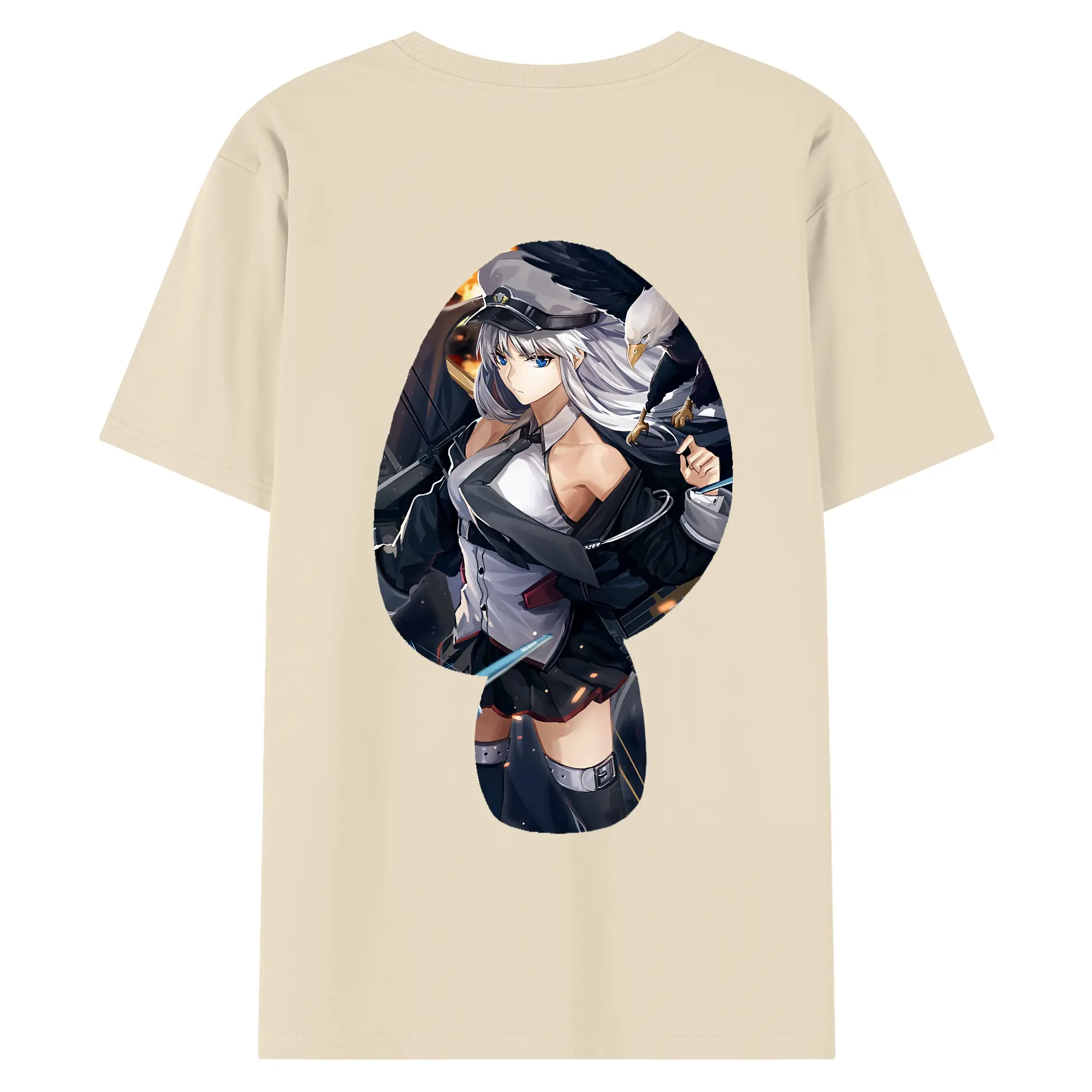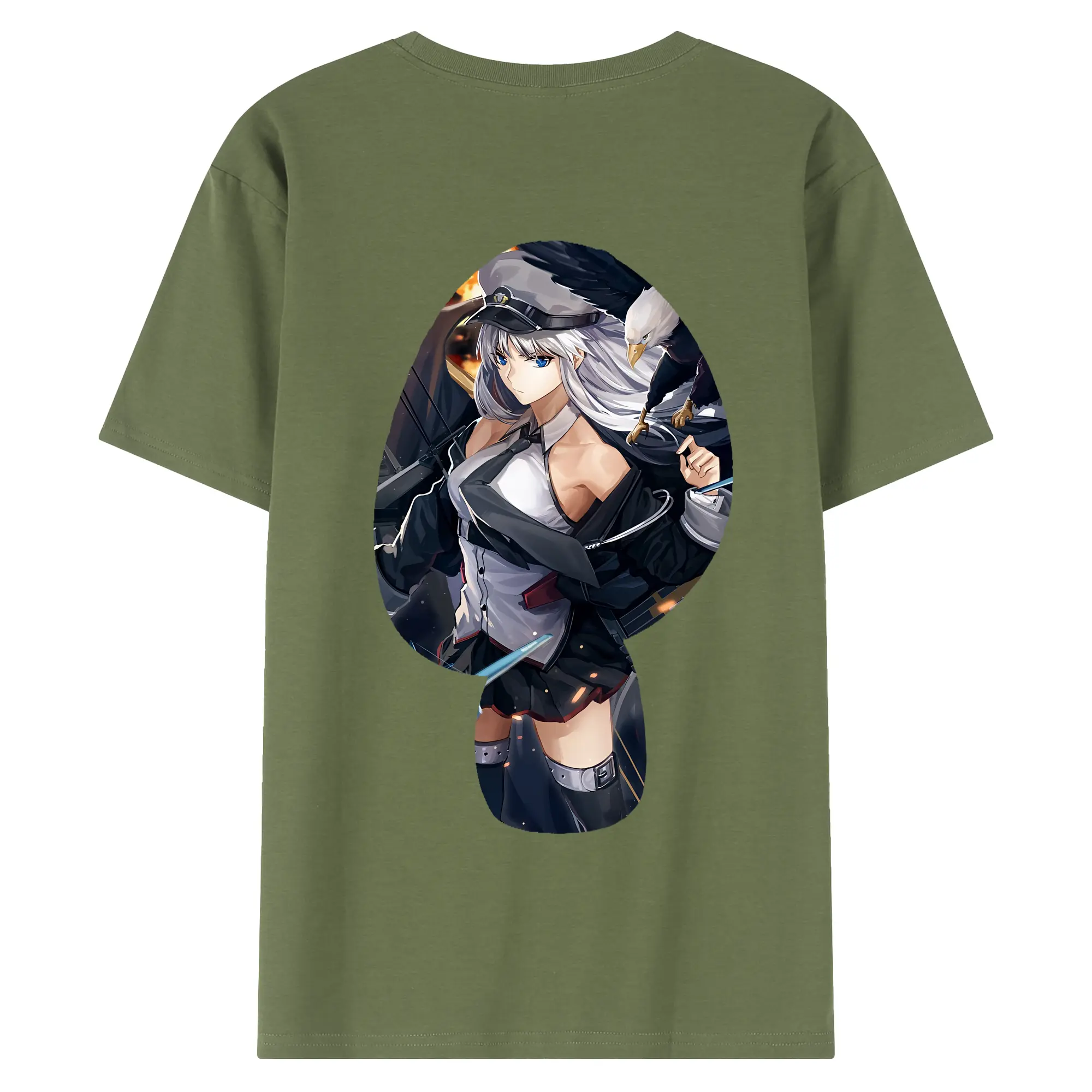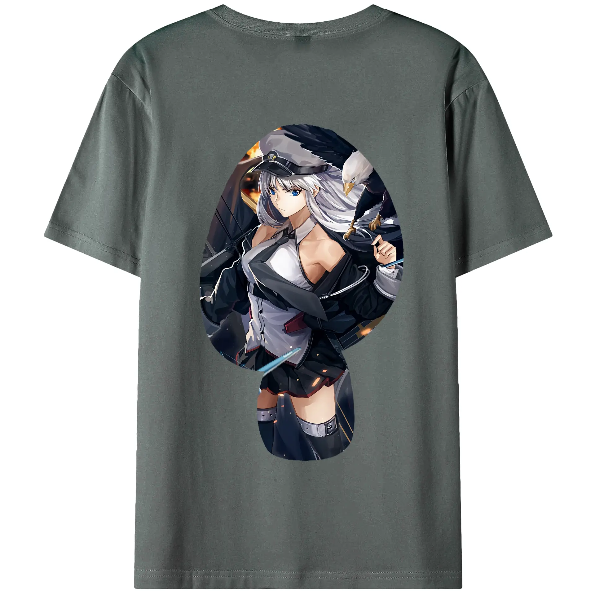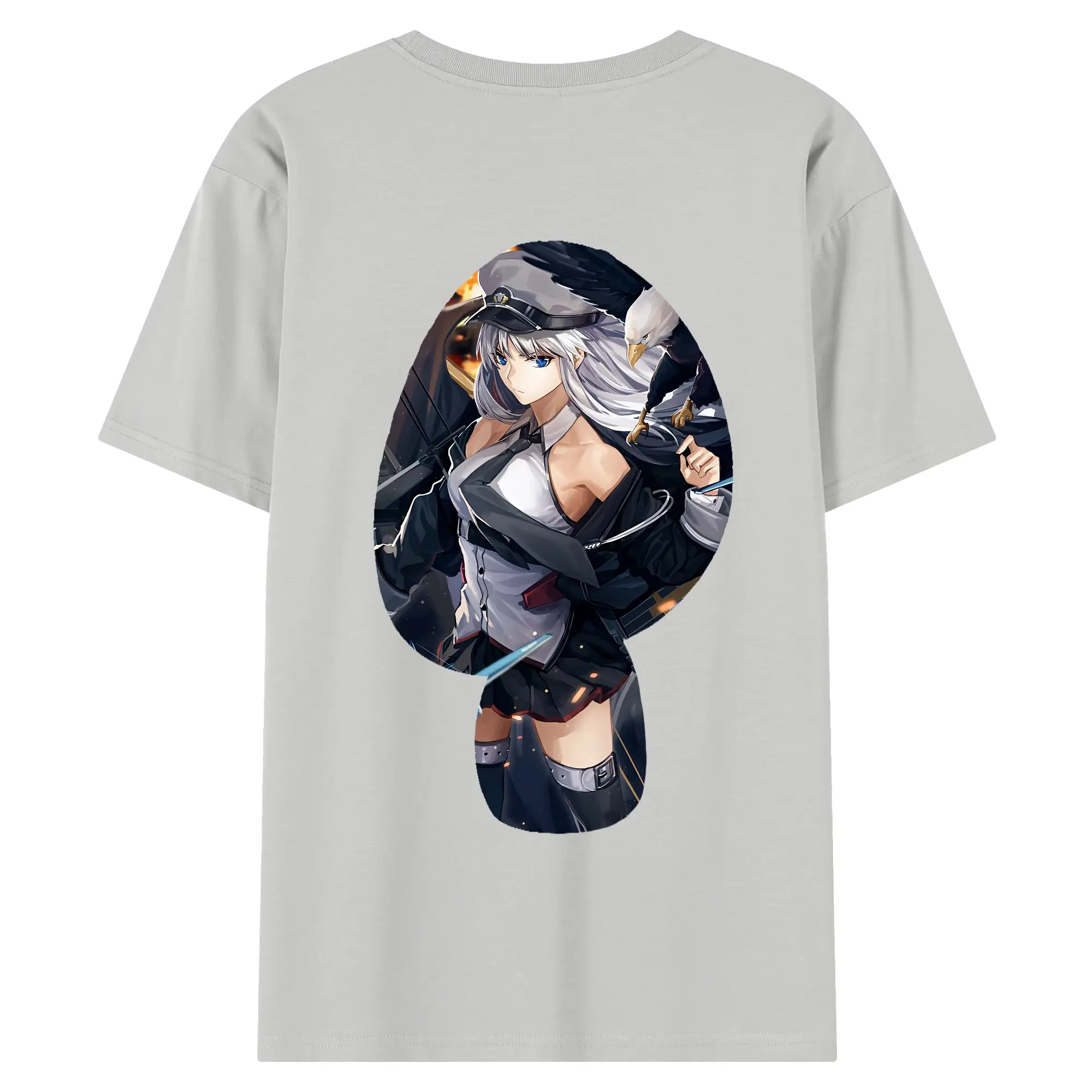 アズールレーン グッズ,エンタープライズ - 綿100% ヴィンテージ風 半袖Tシャツ ・ 背面プリント ・ 柔らか肌触り ・ 通気性 快適 ・ スポーツ カジュアル 外出用