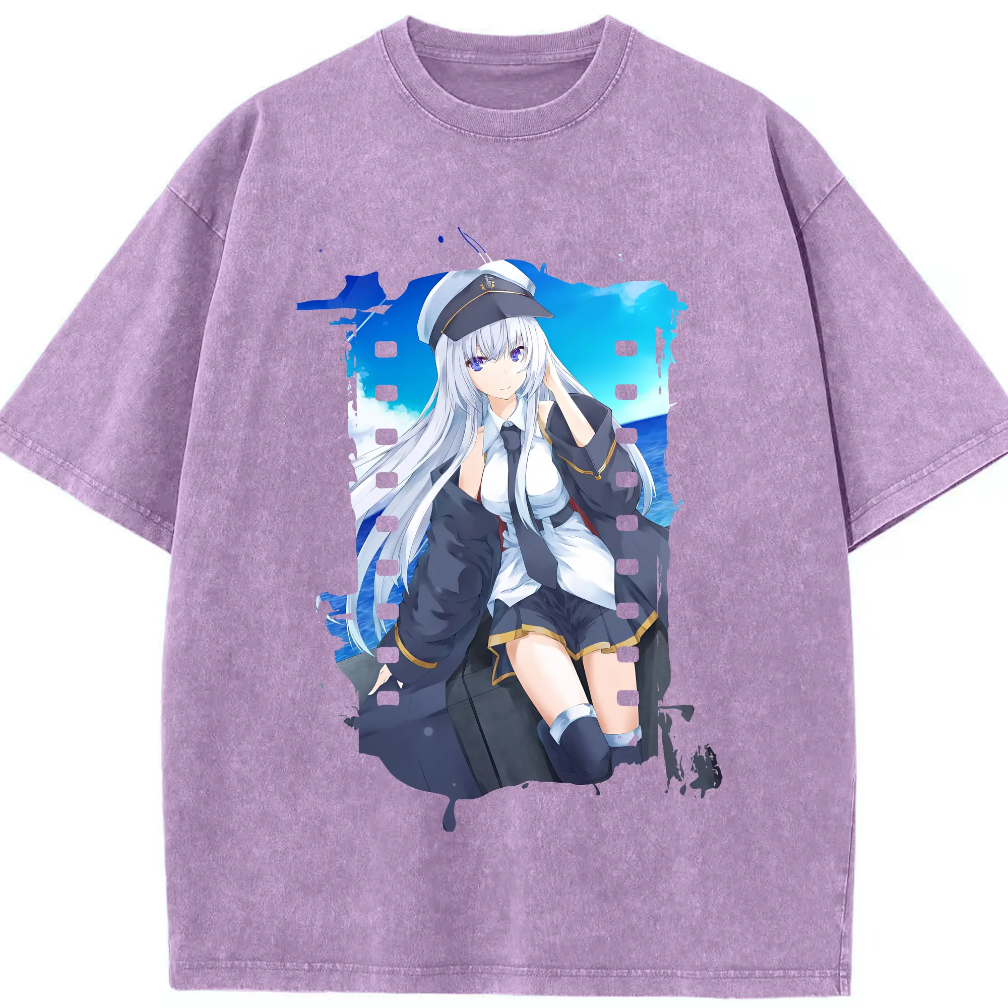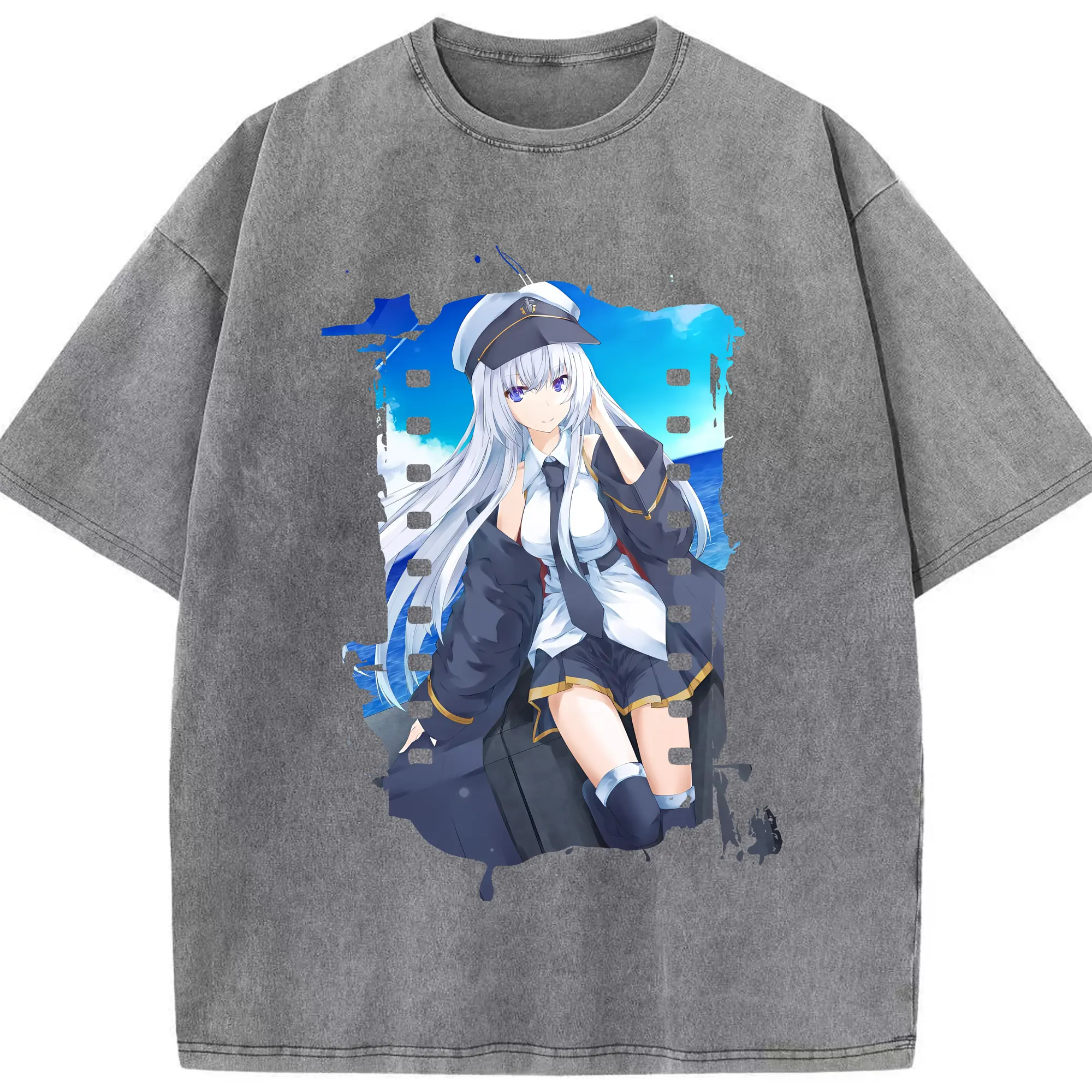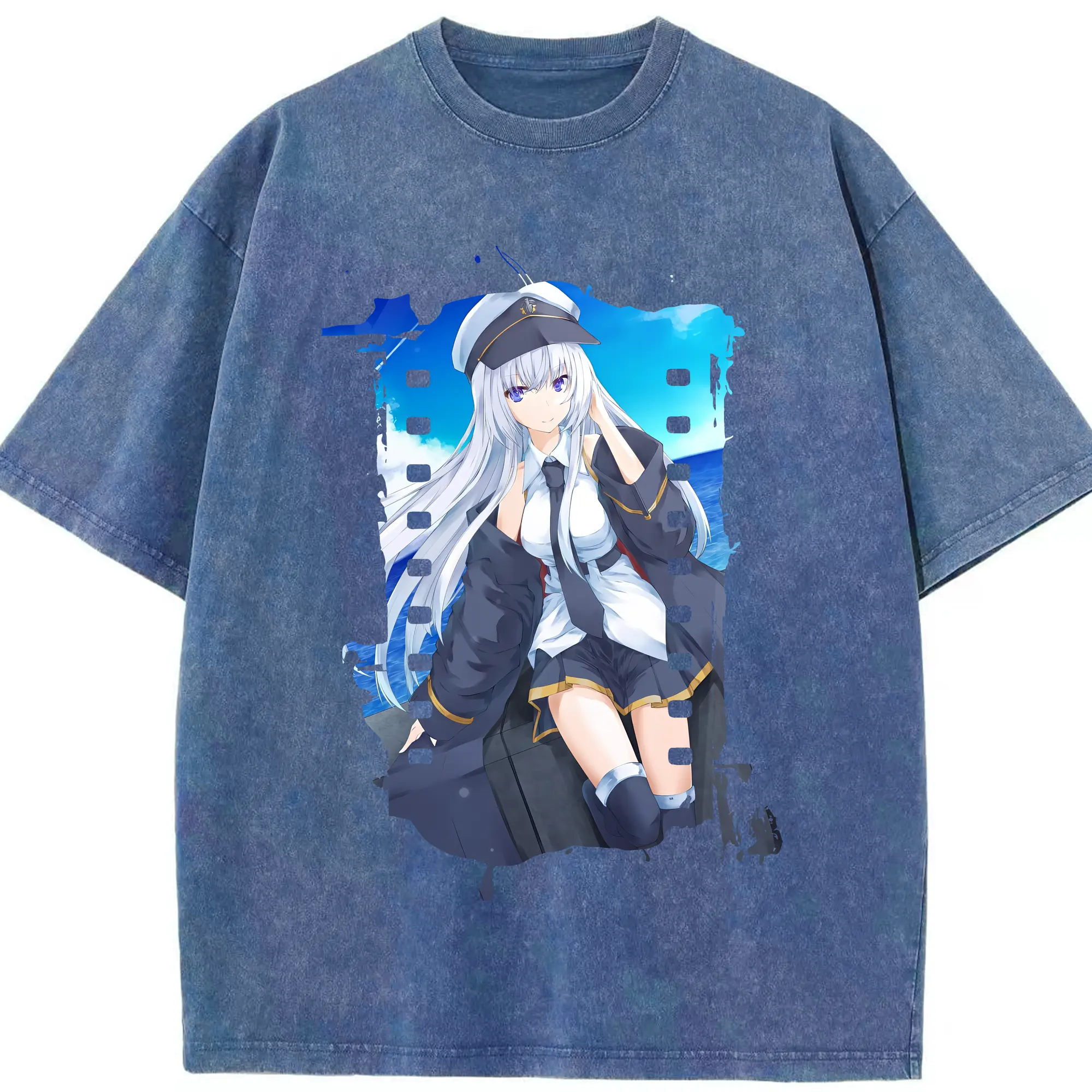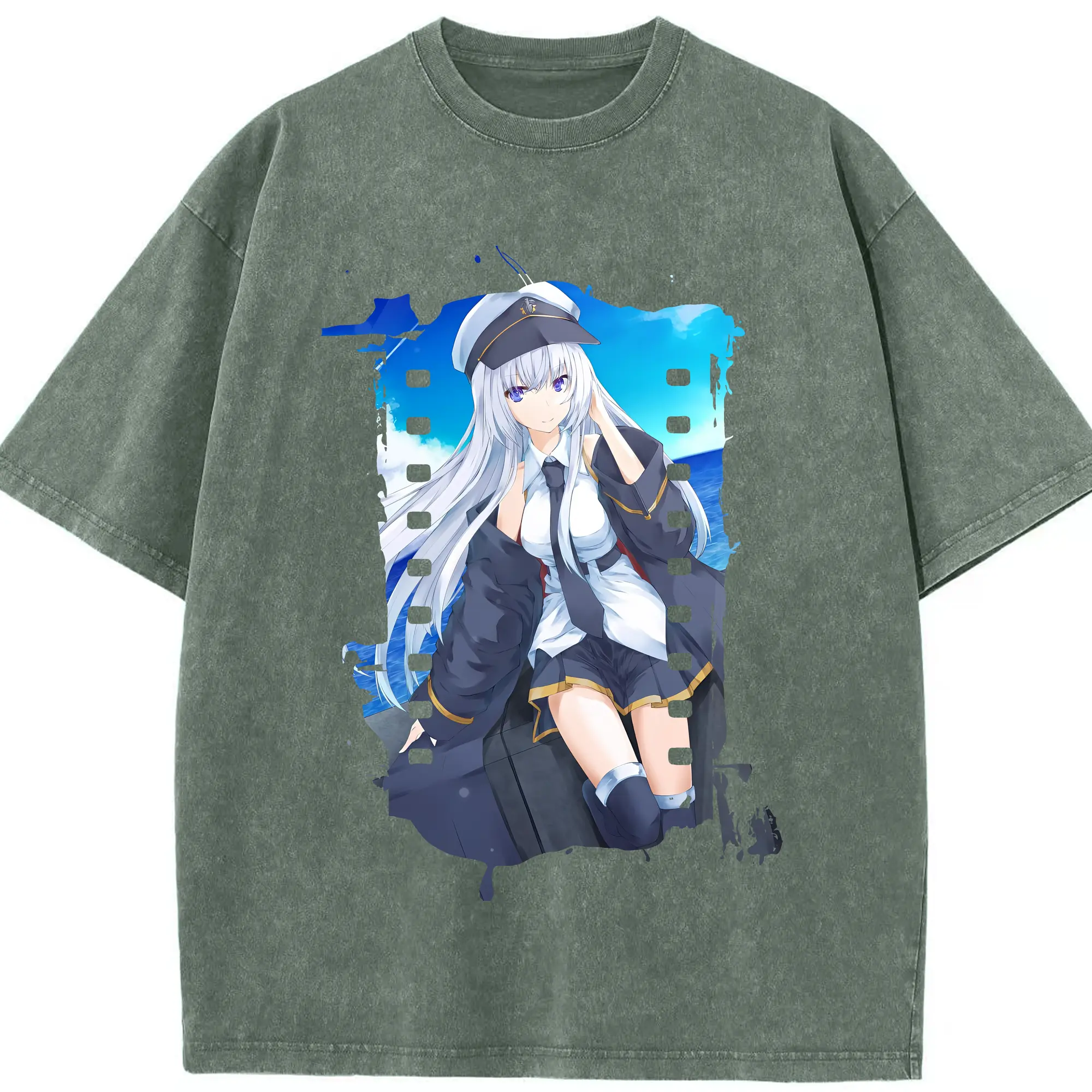 アズールレーン グッズ,エンタープライズ - 綿100% ヴィンテージ風 半袖Tシャツ ・ 背面プリント ・ 柔らか肌触り ・ 通気性 快適 ・ スポーツ カジュアル 外出用
