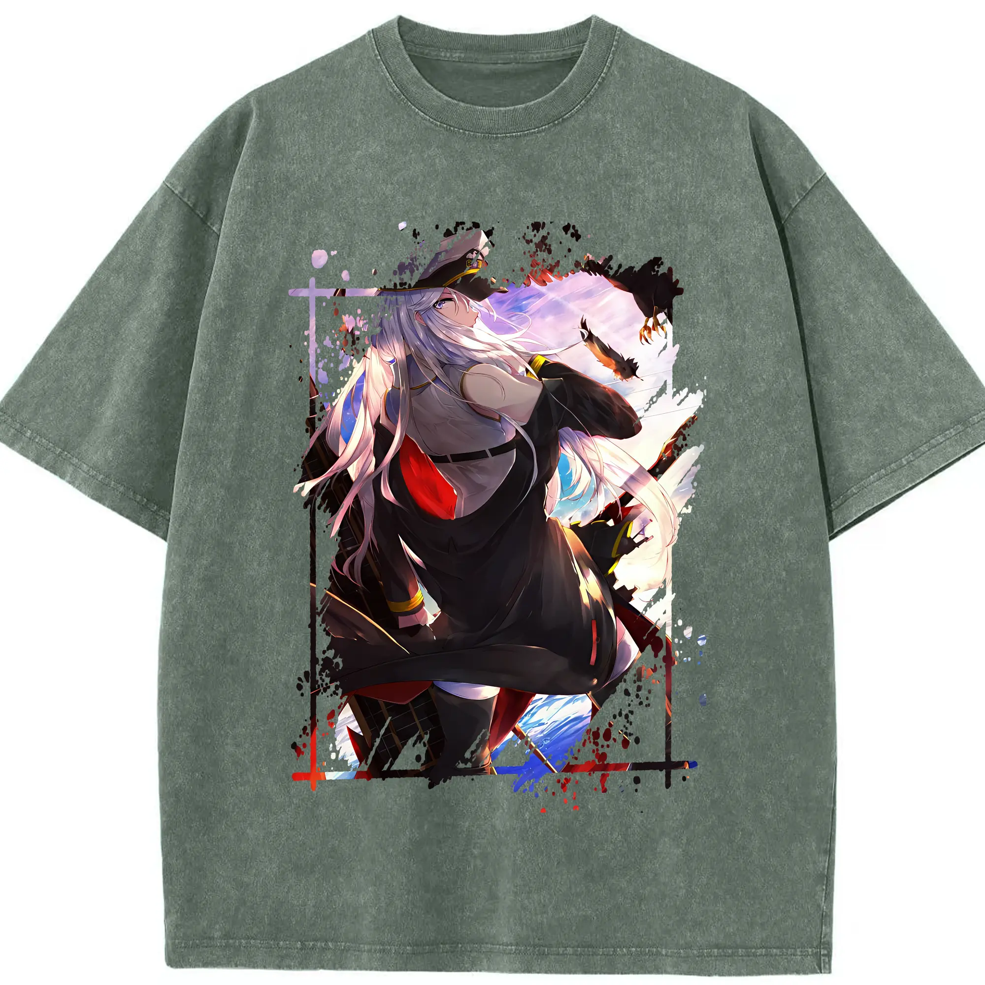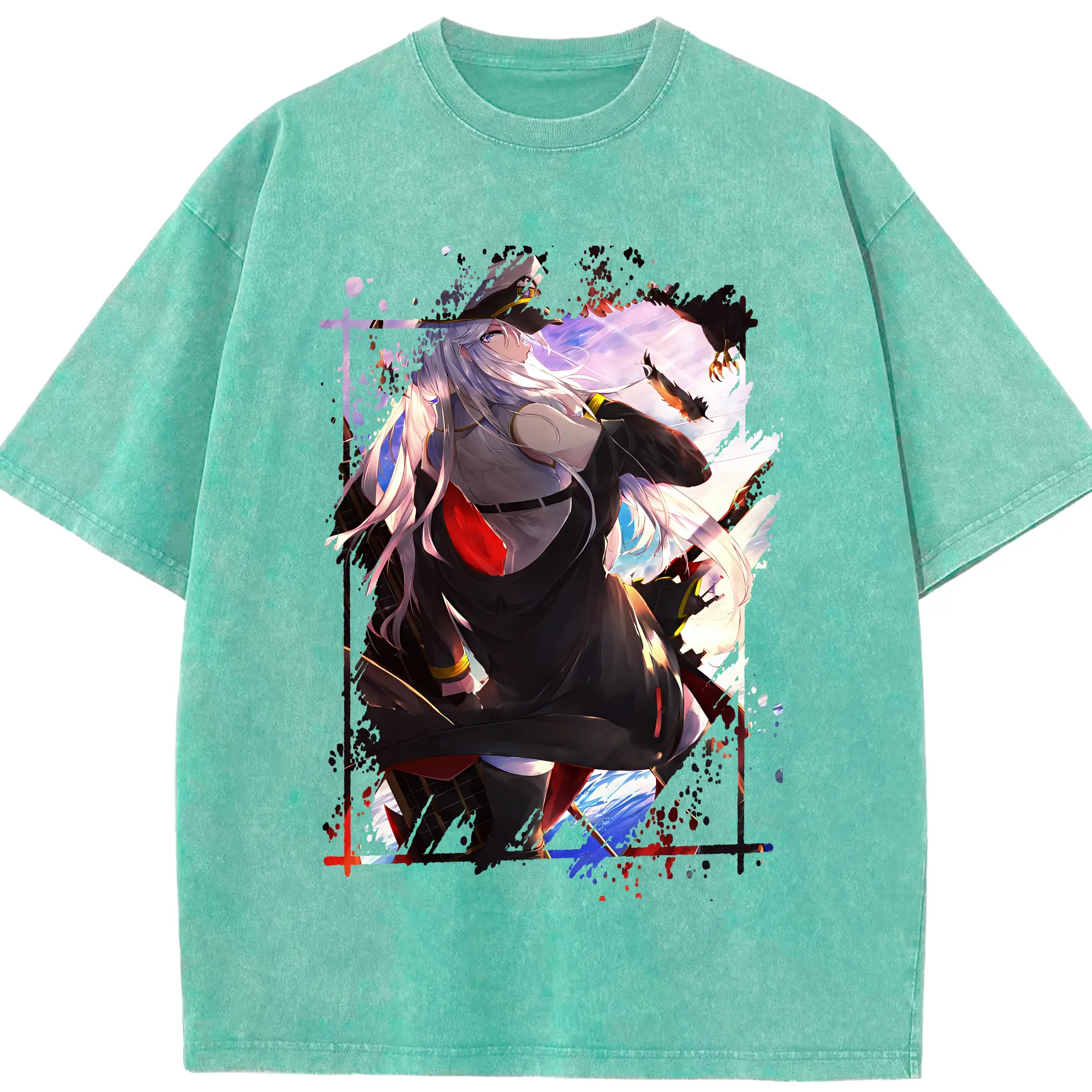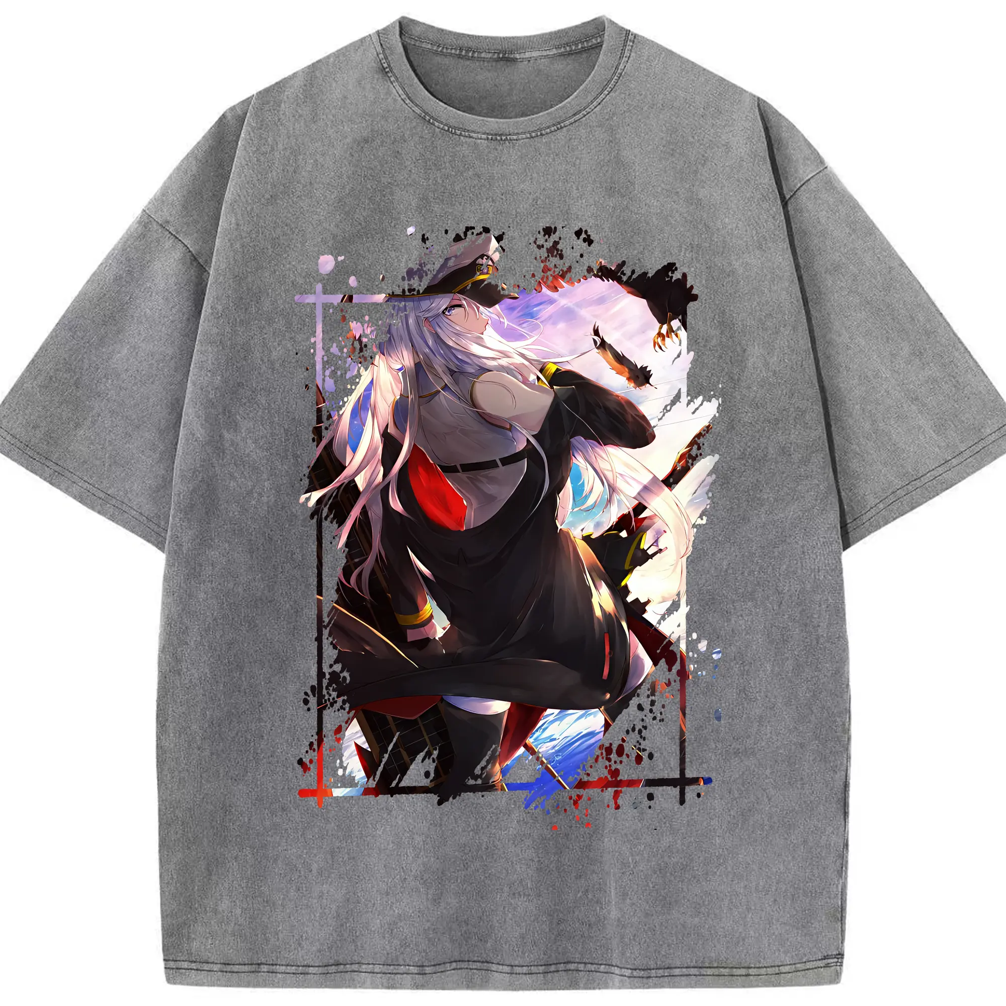 アズールレーン グッズ,エンタープライズ - 綿100% ヴィンテージ風 半袖Tシャツ ・ 背面プリント ・ 柔らか肌触り ・ 通気性 快適 ・ スポーツ カジュアル 外出用