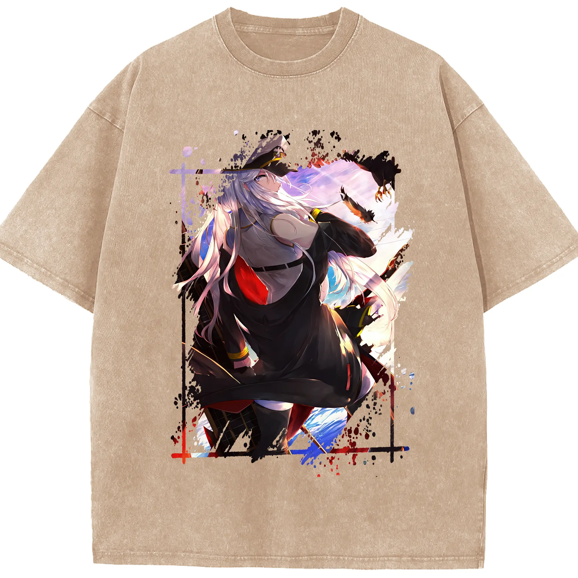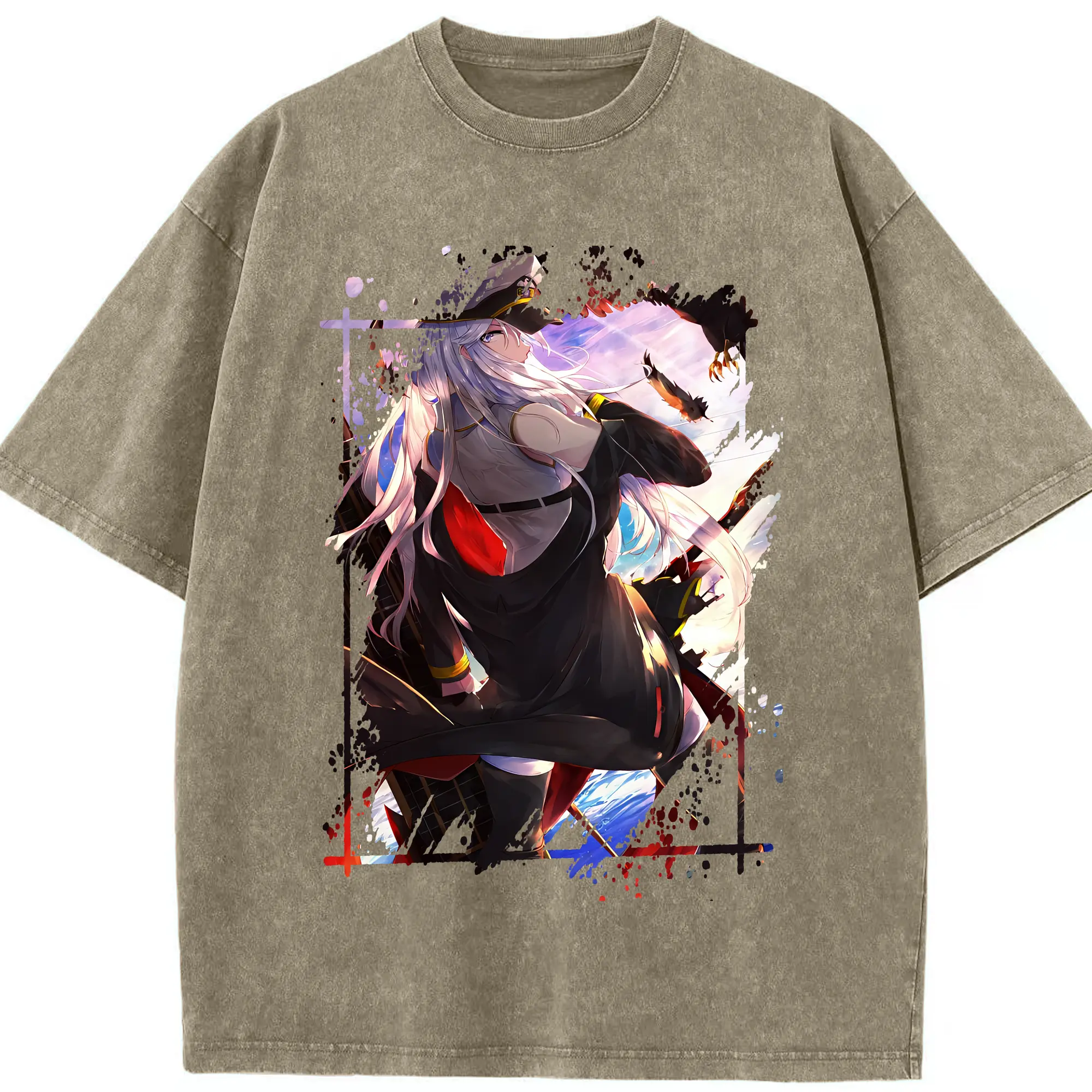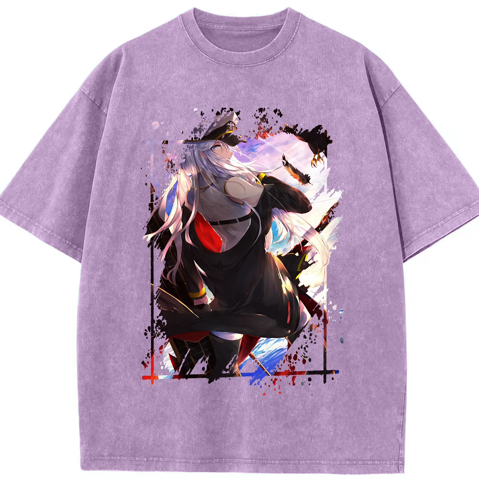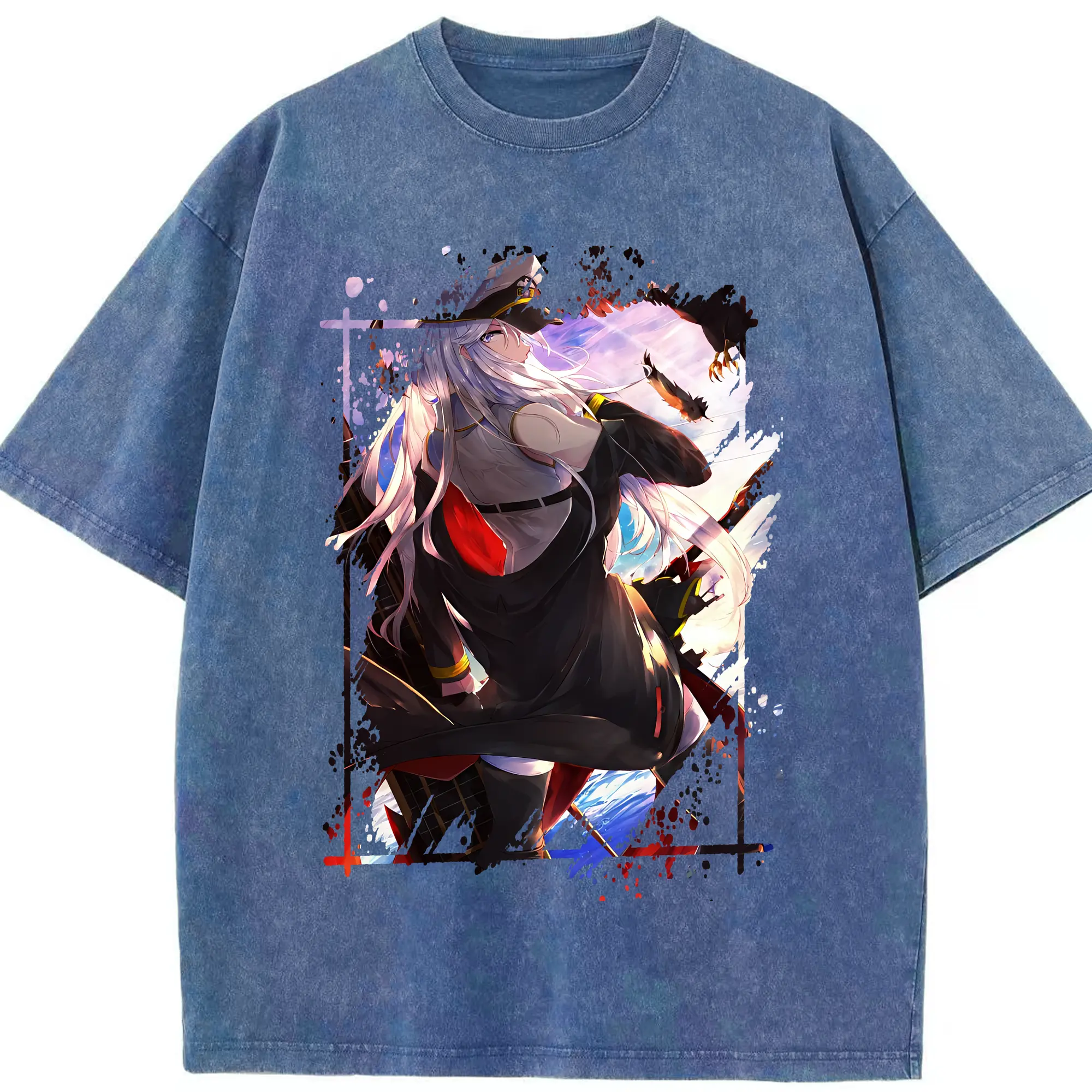 アズールレーン グッズ,エンタープライズ - 綿100% ヴィンテージ風 半袖Tシャツ ・ 背面プリント ・ 柔らか肌触り ・ 通気性 快適 ・ スポーツ カジュアル 外出用