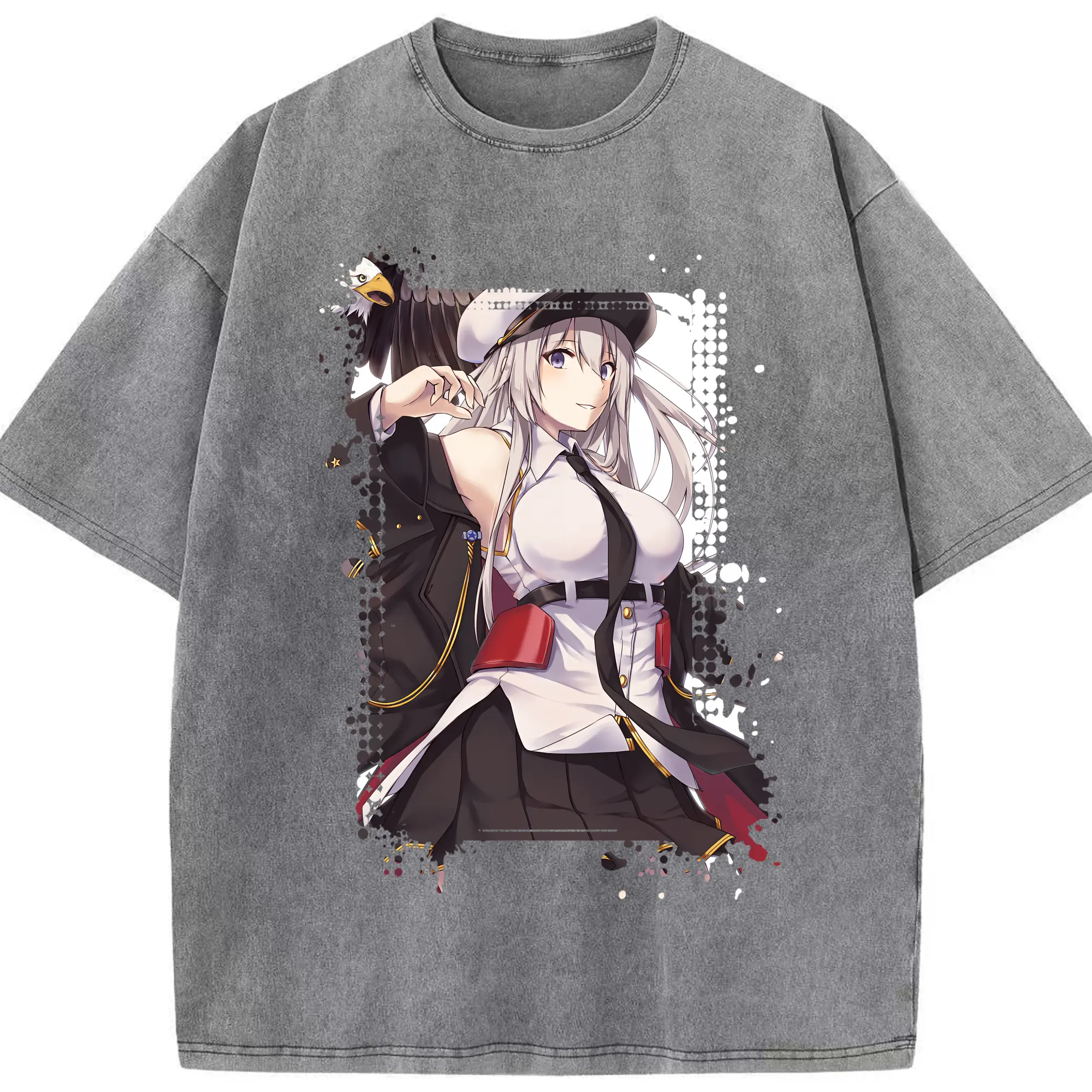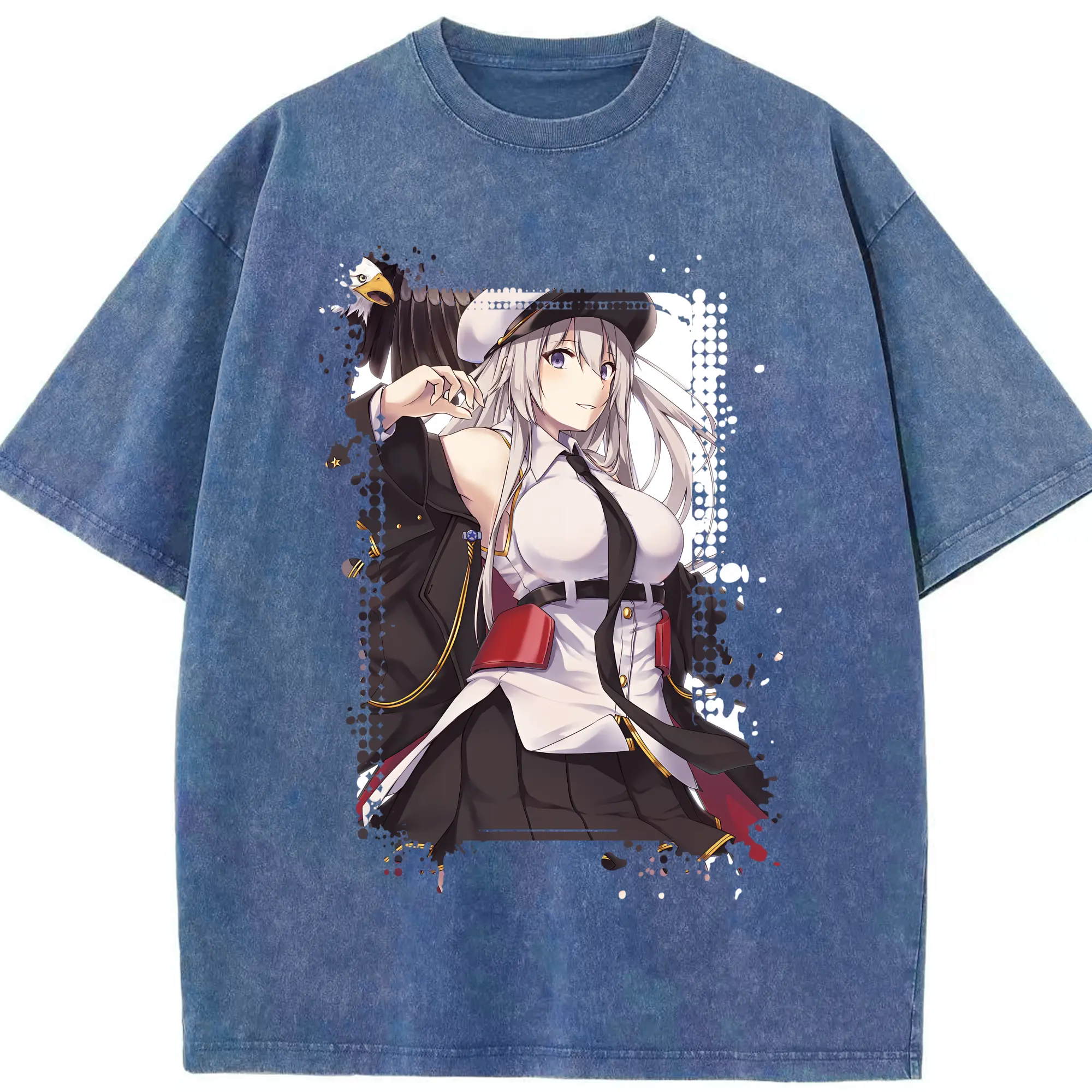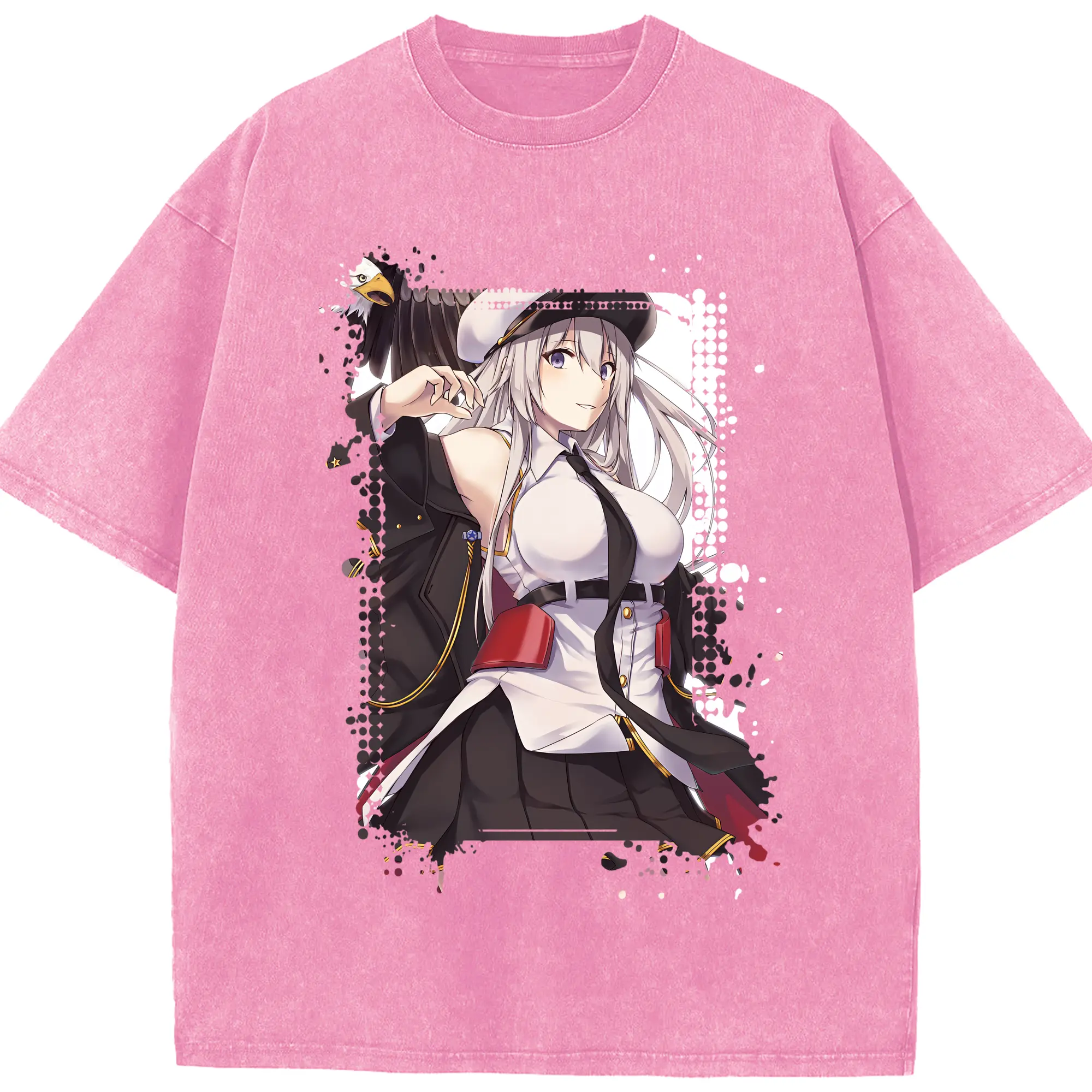 アズールレーン グッズ,エンタープライズ - 綿100% ヴィンテージ風 半袖Tシャツ ・ 背面プリント ・ 柔らか肌触り ・ 通気性 快適 ・ スポーツ カジュアル 外出用