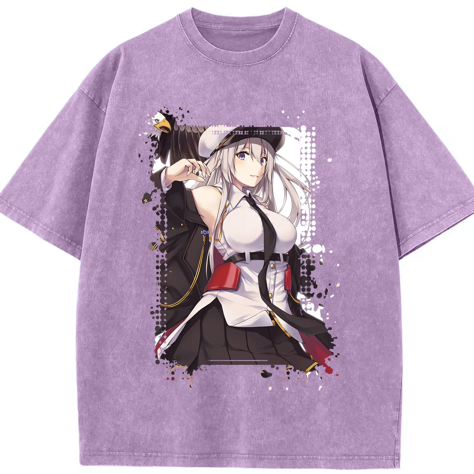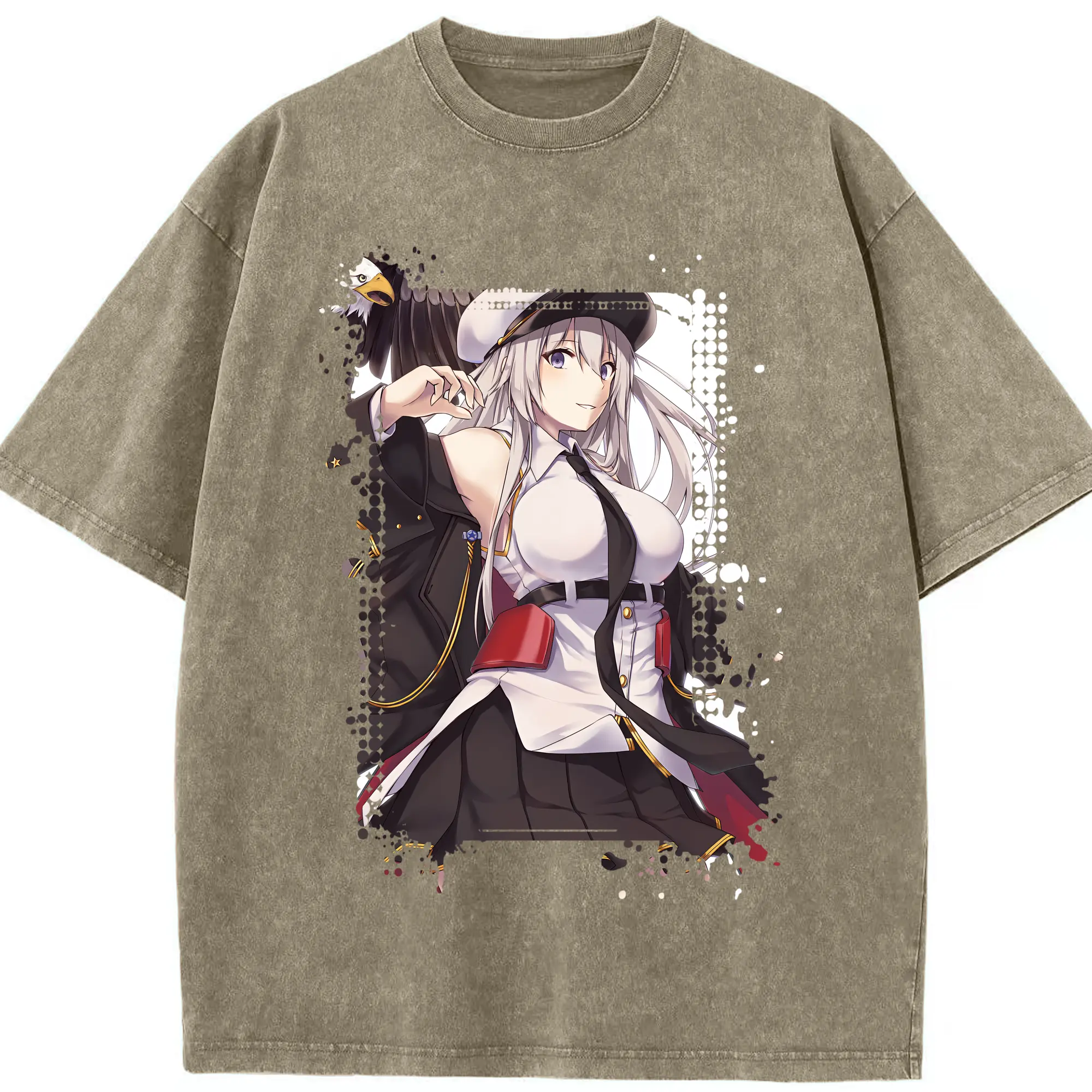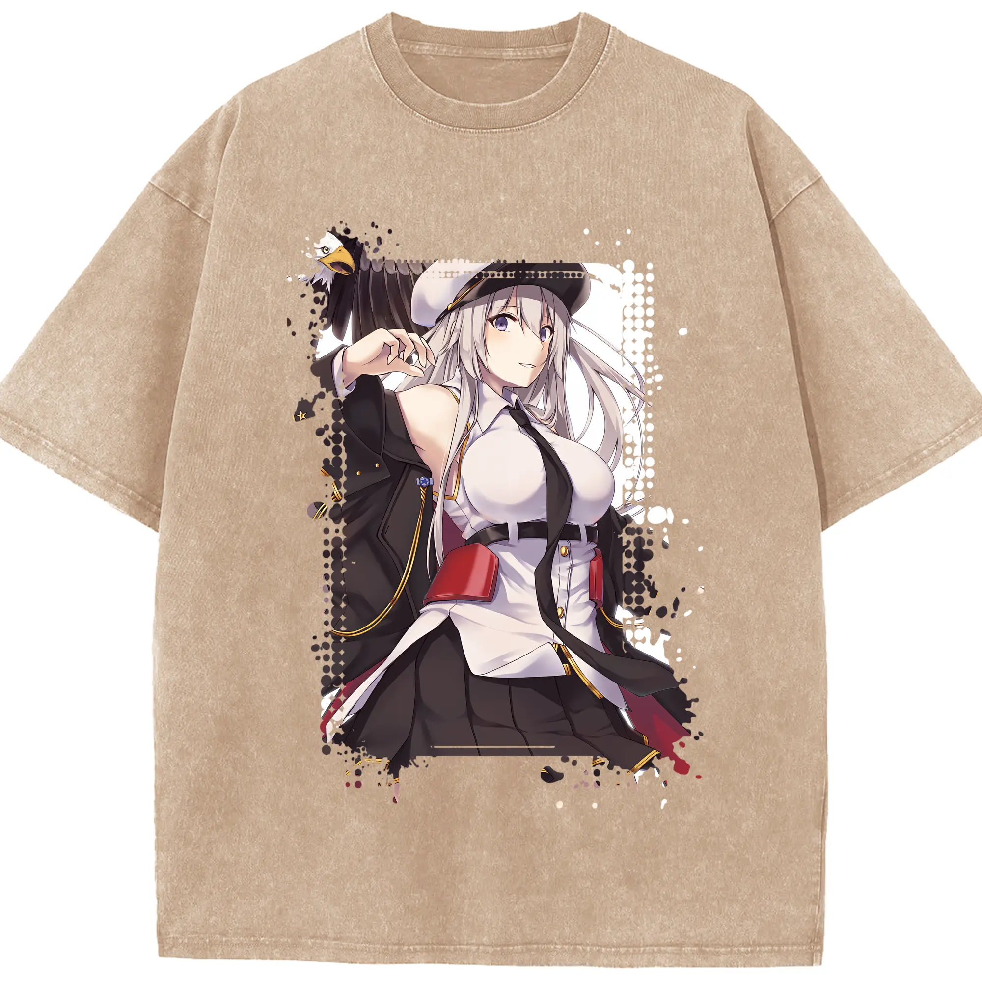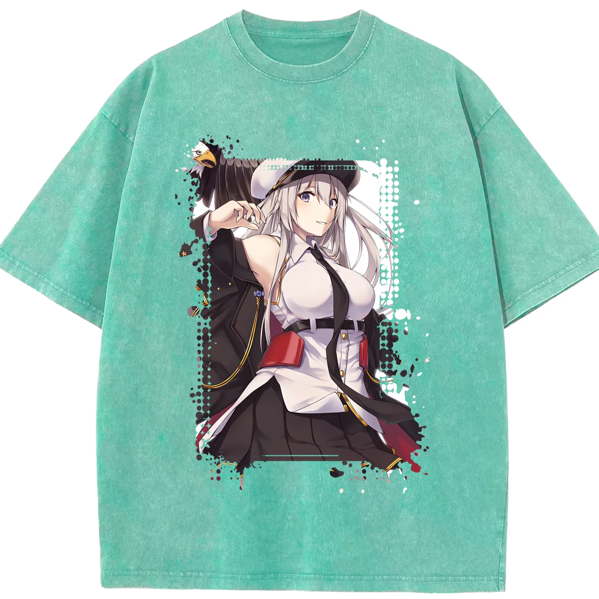アズールレーン グッズ,エンタープライズ - 綿100% ヴィンテージ風 半袖Tシャツ ・ 背面プリント ・ 柔らか肌触り ・ 通気性 快適 ・ スポーツ カジュアル 外出用