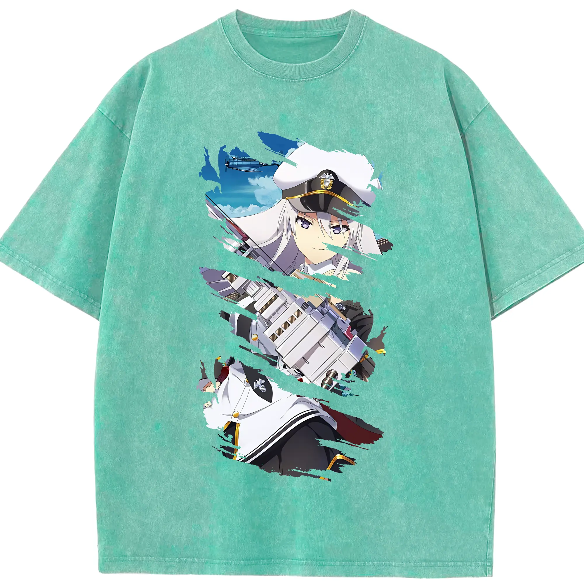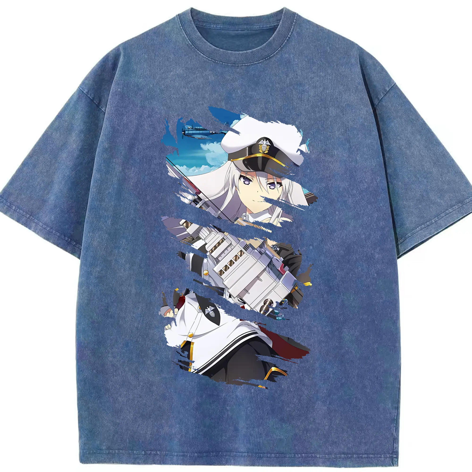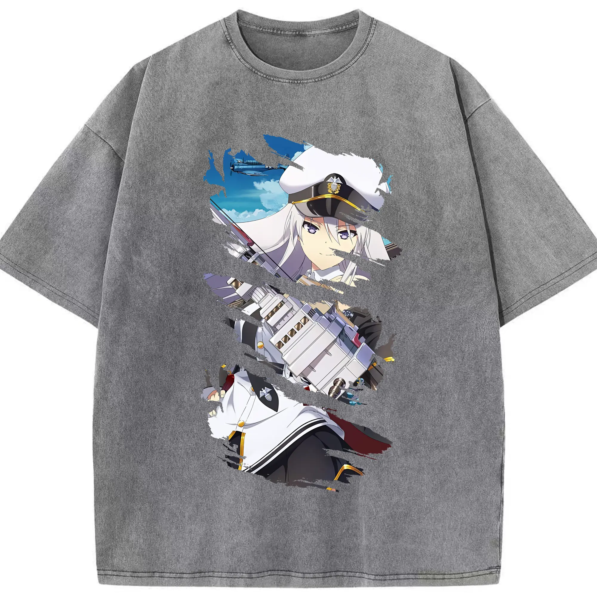アズールレーン グッズ,エンタープライズ - 綿100% ヴィンテージ風 半袖Tシャツ ・ 背面プリント ・ 柔らか肌触り ・ 通気性 快適 ・ スポーツ カジュアル 外出用