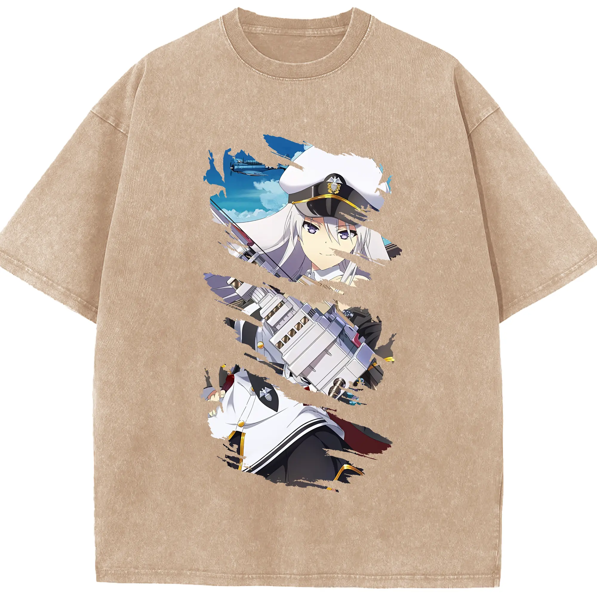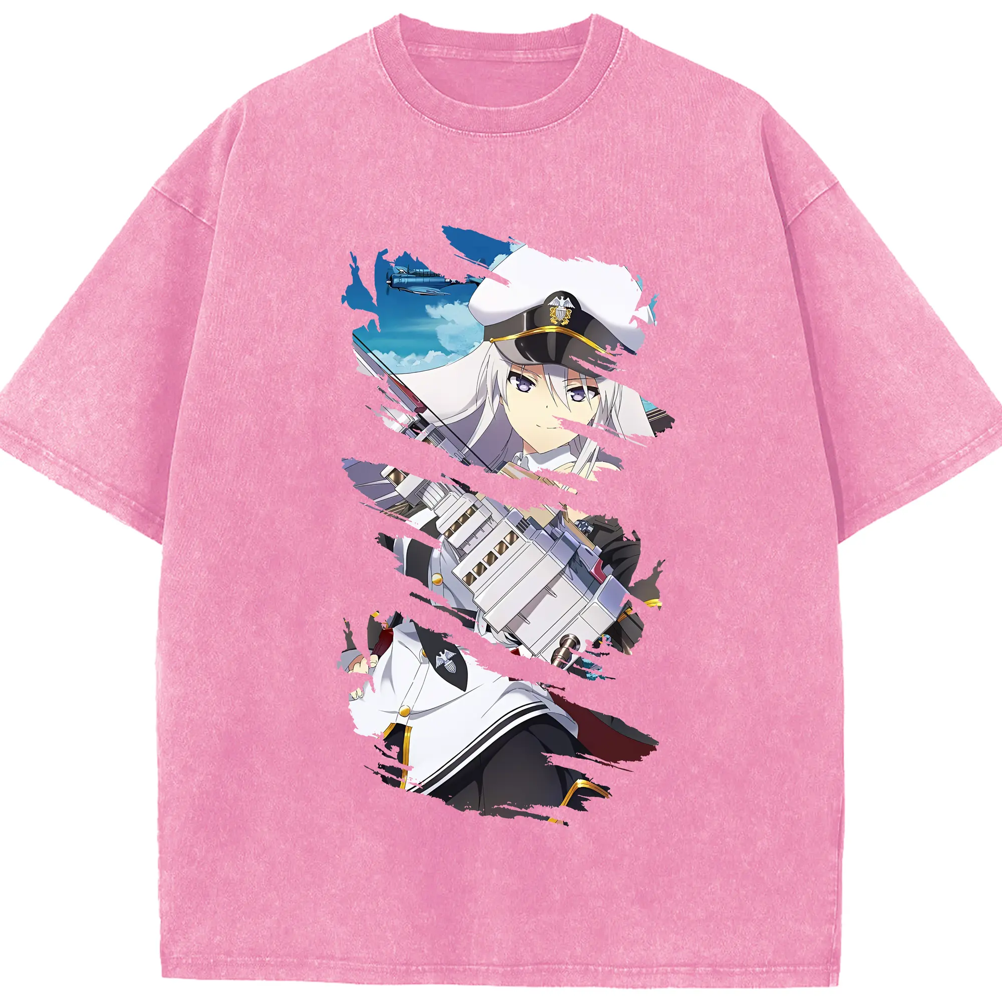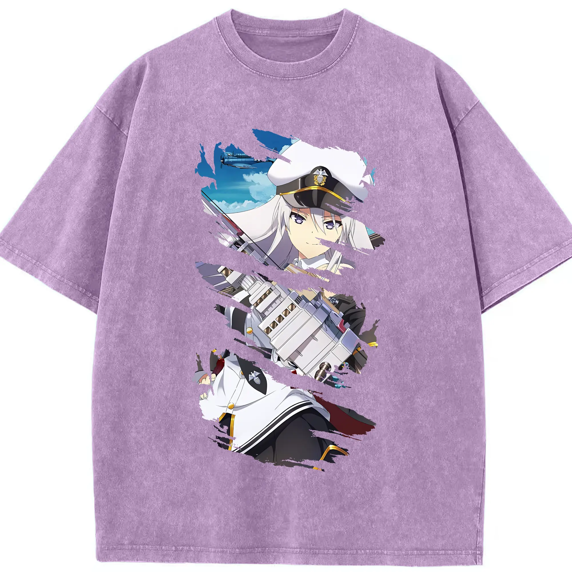 アズールレーン グッズ,エンタープライズ - 綿100% ヴィンテージ風 半袖Tシャツ ・ 背面プリント ・ 柔らか肌触り ・ 通気性 快適 ・ スポーツ カジュアル 外出用