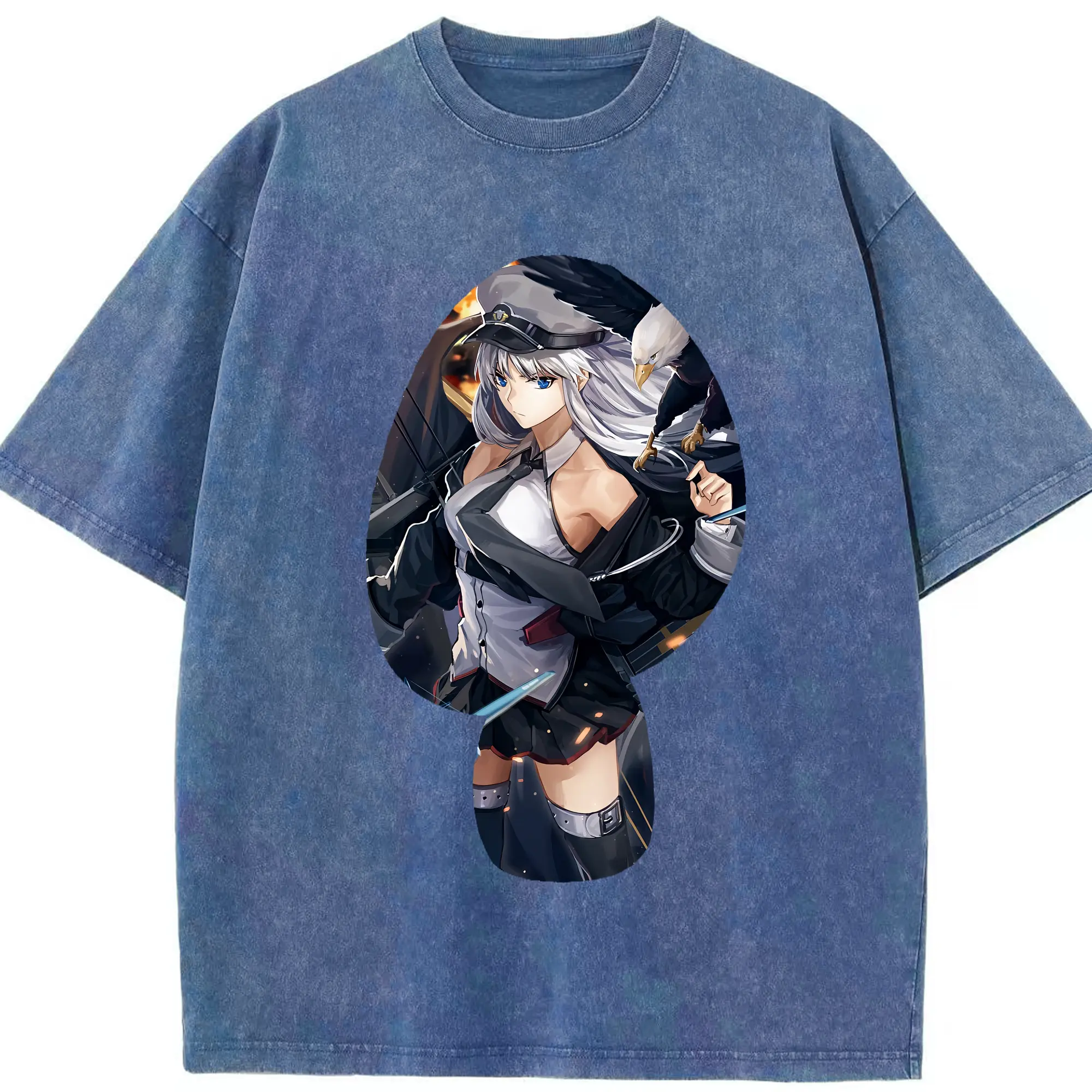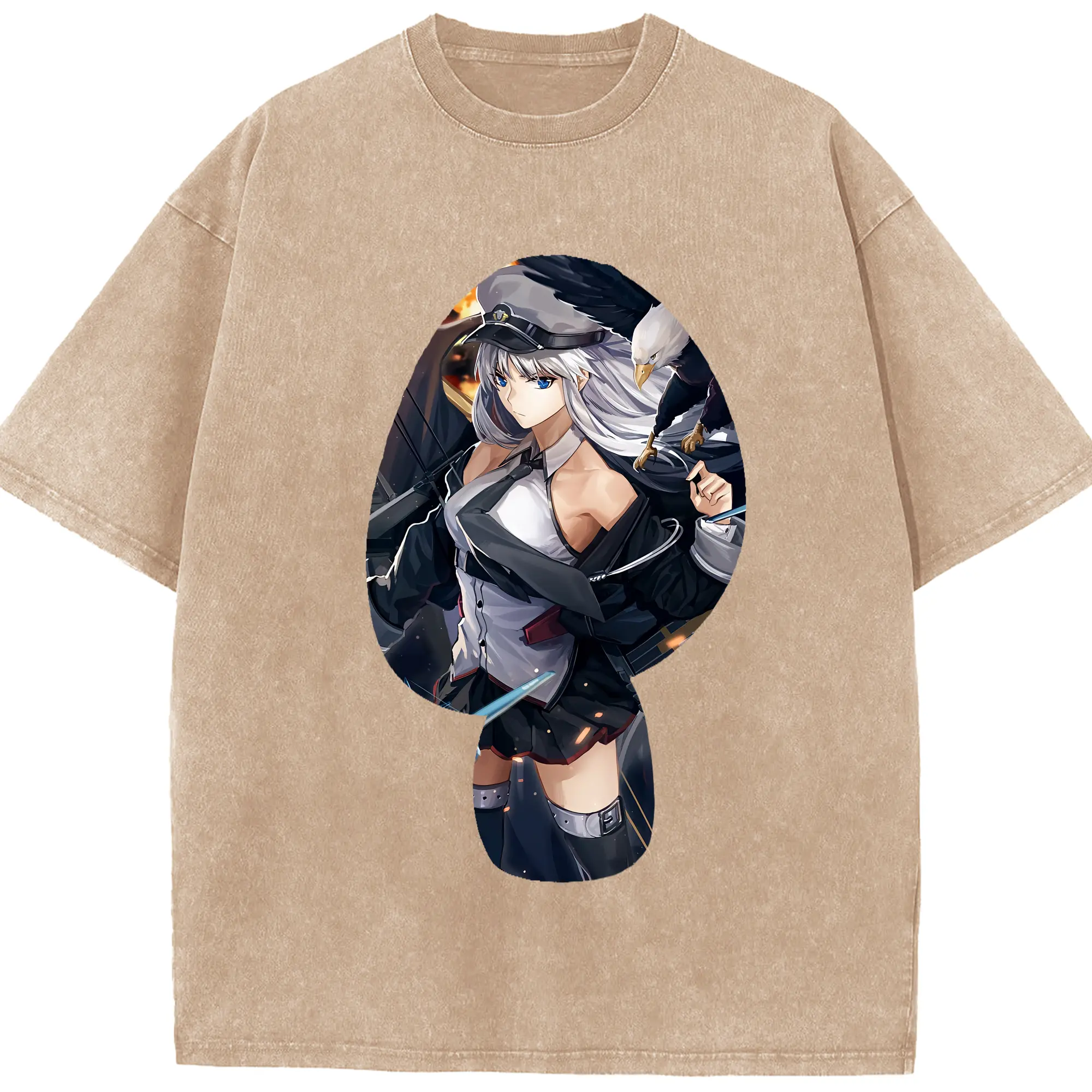 アズールレーン グッズ,エンタープライズ - 綿100% ヴィンテージ風 半袖Tシャツ ・ 背面プリント ・ 柔らか肌触り ・ 通気性 快適 ・ スポーツ カジュアル 外出用