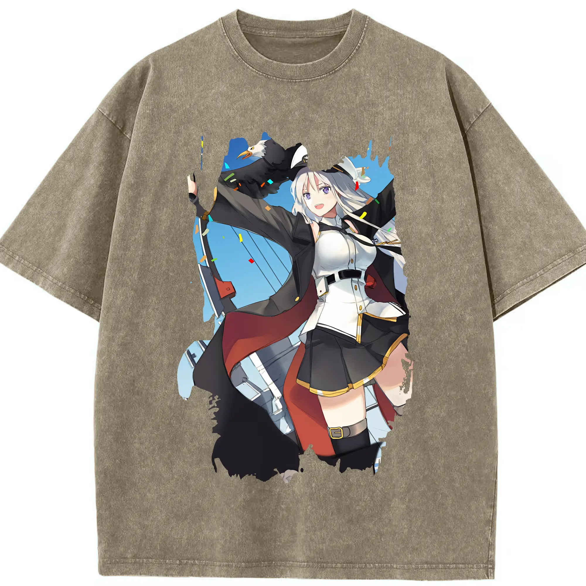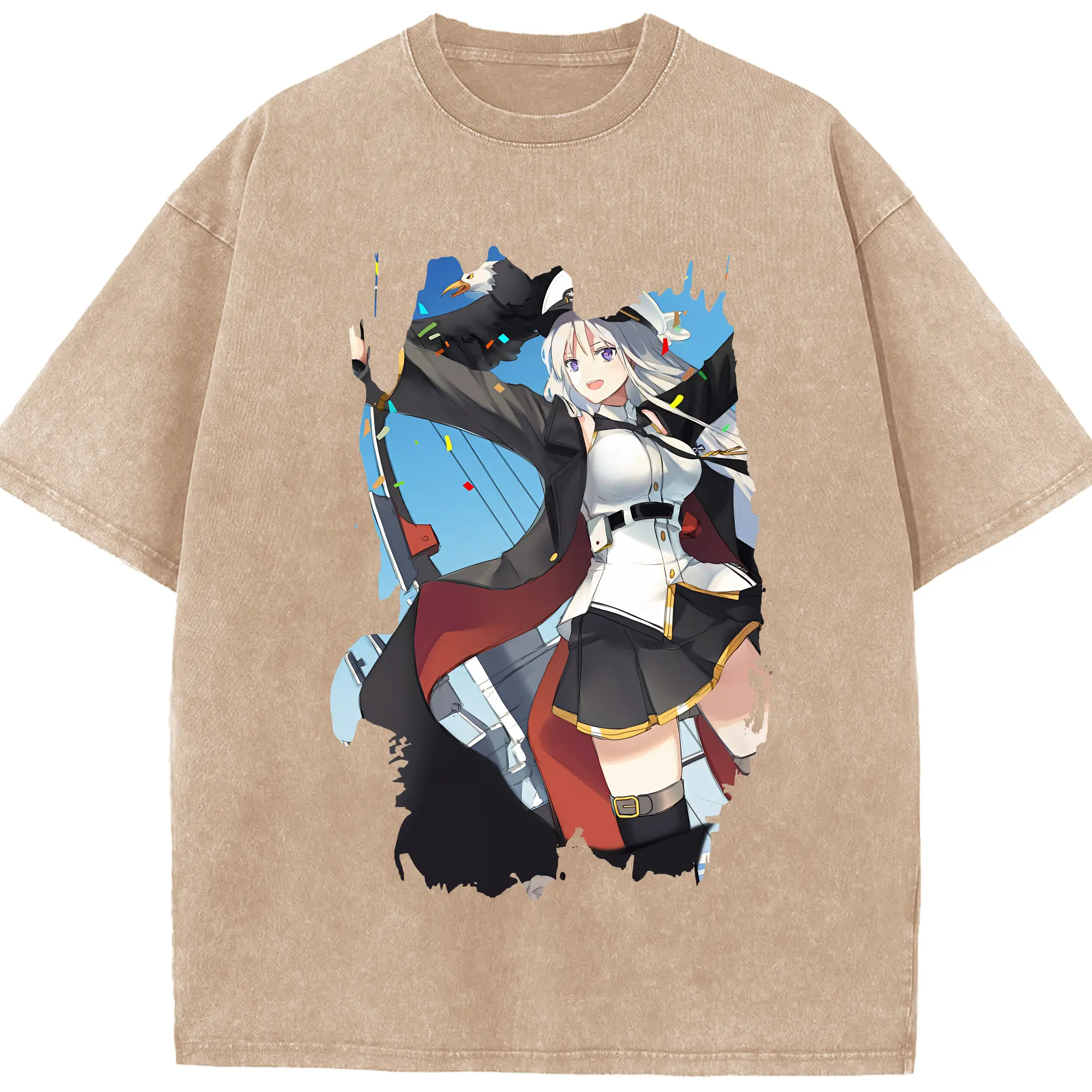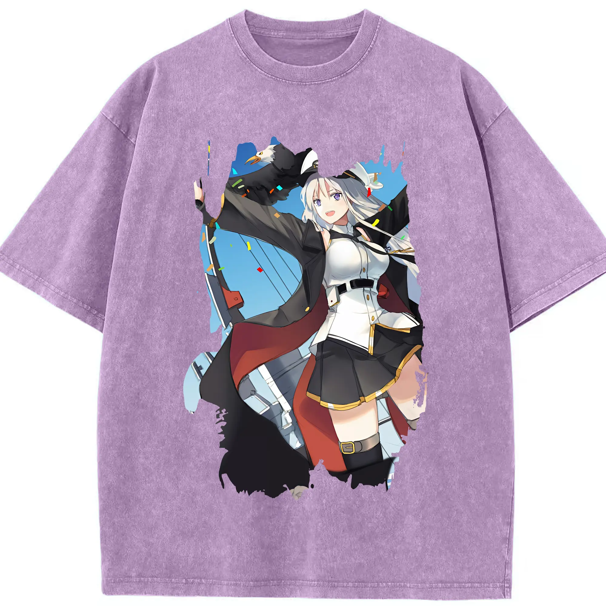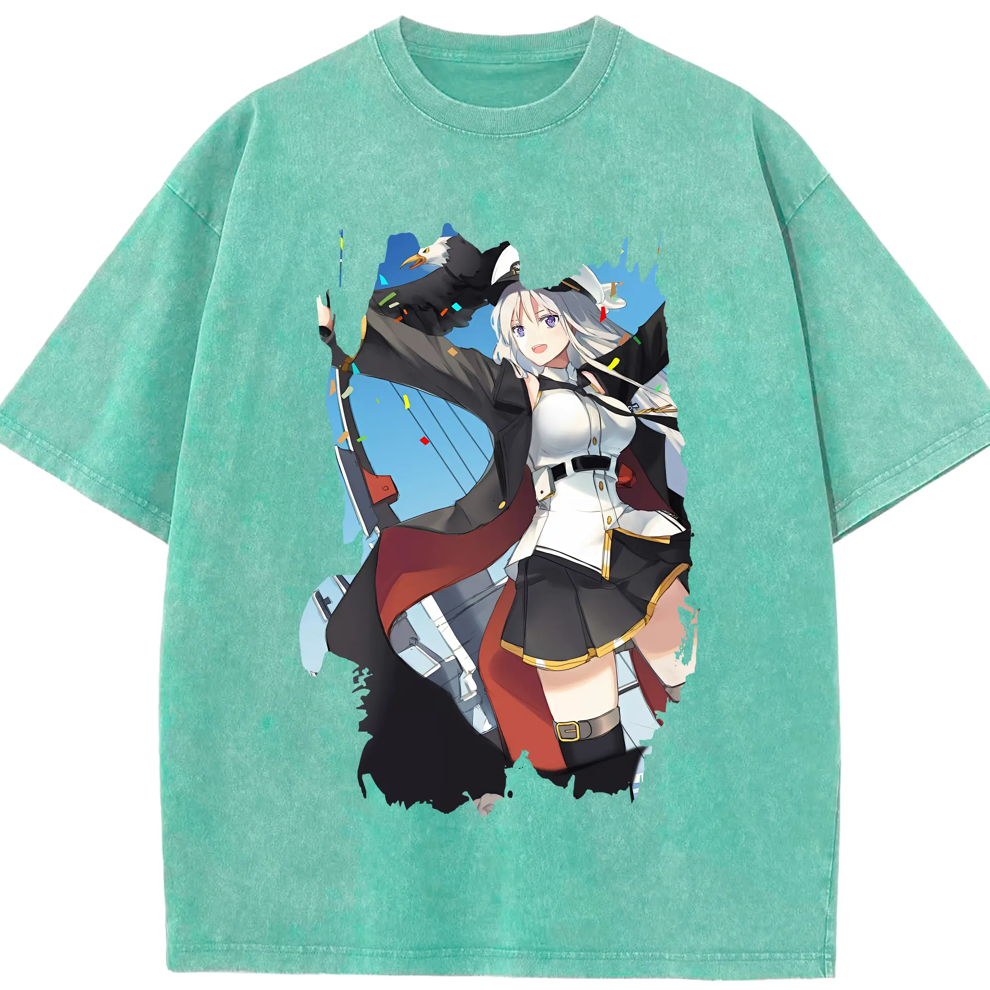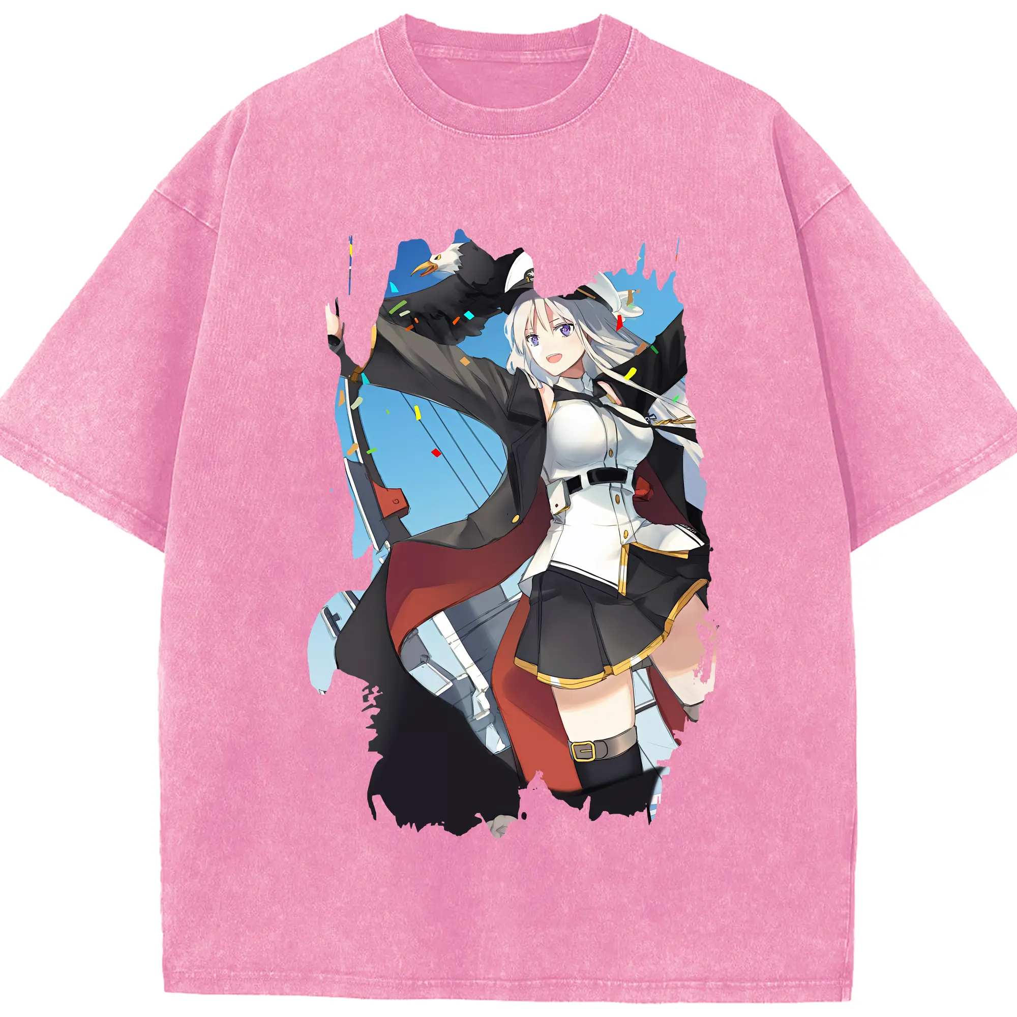 アズールレーン グッズ,エンタープライズ - 綿100% ヴィンテージ風 半袖Tシャツ ・ 背面プリント ・ 柔らか肌触り ・ 通気性 快適 ・ スポーツ カジュアル 外出用