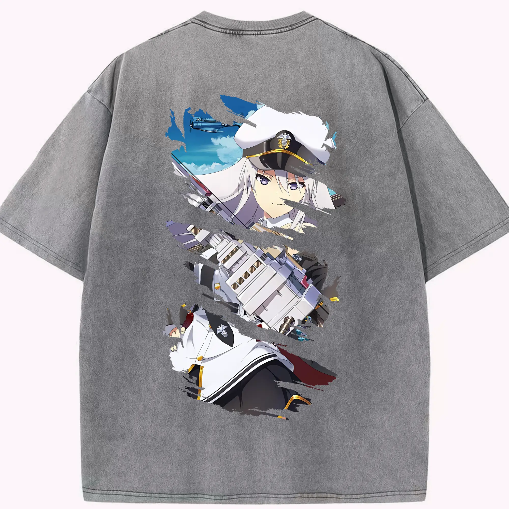 アズールレーン グッズ,エンタープライズ - 綿100% ヴィンテージ風 半袖Tシャツ ・ フロントプリント ・ 柔らか肌触り ・ 通気性 快適 ・ スポーツ カジュアル 外出用