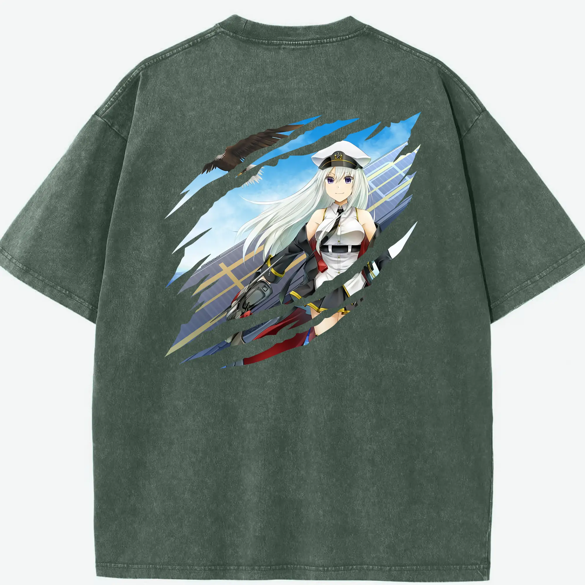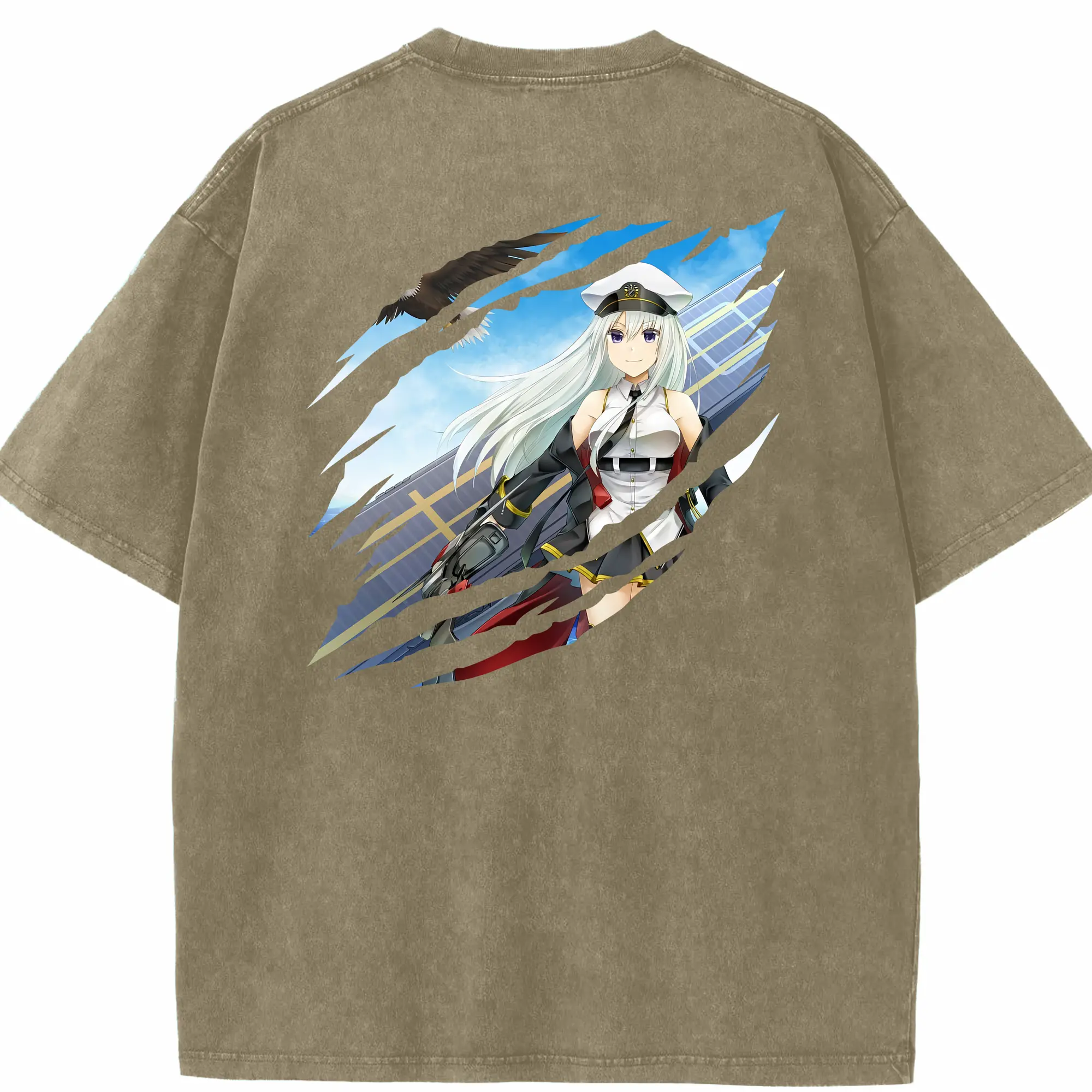 アズールレーン グッズ,エンタープライズ - 綿100% ヴィンテージ風 半袖Tシャツ ・ フロントプリント ・ 柔らか肌触り ・ 通気性 快適 ・ スポーツ カジュアル 外出用