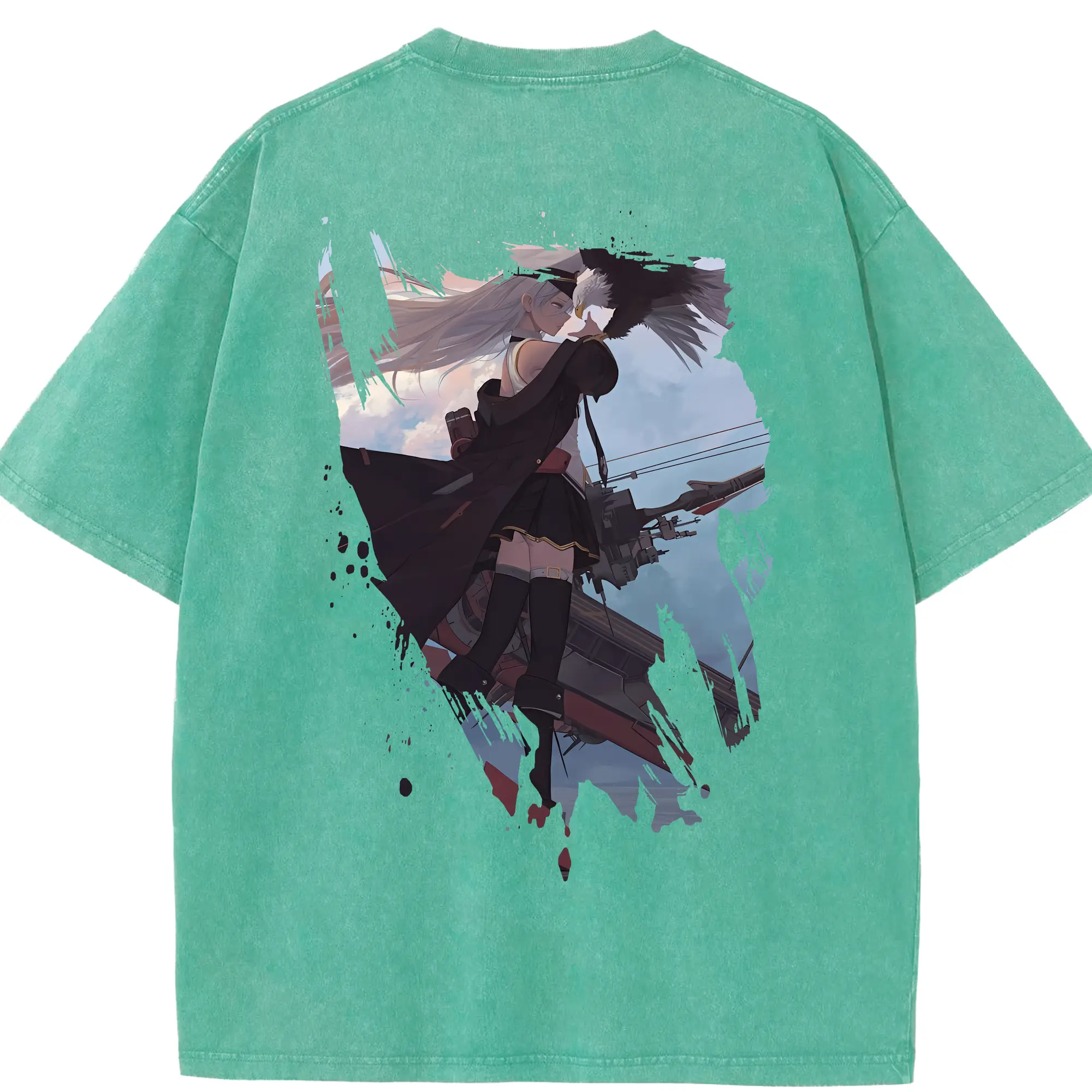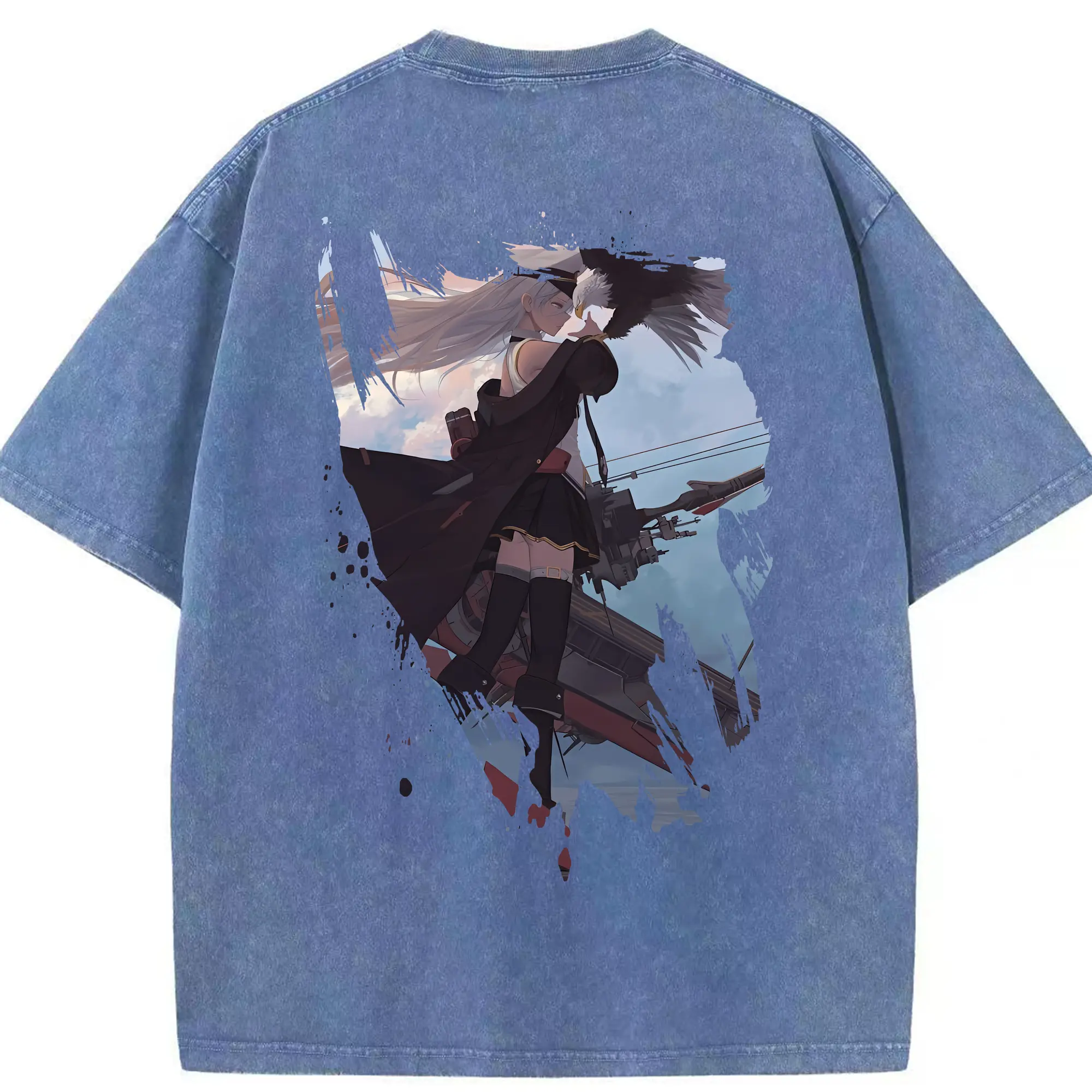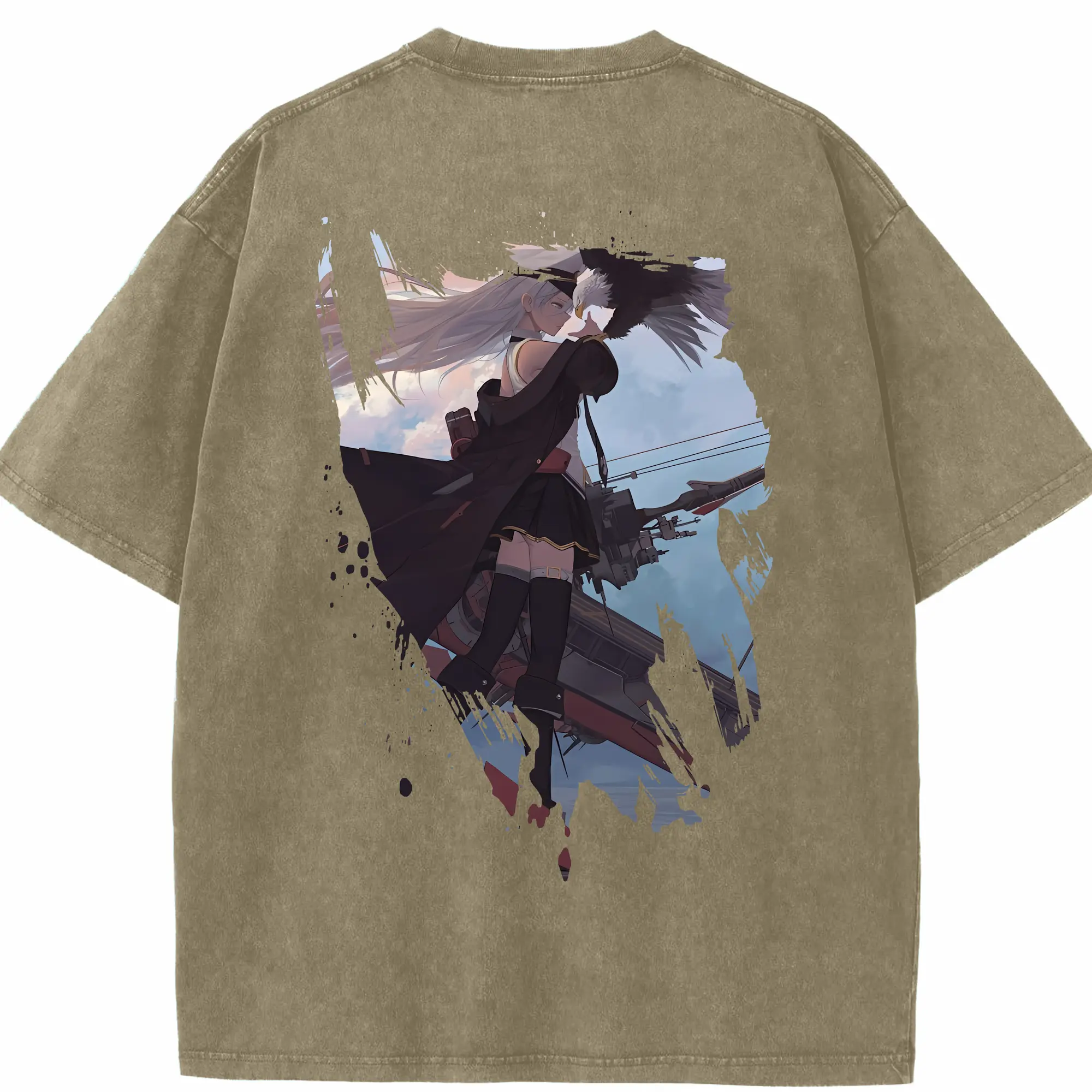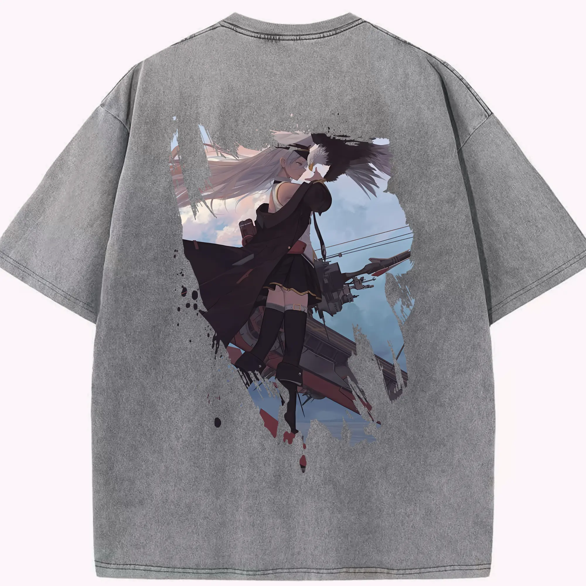 アズールレーン グッズ,エンタープライズ - 綿100% ヴィンテージ風 半袖Tシャツ ・ フロントプリント ・ 柔らか肌触り ・ 通気性 快適 ・ スポーツ カジュアル 外出用