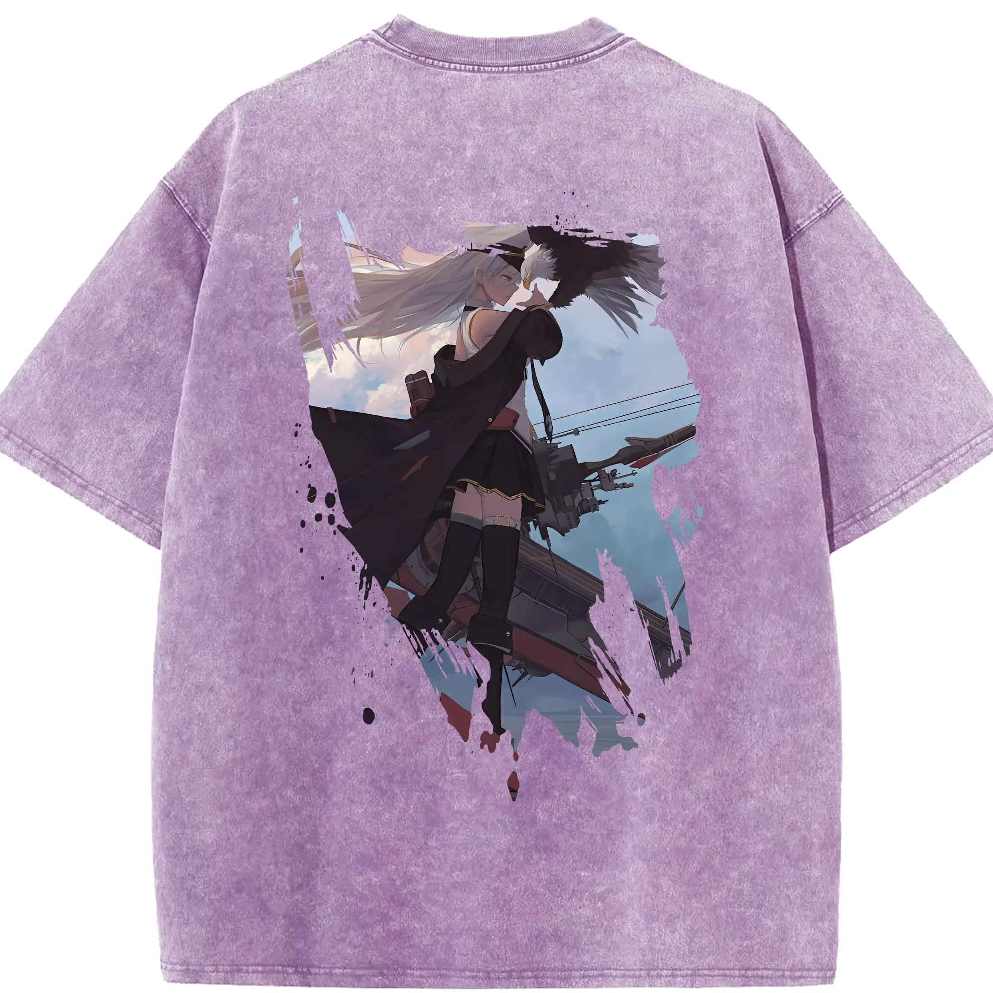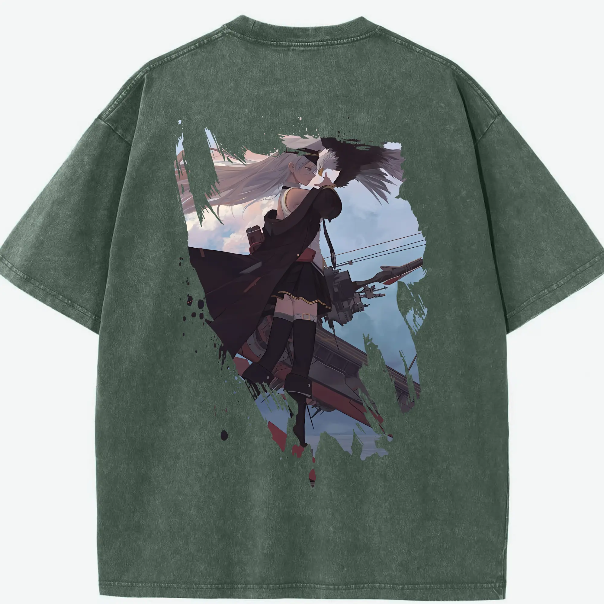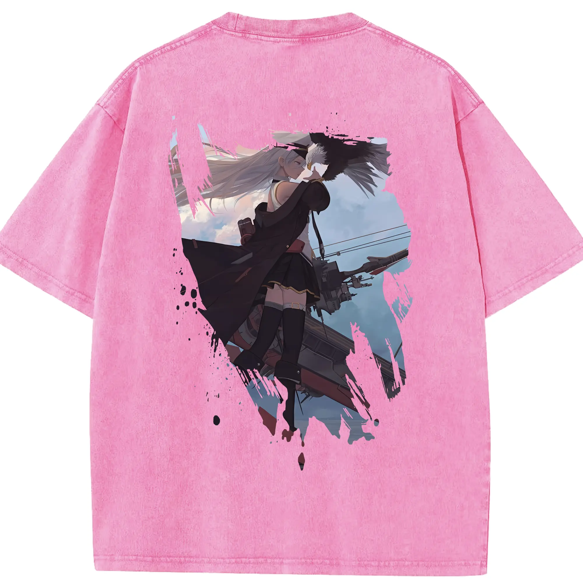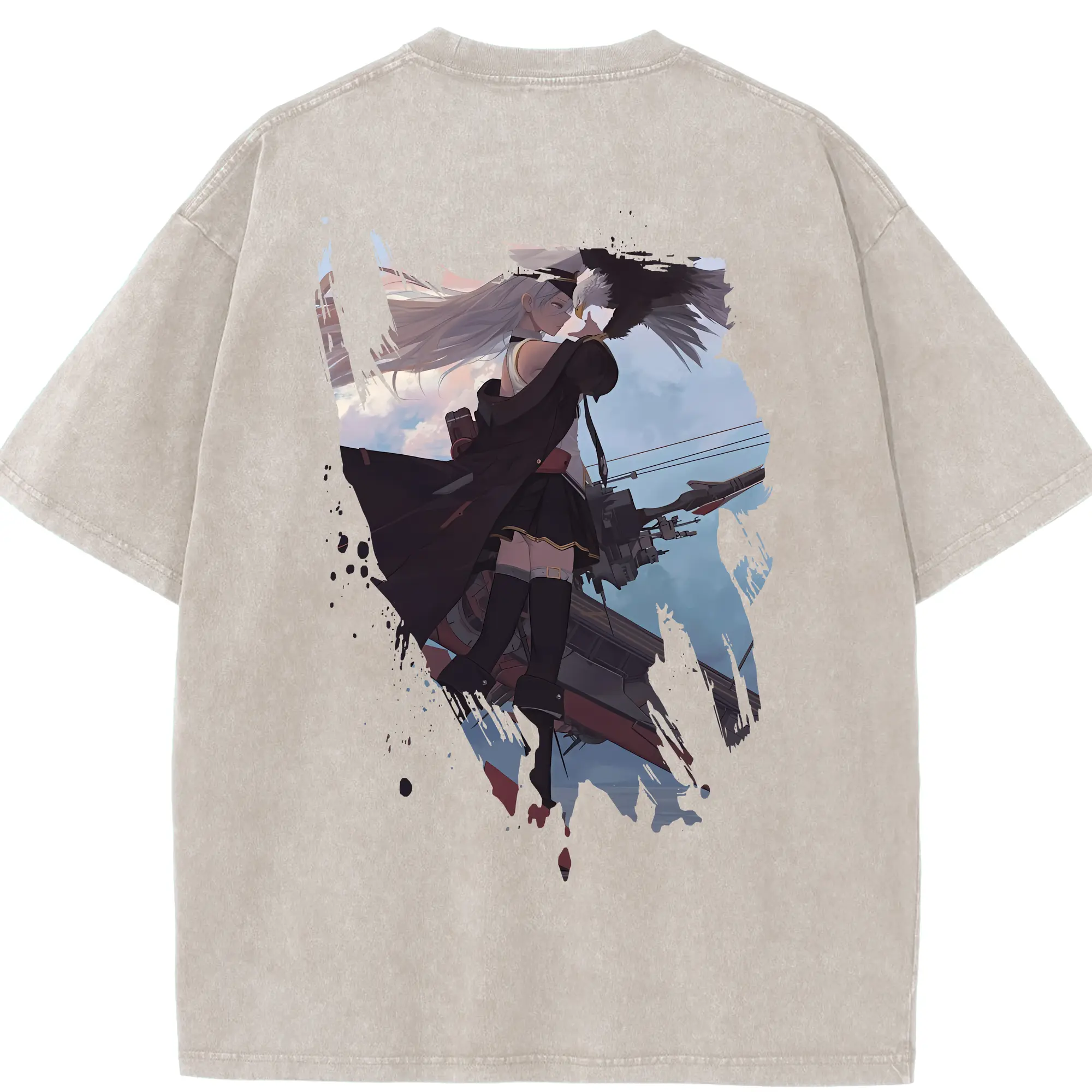 アズールレーン グッズ,エンタープライズ - 綿100% ヴィンテージ風 半袖Tシャツ ・ フロントプリント ・ 柔らか肌触り ・ 通気性 快適 ・ スポーツ カジュアル 外出用