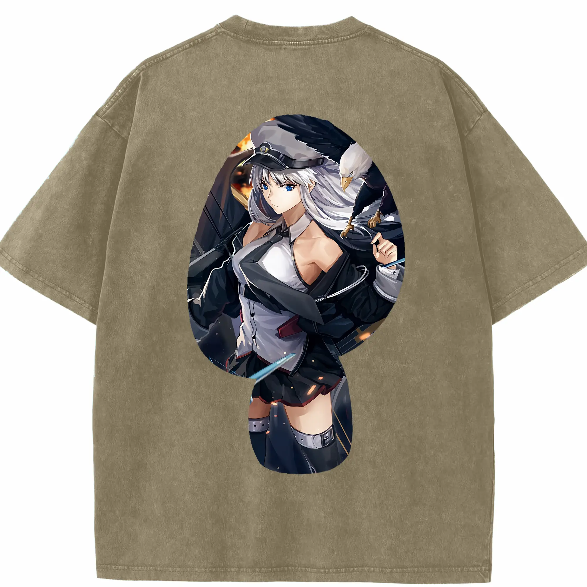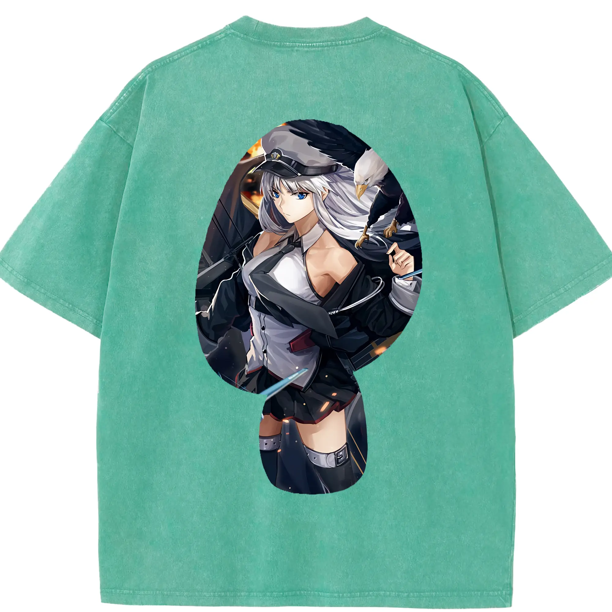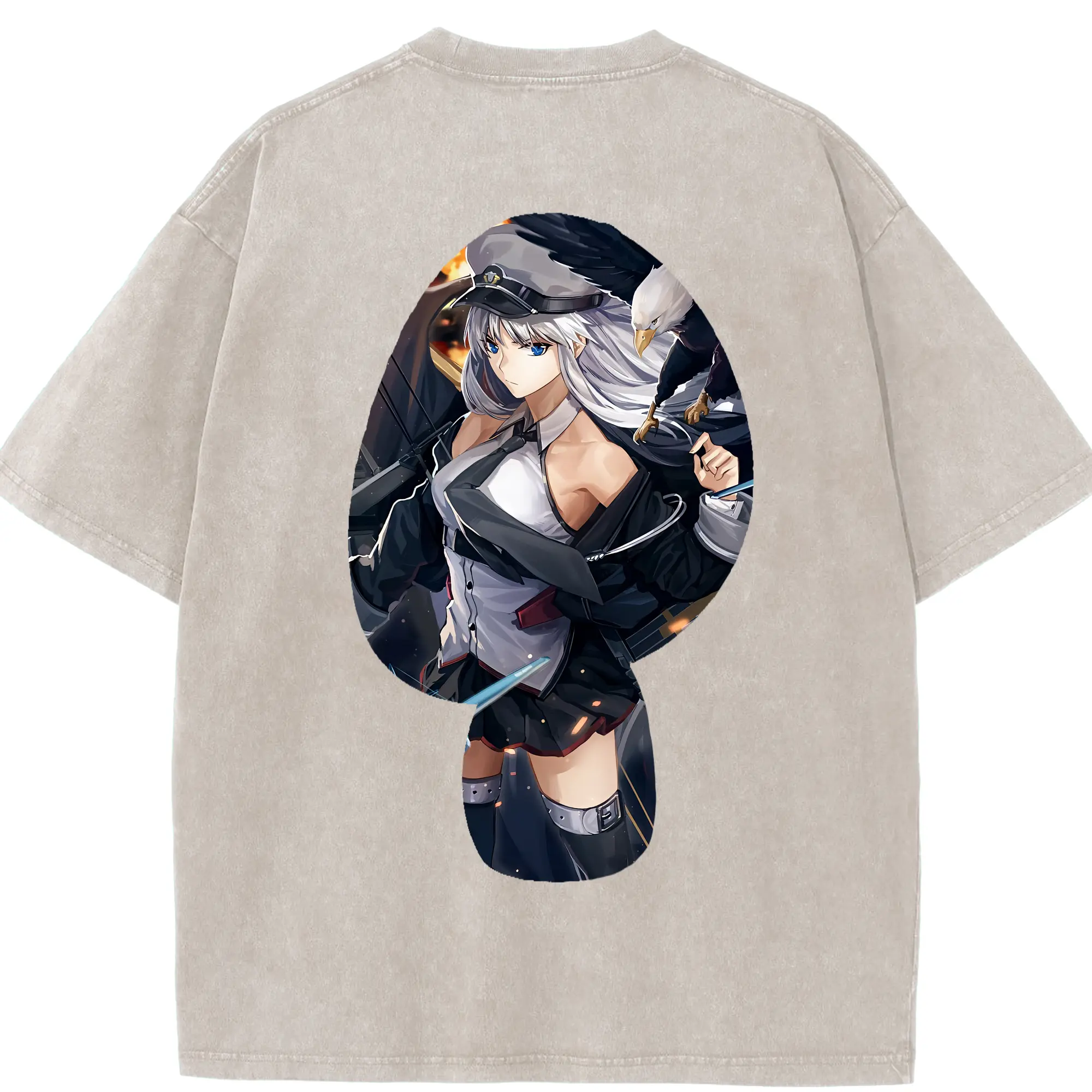 アズールレーン グッズ,エンタープライズ - 綿100% ヴィンテージ風 半袖Tシャツ ・ フロントプリント ・ 柔らか肌触り ・ 通気性 快適 ・ スポーツ カジュアル 外出用