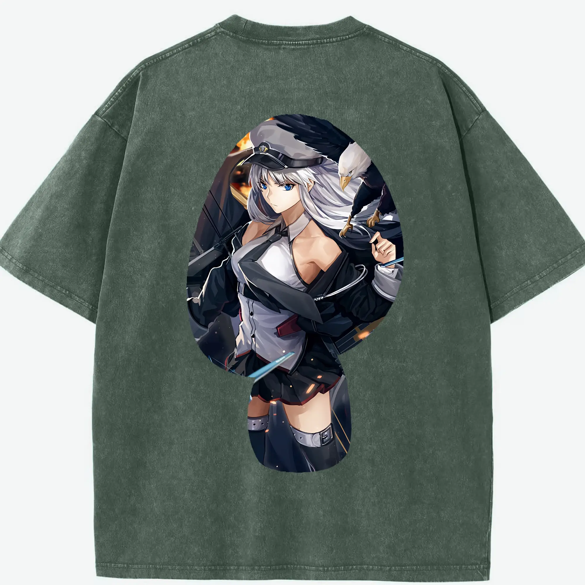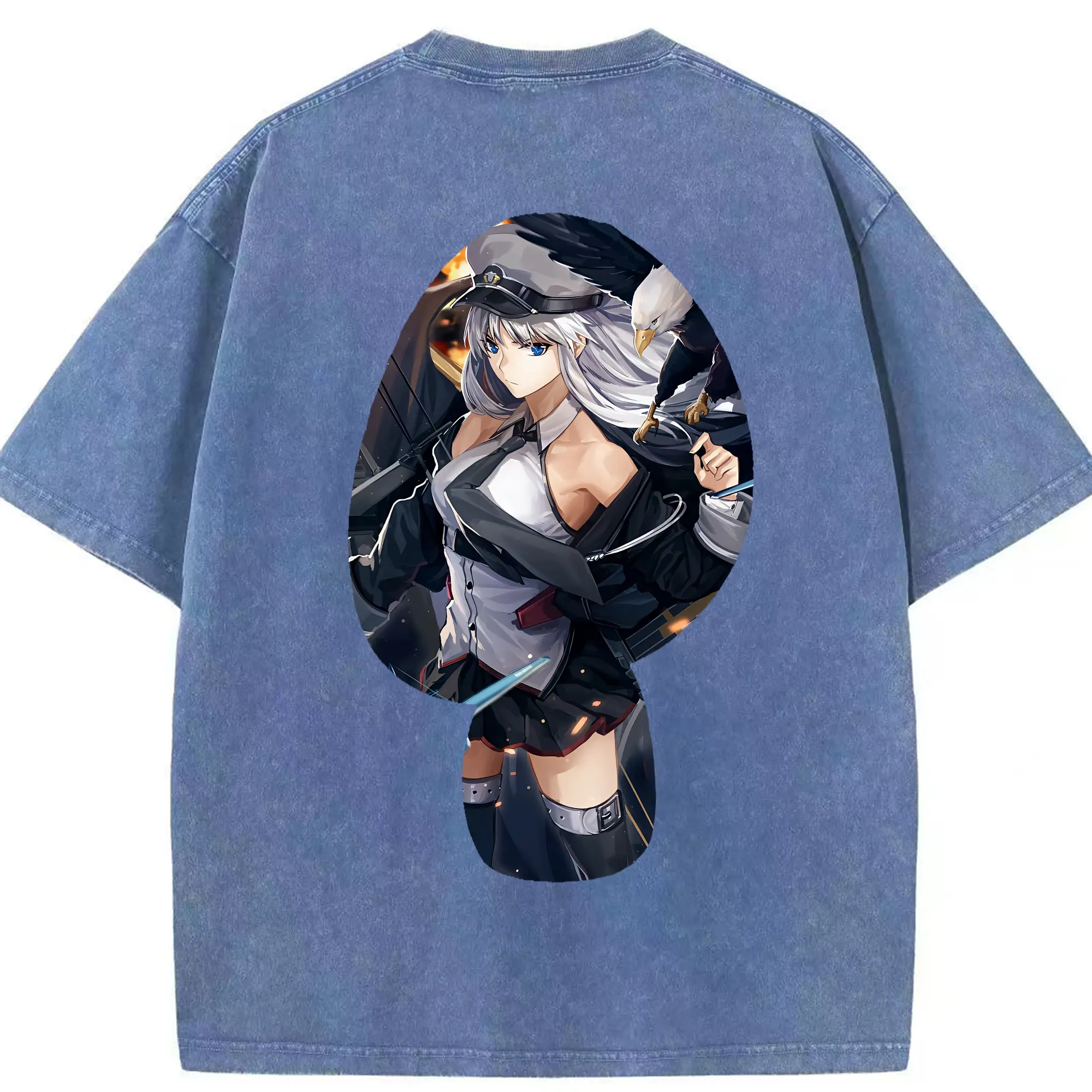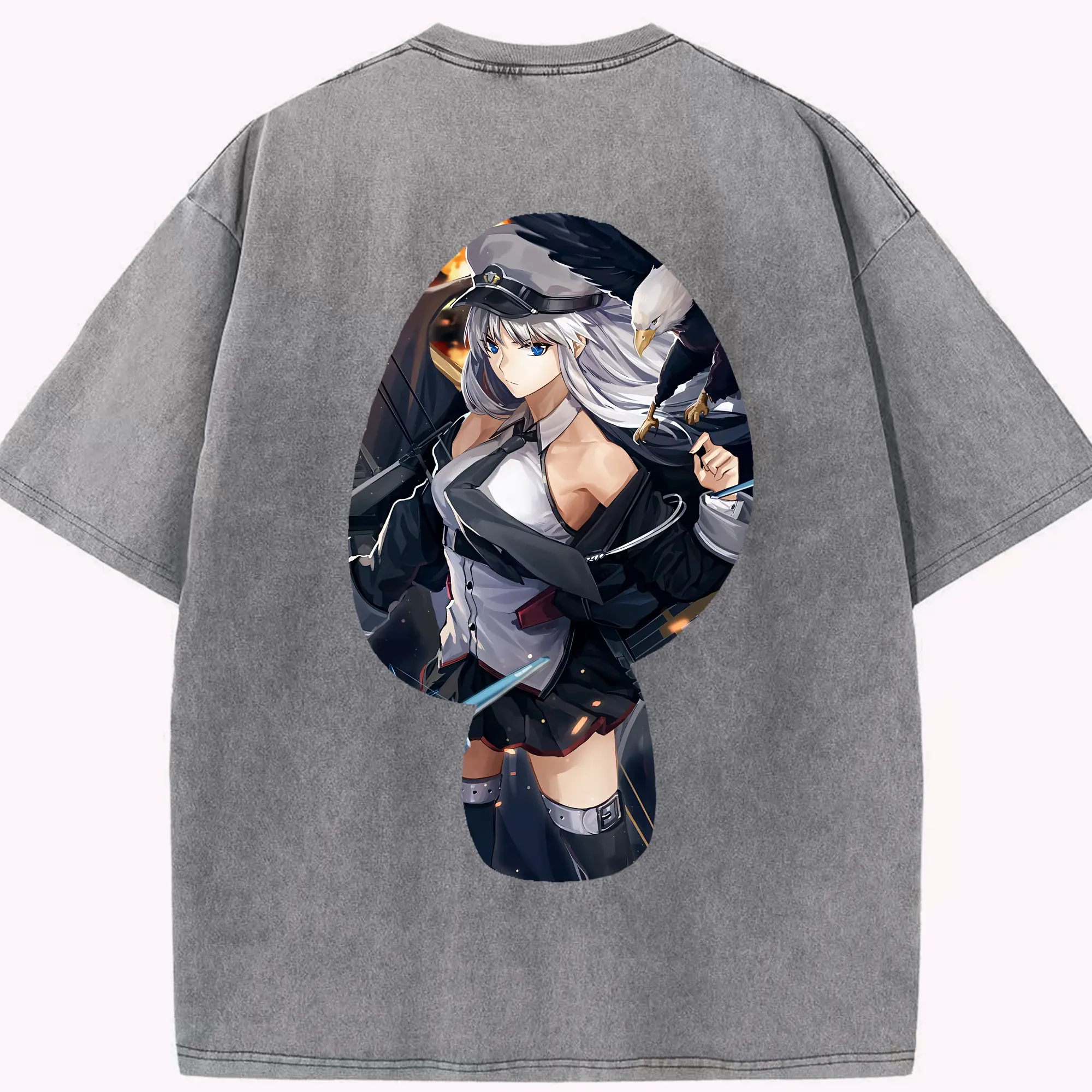アズールレーン グッズ,エンタープライズ - 綿100% ヴィンテージ風 半袖Tシャツ ・ フロントプリント ・ 柔らか肌触り ・ 通気性 快適 ・ スポーツ カジュアル 外出用