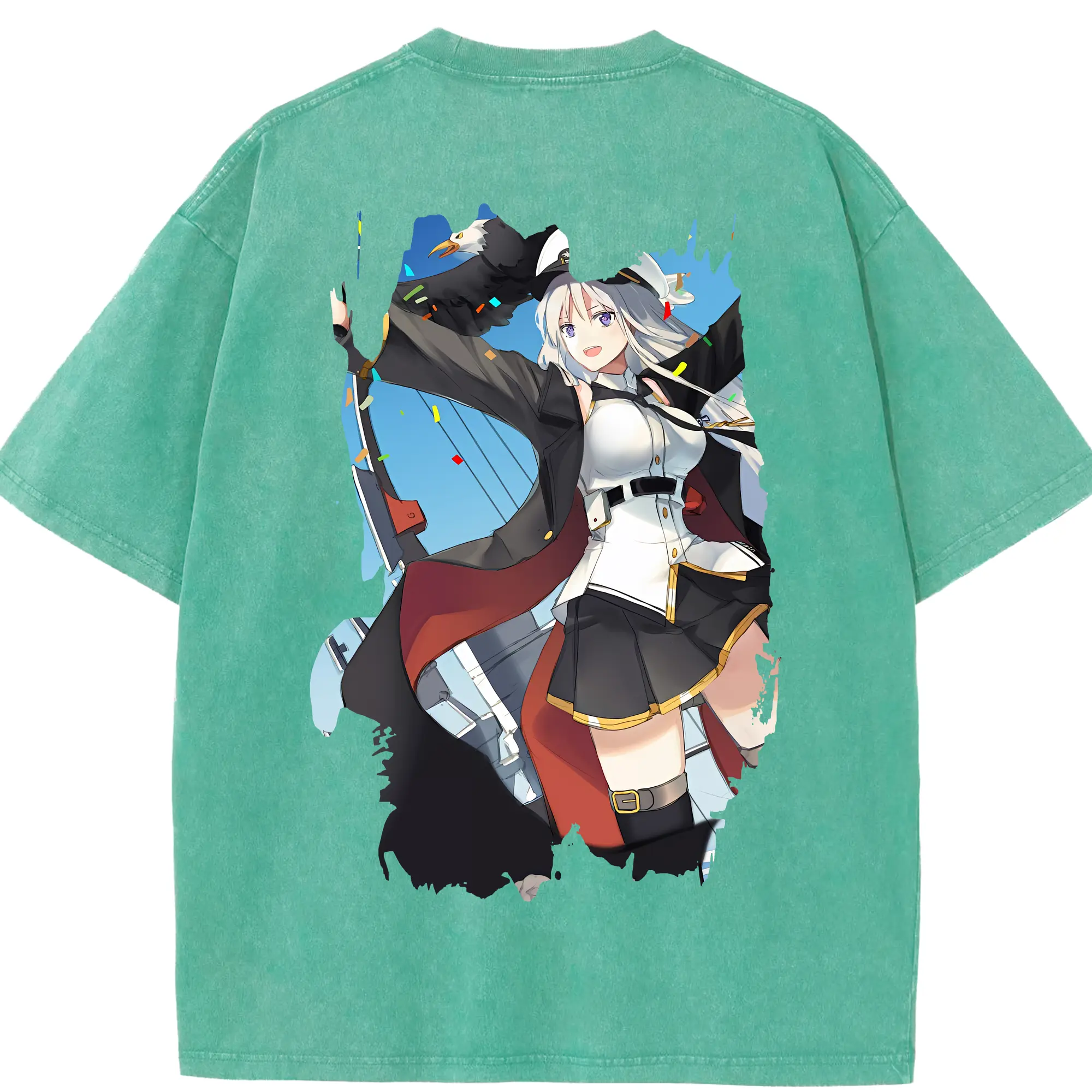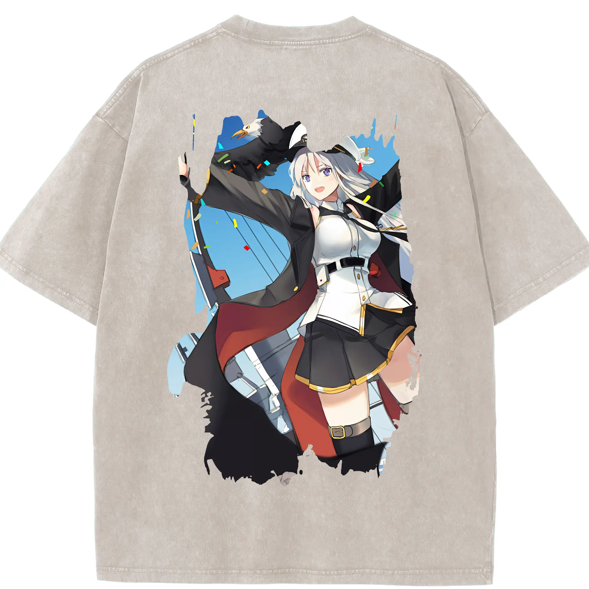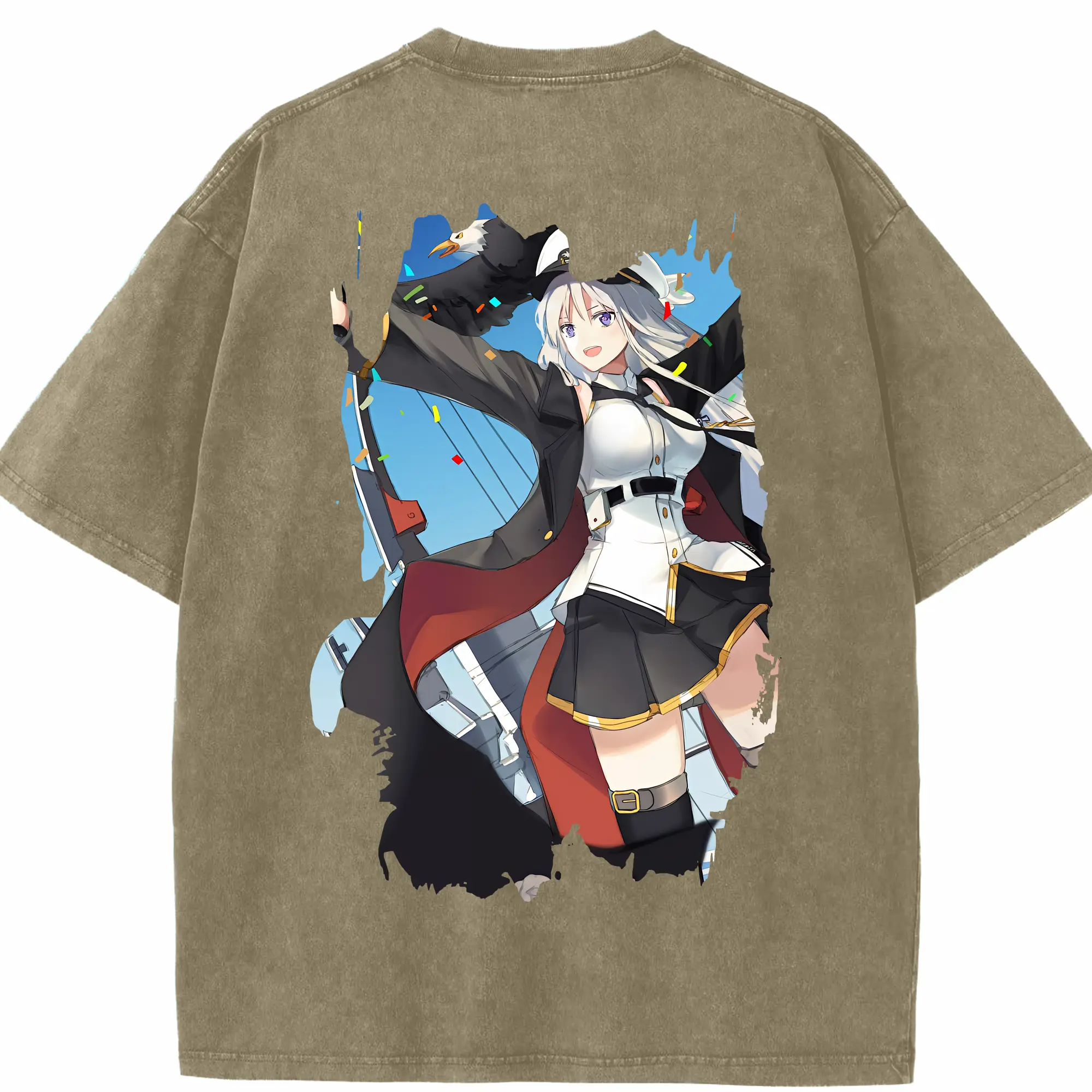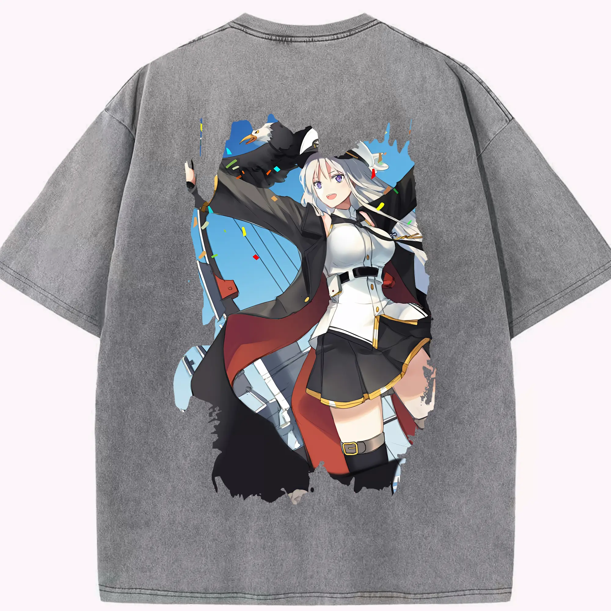 アズールレーン グッズ,エンタープライズ - 綿100% ヴィンテージ風 半袖Tシャツ ・ フロントプリント ・ 柔らか肌触り ・ 通気性 快適 ・ スポーツ カジュアル 外出用
