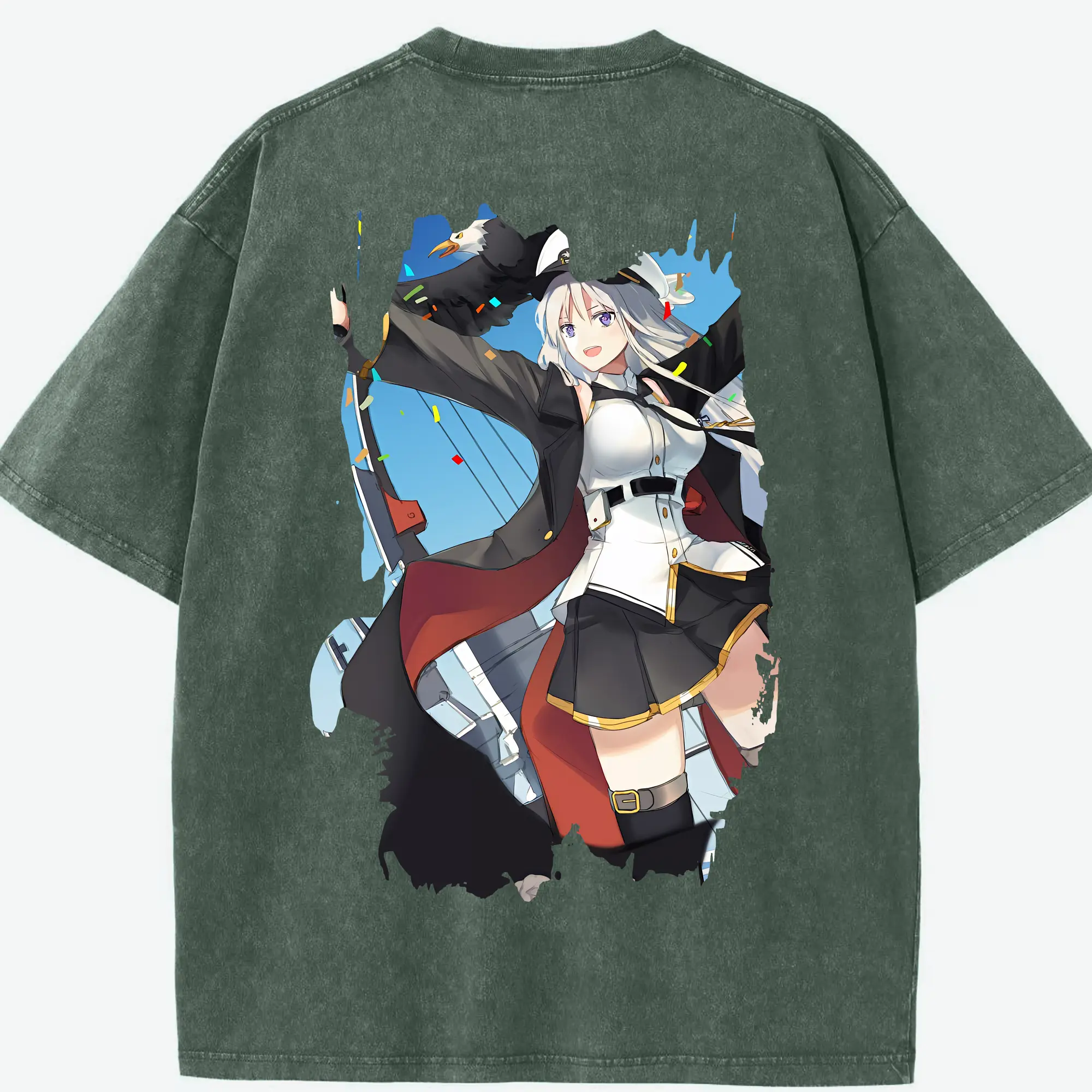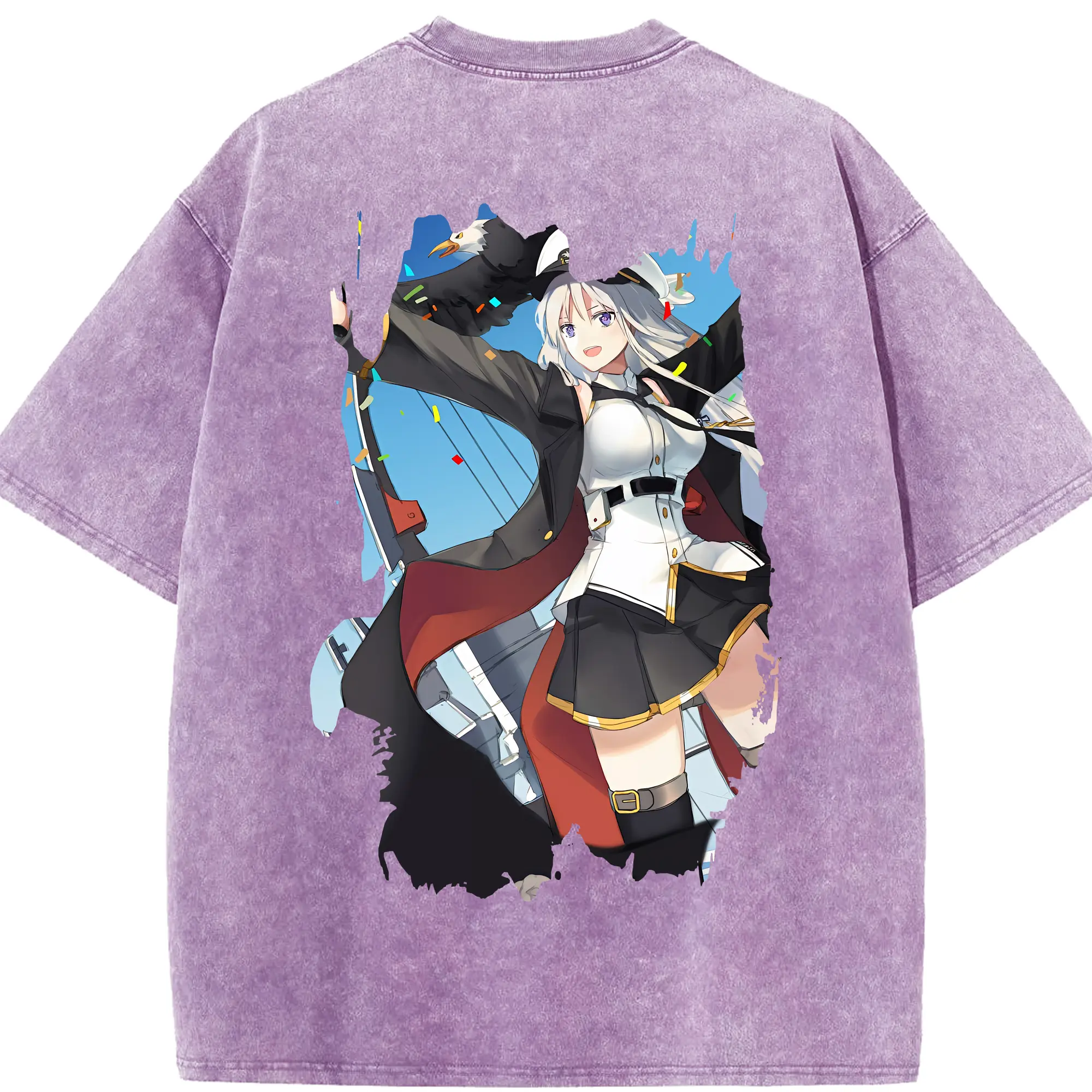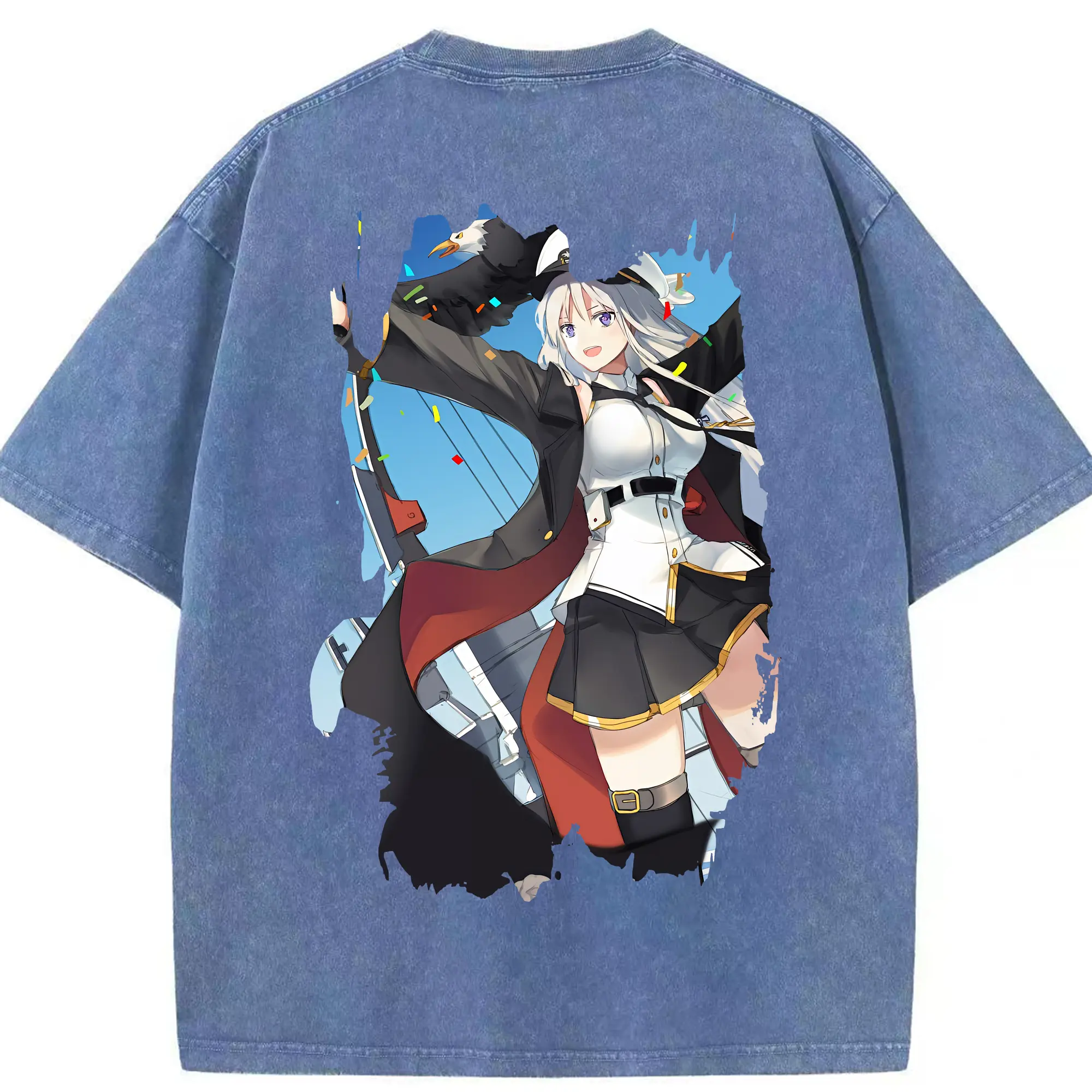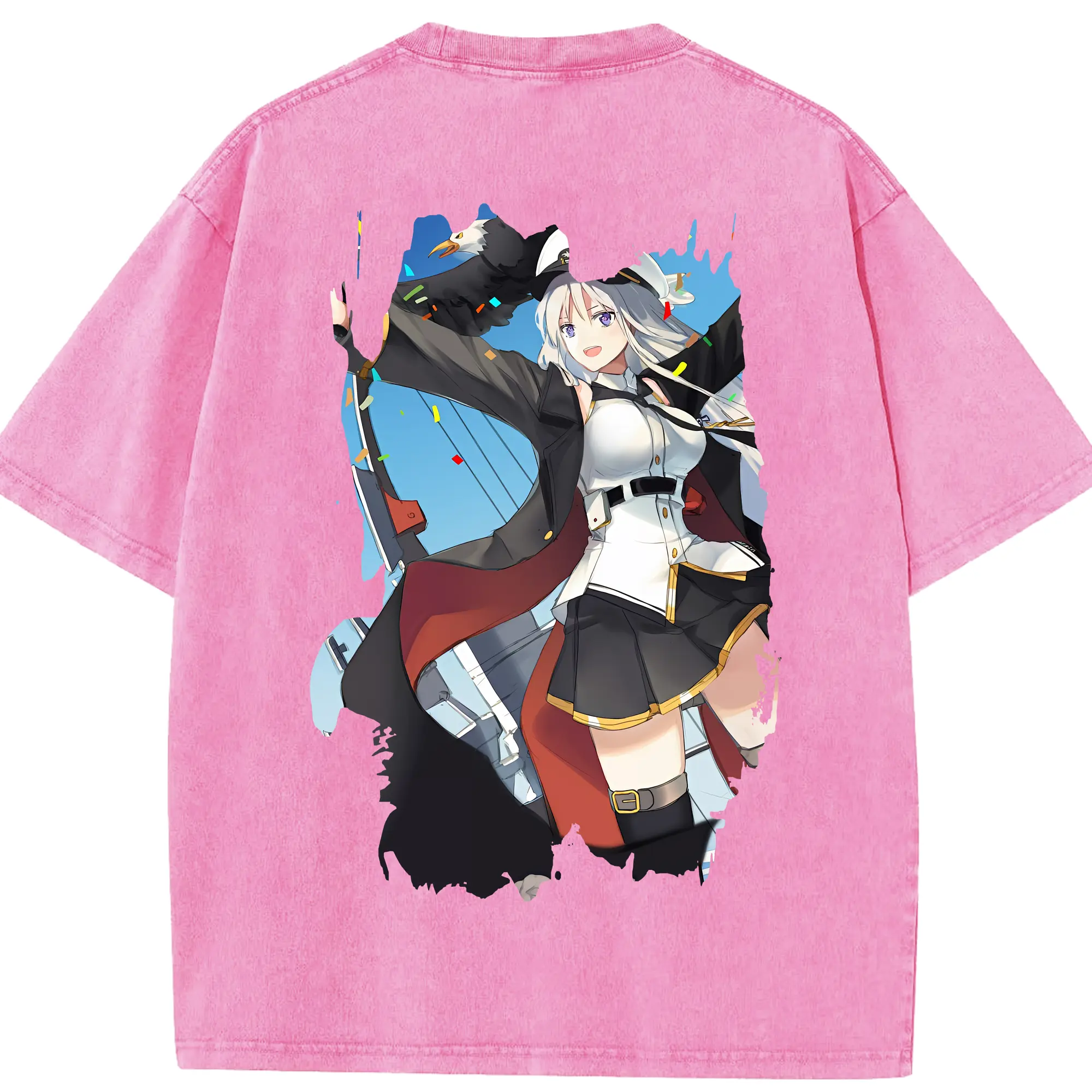 アズールレーン グッズ,エンタープライズ - 綿100% ヴィンテージ風 半袖Tシャツ ・ フロントプリント ・ 柔らか肌触り ・ 通気性 快適 ・ スポーツ カジュアル 外出用