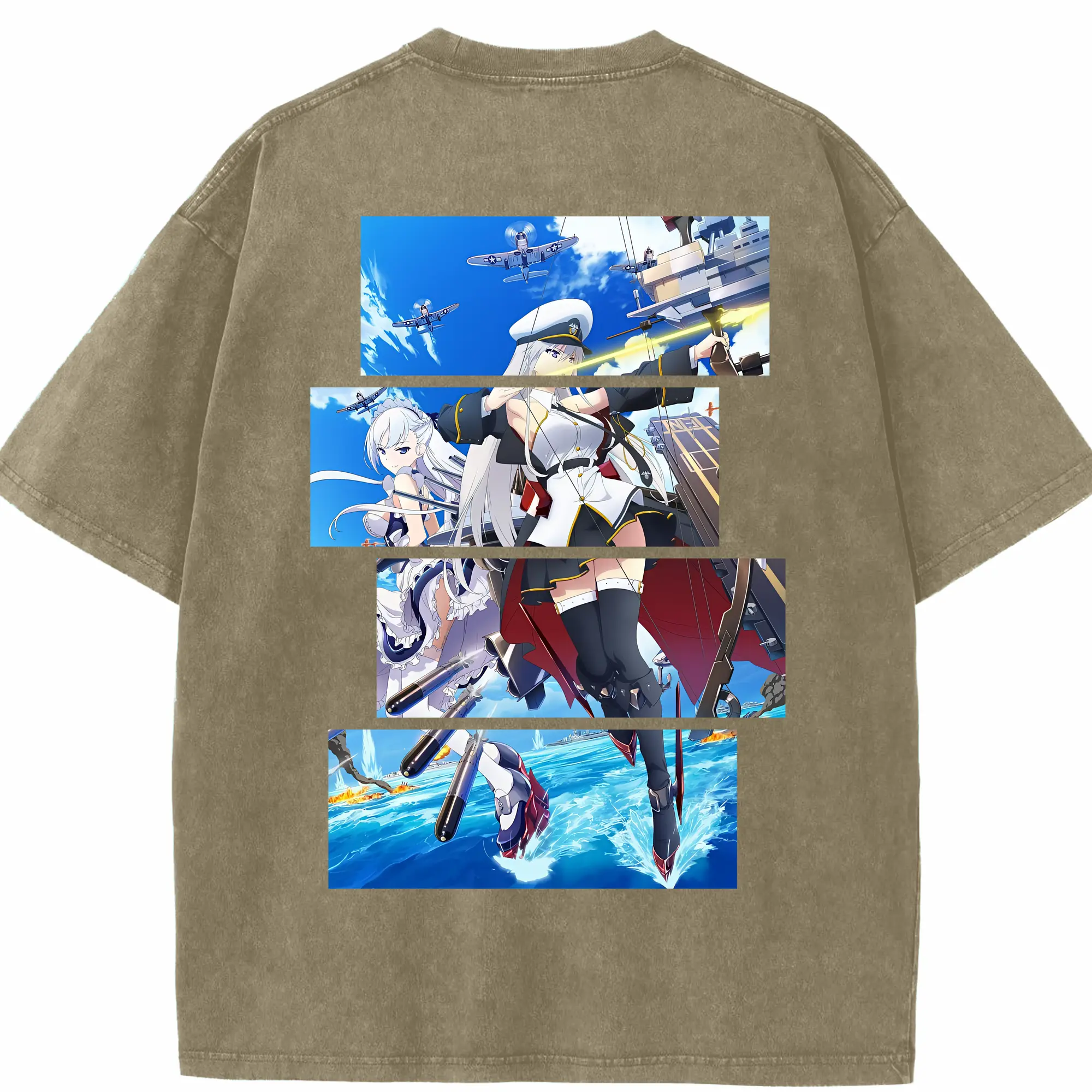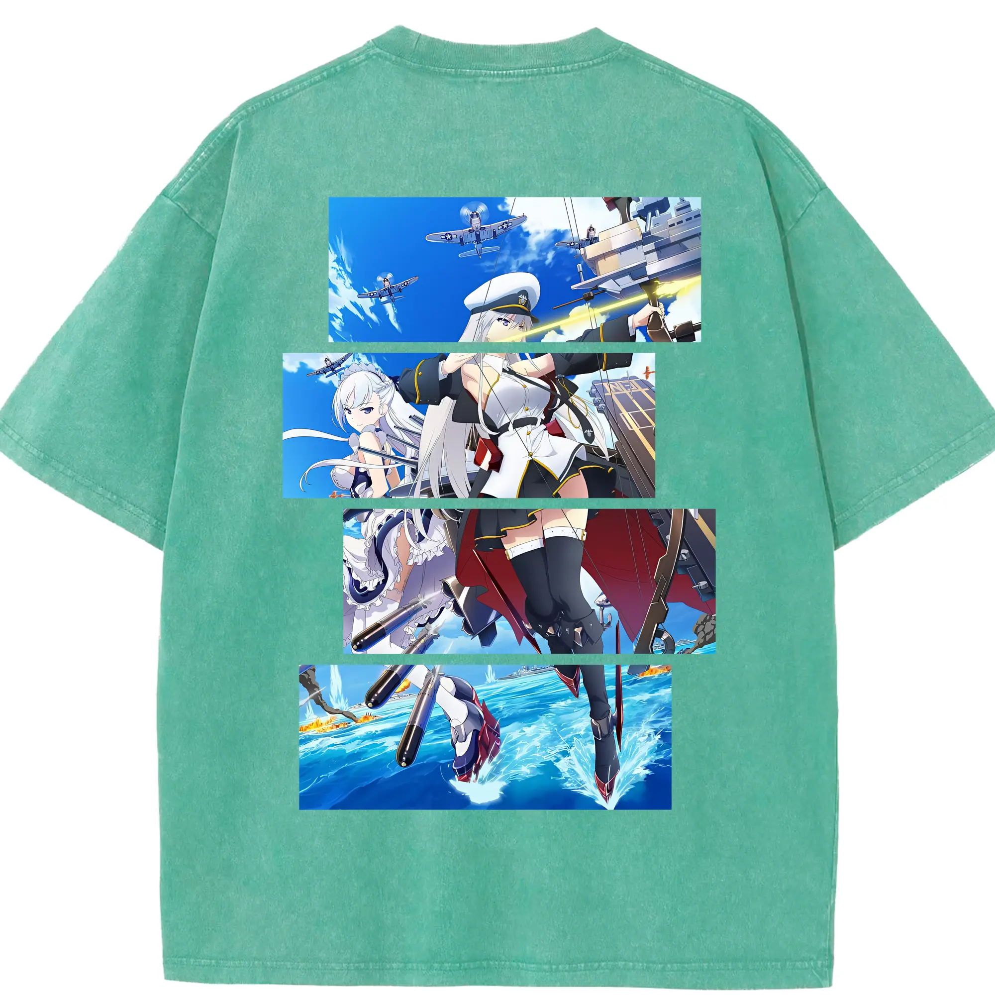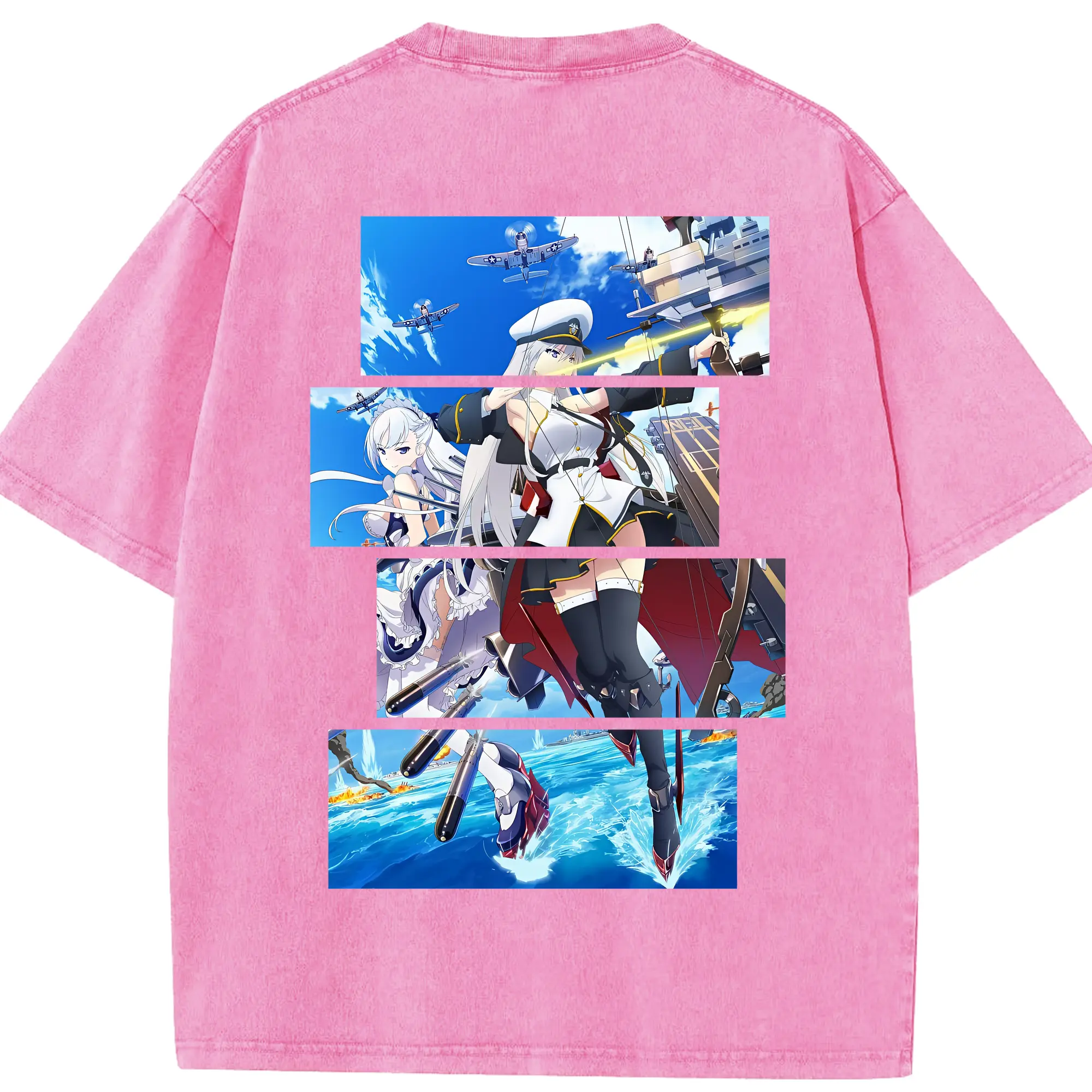 アズールレーン グッズ,エンタープライズ - 綿100% ヴィンテージ風 半袖Tシャツ ・ フロントプリント ・ 柔らか肌触り ・ 通気性 快適 ・ スポーツ カジュアル 外出用