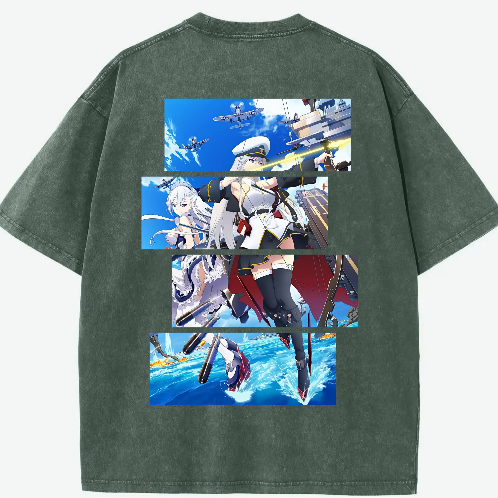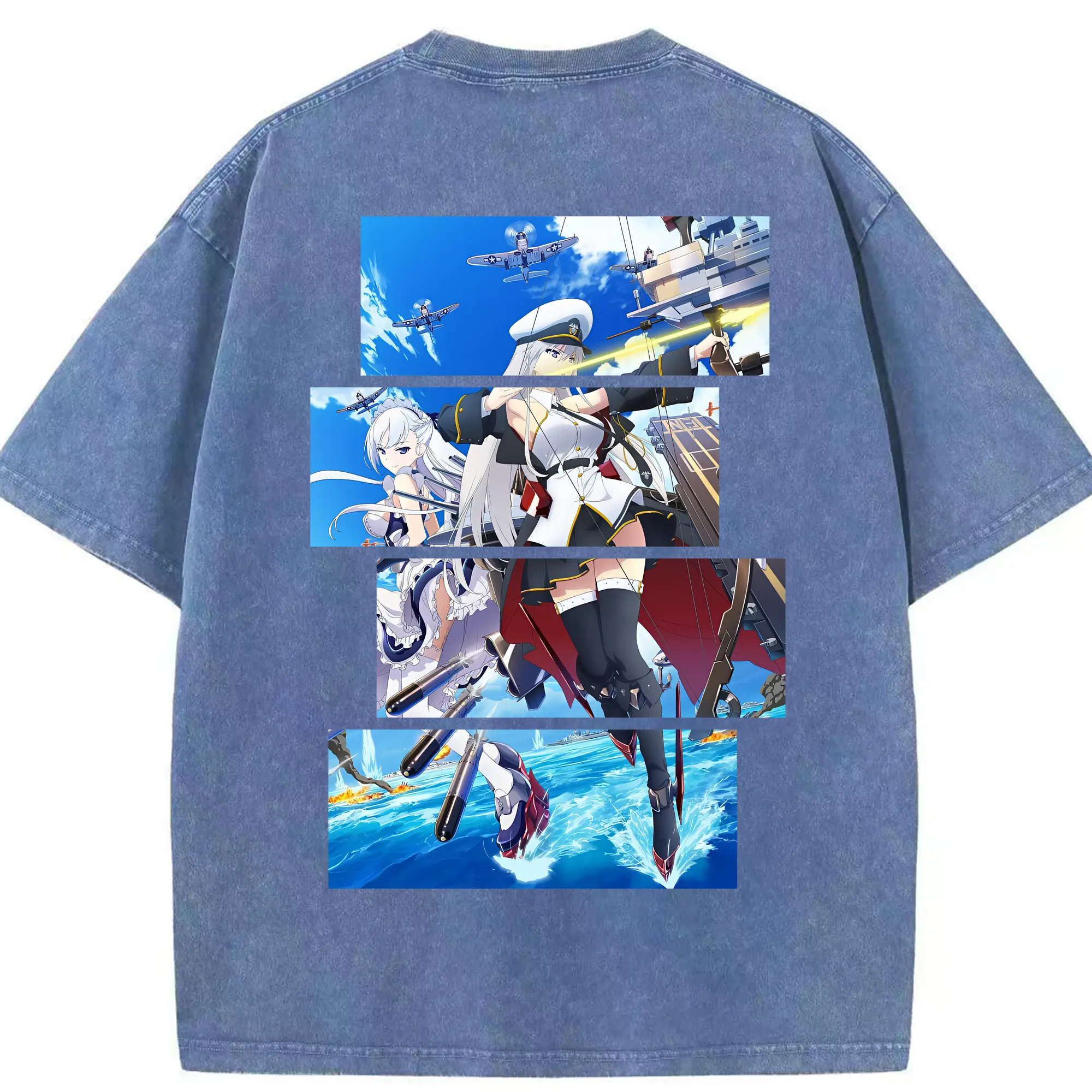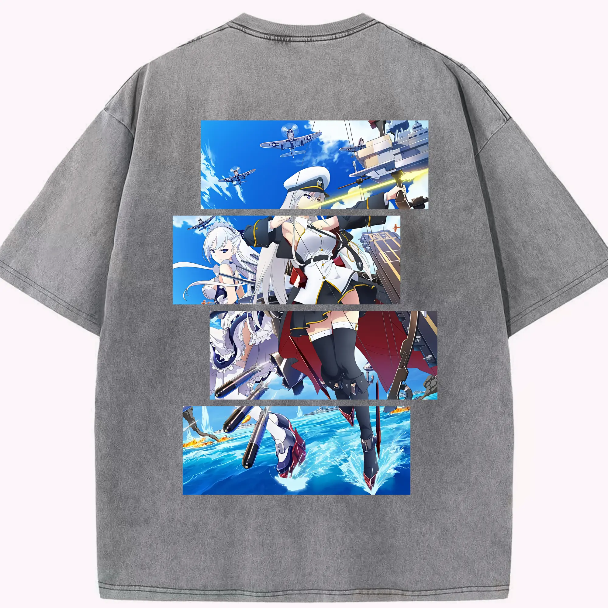 アズールレーン グッズ,エンタープライズ - 綿100% ヴィンテージ風 半袖Tシャツ ・ フロントプリント ・ 柔らか肌触り ・ 通気性 快適 ・ スポーツ カジュアル 外出用