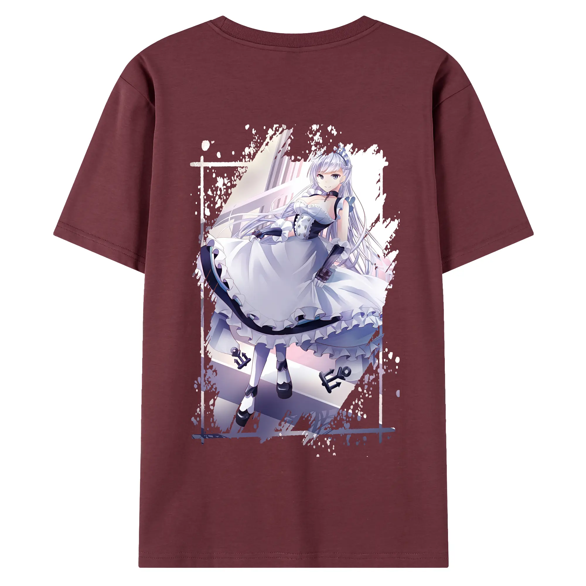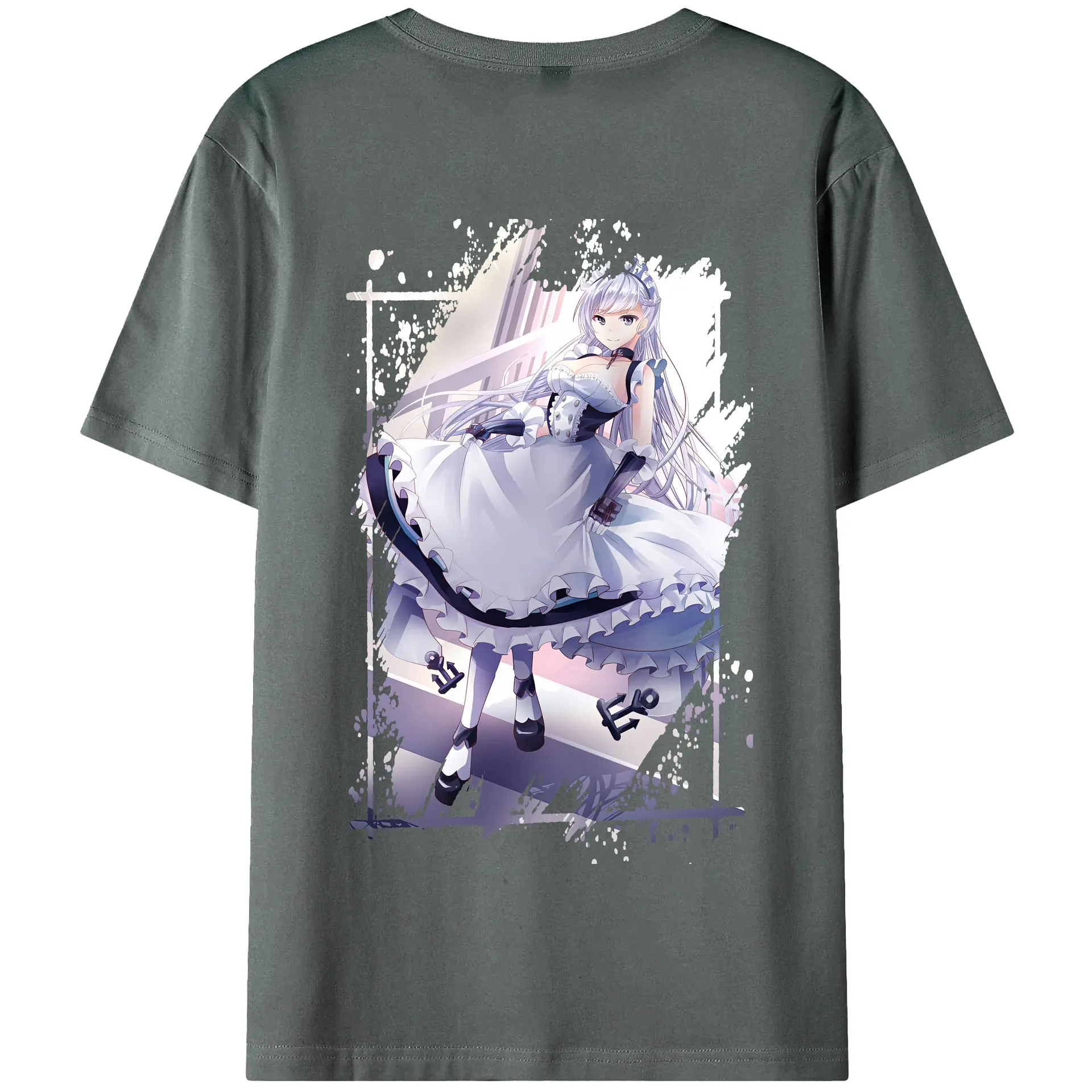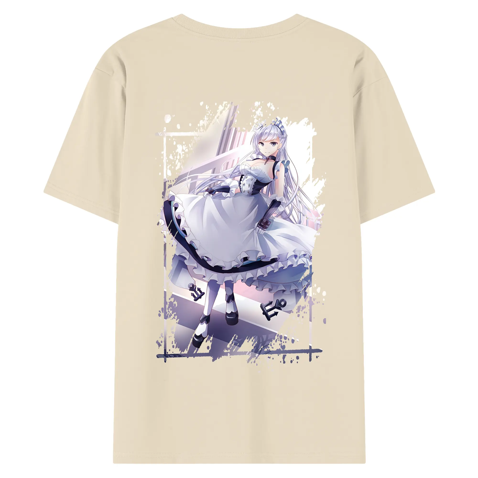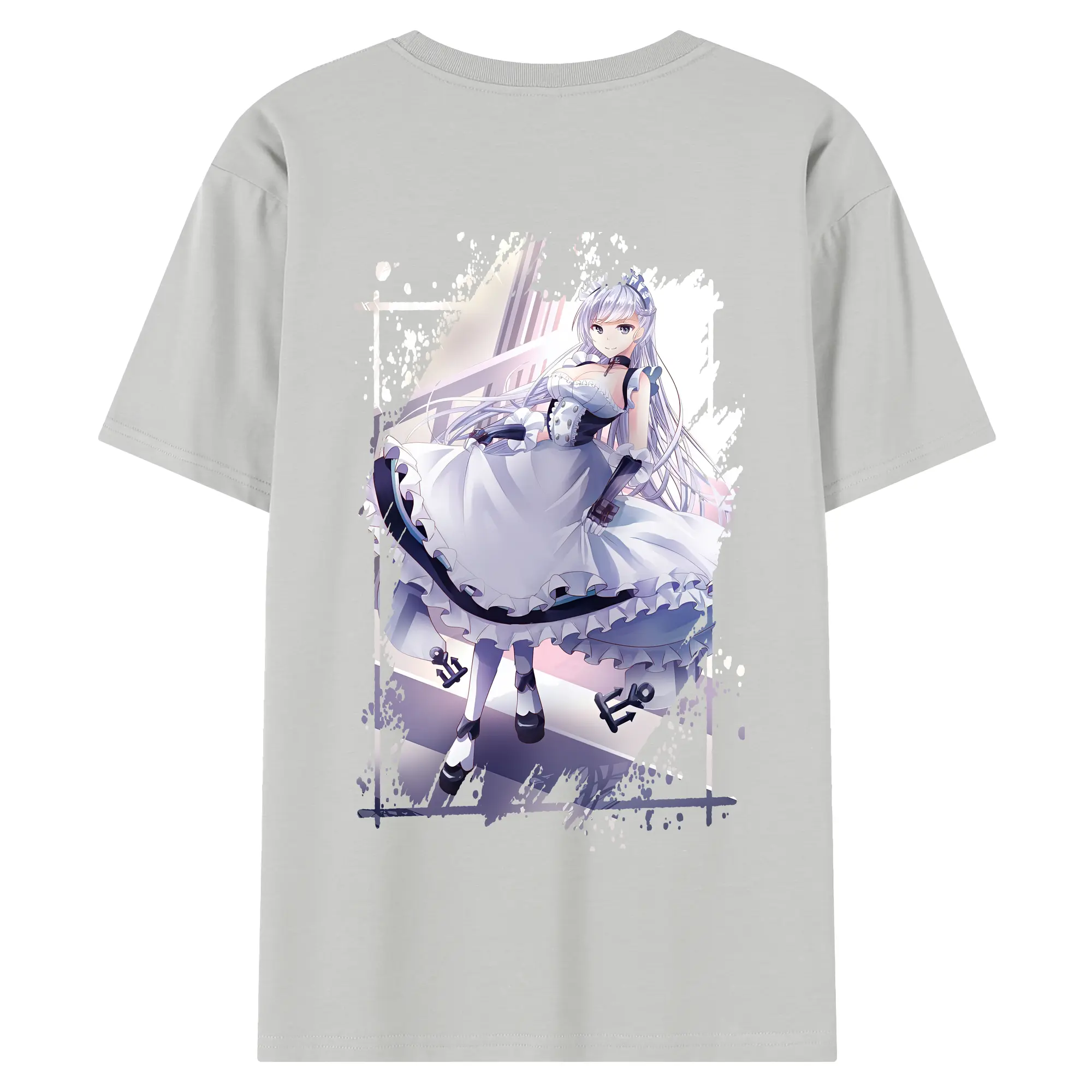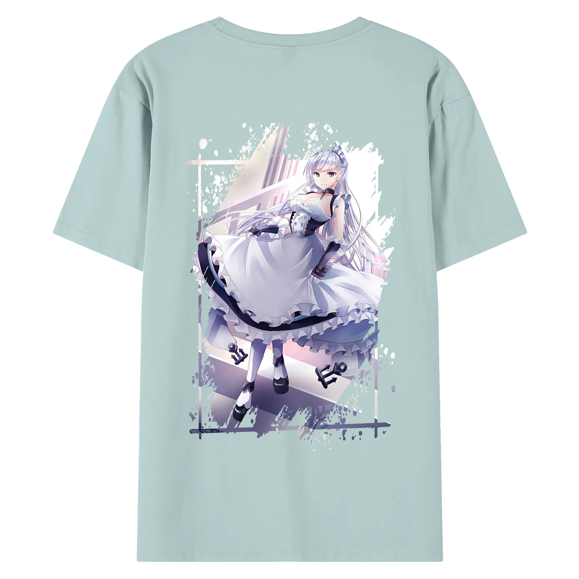 アズールレーン グッズ,ベルファスト - 綿100% ヴィンテージ風 半袖Tシャツ ・ 背面プリント ・ 柔らか肌触り ・ 通気性 快適 ・ スポーツ カジュアル 外出用