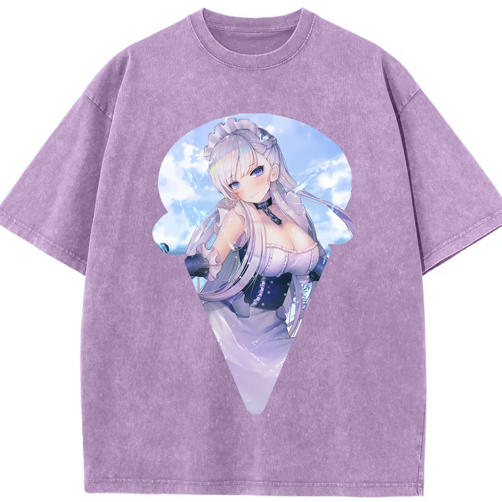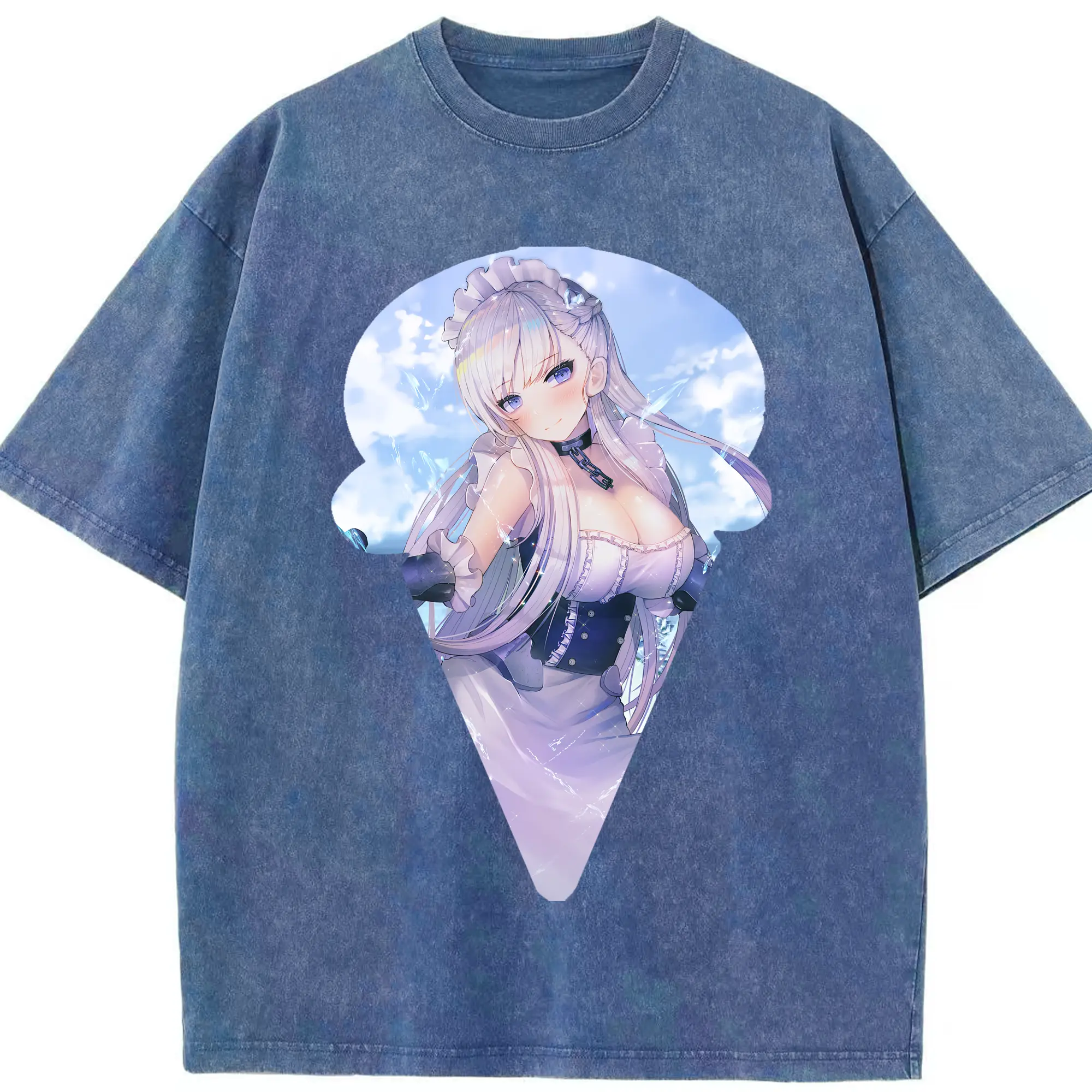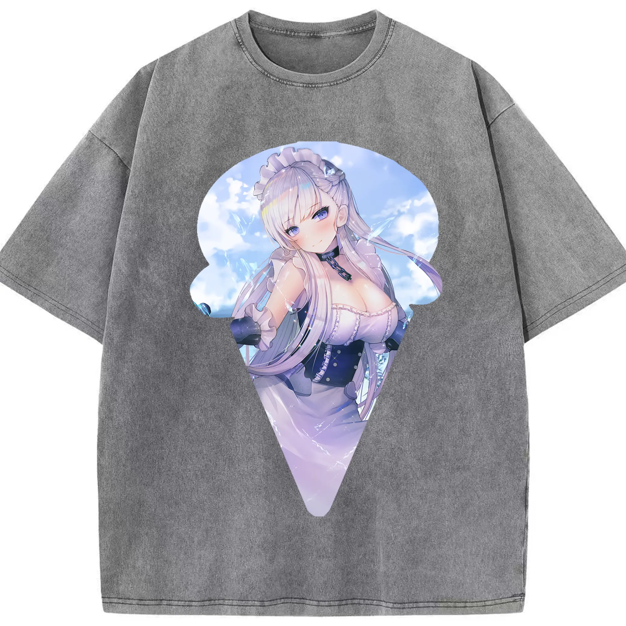 アズールレーン グッズ,ベルファスト - 綿100% ヴィンテージ風 半袖Tシャツ ・ 背面プリント ・ 柔らか肌触り ・ 通気性 快適 ・ スポーツ カジュアル 外出用