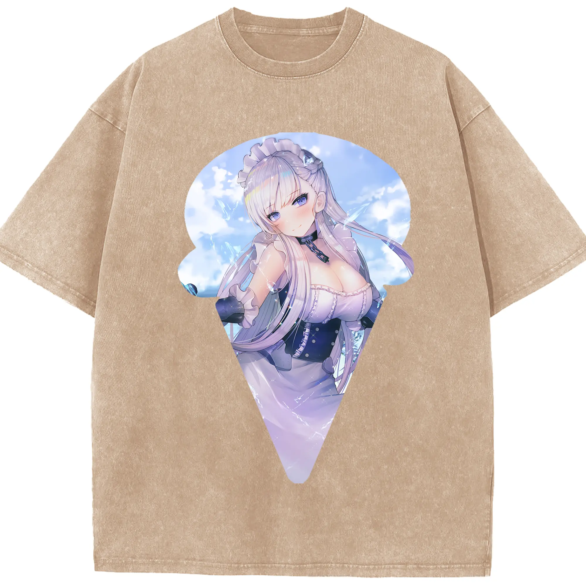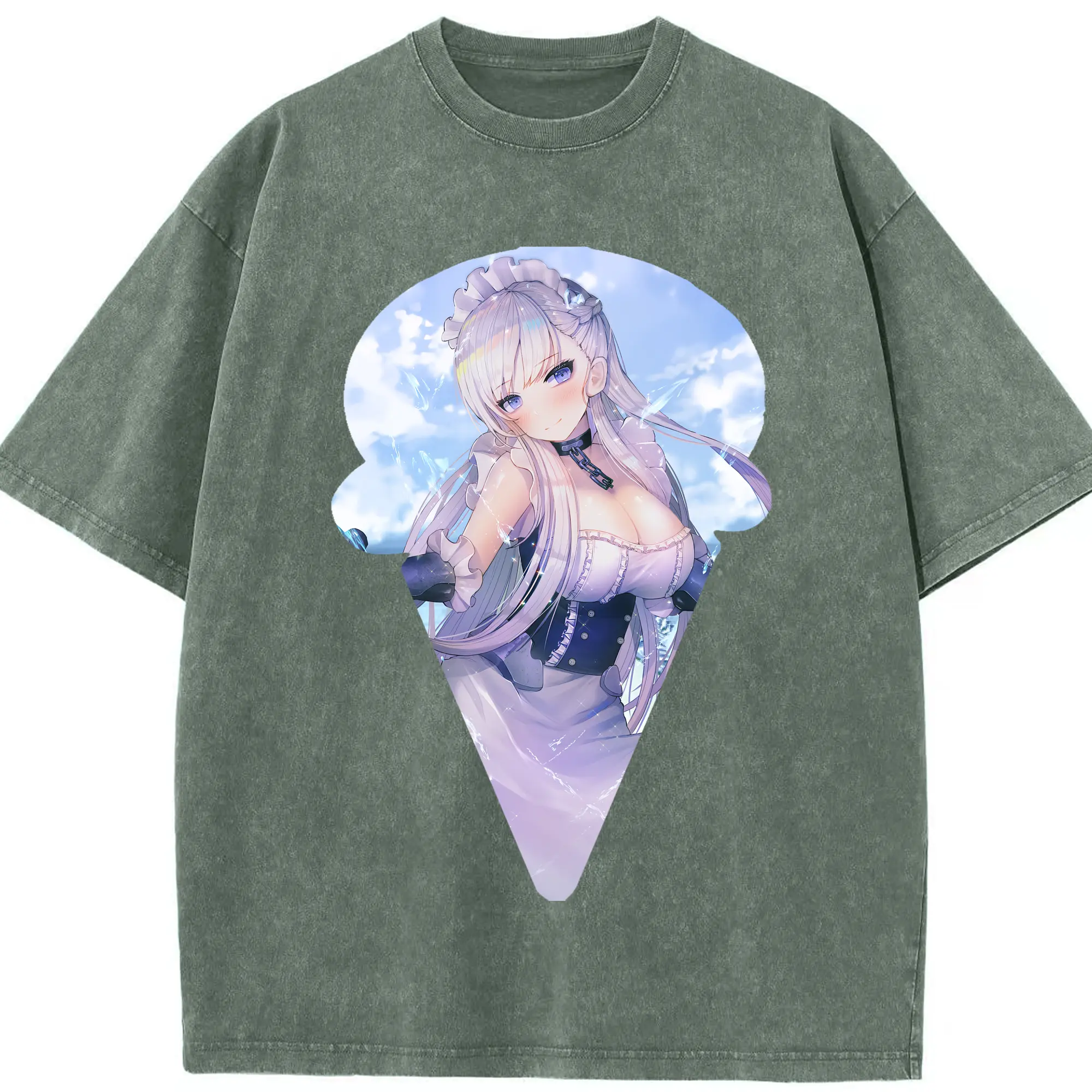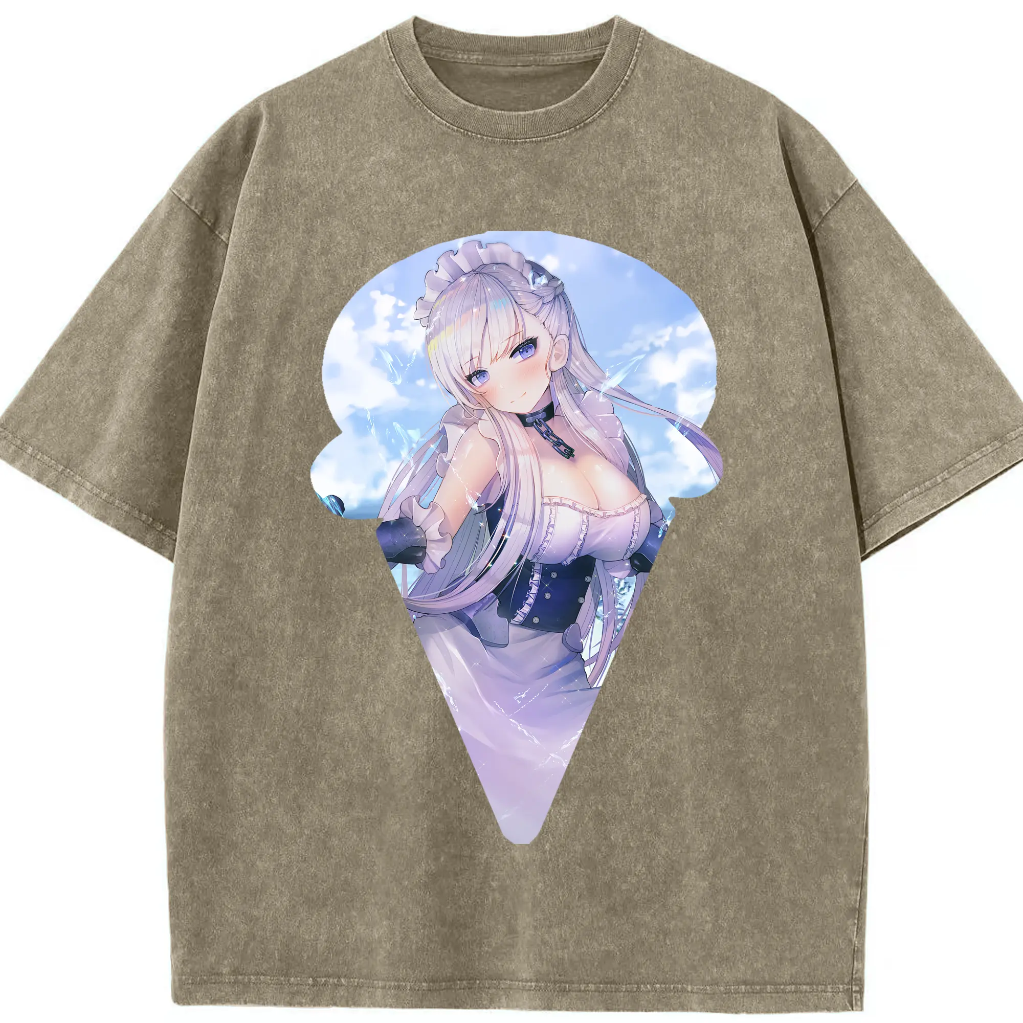 アズールレーン グッズ,ベルファスト - 綿100% ヴィンテージ風 半袖Tシャツ ・ 背面プリント ・ 柔らか肌触り ・ 通気性 快適 ・ スポーツ カジュアル 外出用