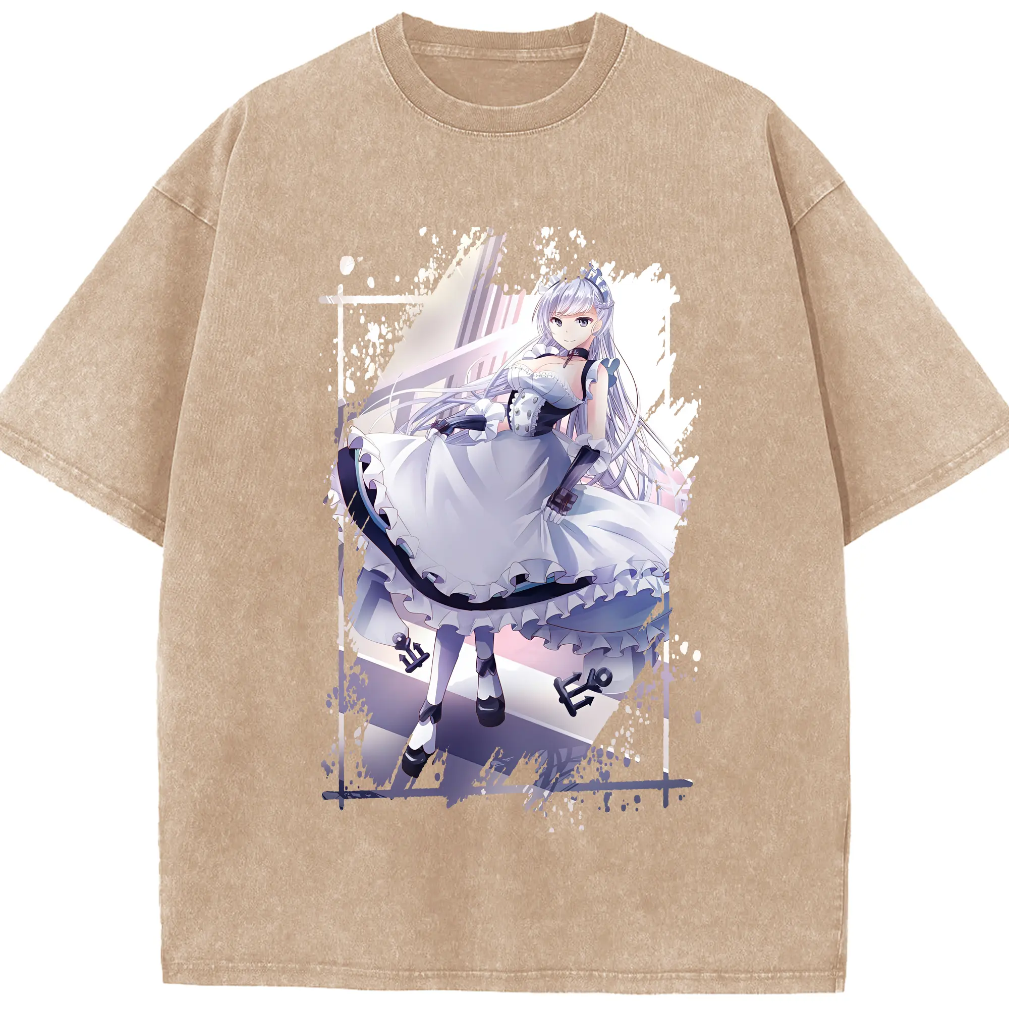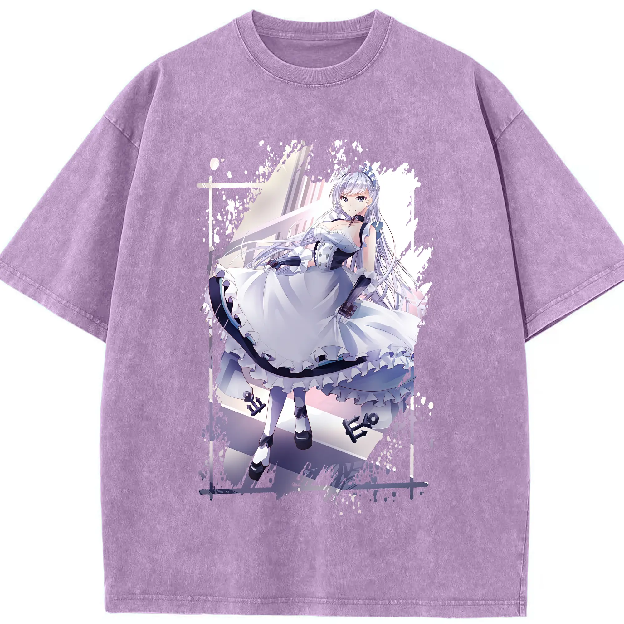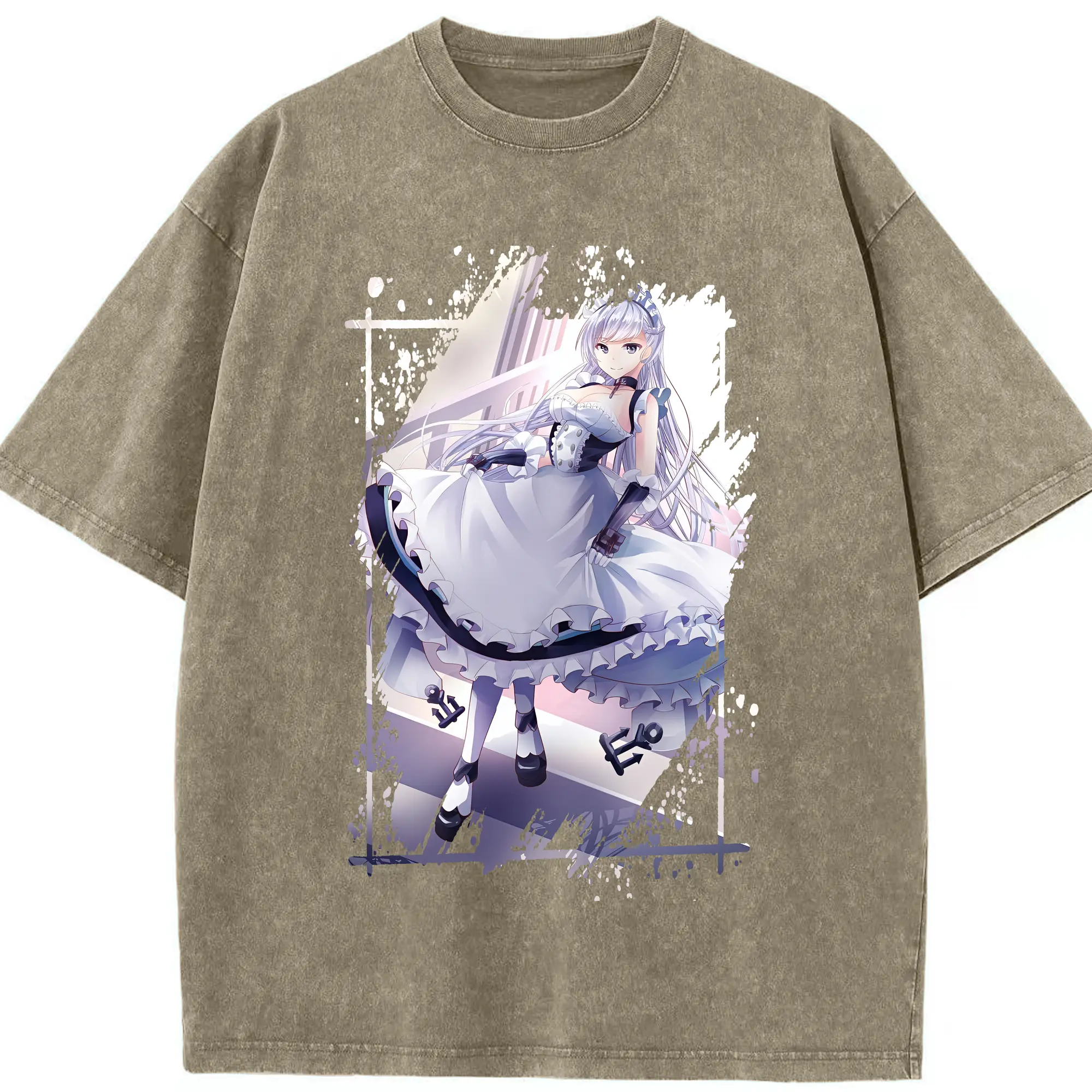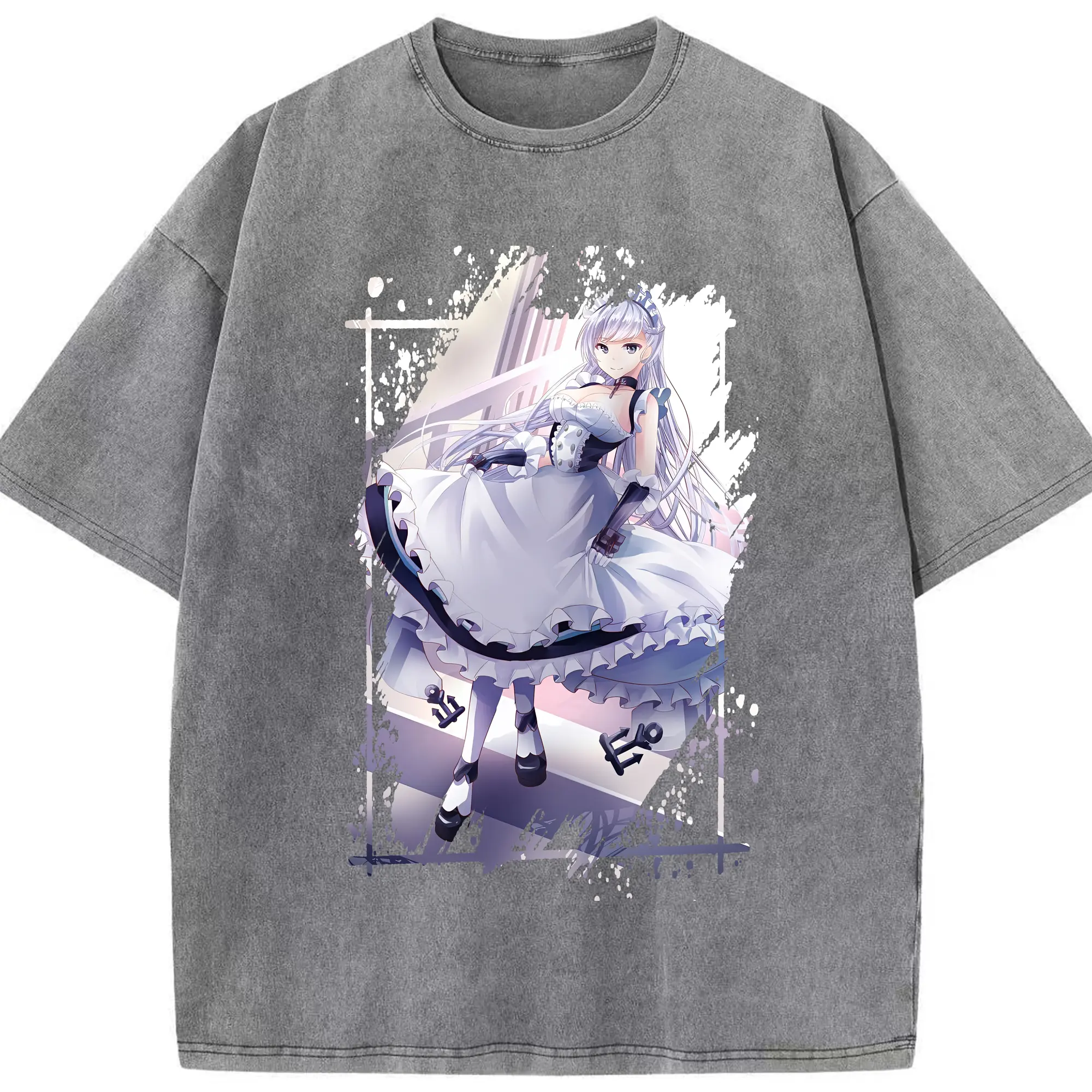 アズールレーン グッズ,ベルファスト - 綿100% ヴィンテージ風 半袖Tシャツ ・ 背面プリント ・ 柔らか肌触り ・ 通気性 快適 ・ スポーツ カジュアル 外出用