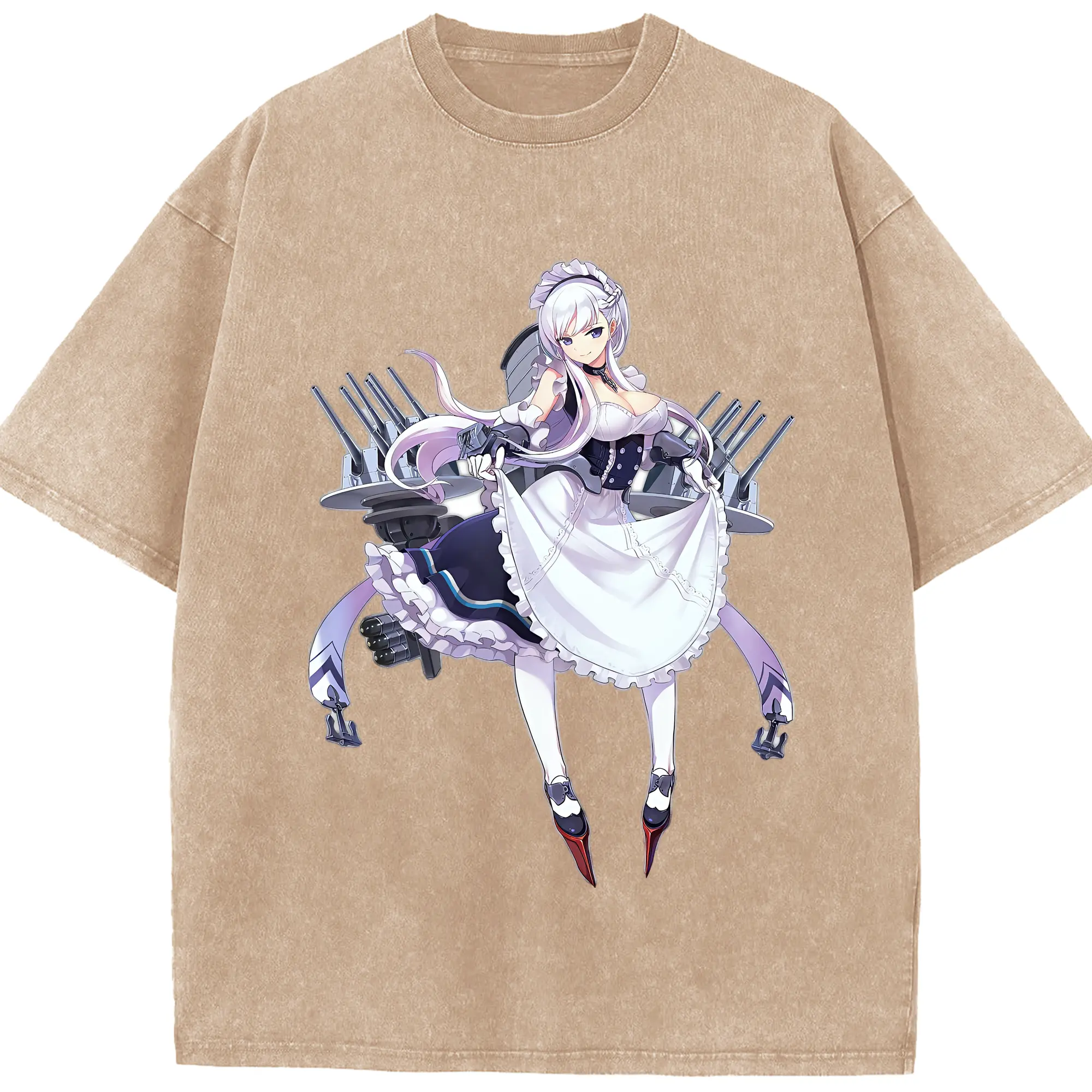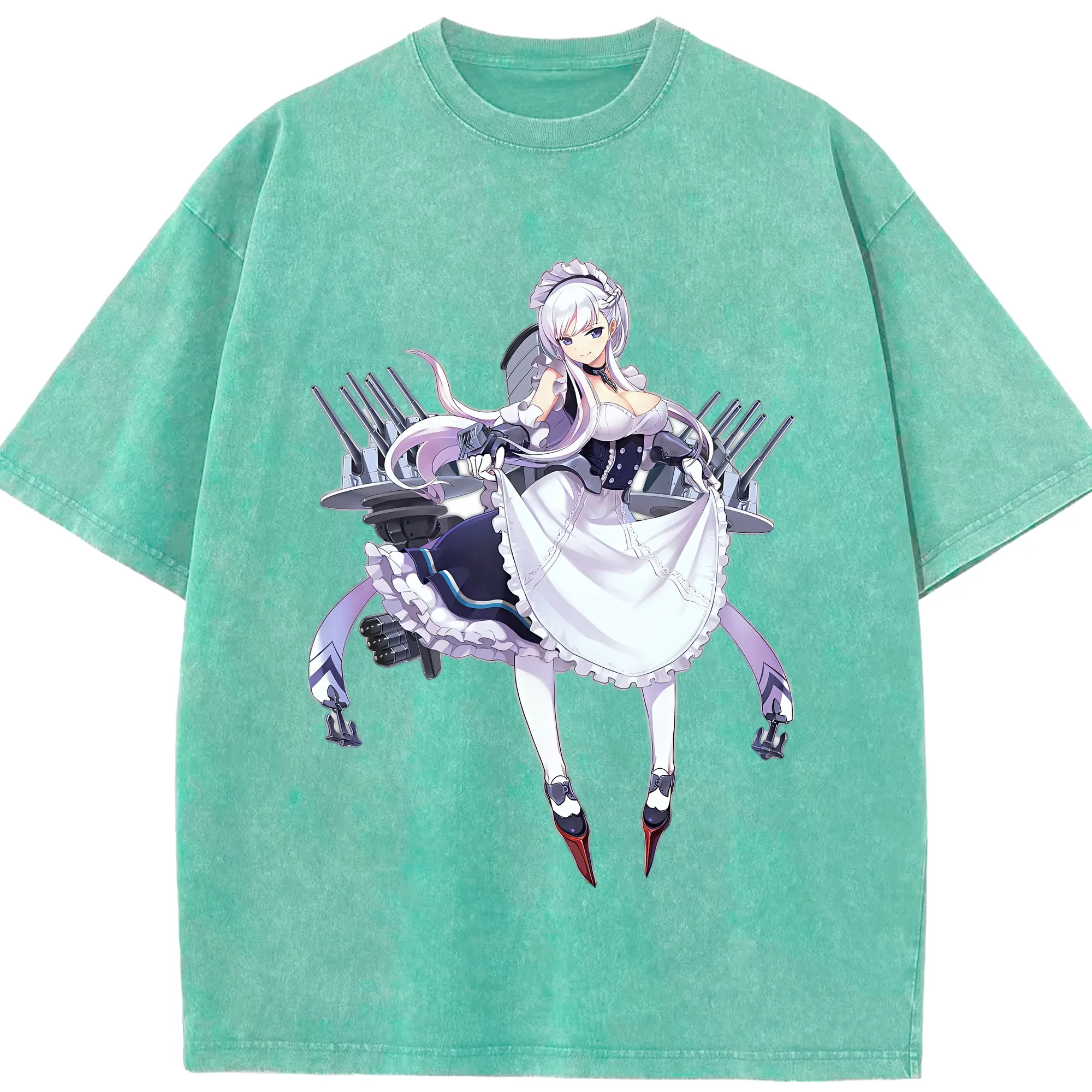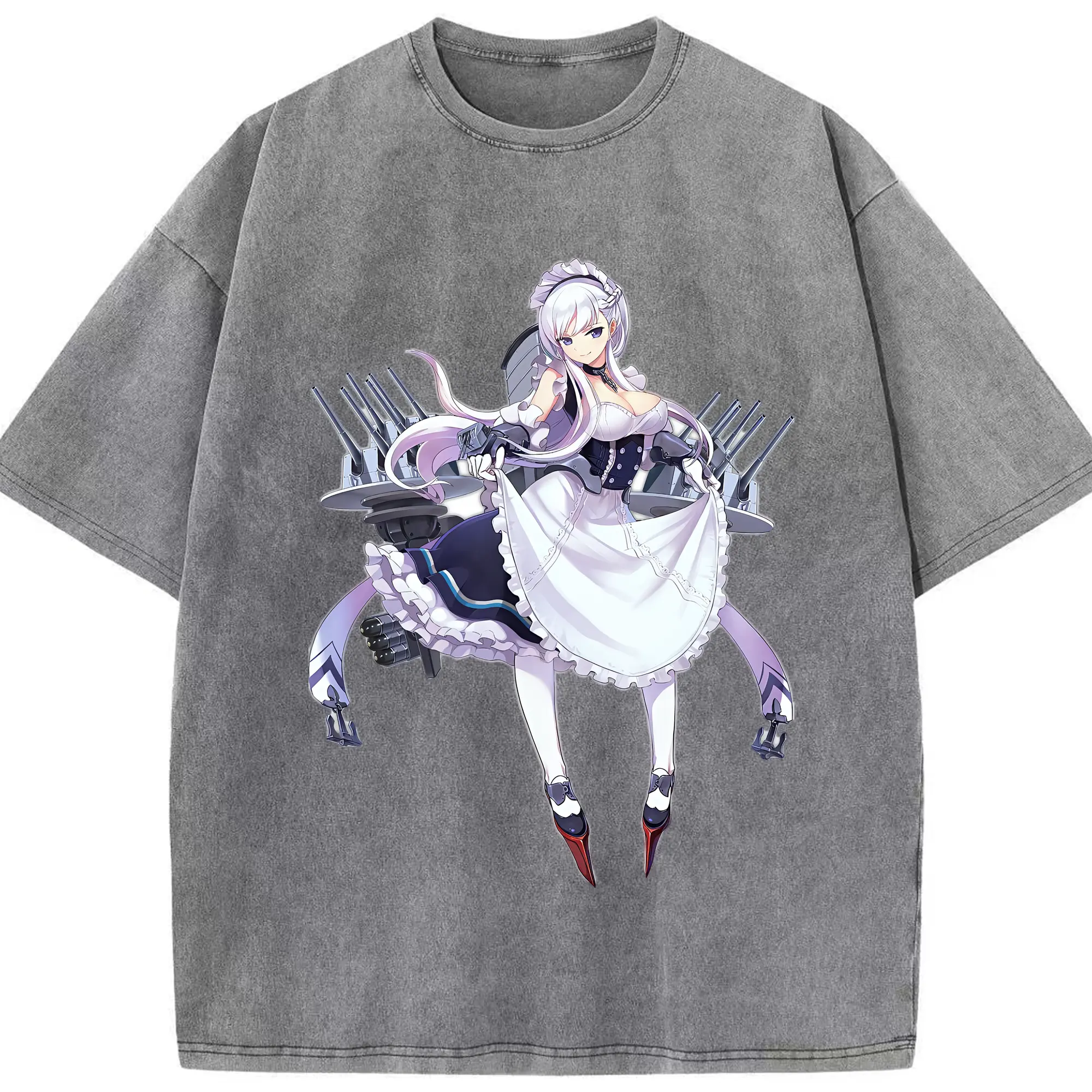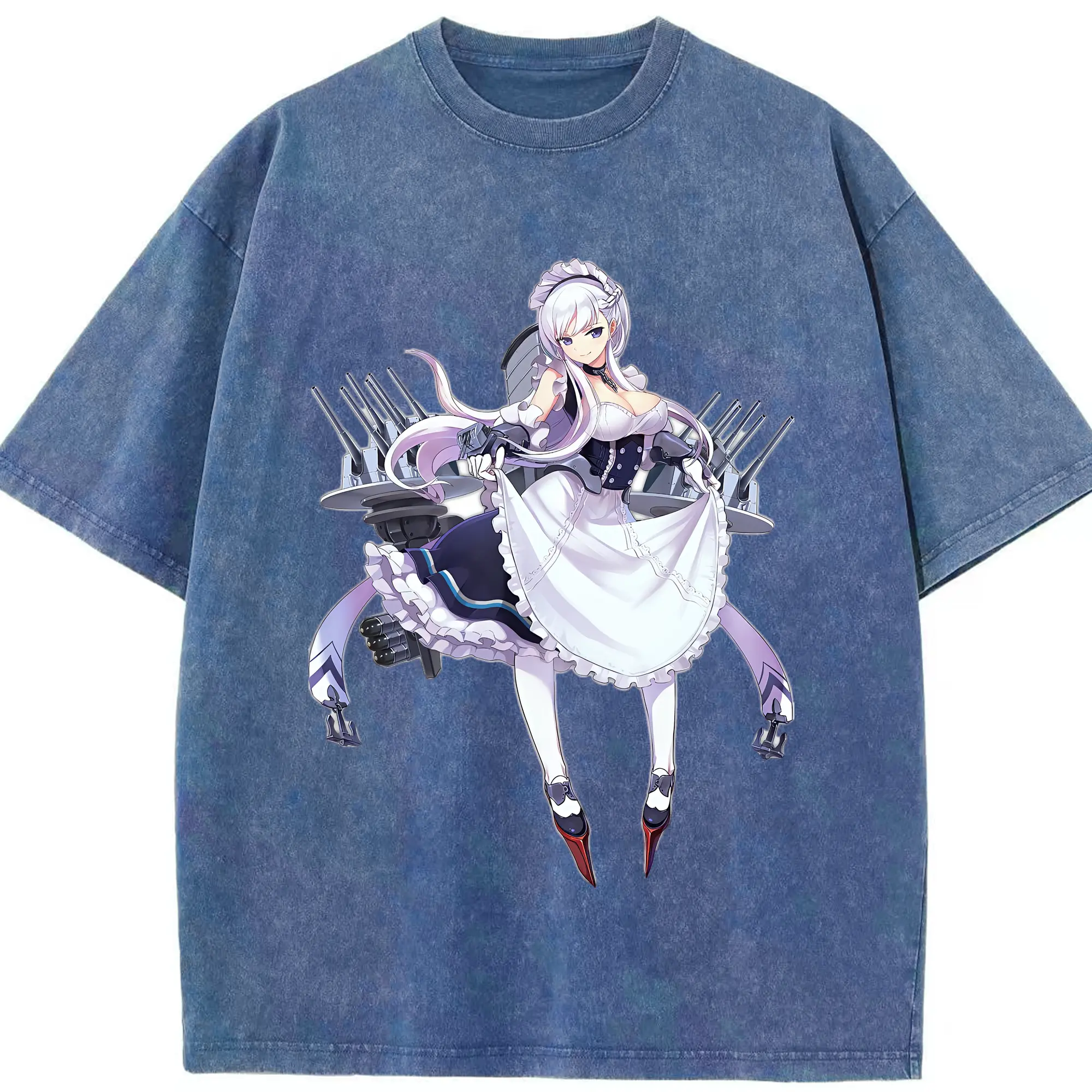アズールレーン グッズ,ベルファスト - 綿100% ヴィンテージ風 半袖Tシャツ ・ 背面プリント ・ 柔らか肌触り ・ 通気性 快適 ・ スポーツ カジュアル 外出用
