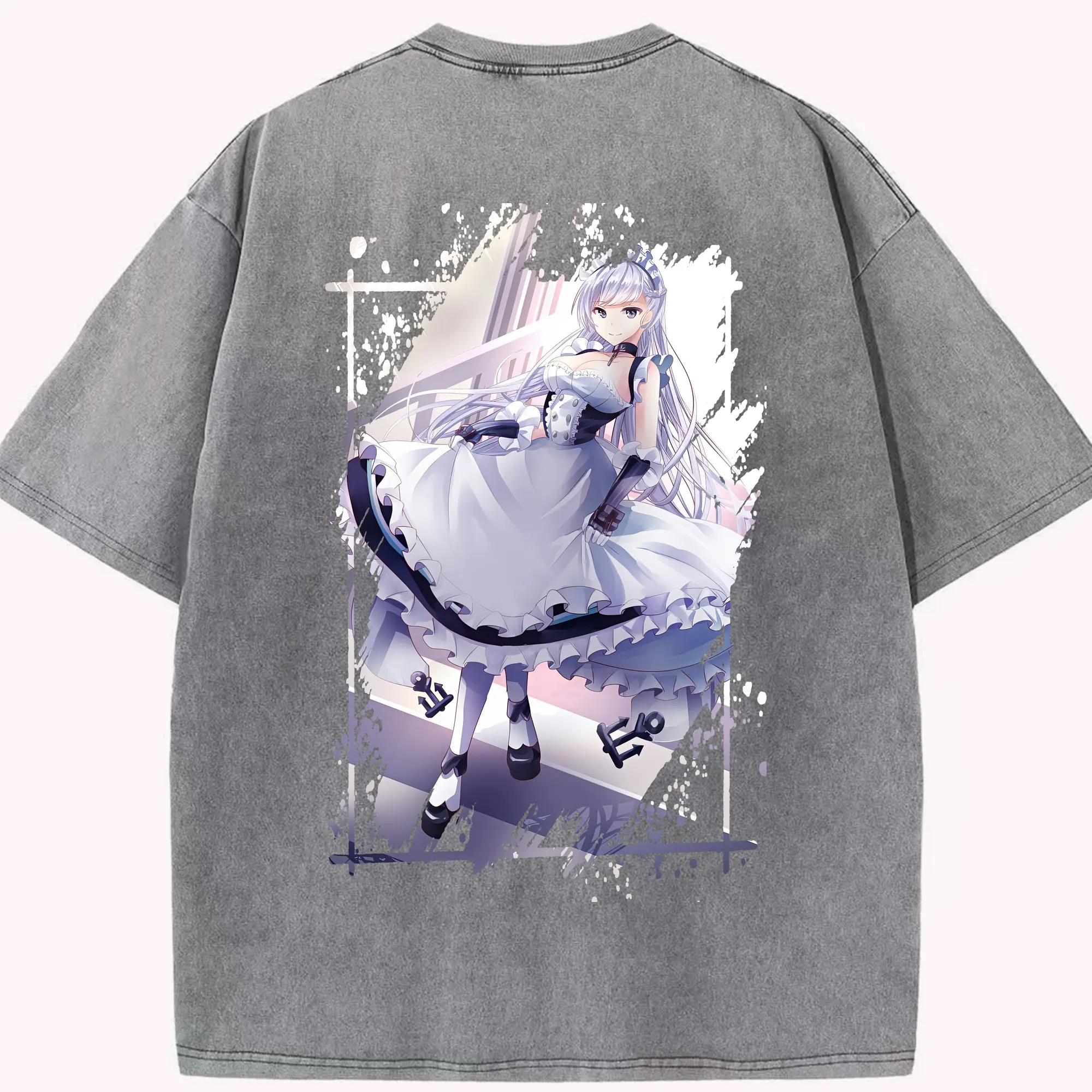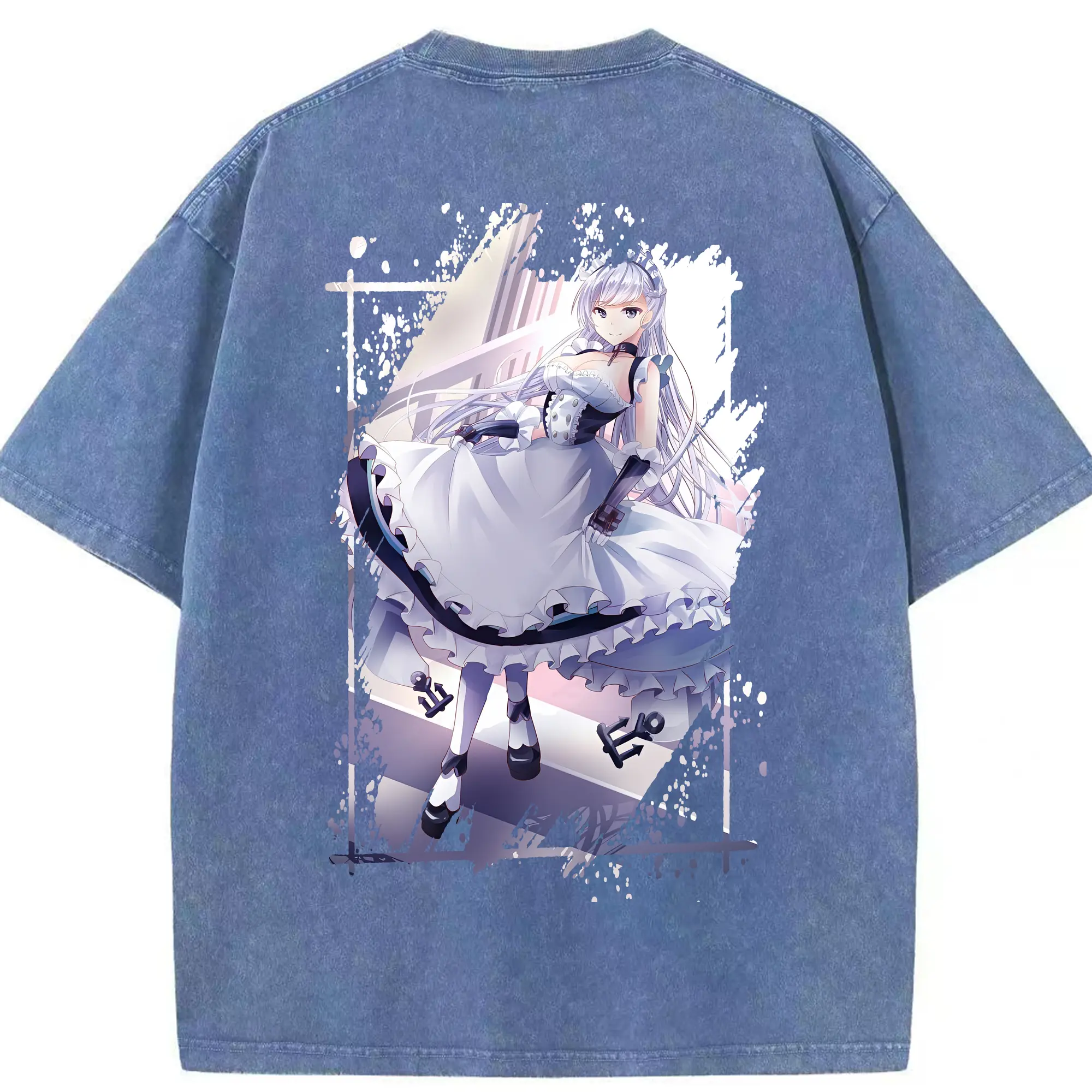 アズールレーン グッズ,ベルファスト - 綿100% ヴィンテージ風 半袖Tシャツ ・ フロントプリント ・ 柔らか肌触り ・ 通気性 快適 ・ スポーツ カジュアル 外出用