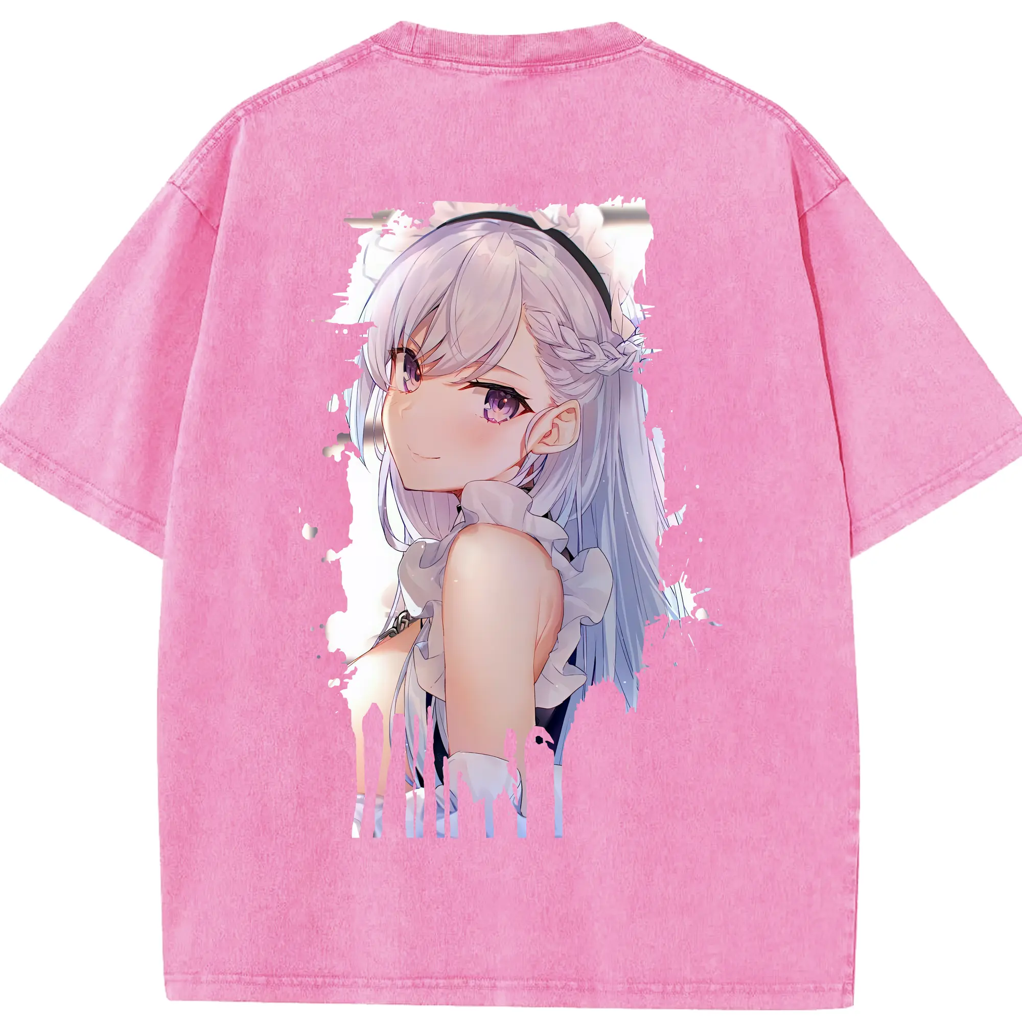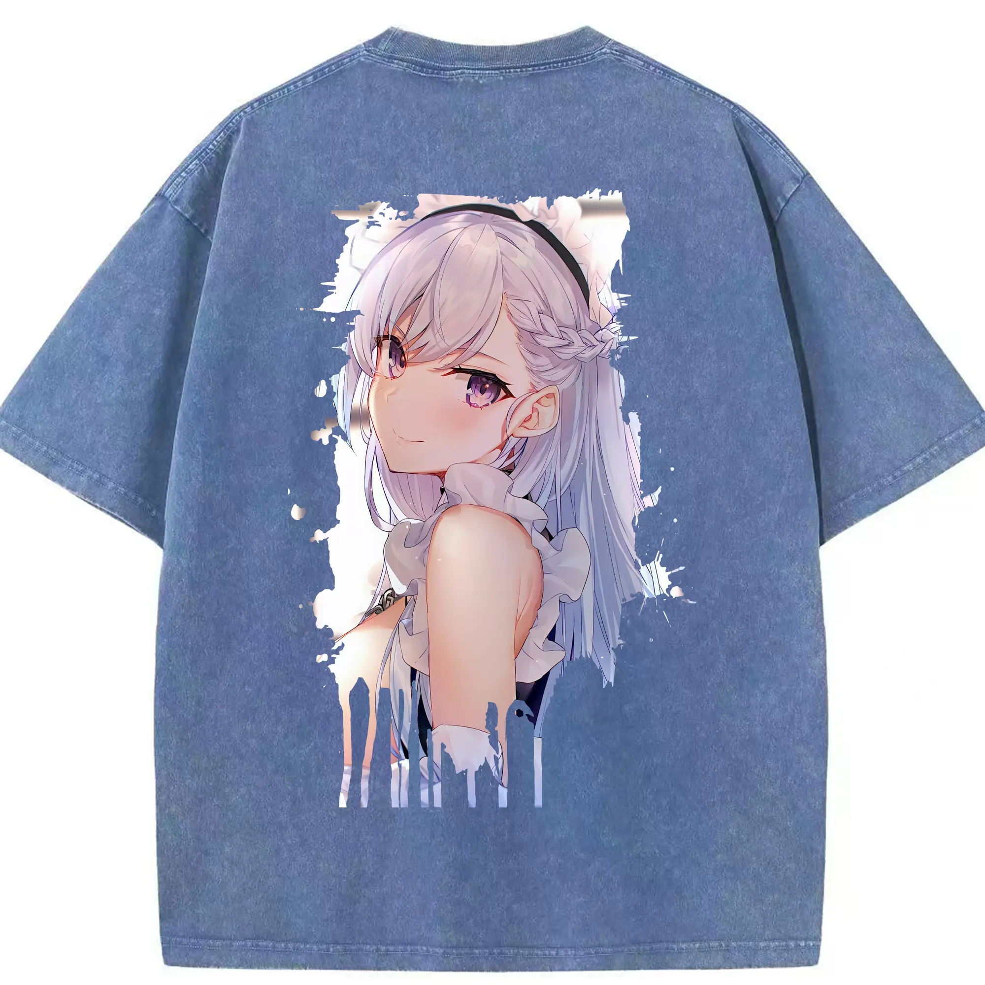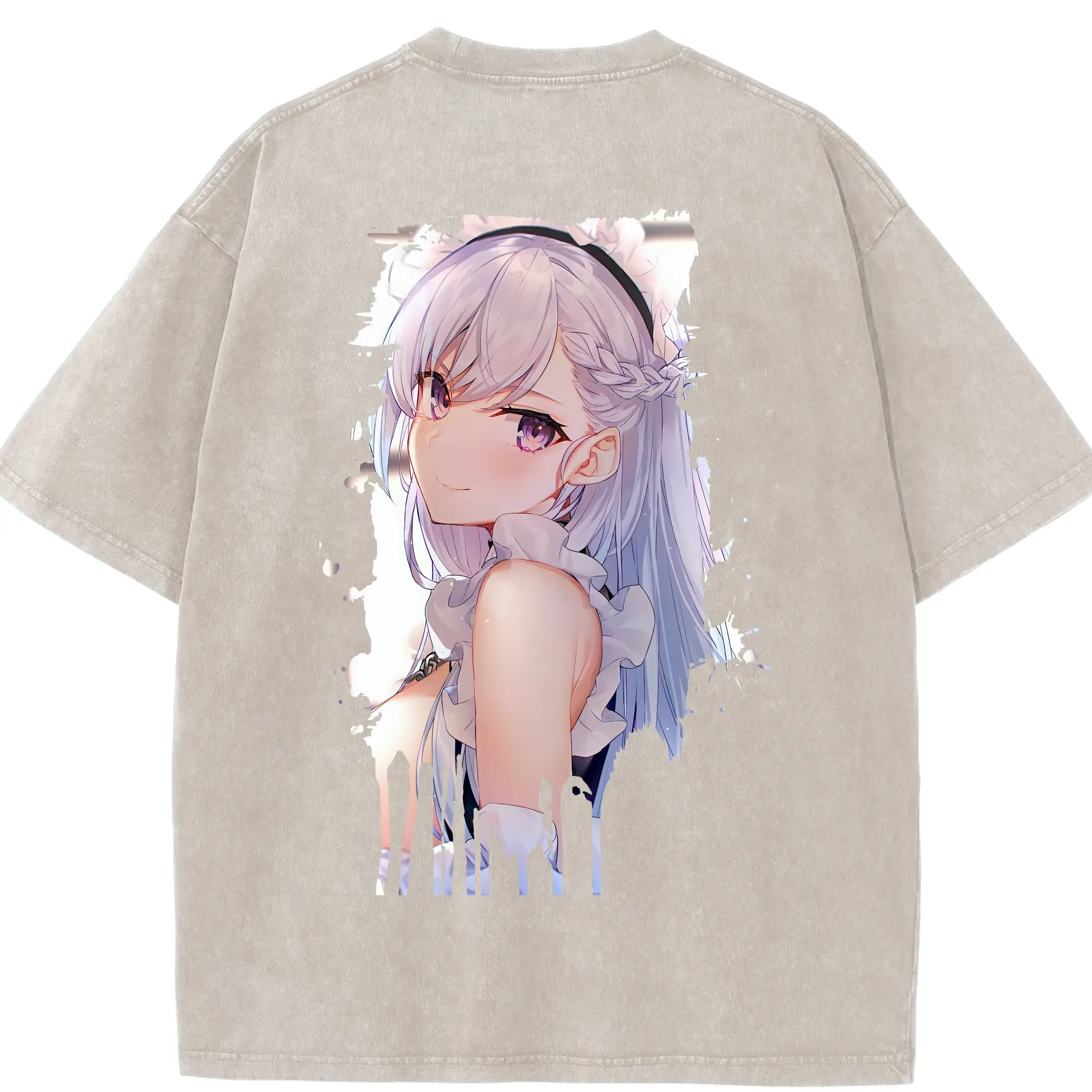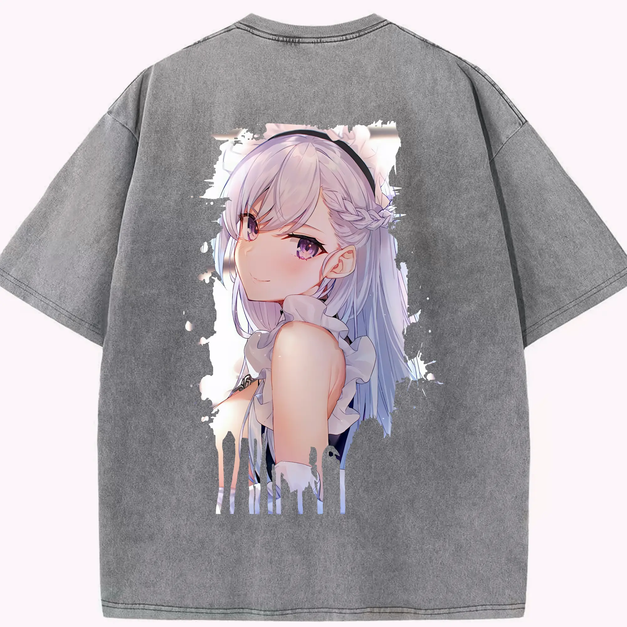 ブルーアーカイブ グッズ 聖園ミカ - 綿100% ヴィンテージ風 半袖Tシャツ ・ 背面プリント ・ 柔らか肌触り ・ 通気性 快適 ・ スポーツ カジュアル 外出用