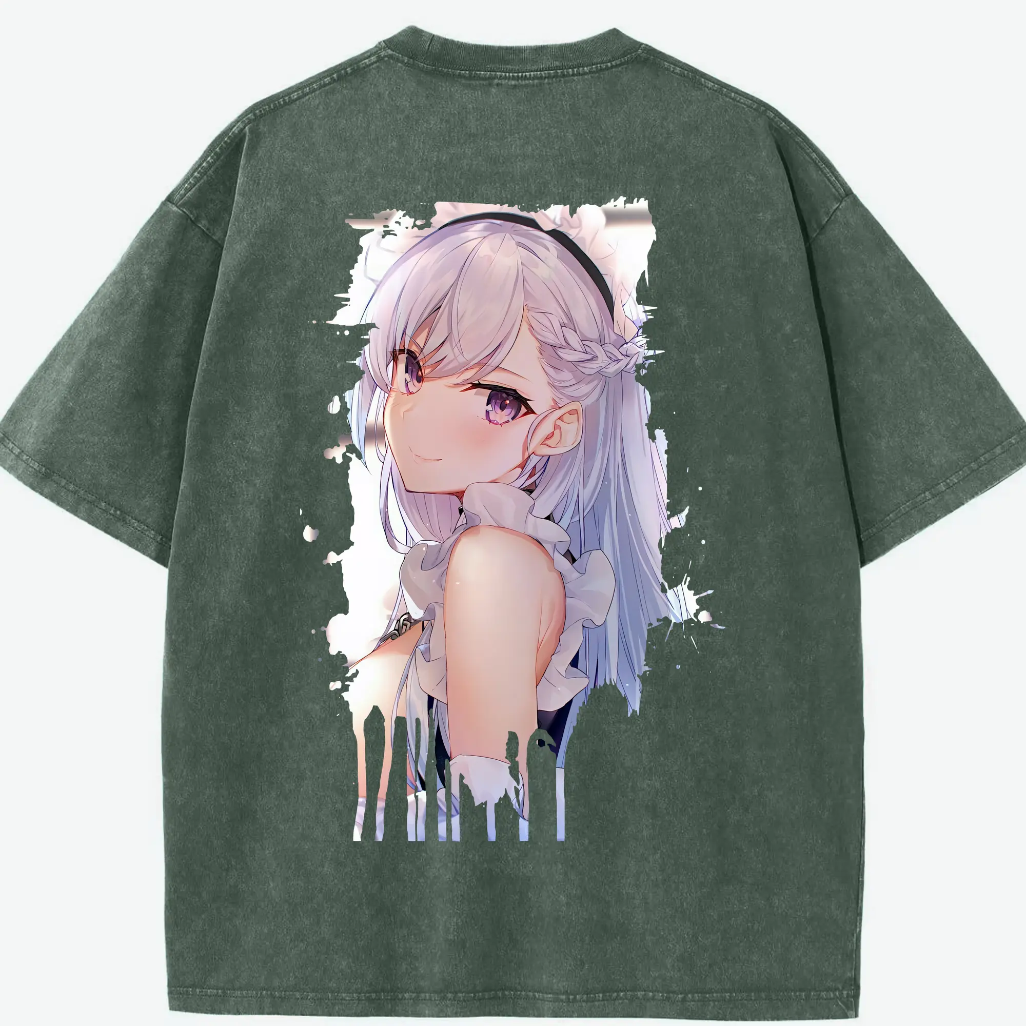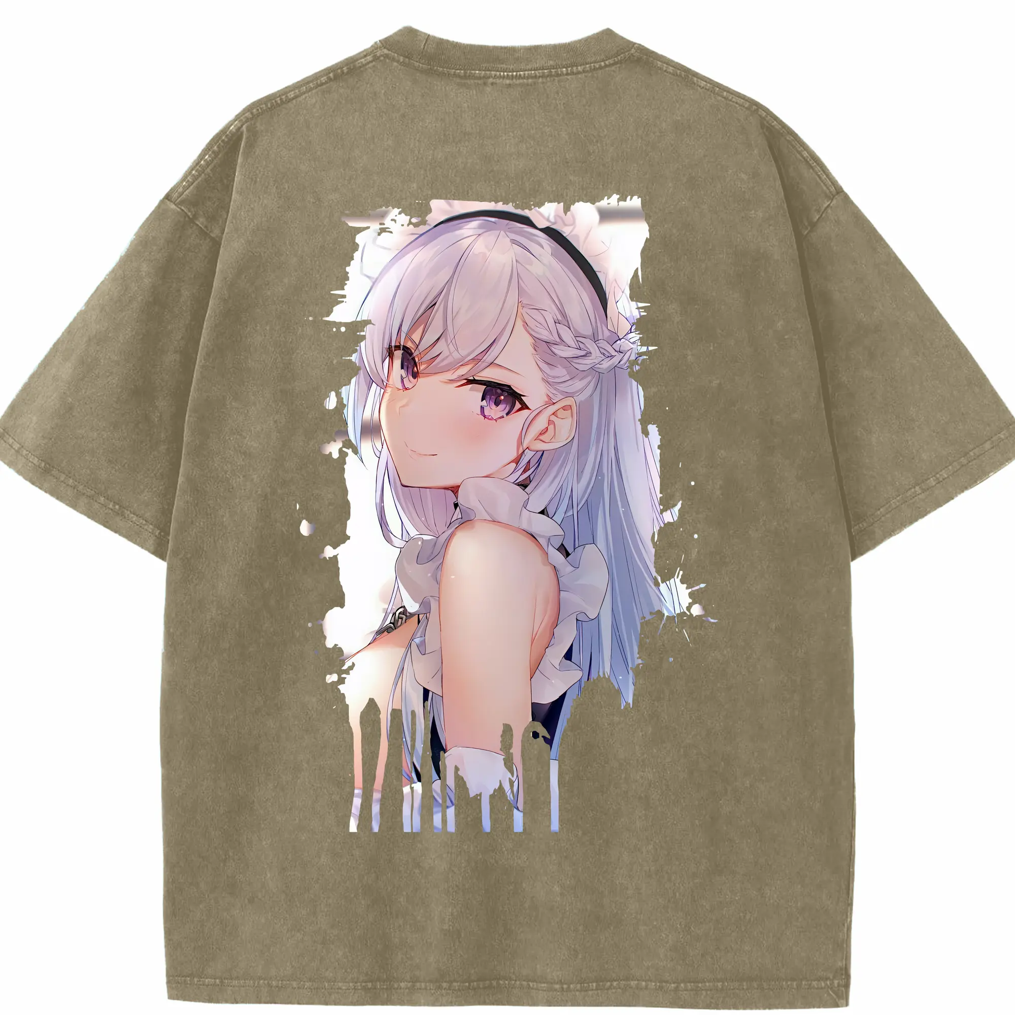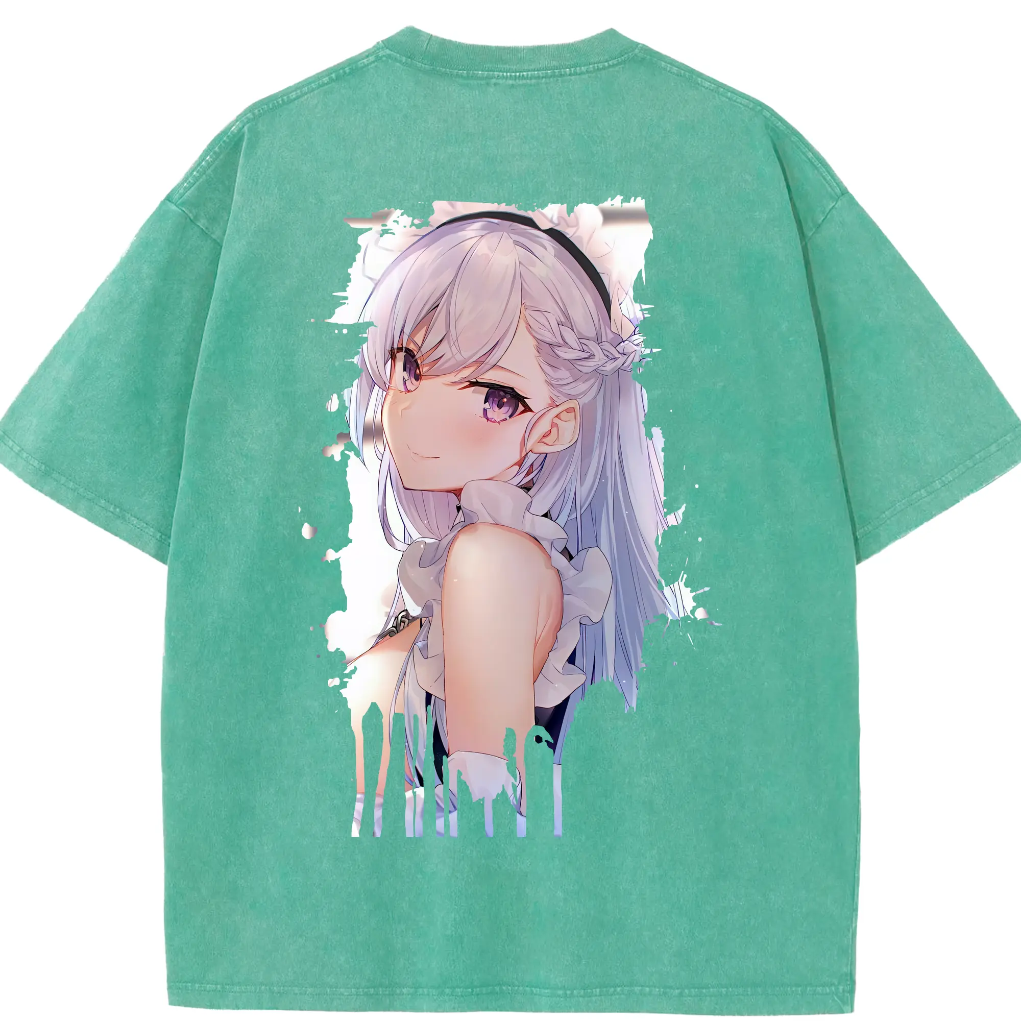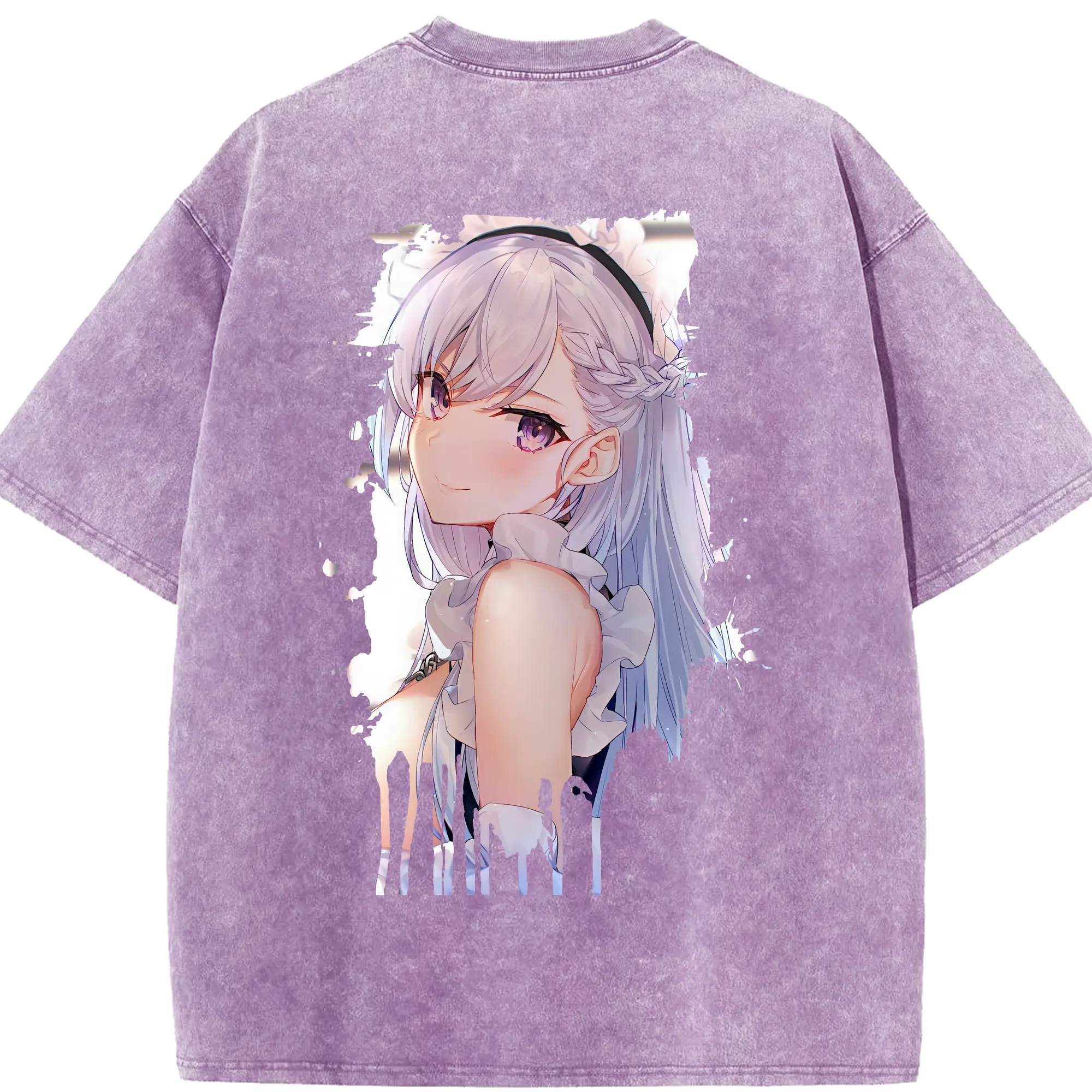 ブルーアーカイブ グッズ 聖園ミカ - 綿100% ヴィンテージ風 半袖Tシャツ ・ 背面プリント ・ 柔らか肌触り ・ 通気性 快適 ・ スポーツ カジュアル 外出用
