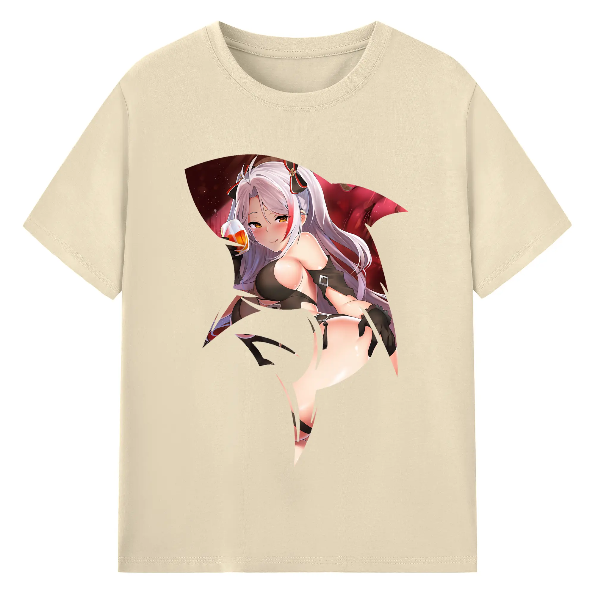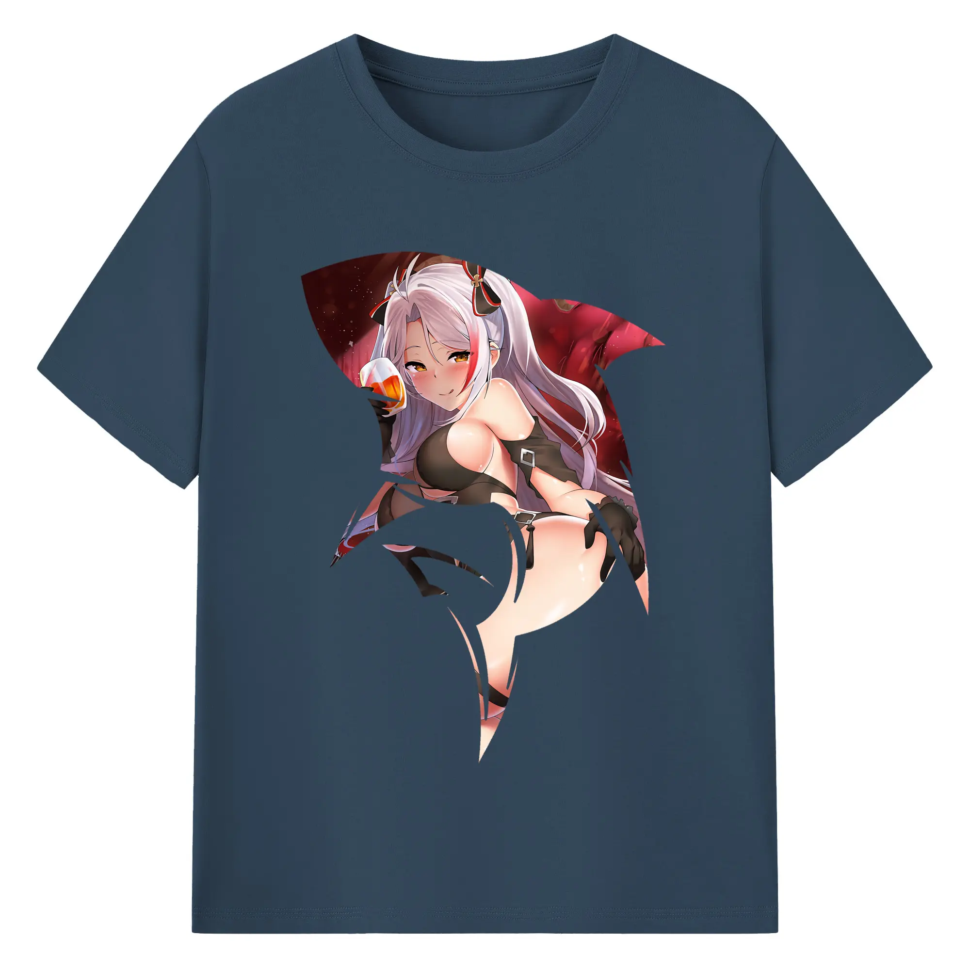 アズールレーン グッズ,プリンツ・オイゲン - 綿100% ヴィンテージ風 半袖Tシャツ ・ フロントプリント ・ 柔らか肌触り ・ 通気性 快適 ・ スポーツ カジュアル 外出用