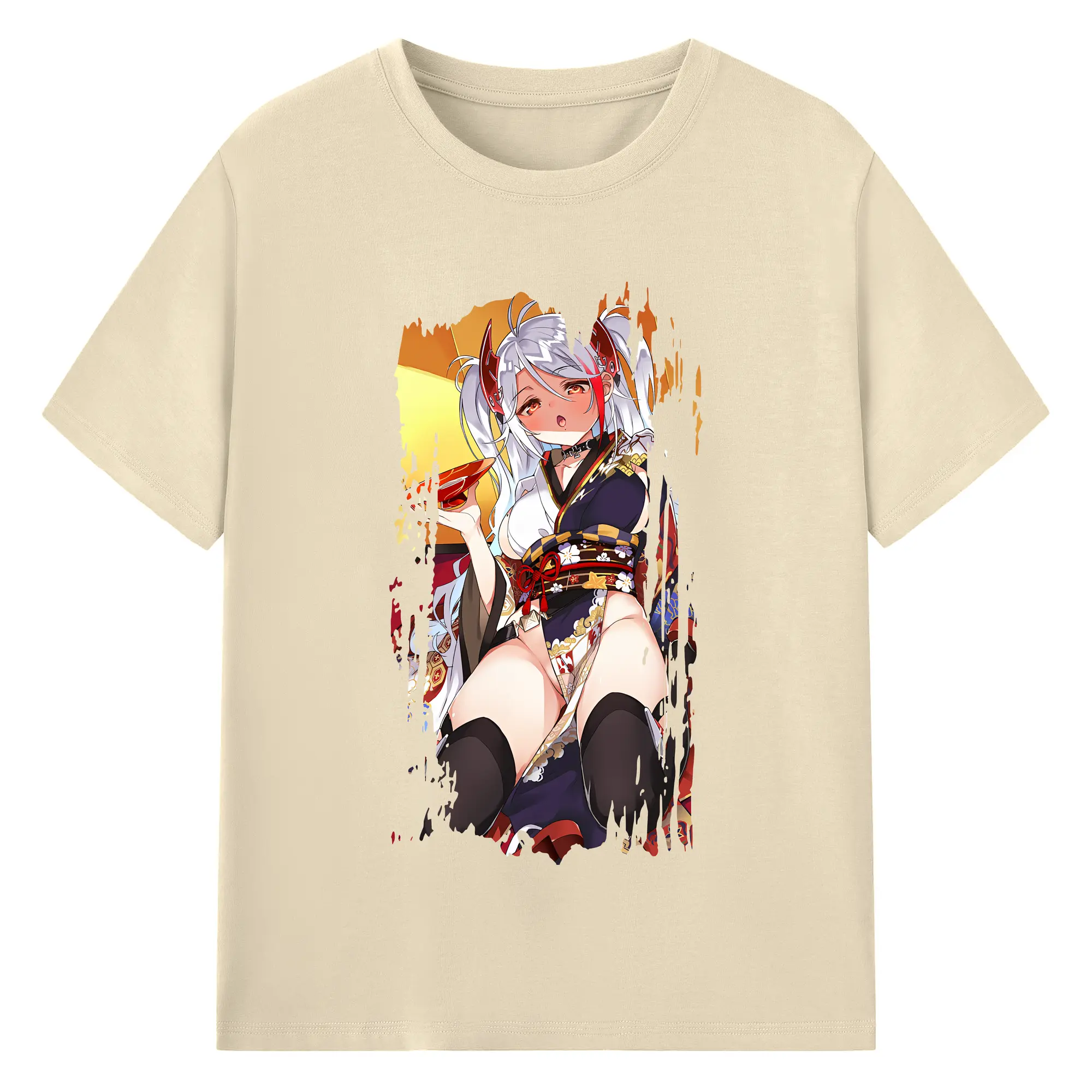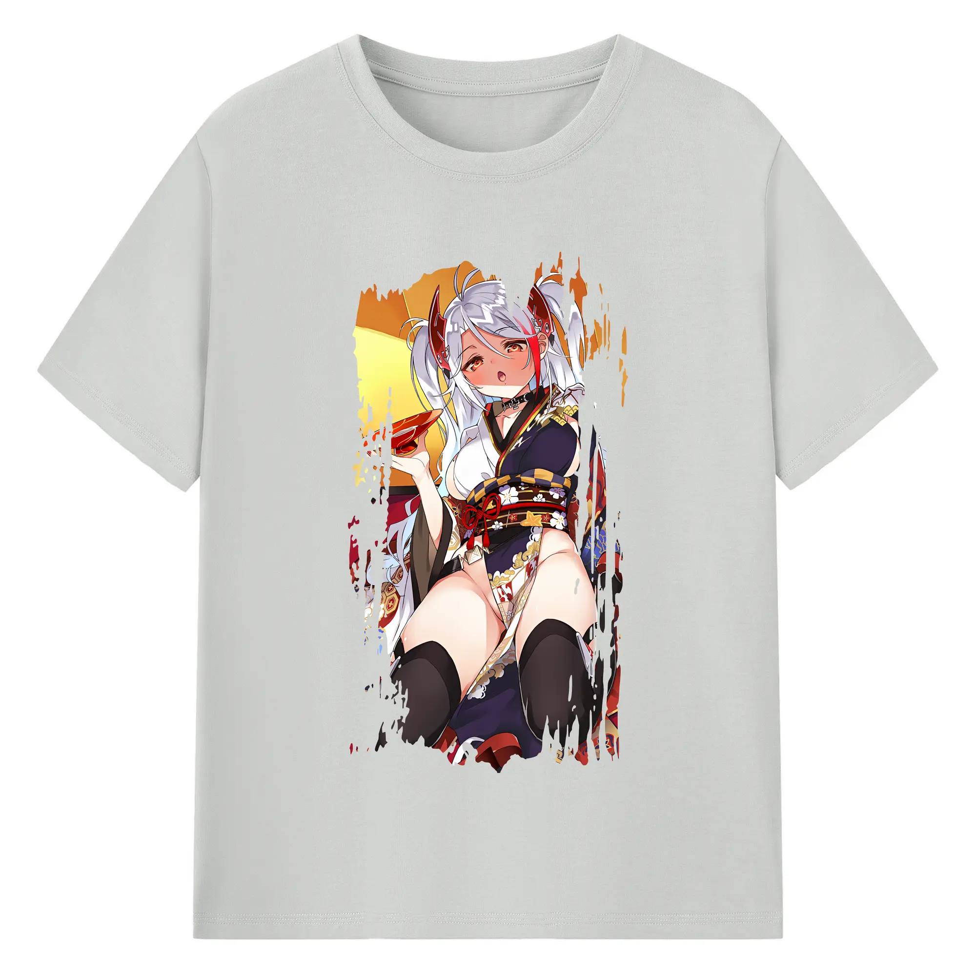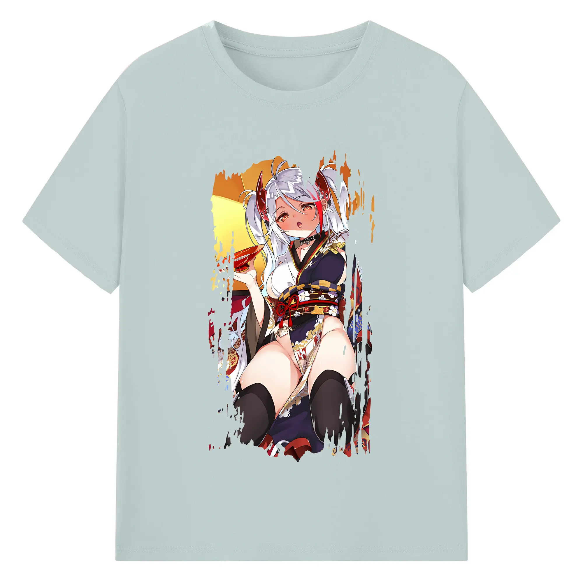 アズールレーン グッズ,プリンツ・オイゲン - 綿100% ヴィンテージ風 半袖Tシャツ ・ フロントプリント ・ 柔らか肌触り ・ 通気性 快適 ・ スポーツ カジュアル 外出用