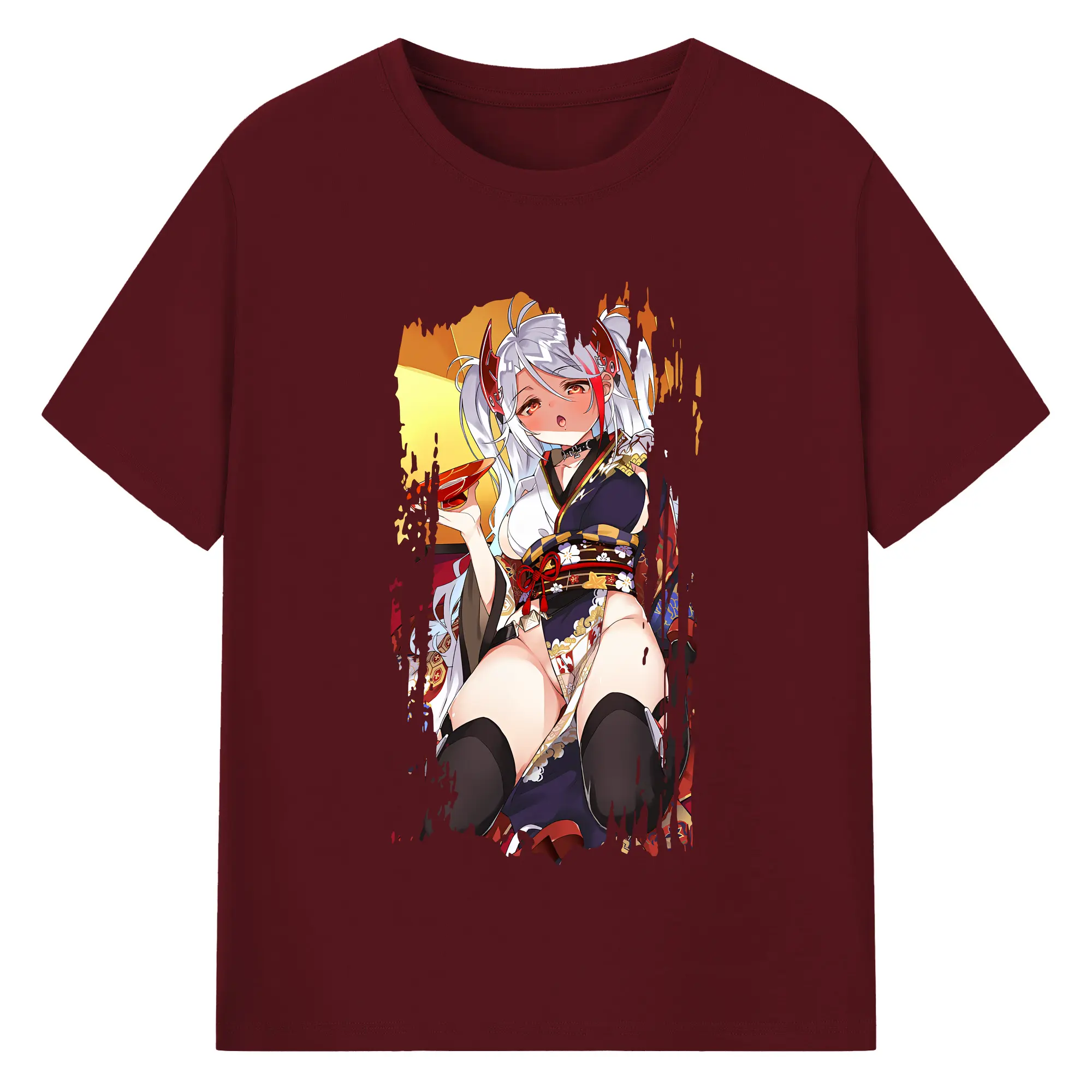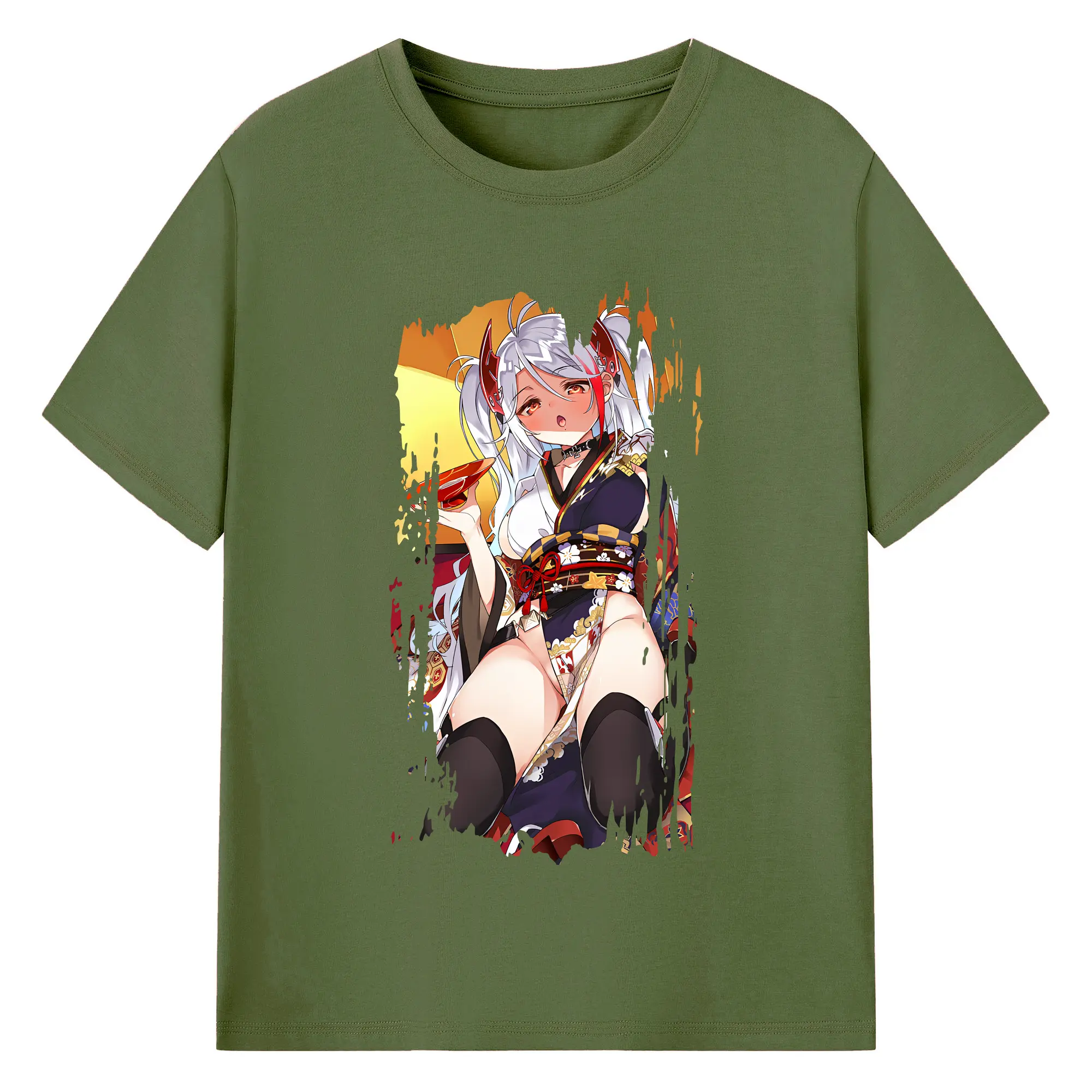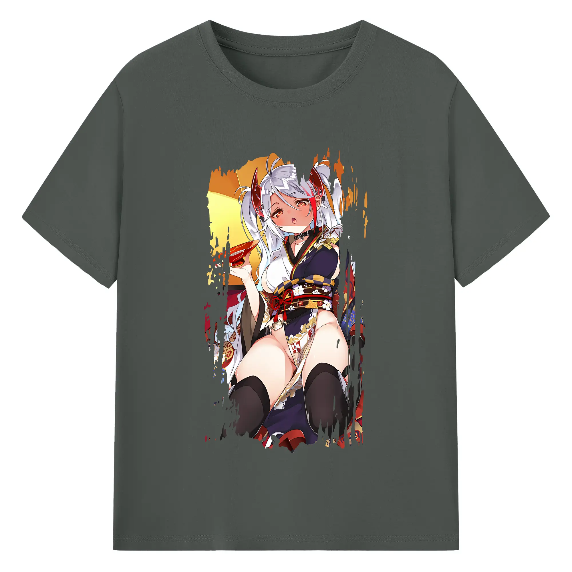 アズールレーン グッズ,プリンツ・オイゲン - 綿100% ヴィンテージ風 半袖Tシャツ ・ フロントプリント ・ 柔らか肌触り ・ 通気性 快適 ・ スポーツ カジュアル 外出用