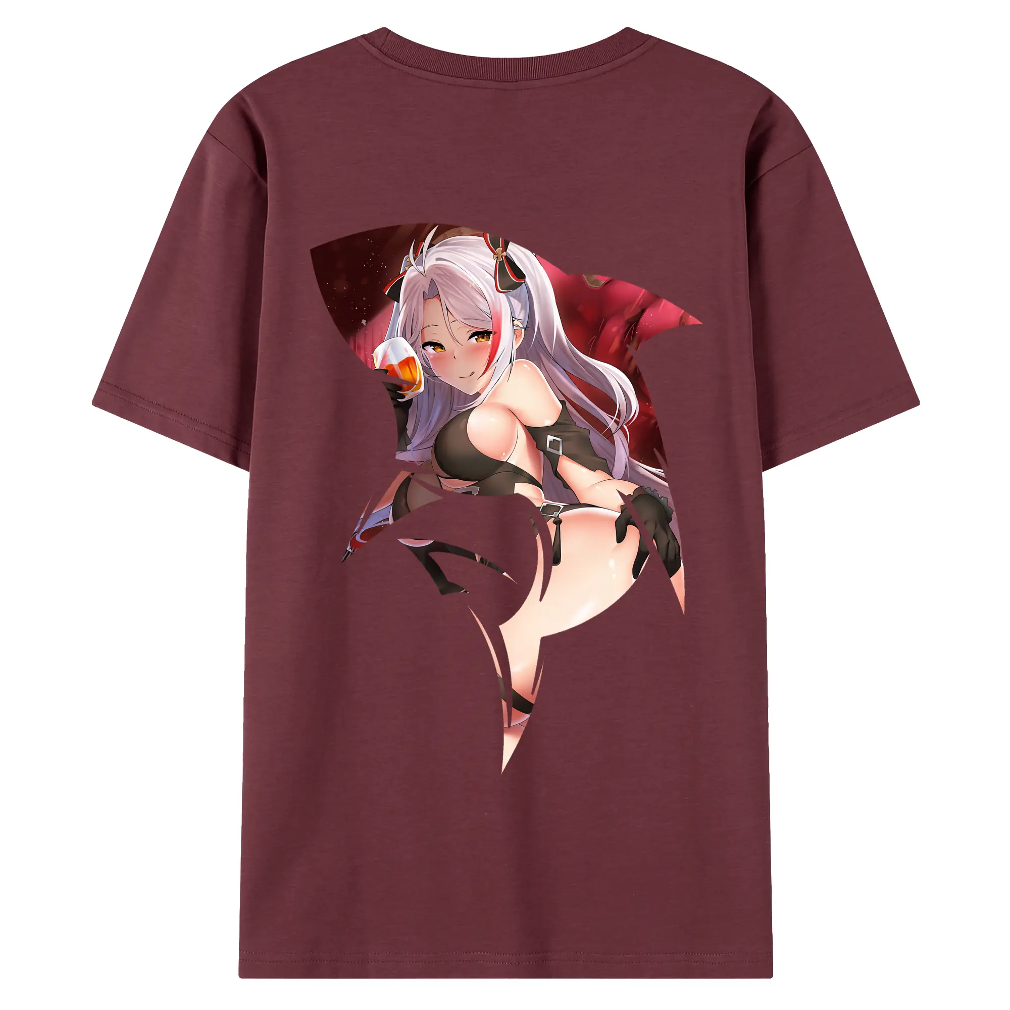 アズールレーン グッズ,プリンツ・オイゲン - 綿100% ヴィンテージ風 半袖Tシャツ ・ 背面プリント ・ 柔らか肌触り ・ 通気性 快適 ・ スポーツ カジュアル 外出用