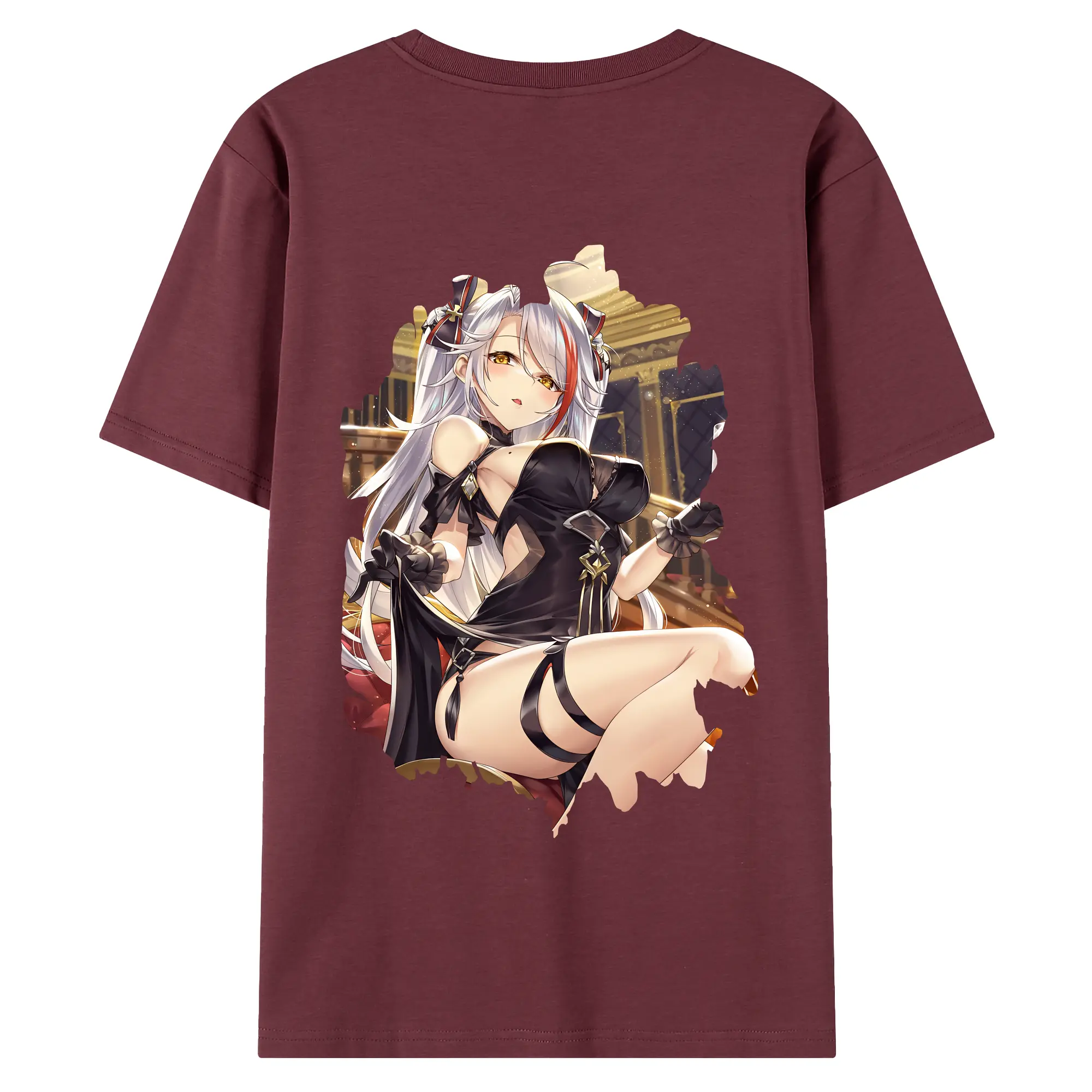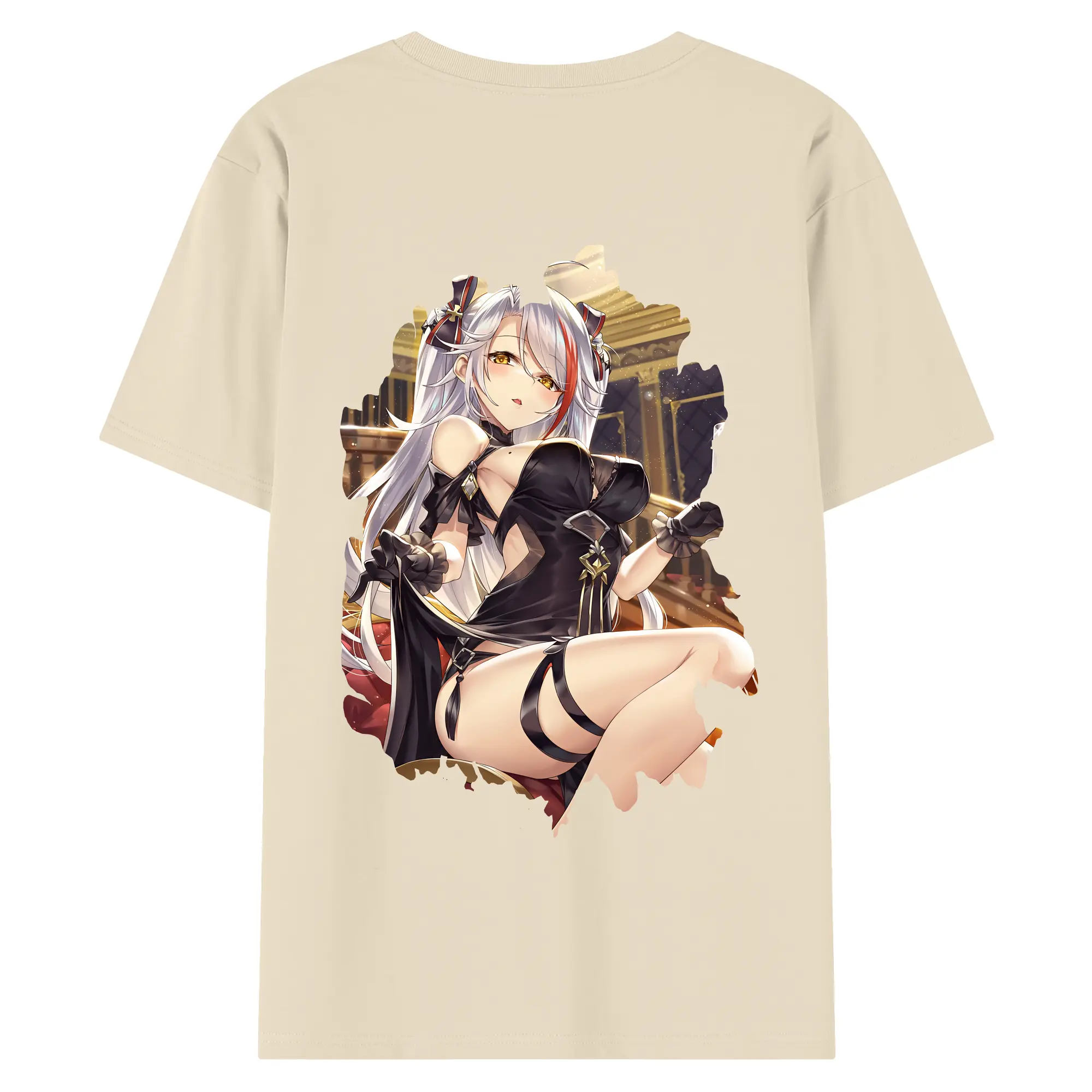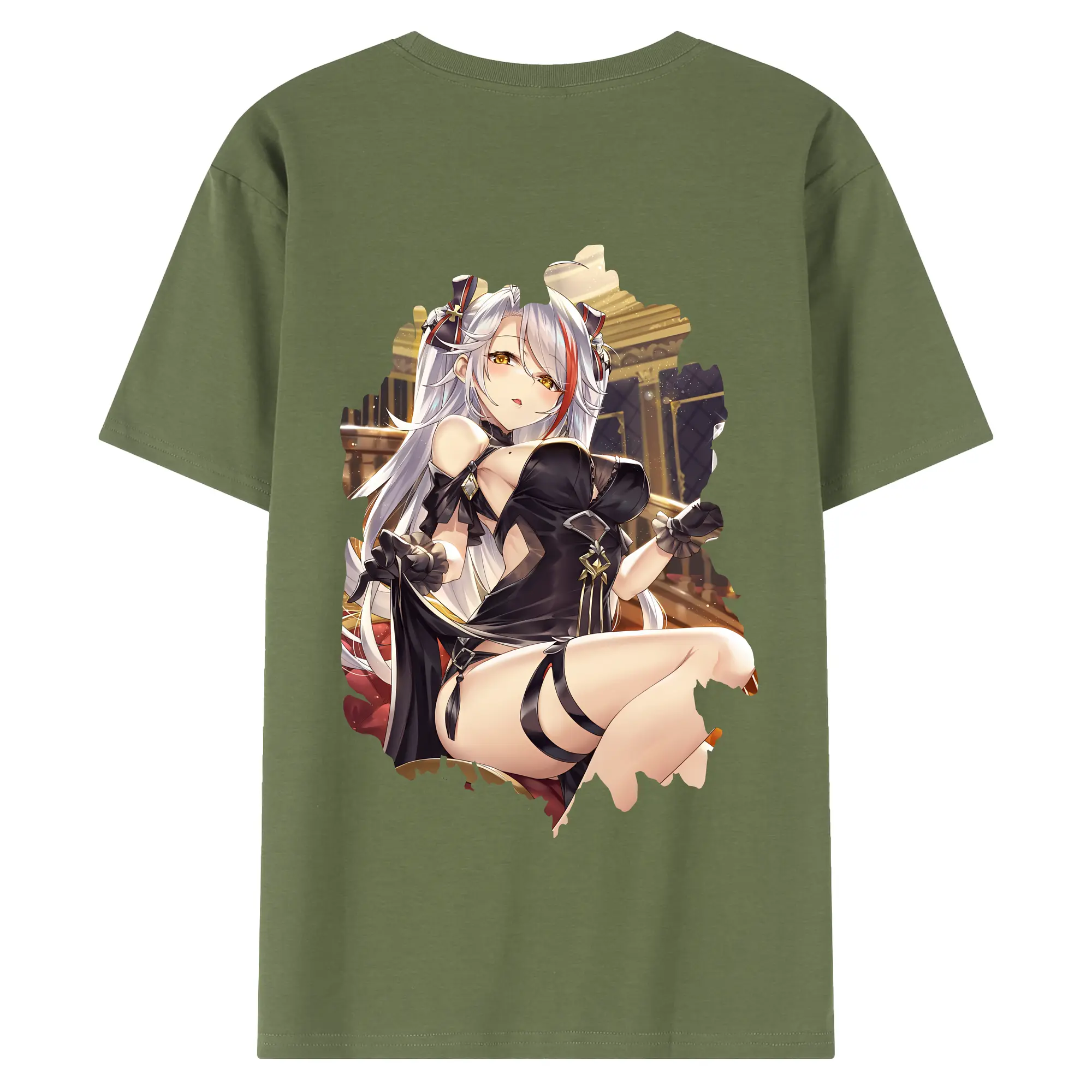 アズールレーン グッズ,プリンツ・オイゲン - 綿100% ヴィンテージ風 半袖Tシャツ ・ 背面プリント ・ 柔らか肌触り ・ 通気性 快適 ・ スポーツ カジュアル 外出用