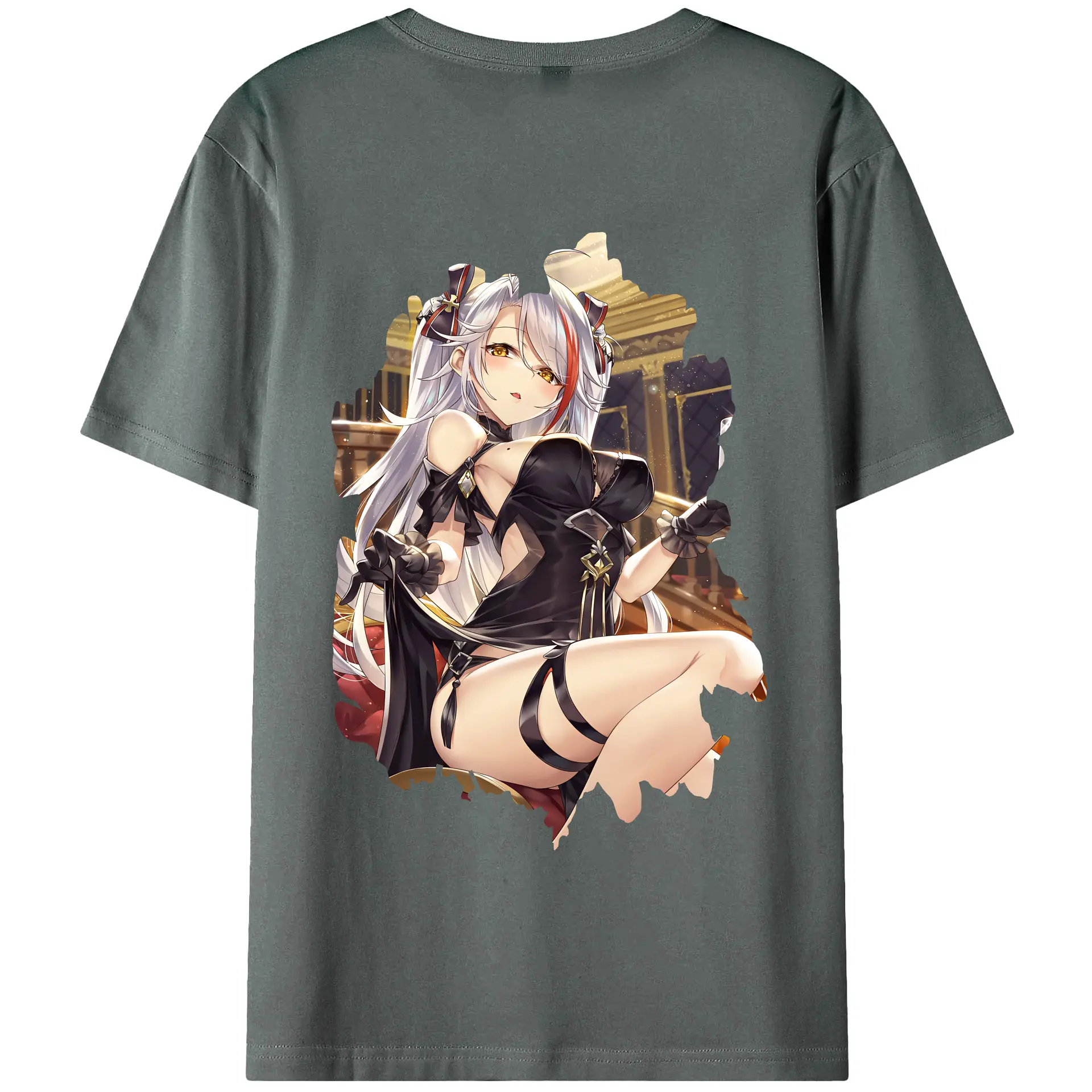 アズールレーン グッズ,プリンツ・オイゲン - 綿100% ヴィンテージ風 半袖Tシャツ ・ フロントプリント ・ 柔らか肌触り ・ 通気性 快適 ・ スポーツ カジュアル 外出用
