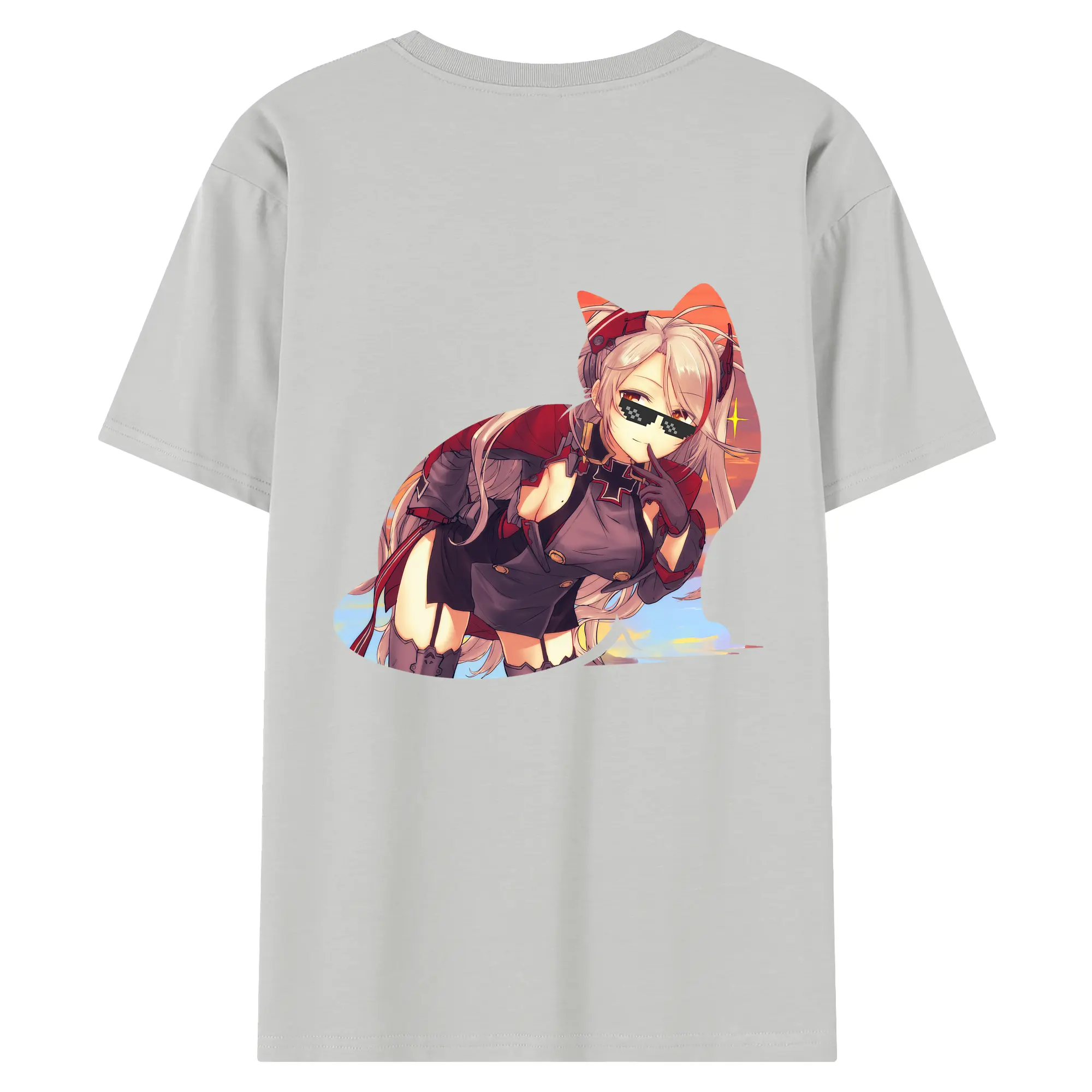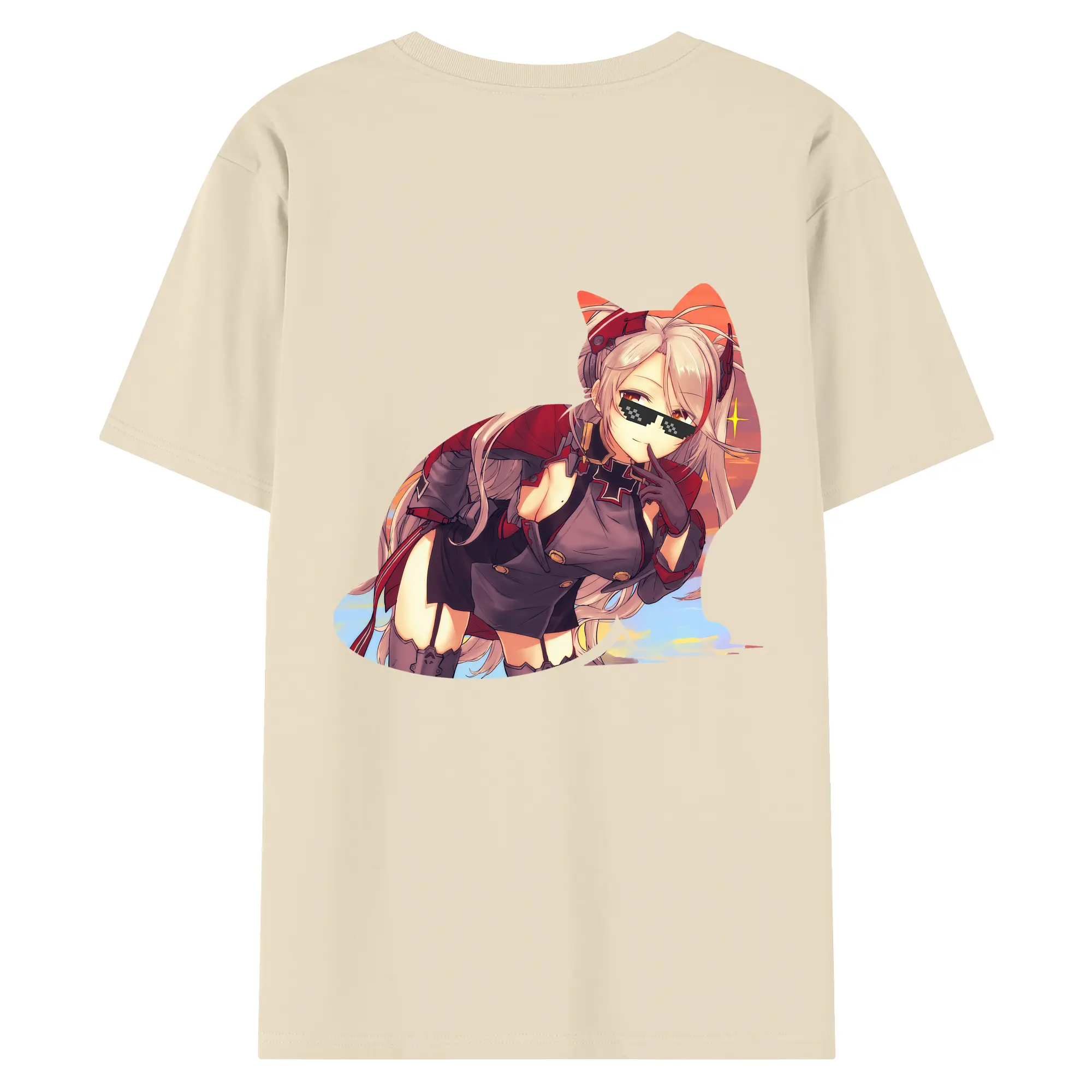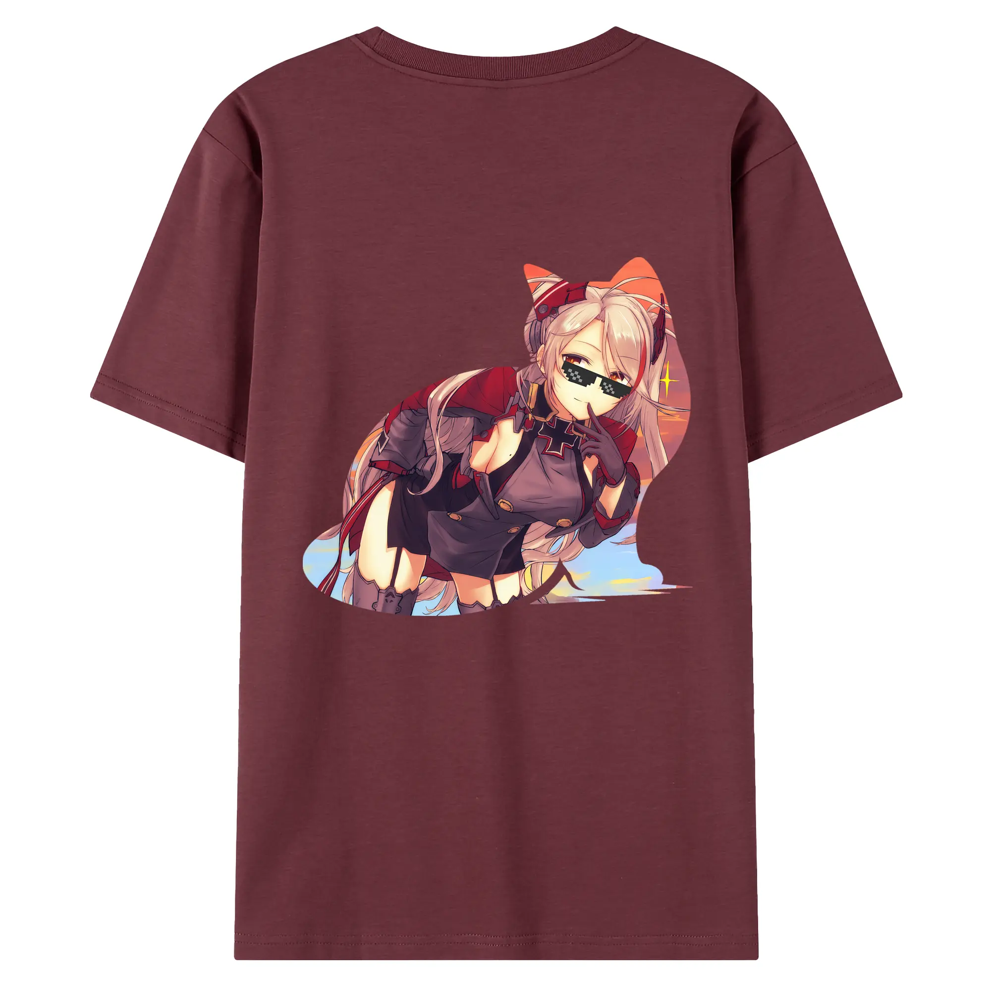 アズールレーン グッズ,プリンツ・オイゲン - 綿100% ヴィンテージ風 半袖Tシャツ ・ 背面プリント ・ 柔らか肌触り ・ 通気性 快適 ・ スポーツ カジュアル 外出用
