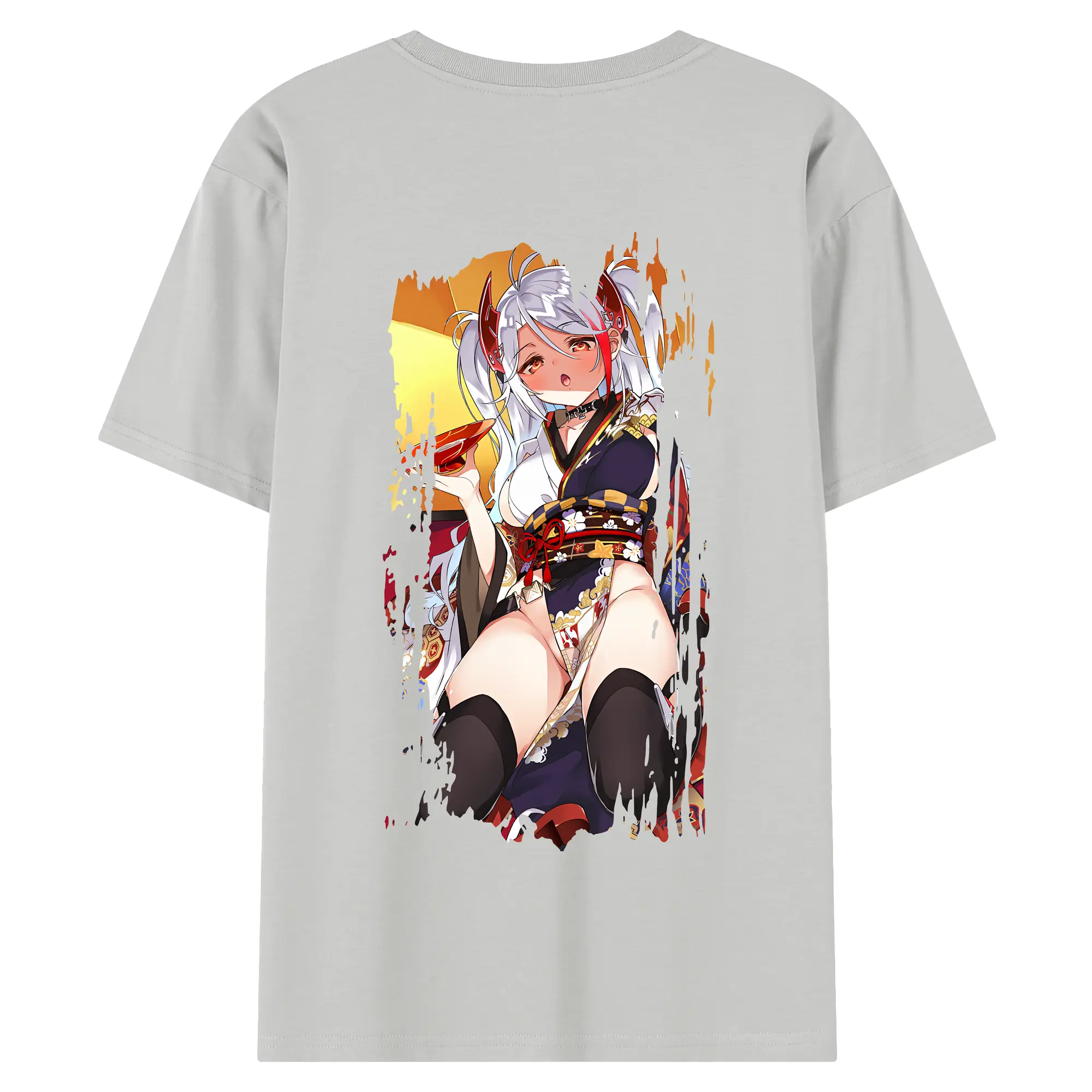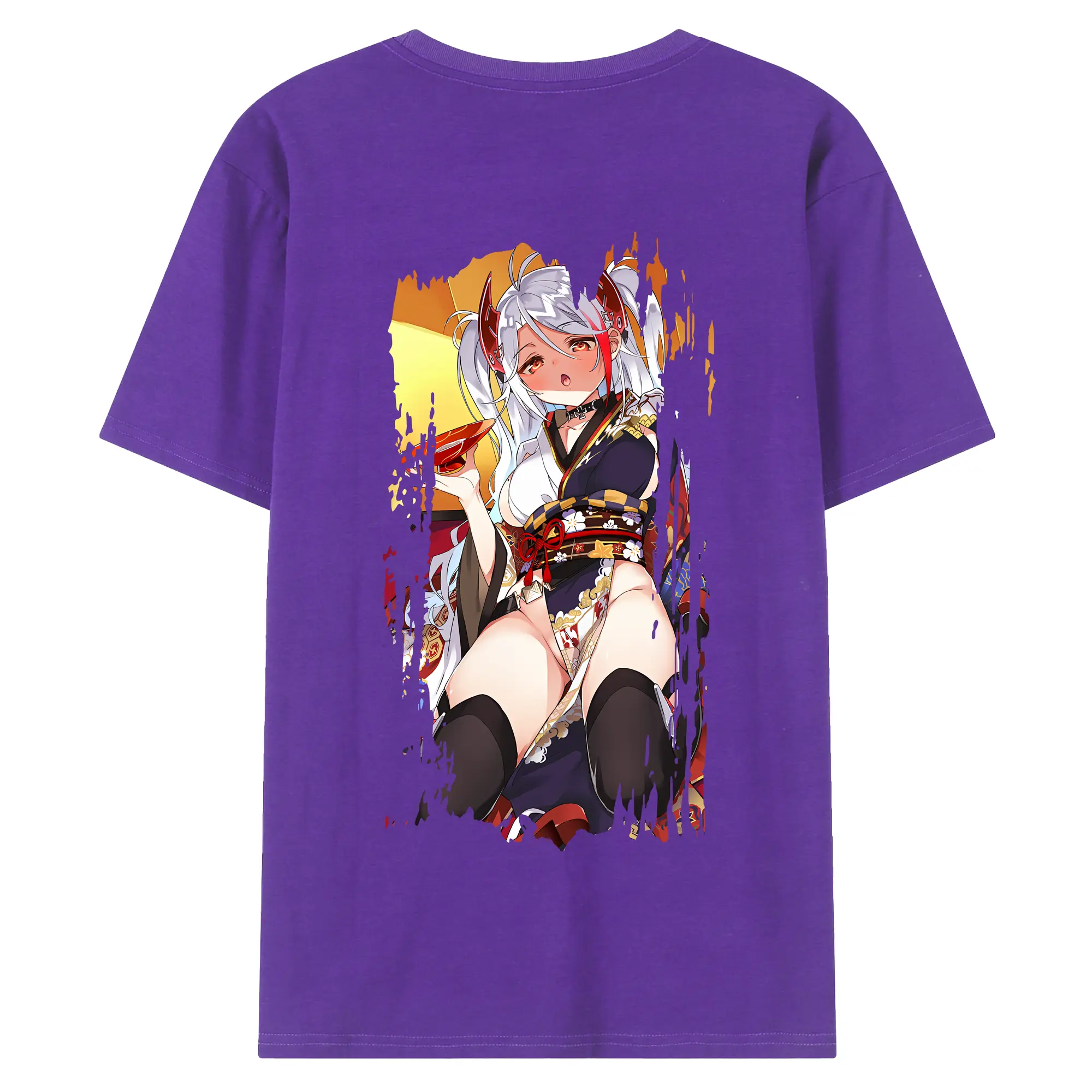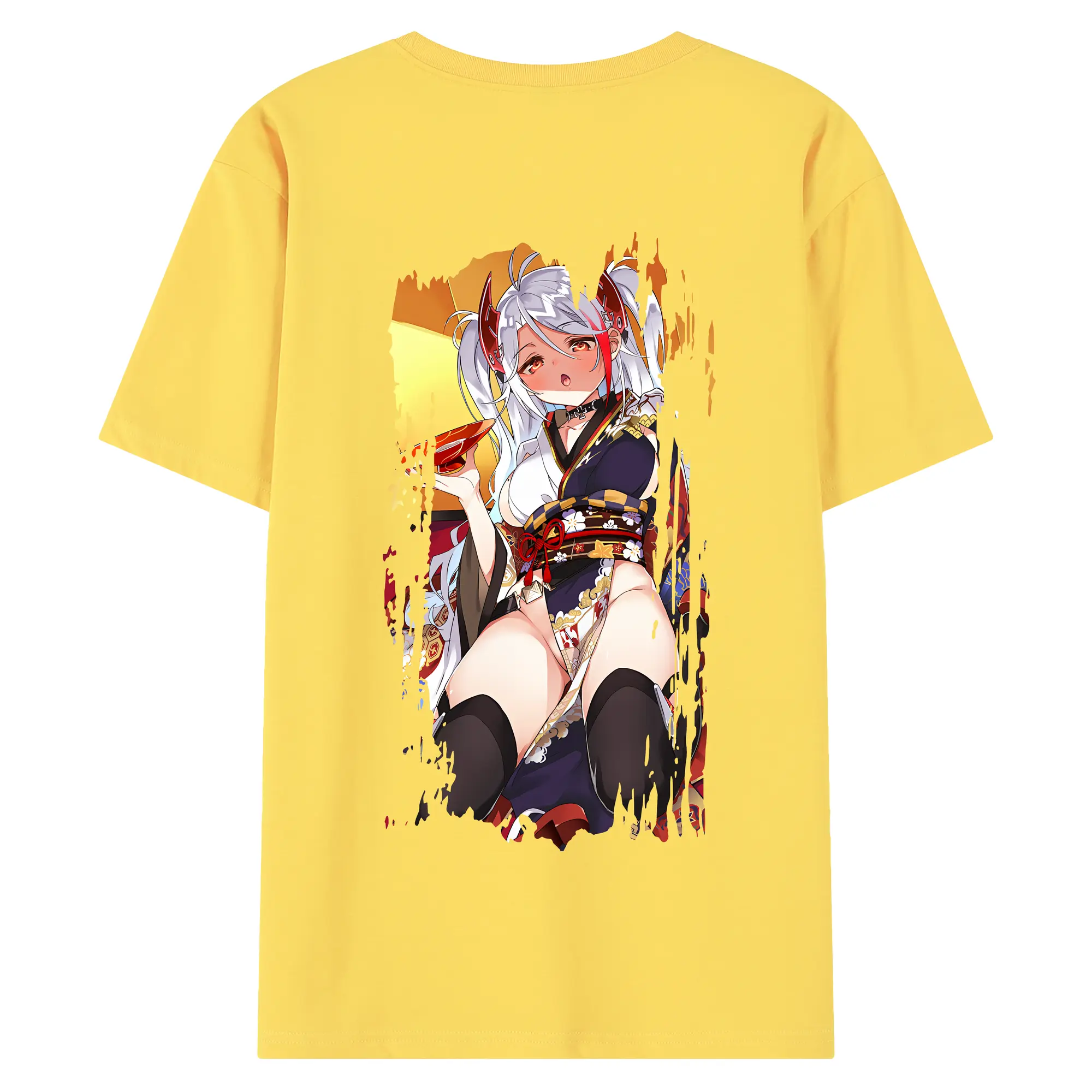 アズールレーン グッズ,プリンツ・オイゲン - 綿100% ヴィンテージ風 半袖Tシャツ ・ 背面プリント ・ 柔らか肌触り ・ 通気性 快適 ・ スポーツ カジュアル 外出用