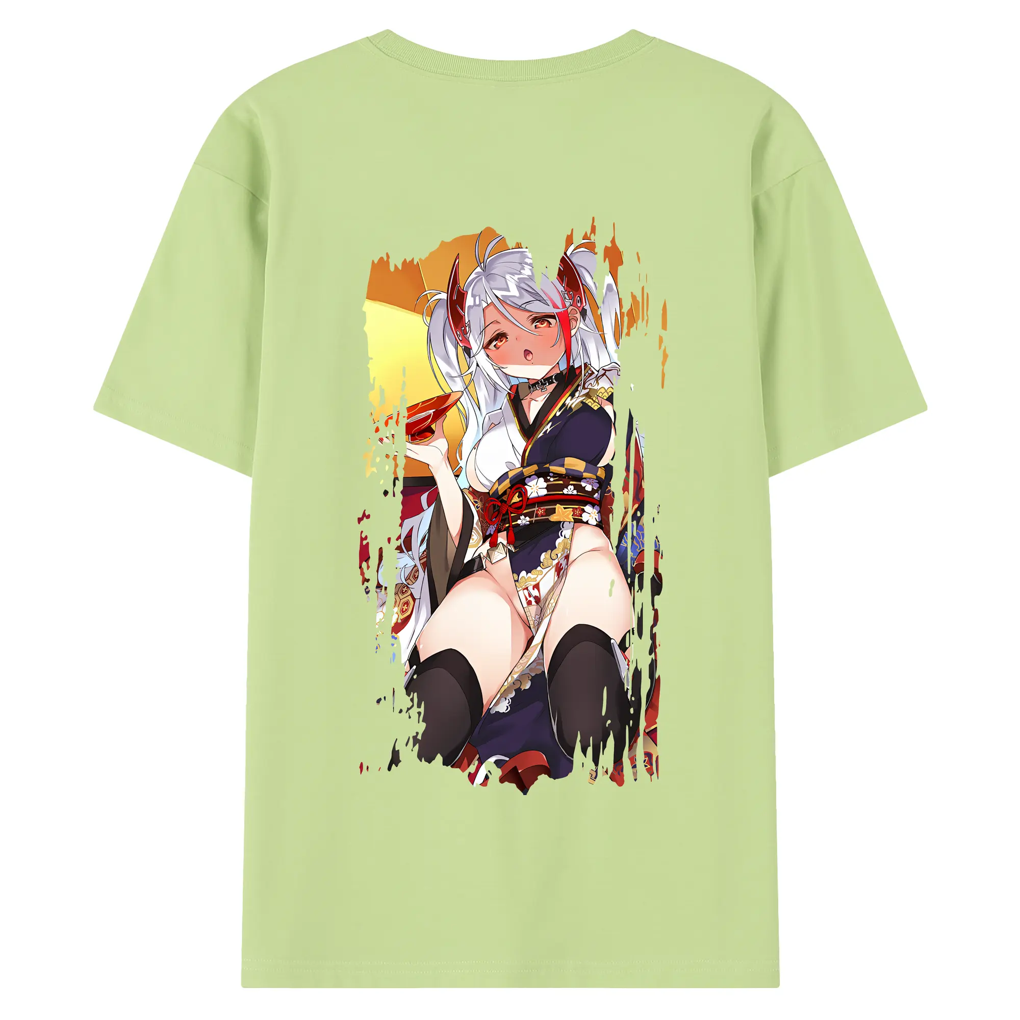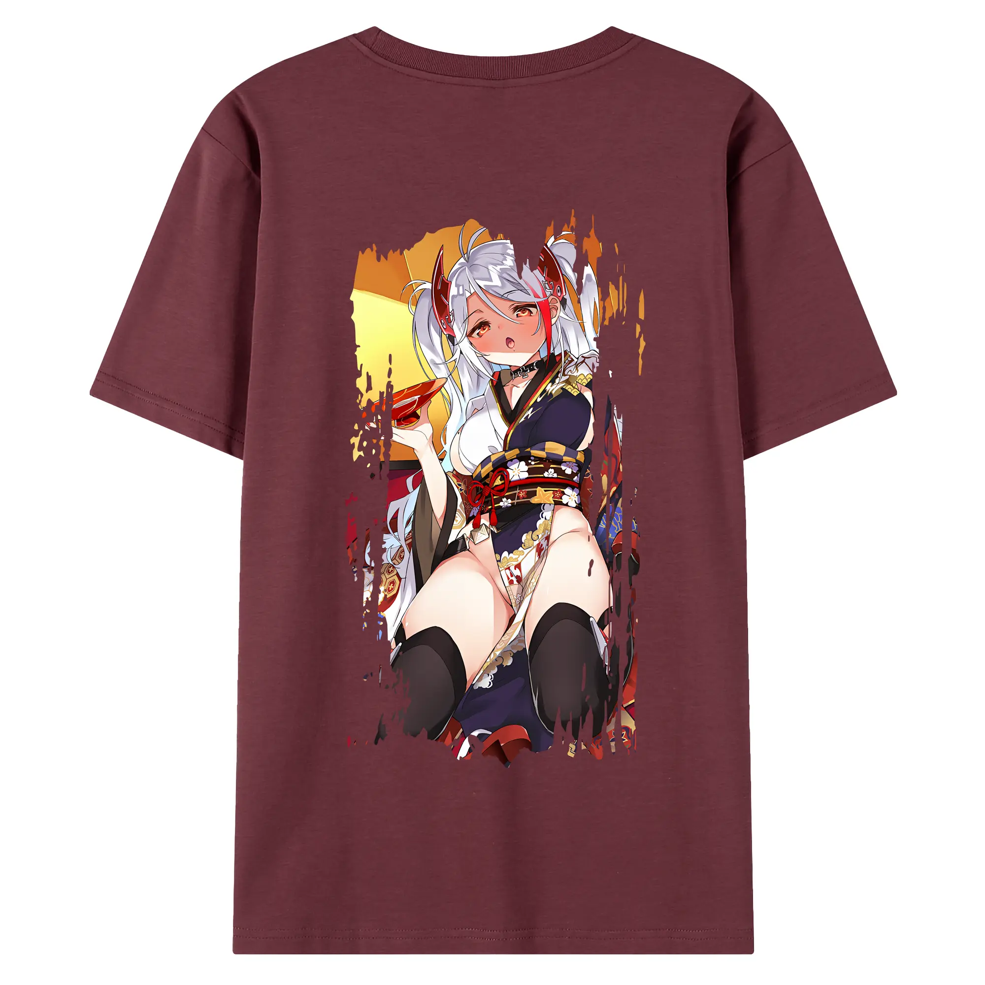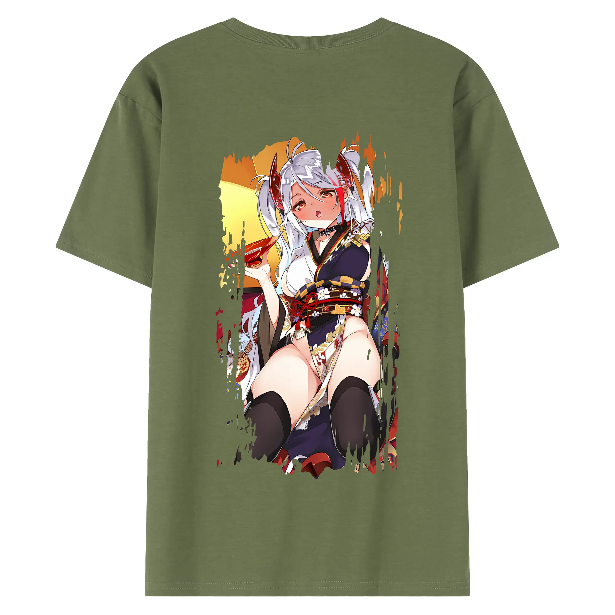 アズールレーン グッズ,プリンツ・オイゲン - 綿100% ヴィンテージ風 半袖Tシャツ ・ 背面プリント ・ 柔らか肌触り ・ 通気性 快適 ・ スポーツ カジュアル 外出用