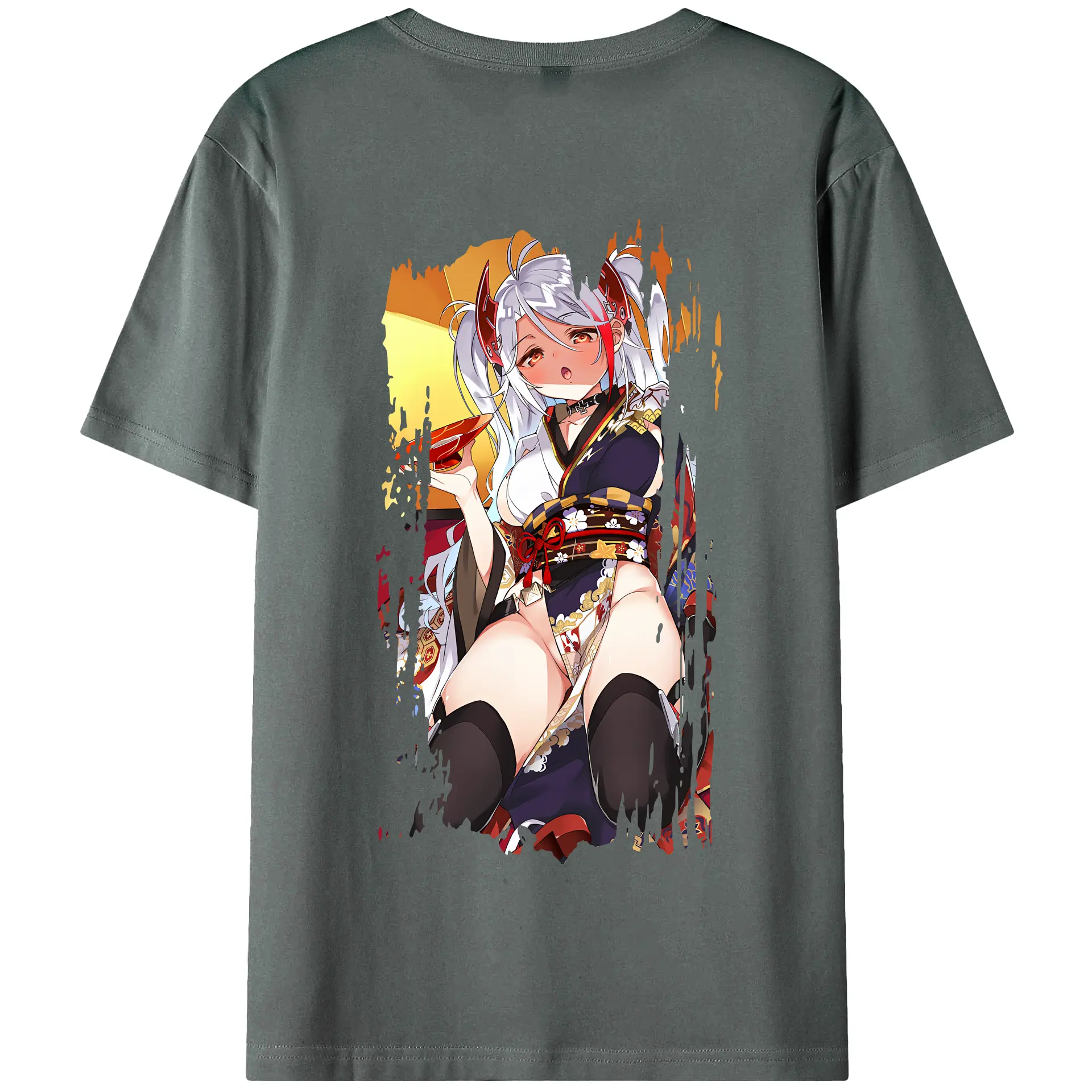 アズールレーン グッズ,プリンツ・オイゲン - 綿100% ヴィンテージ風 半袖Tシャツ ・ フロントプリント ・ 柔らか肌触り ・ 通気性 快適 ・ スポーツ カジュアル 外出用