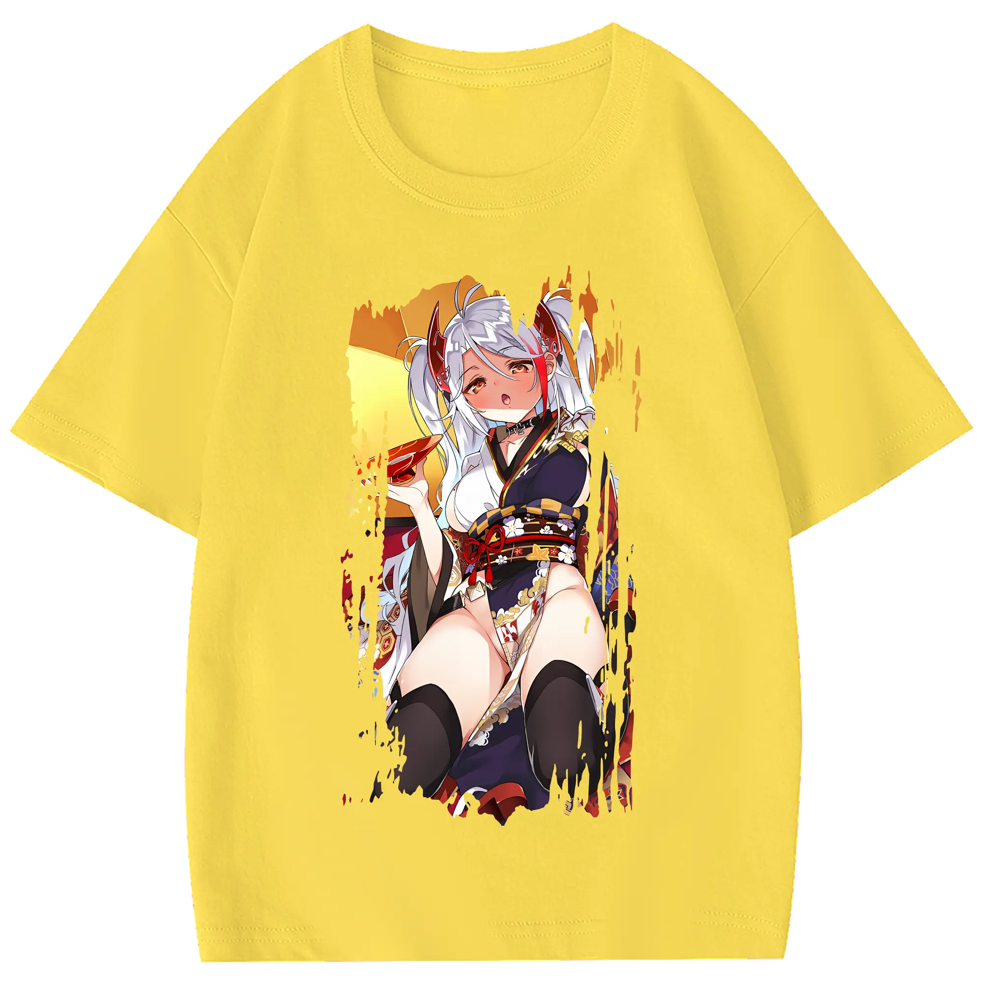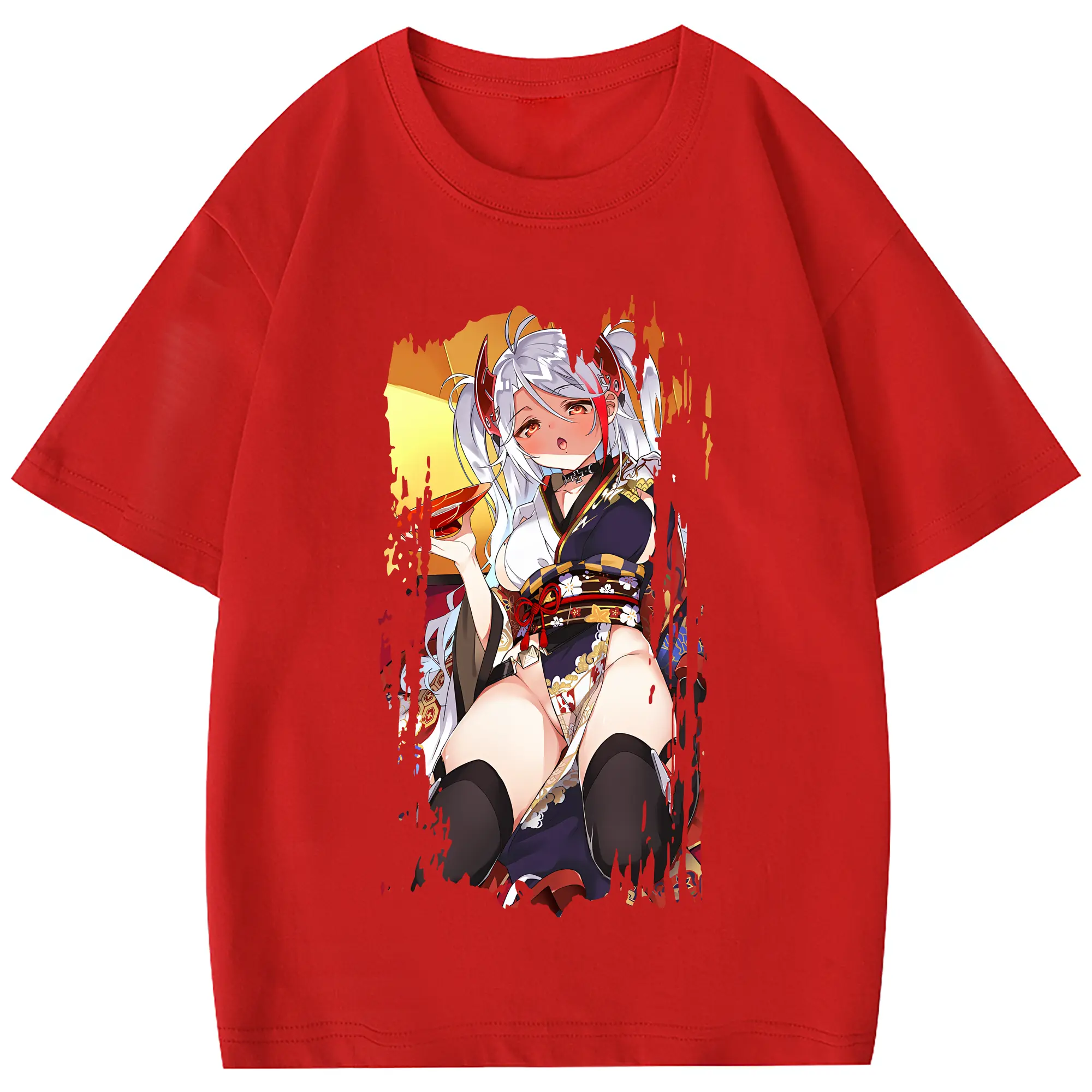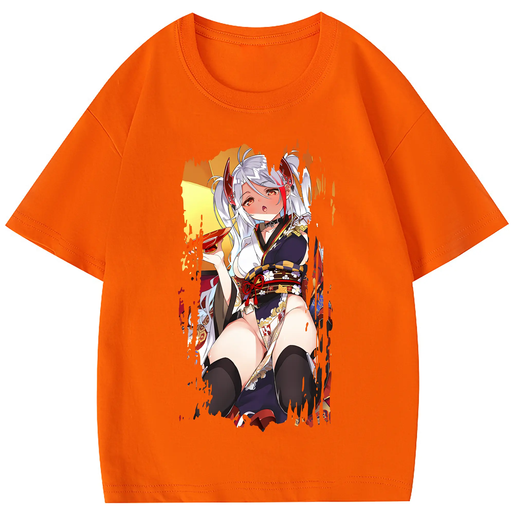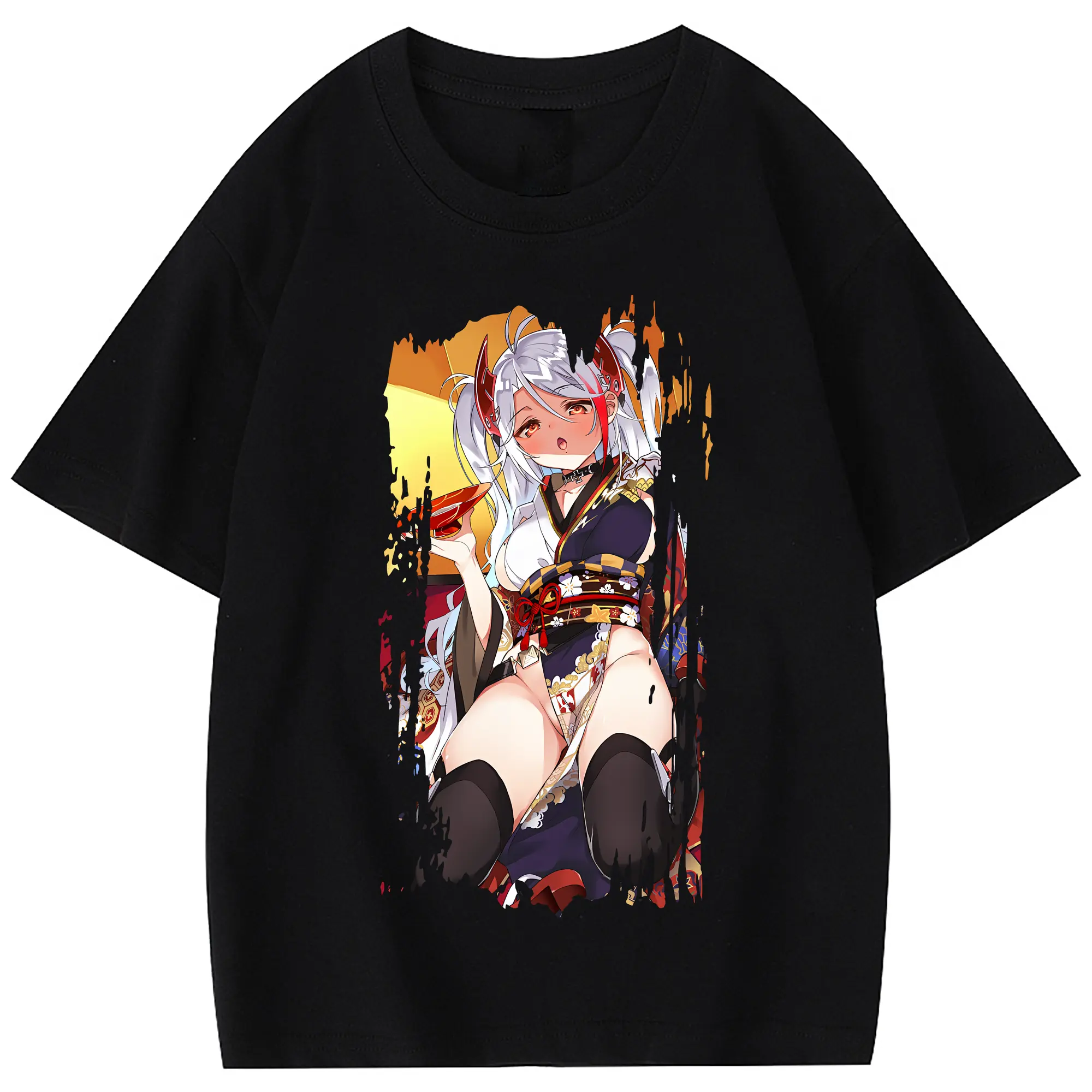 アズールレーン グッズ,プリンツ・オイゲン - 綿100% ヴィンテージ風 半袖Tシャツ ・ フロントプリント ・ 柔らか肌触り ・ 通気性 快適 ・ スポーツ カジュアル 外出用