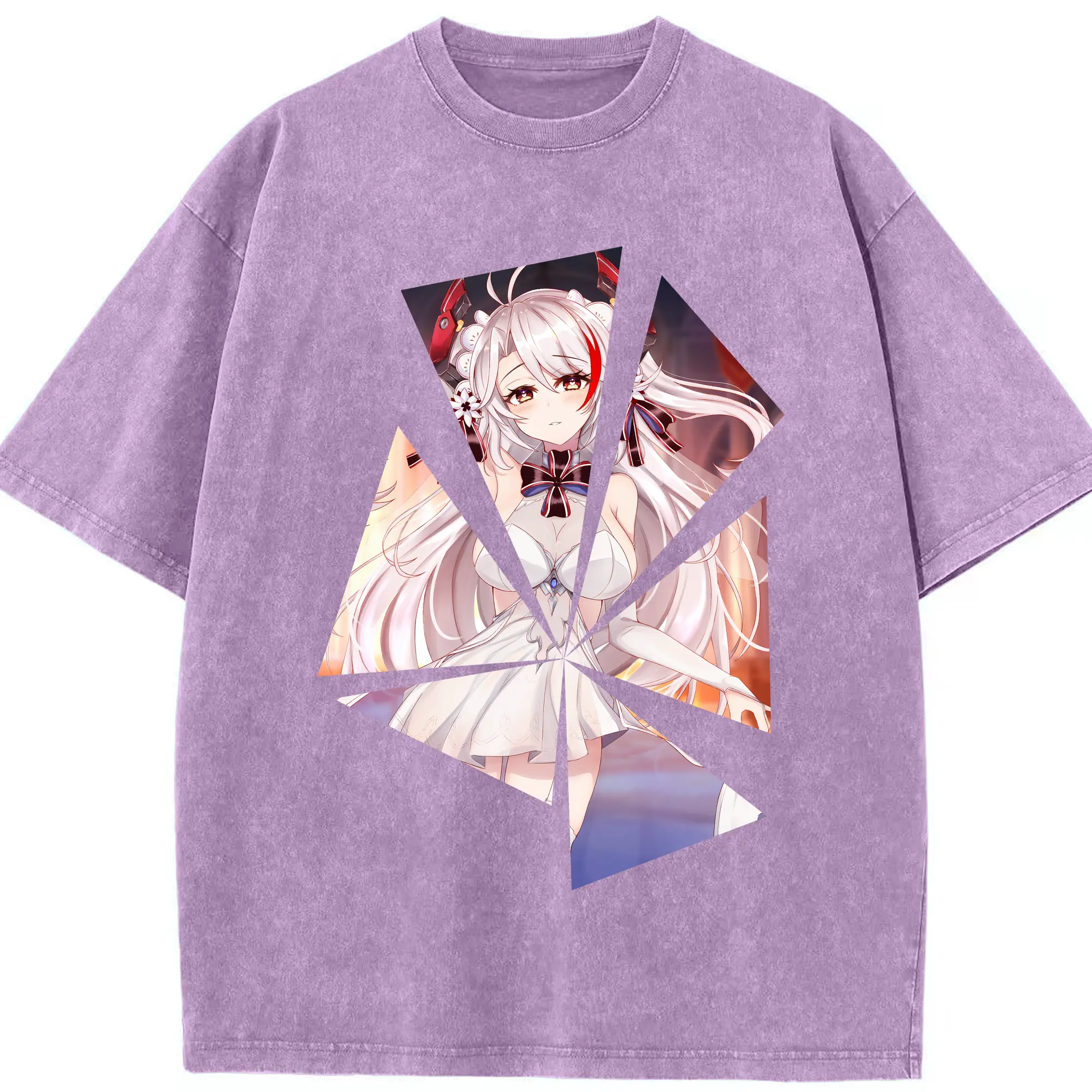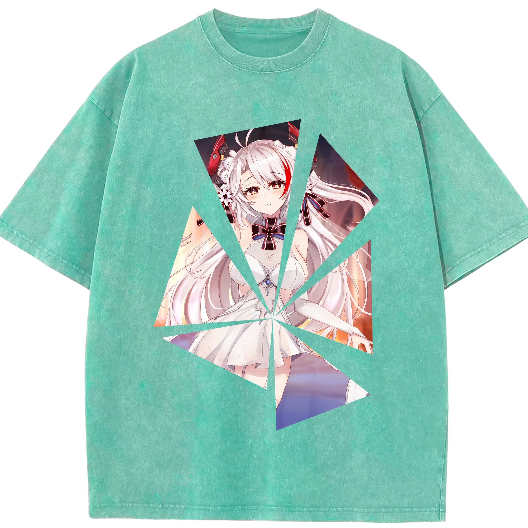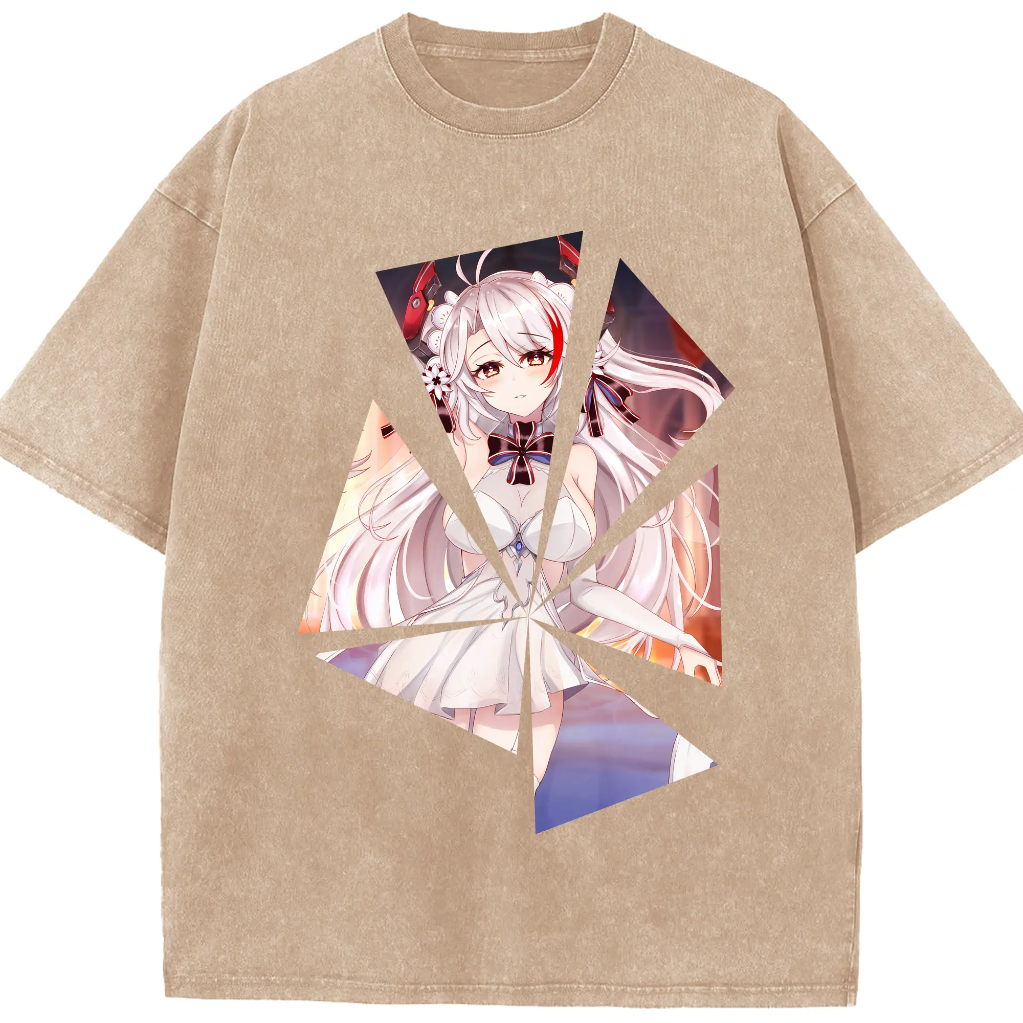 アズールレーン グッズ,プリンツ・オイゲン - 綿100% ヴィンテージ風 半袖Tシャツ ・ 背面プリント ・ 柔らか肌触り ・ 通気性 快適 ・ スポーツ カジュアル 外出用