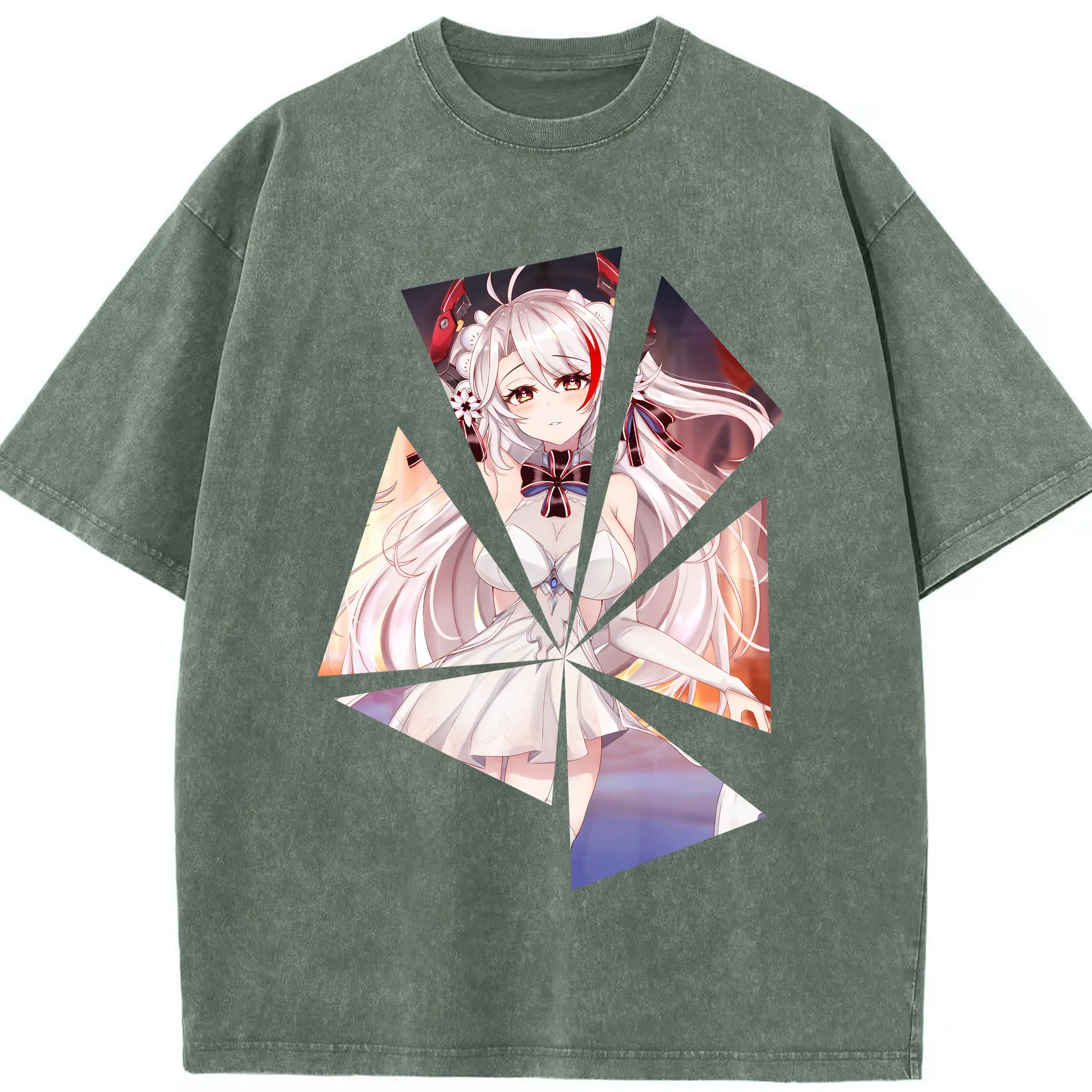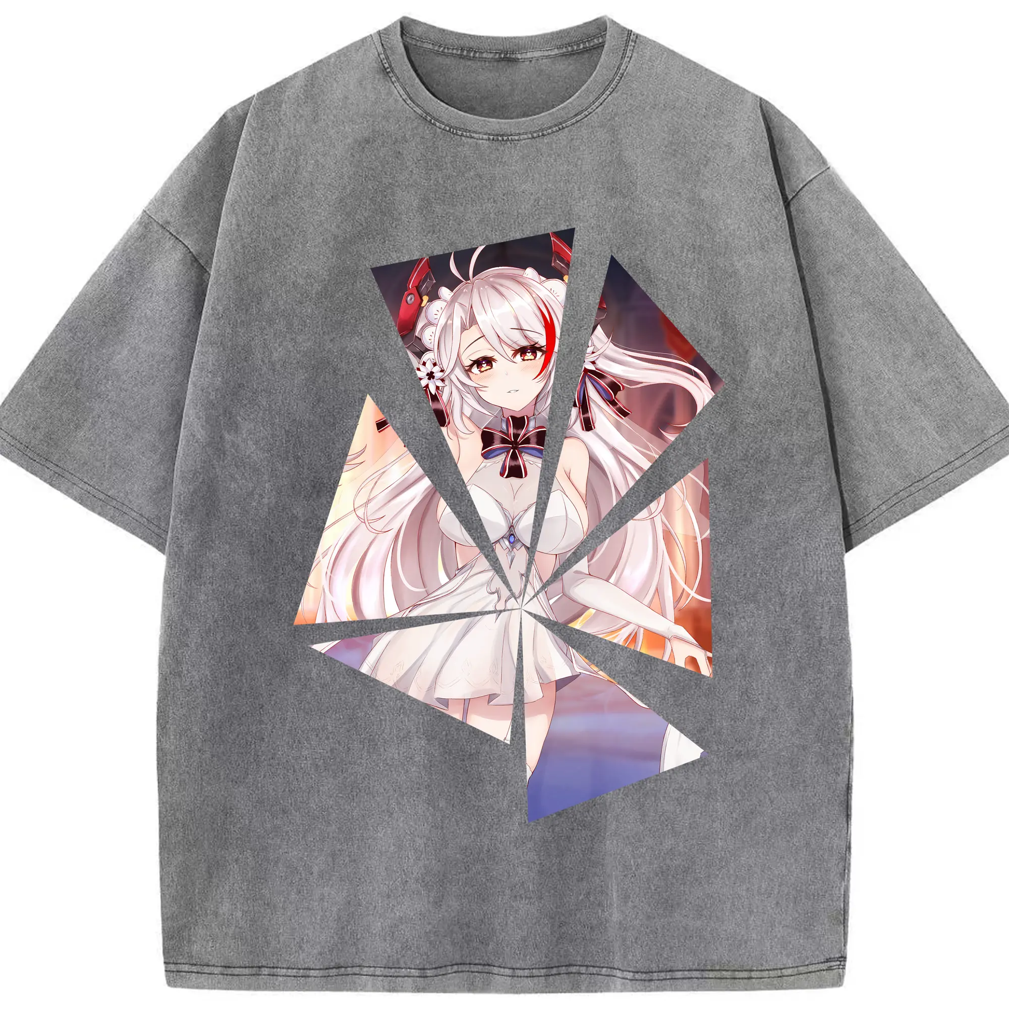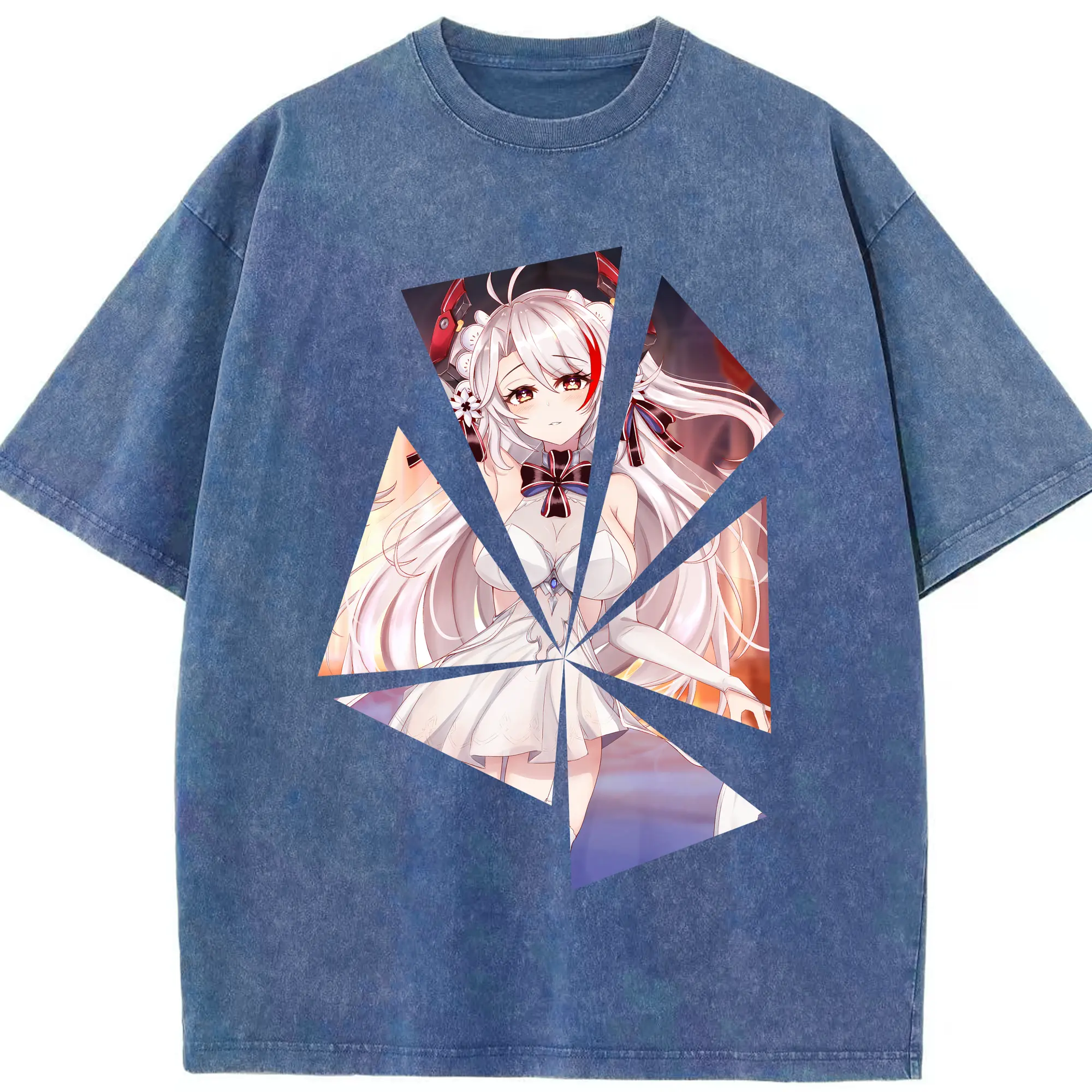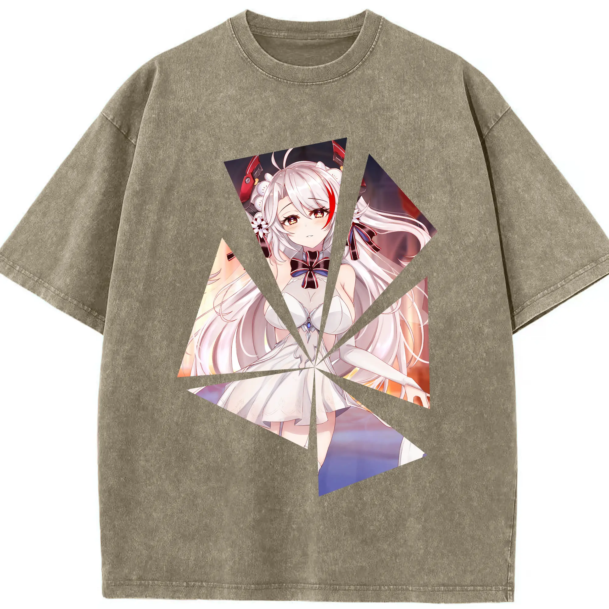 アズールレーン グッズ,プリンツ・オイゲン - 綿100% ヴィンテージ風 半袖Tシャツ ・ 背面プリント ・ 柔らか肌触り ・ 通気性 快適 ・ スポーツ カジュアル 外出用