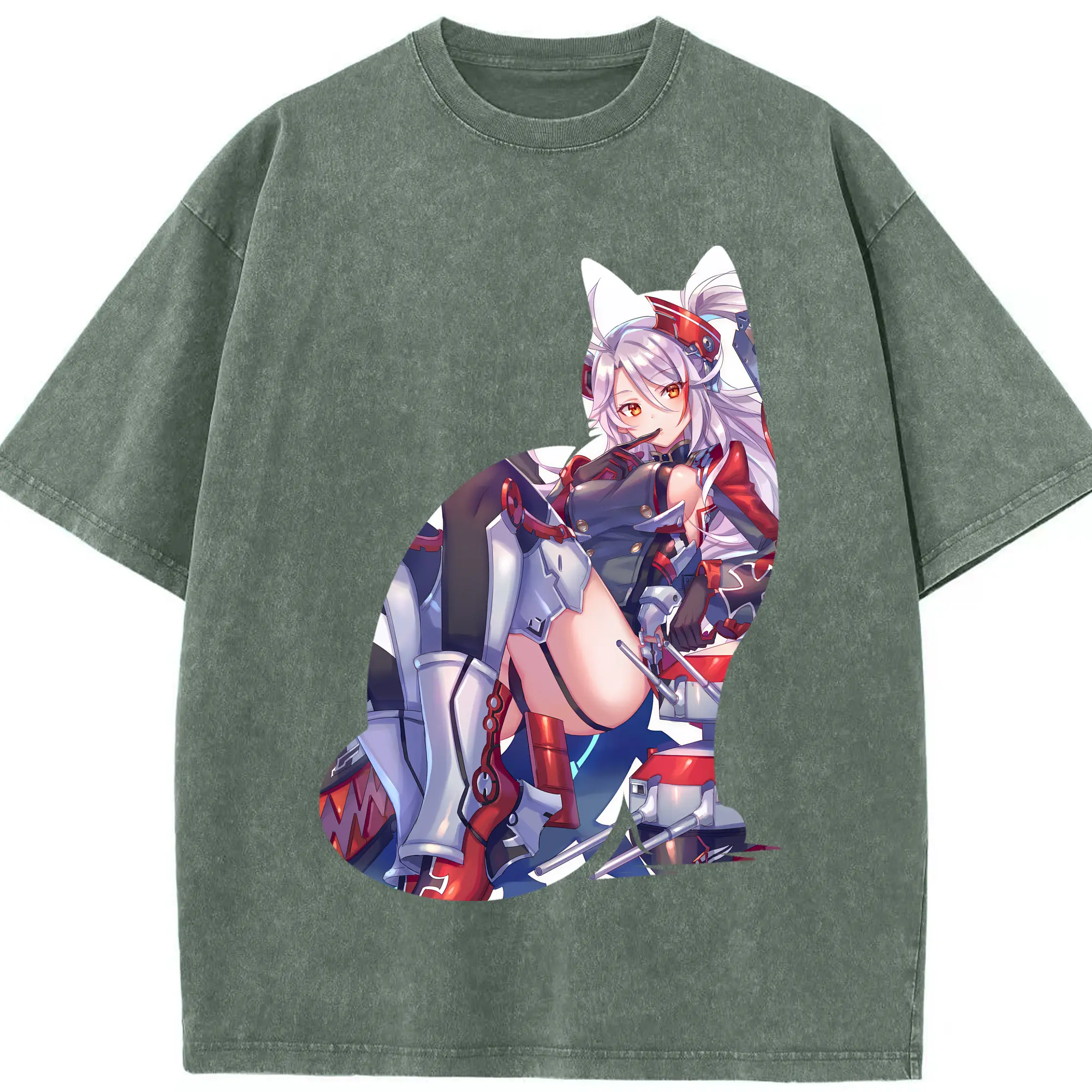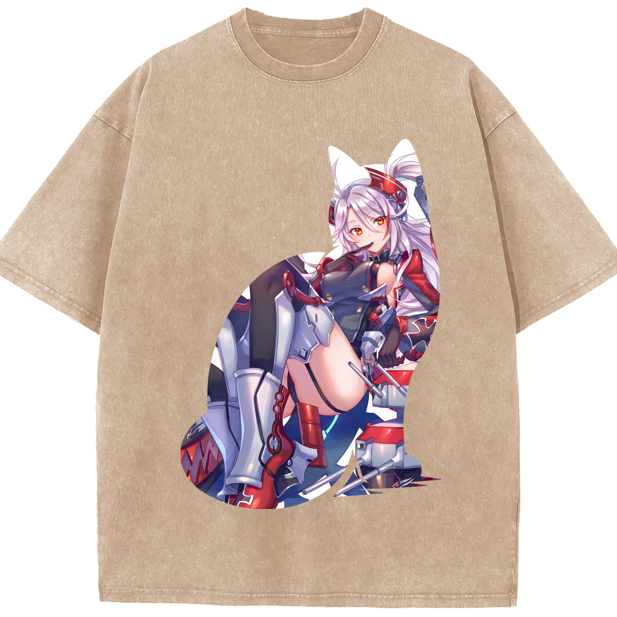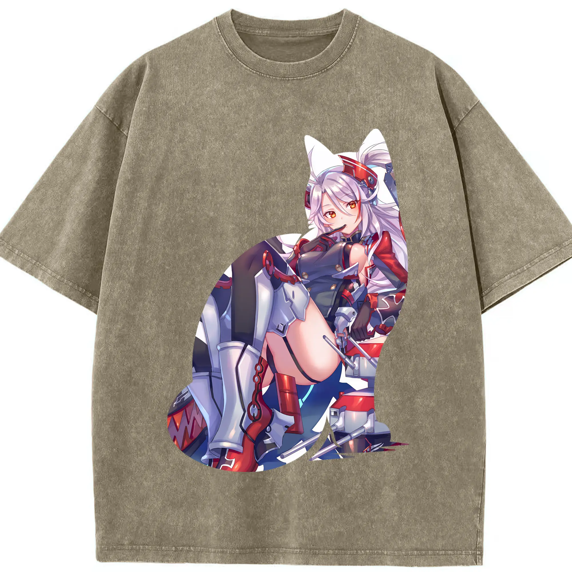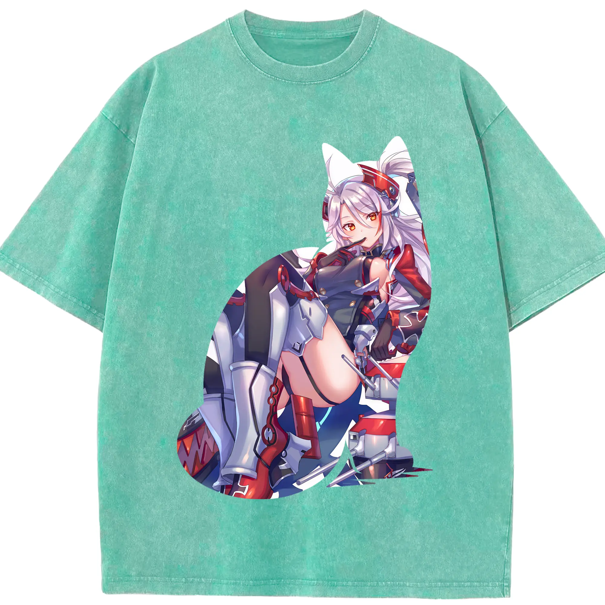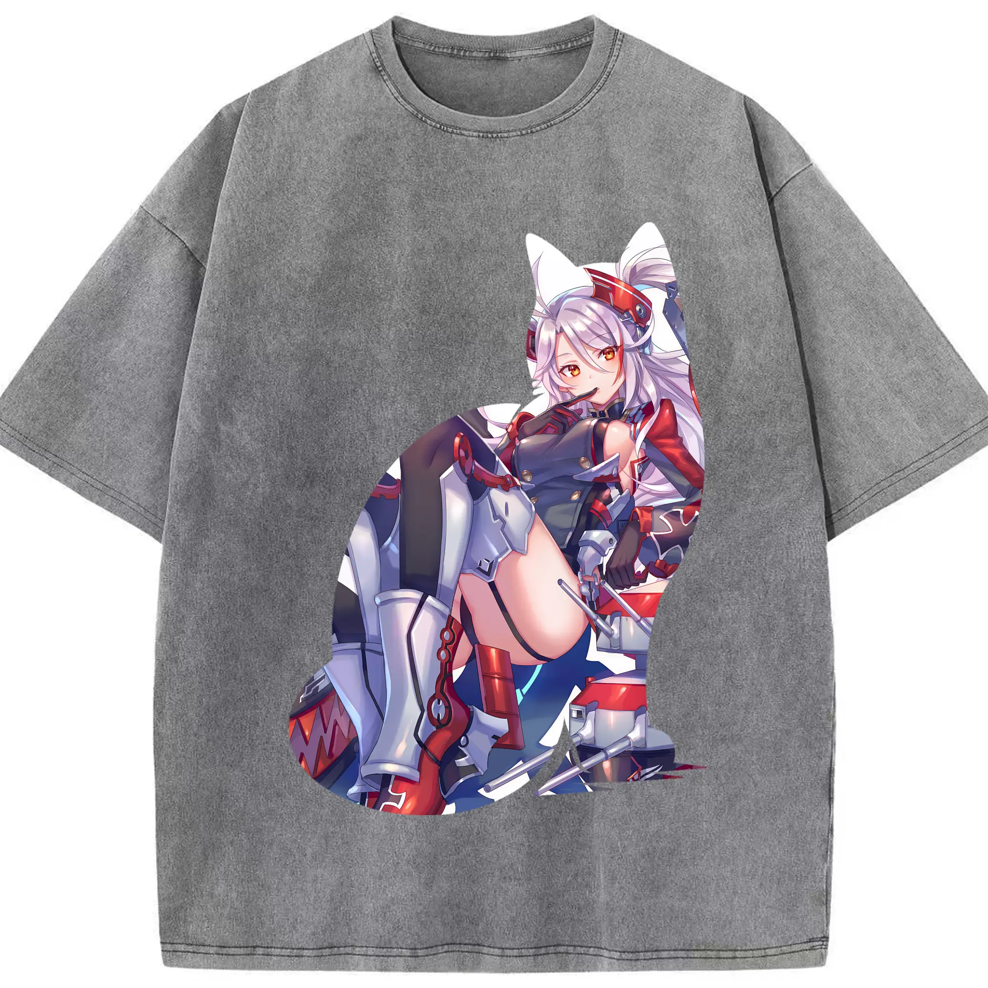 アズールレーン グッズ,プリンツ・オイゲン - 綿100% ヴィンテージ風 半袖Tシャツ ・ フロントプリント ・ 柔らか肌触り ・ 通気性 快適 ・ スポーツ カジュアル 外出用