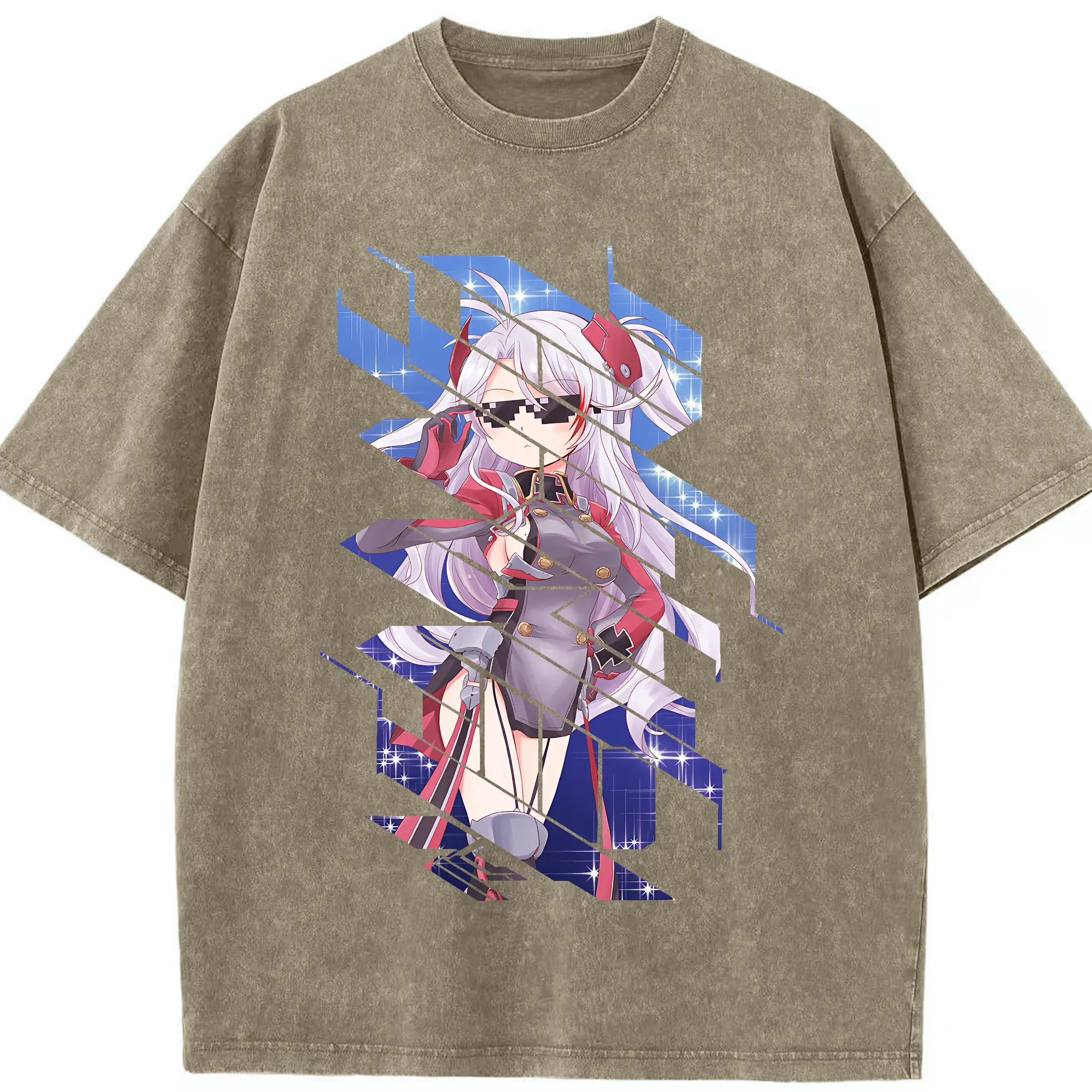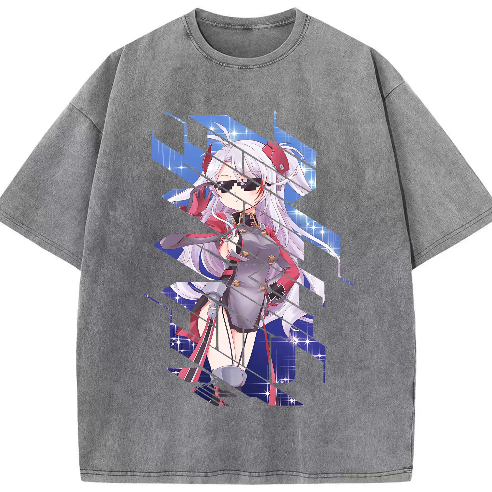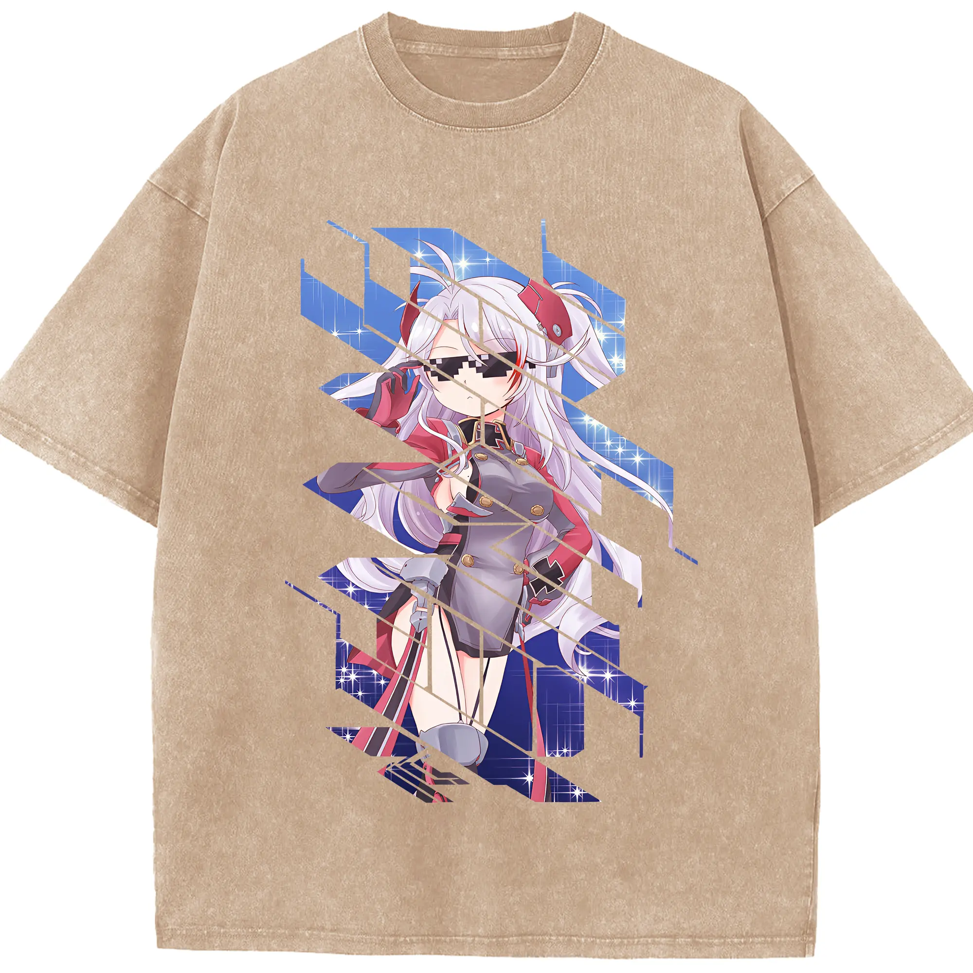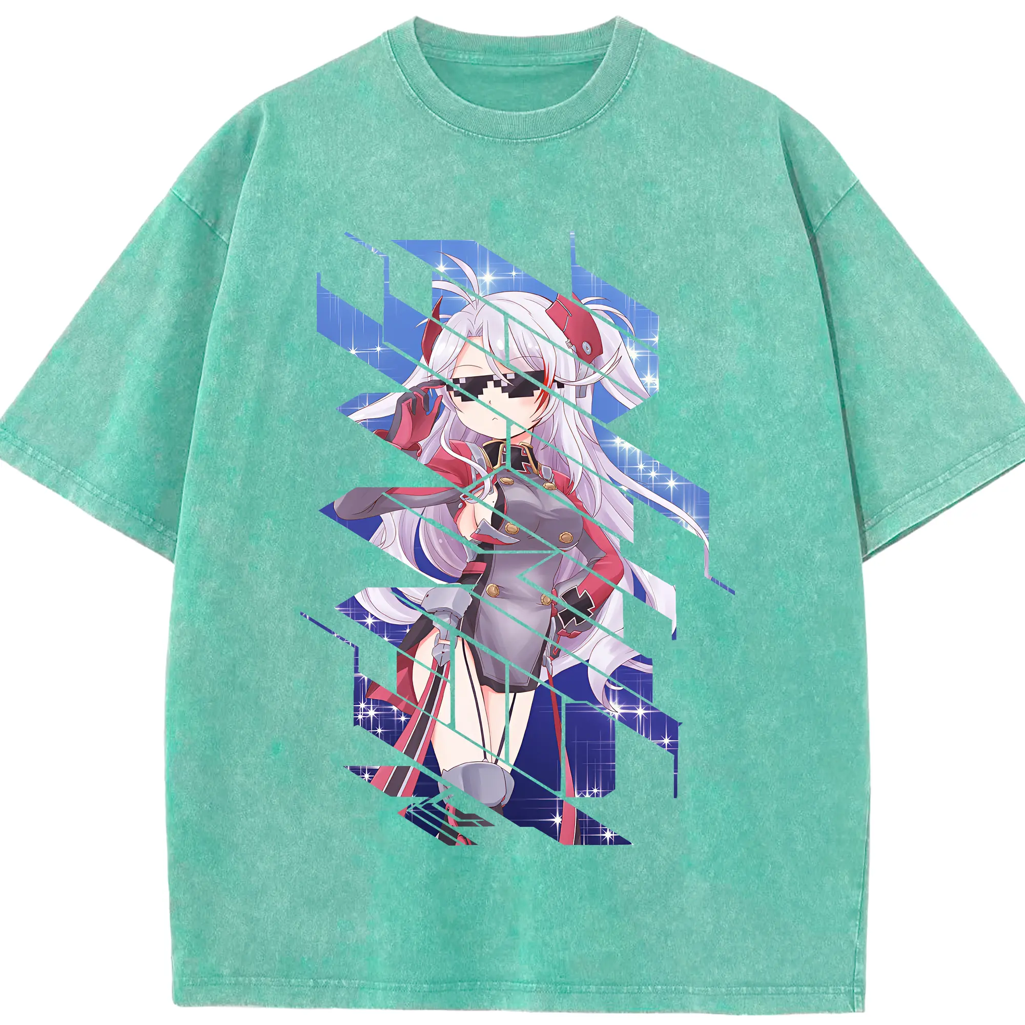 アズールレーン グッズ,プリンツ・オイゲン - 綿100% ヴィンテージ風 半袖Tシャツ ・ 背面プリント ・ 柔らか肌触り ・ 通気性 快適 ・ スポーツ カジュアル 外出用
