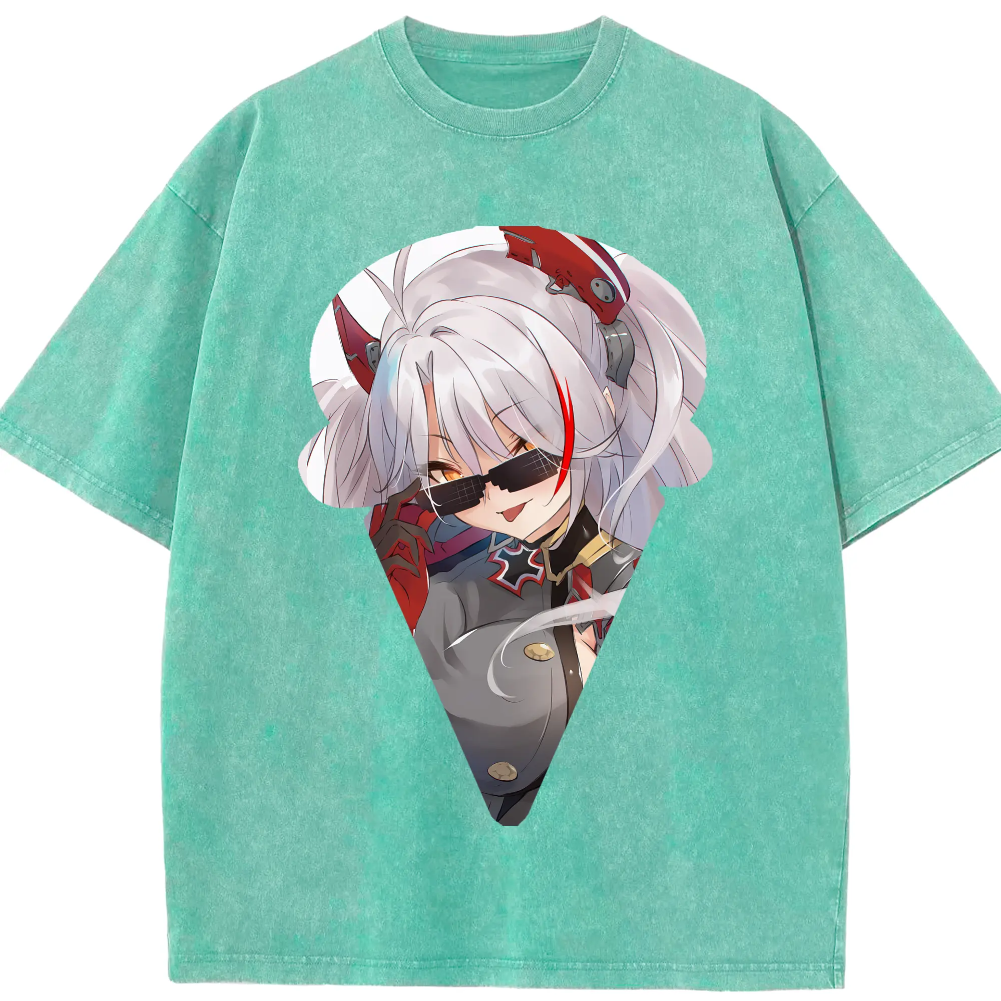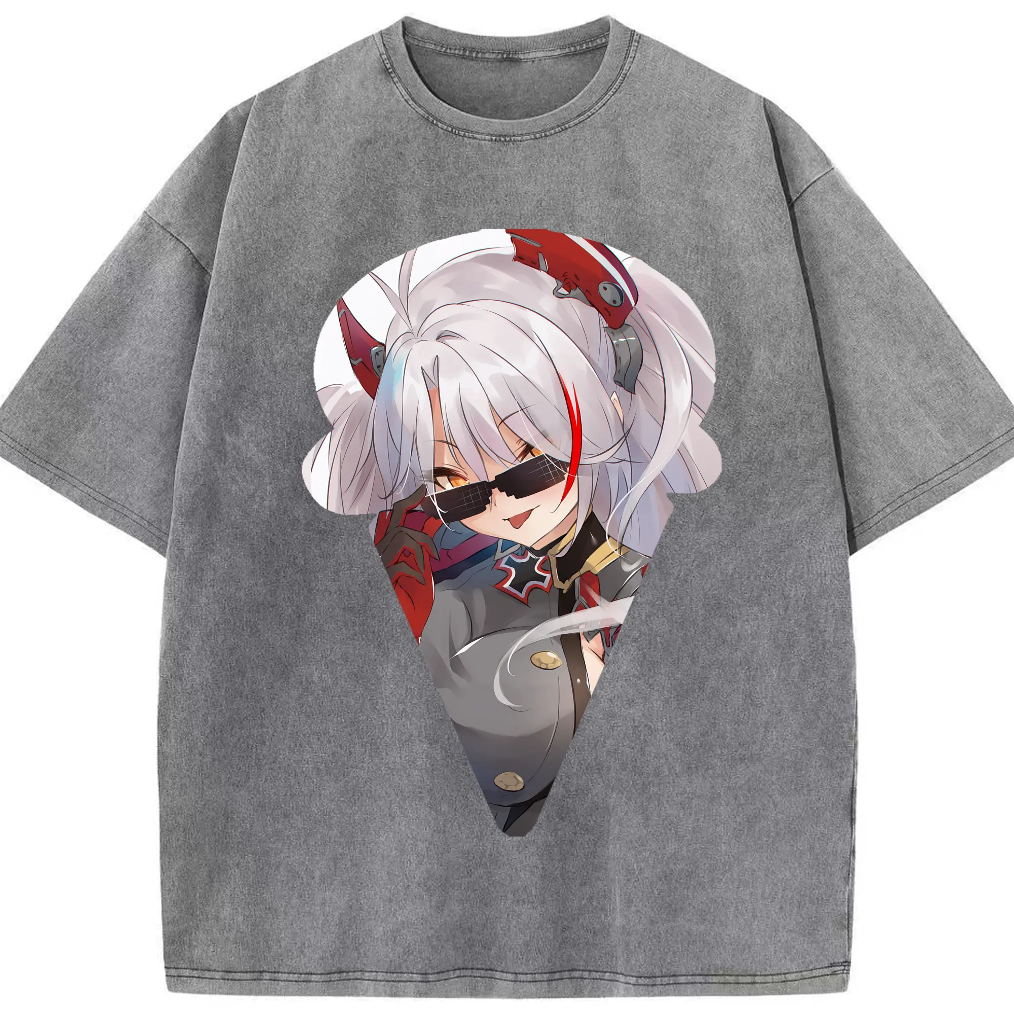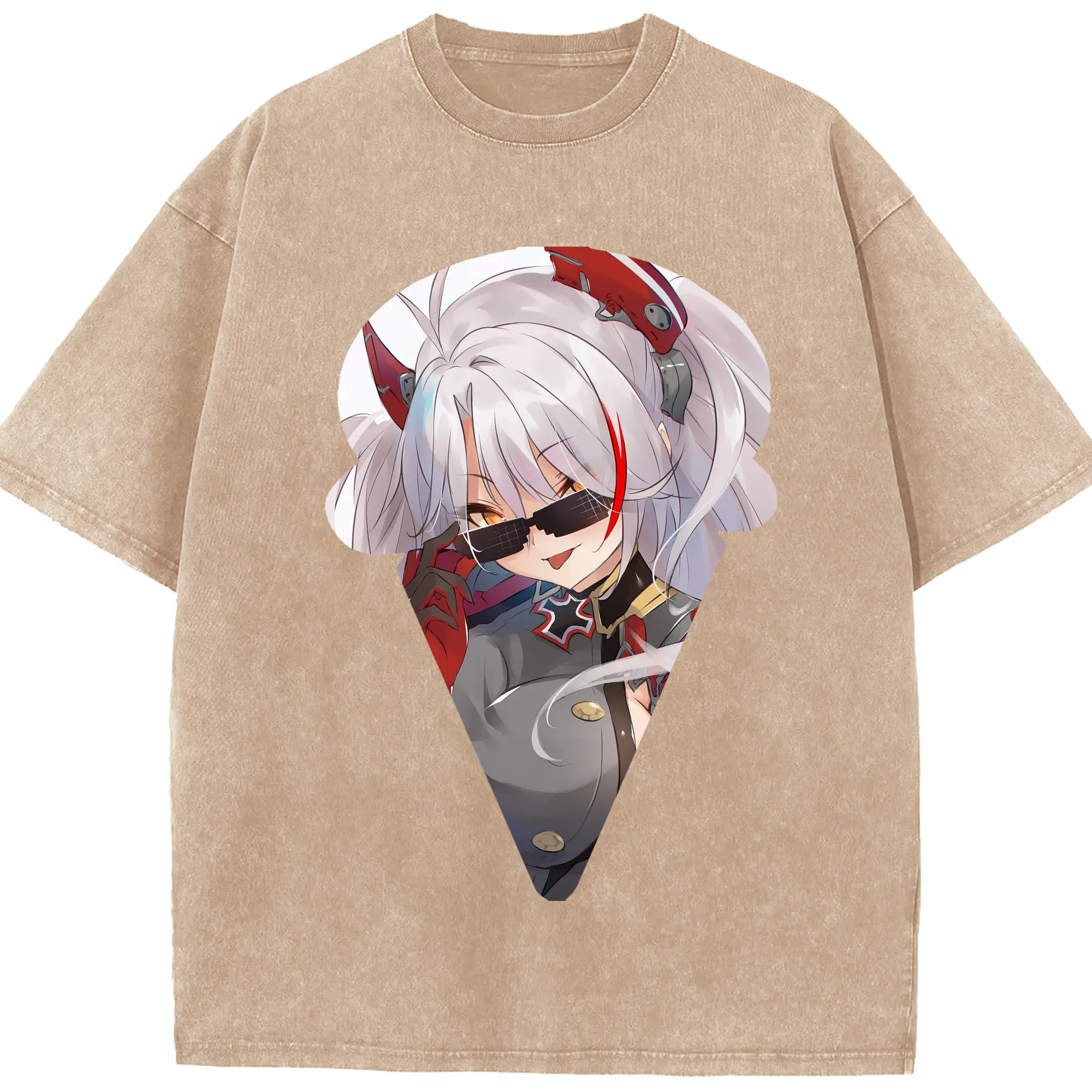アズールレーン グッズ,プリンツ・オイゲン - 綿100% ヴィンテージ風 半袖Tシャツ ・ 背面プリント ・ 柔らか肌触り ・ 通気性 快適 ・ スポーツ カジュアル 外出用