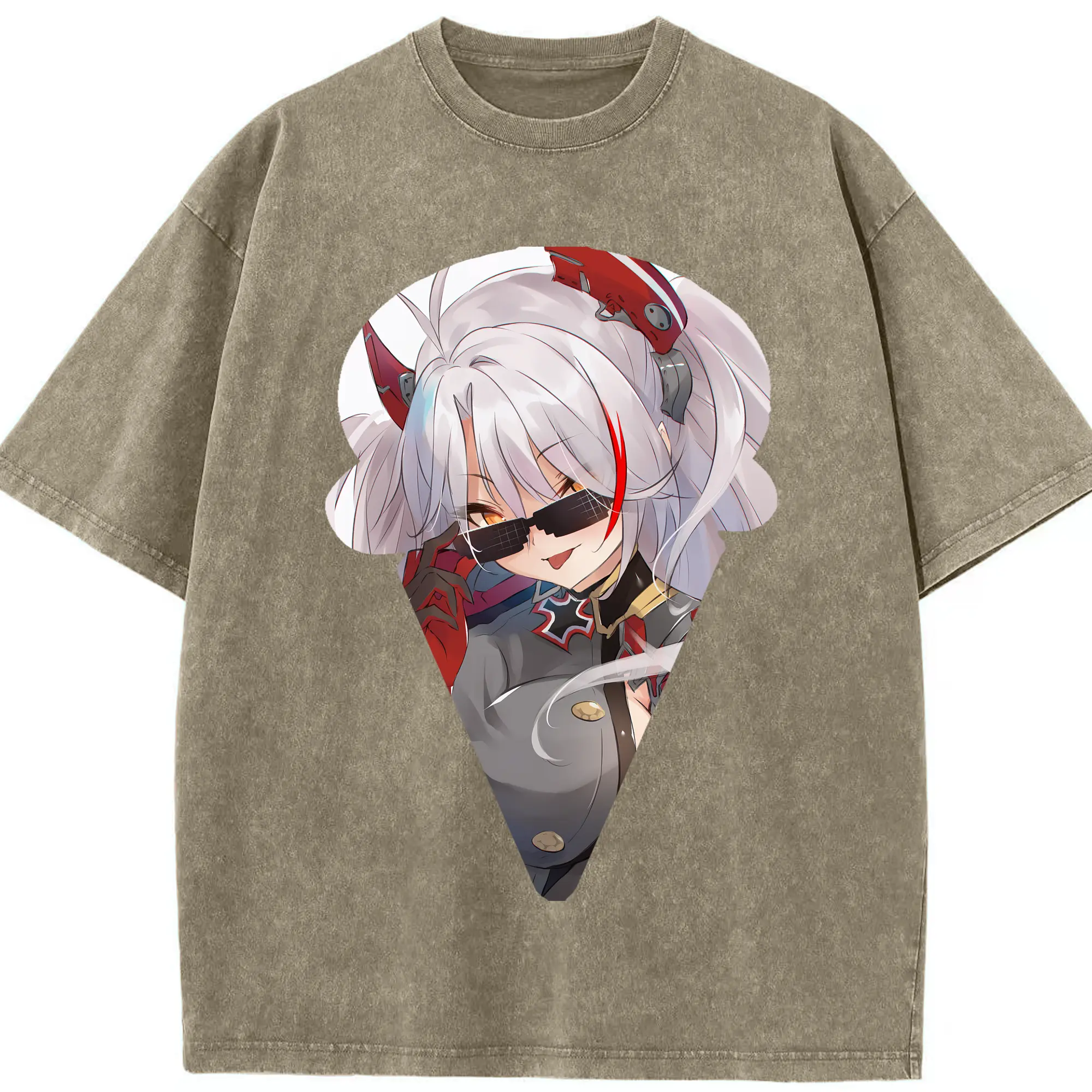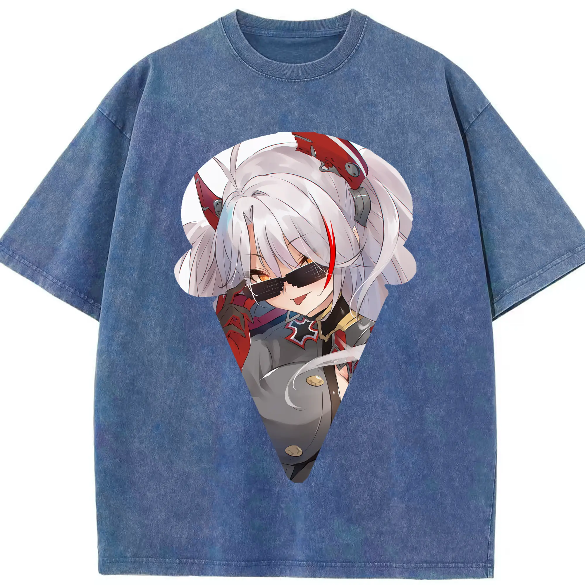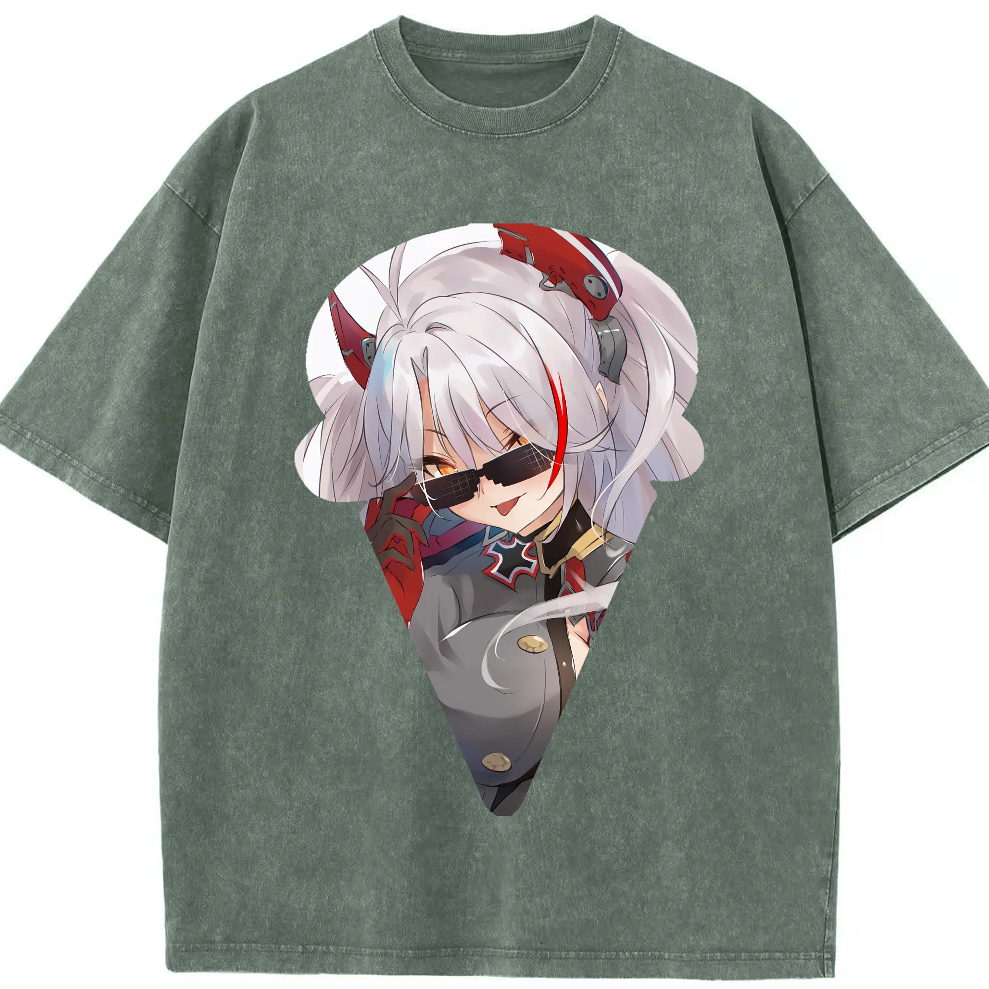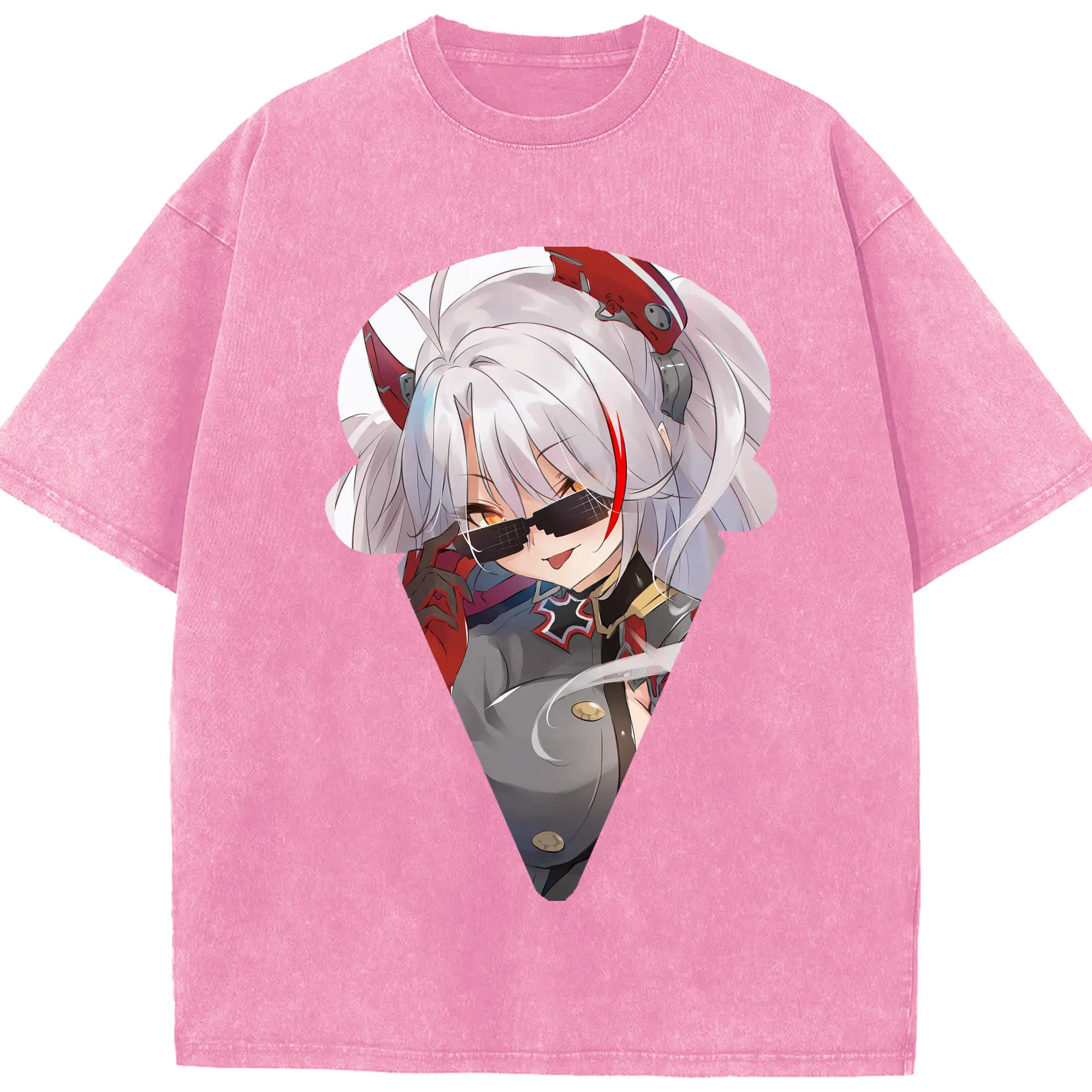 アズールレーン グッズ,プリンツ・オイゲン - 綿100% ヴィンテージ風 半袖Tシャツ ・ 背面プリント ・ 柔らか肌触り ・ 通気性 快適 ・ スポーツ カジュアル 外出用